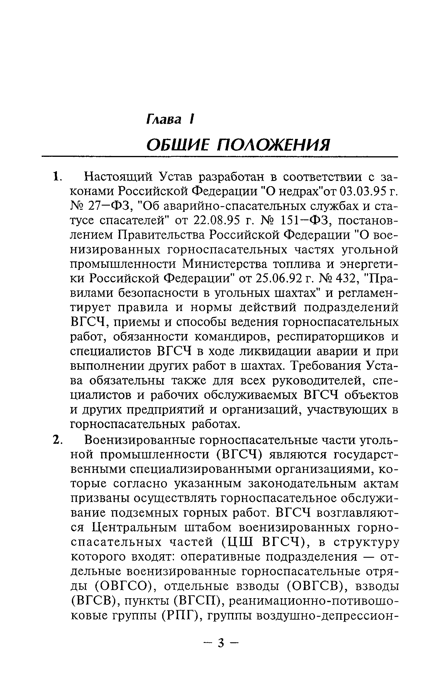 | Заменяет собой: | - «Устав военизированной горноспасательной части по организации и ведению горноспасательных работ»