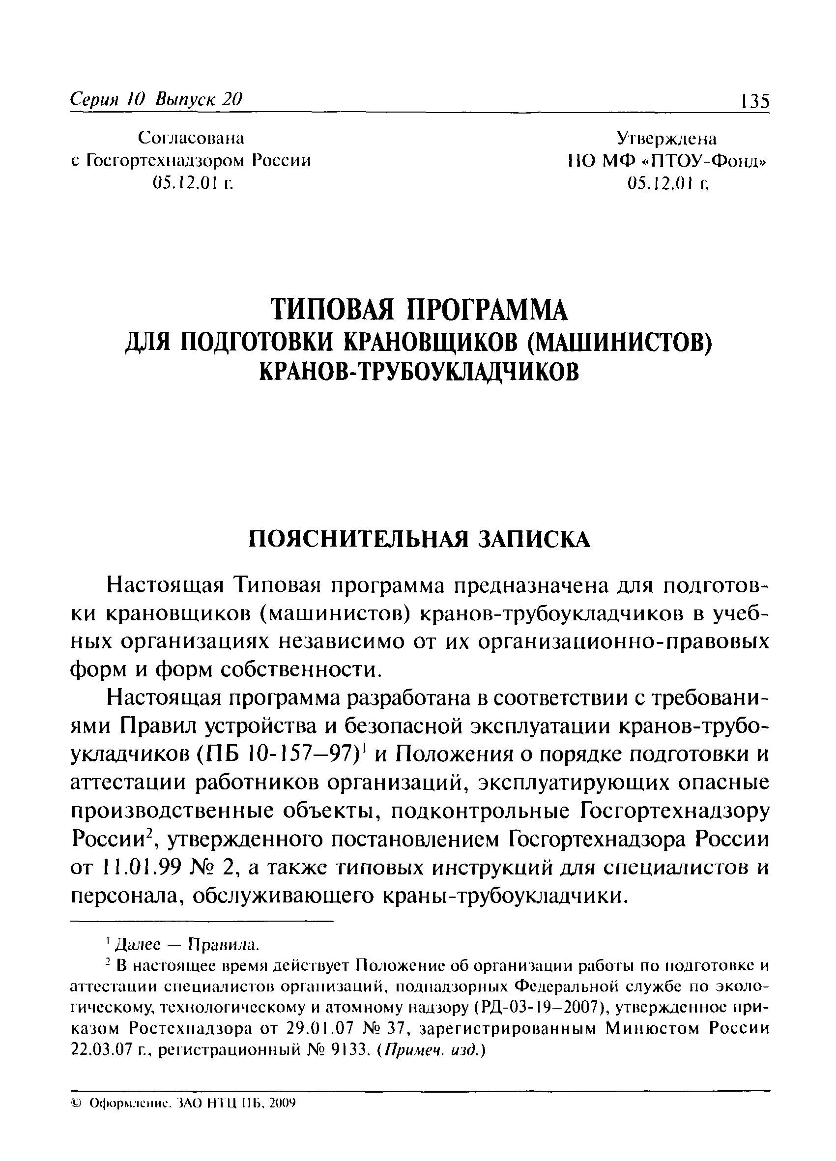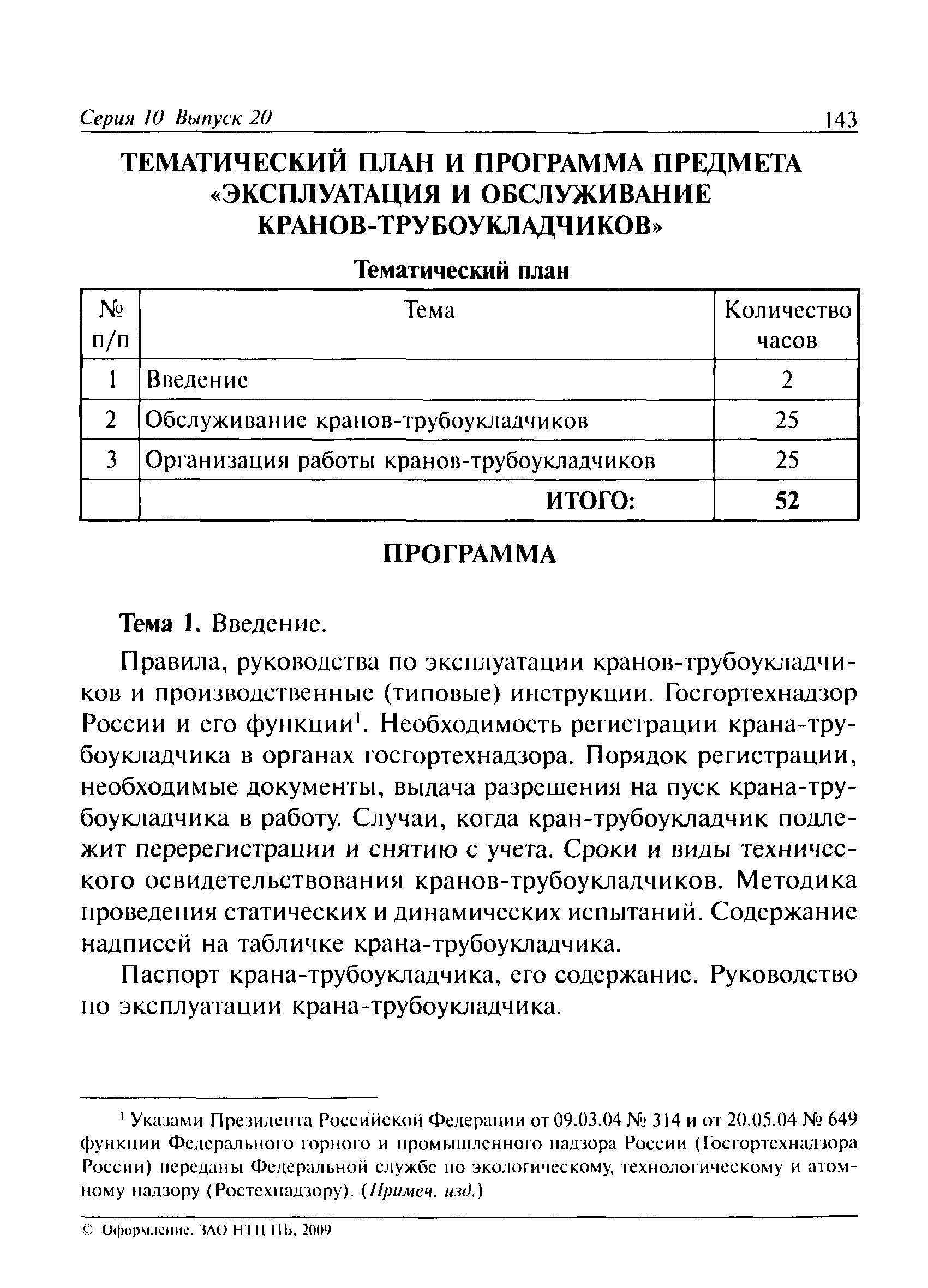 | Название рус.: | Типовая программа для подготовки крановщиков (машинистов) кранов-трубоукладчиков |