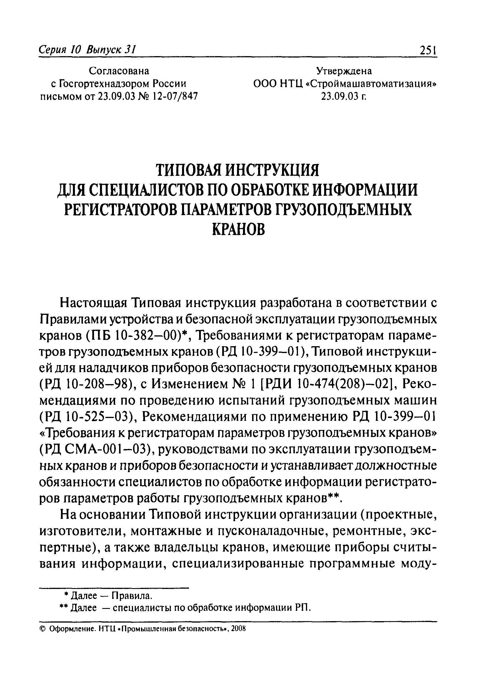 | Название рус.: | Типовая инструкция для специалистов по обработке информации регистраторов параметров грузоподъемных кранов |