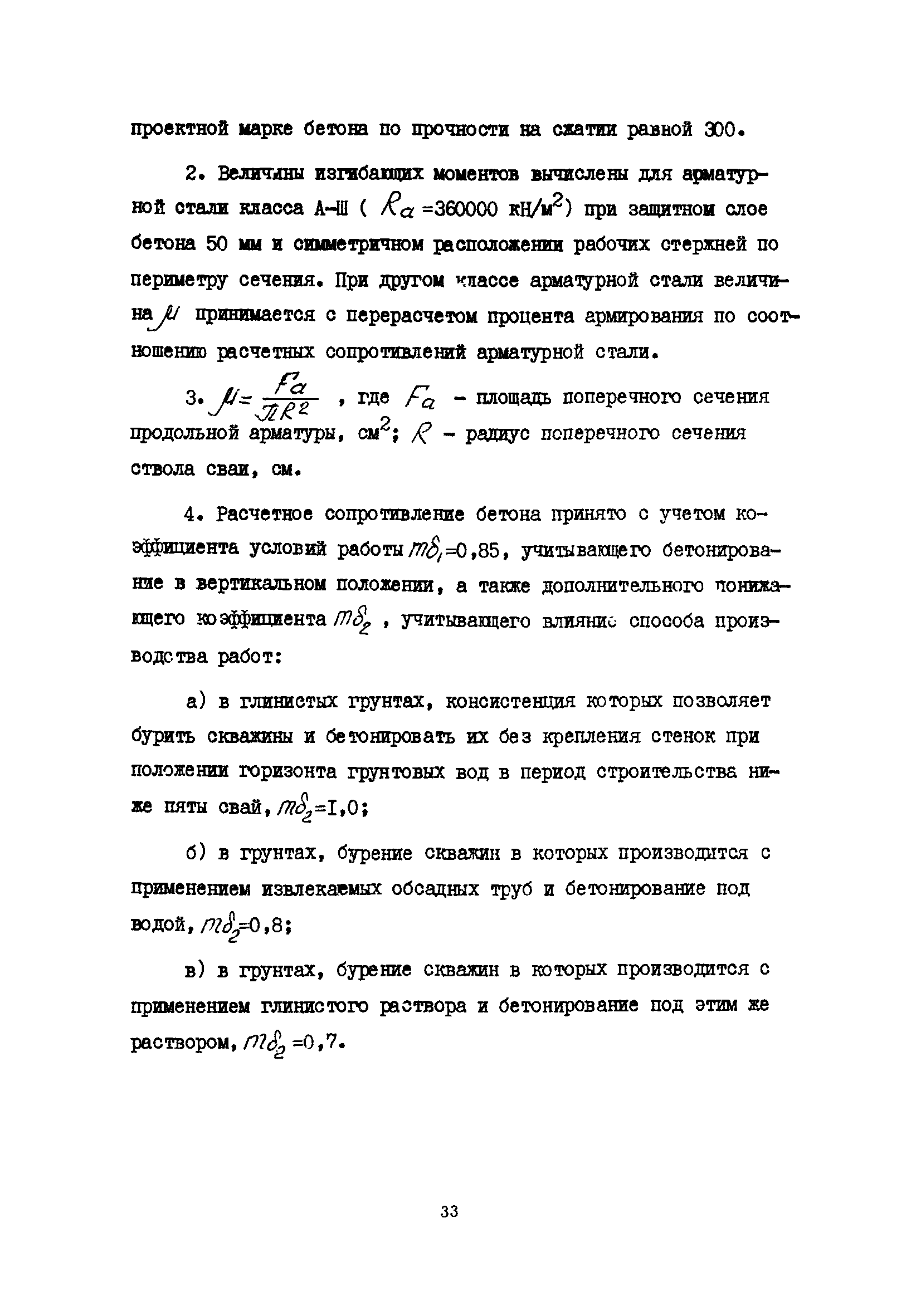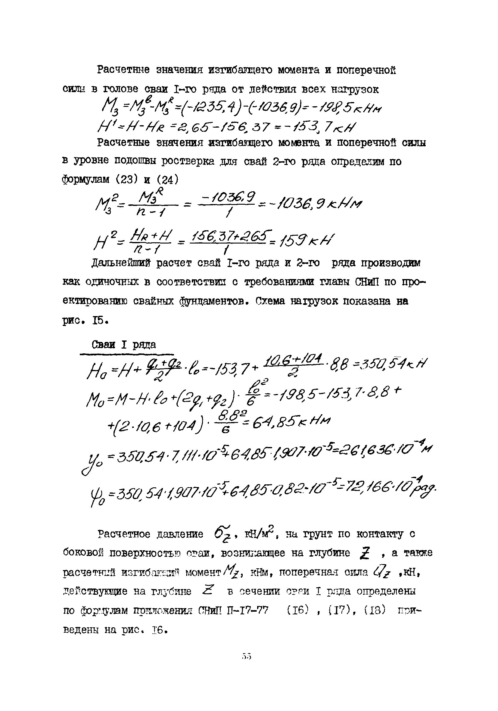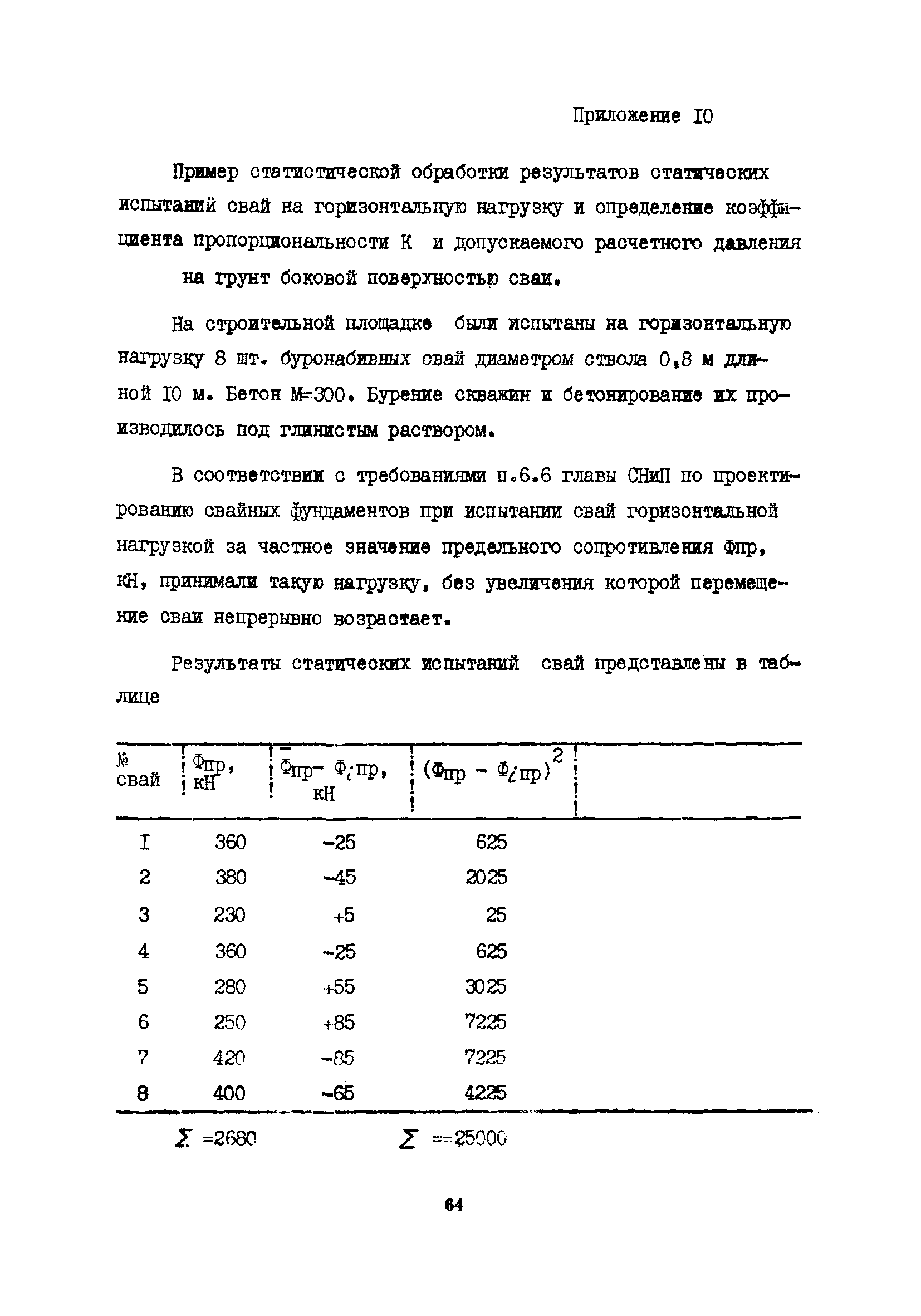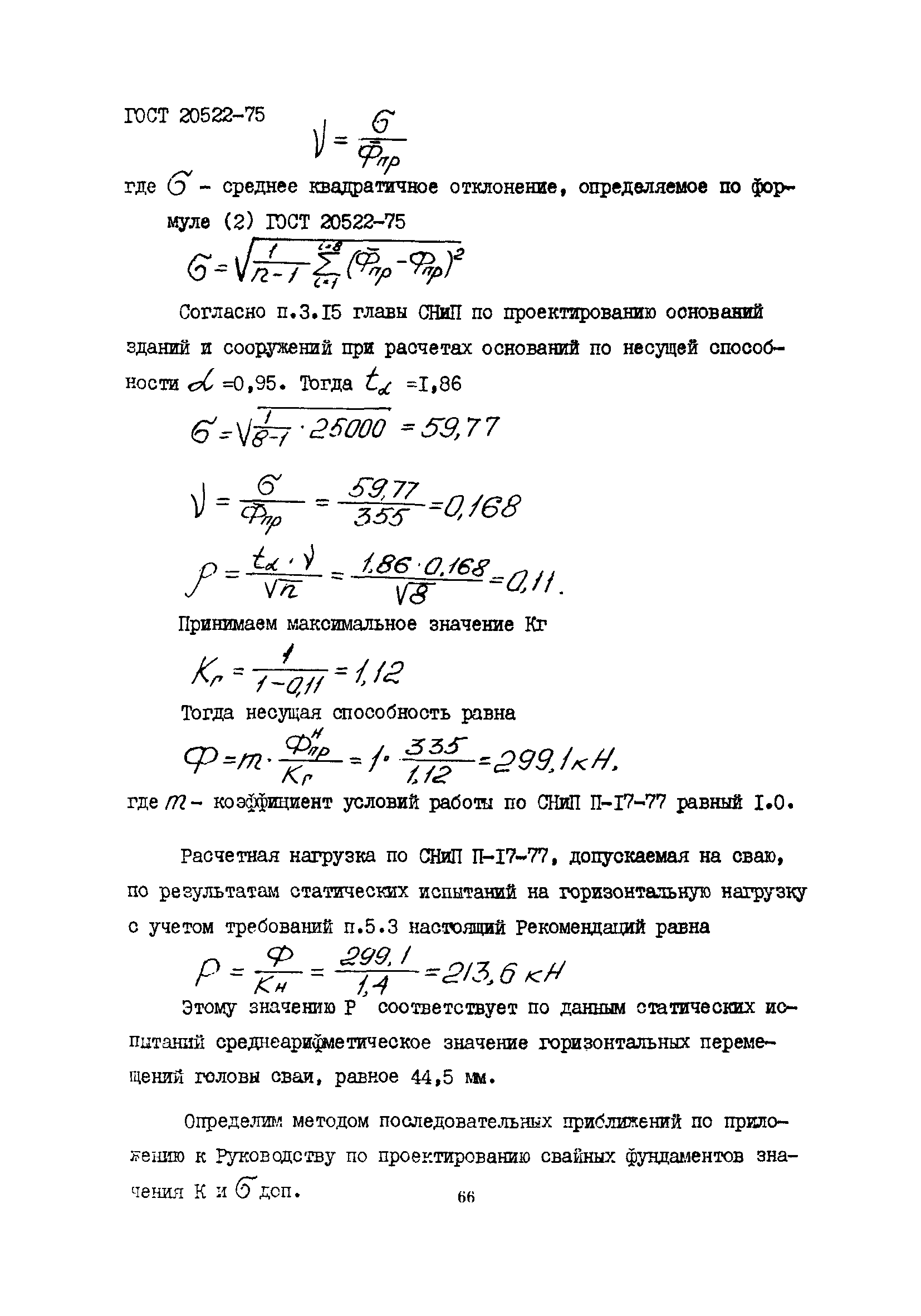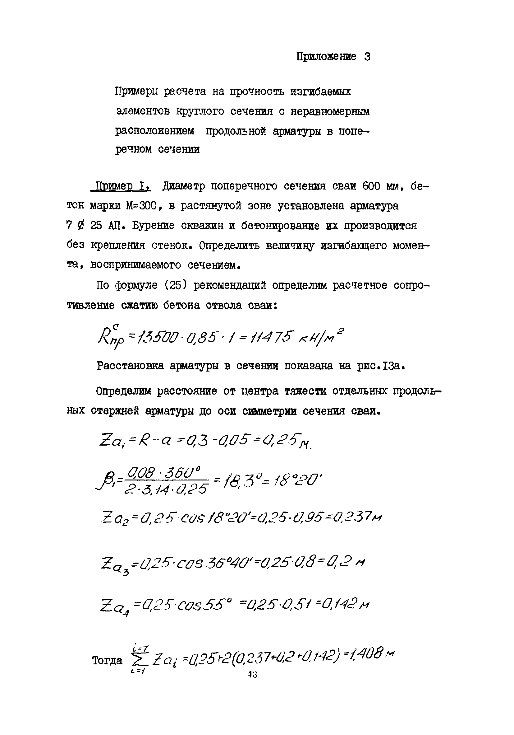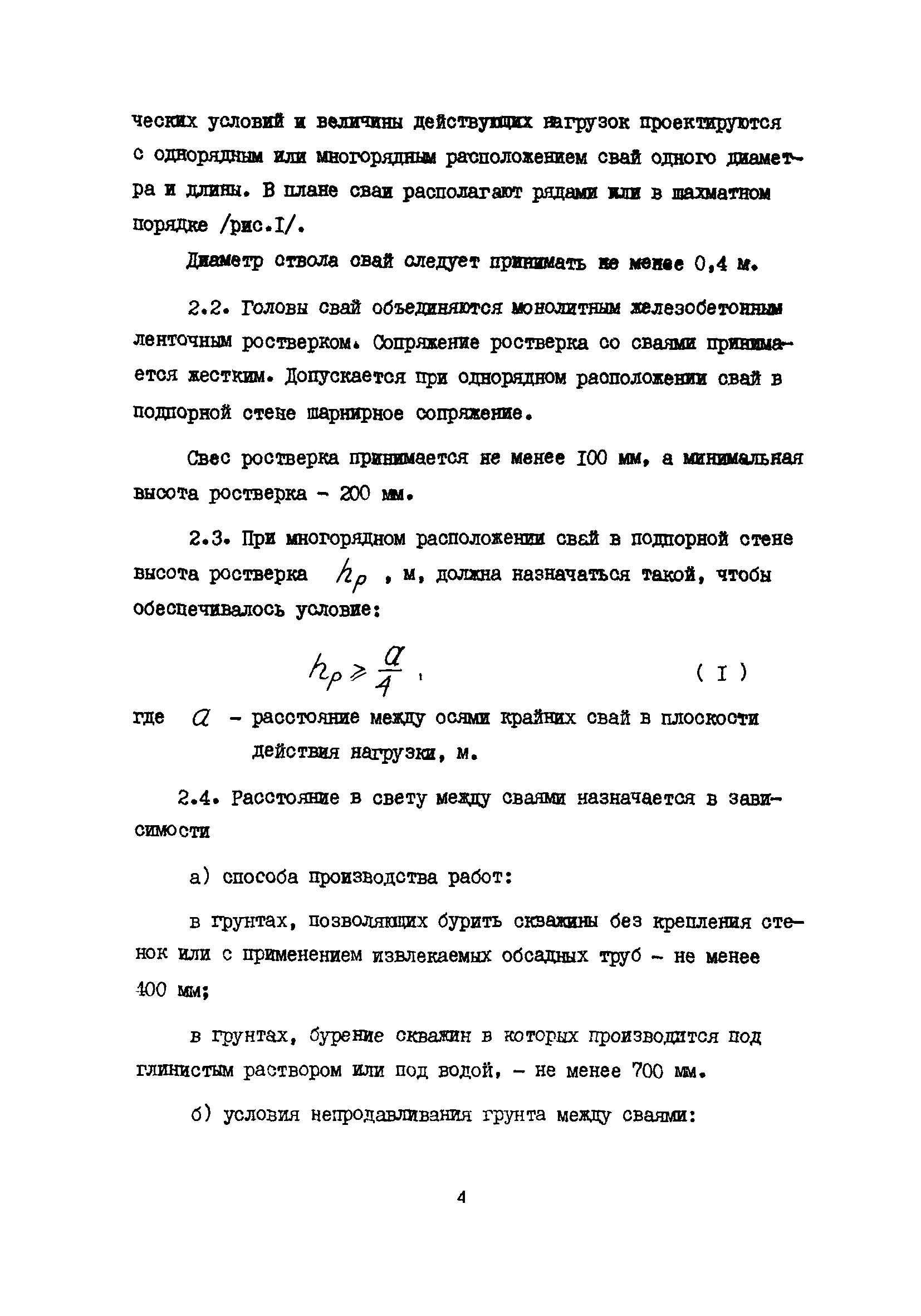 | Оглавление: | 1 Общие положения 2 Конструктивные требования 3 Общие положения расчета подпорных стен из буронабивных свай 4 Расчет подпорных стен из буронабивных свай на горизонтальные и моментные нагрузки 5 Определение коэффициента пропорциональности грунта по результатам статических испытаний свай на горизонтальную нагрузку 6 Расчет по прочности изгибаемых элементов круглого сечения, нормального к продольной оси Приложение 1. Пример расчета подпорных стен при однорядном расположении свай Приложение 2. Схема армирования свай подпорной стены при однорядном их расположении Приложение 3. Примеры расчета на прочность изгибаемых элементов круглого сечения с неравномерным расположением продольной арматуры в поперечном сечении Приложение 4. Графики изменения расчетных величин в зависимости от приведенной длины сваи Приложение 5. Графики изменения расчетных величин в зависимости от диаметра сваи Приложение 6. Пример расчета двухрядной подпорной стены из буронабивных свай Приложение 7. Графики изменения расчетных величин в зависимости от приведенной длины сваи Приложение 8. Графики изменения расчетных величин в зависимости от диаметра сваи Приложение 9. Графики изменения расчетных величин в зависимости от расстояния между рядами свай в осях Приложение 10. Пример статистической обработки результатов статических испытаний свай на горизонтальную нагрузку и определение коэффициента пропорциональности и допускаемого расчетного давления на грунт боковой поверхностью сваи |