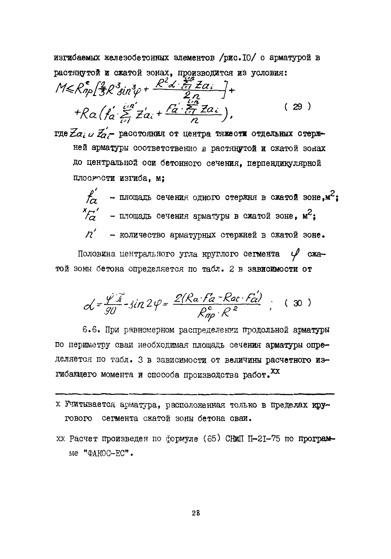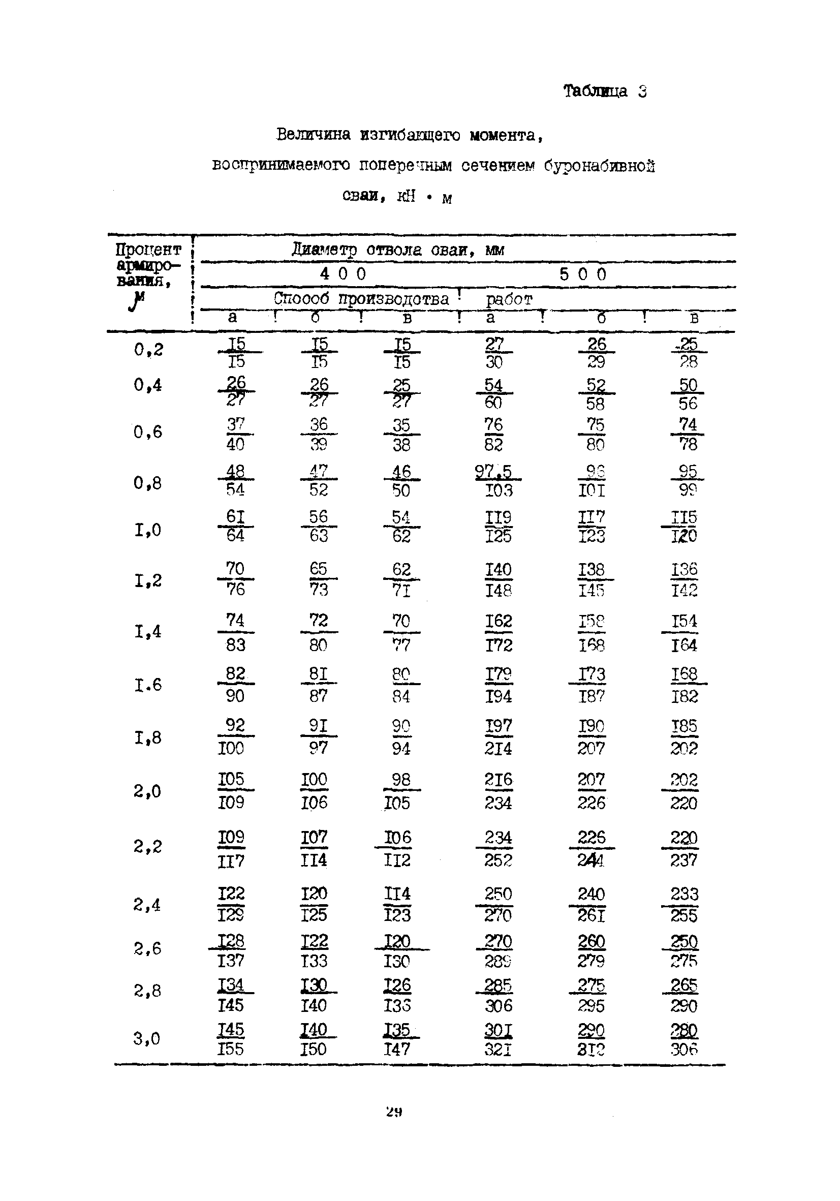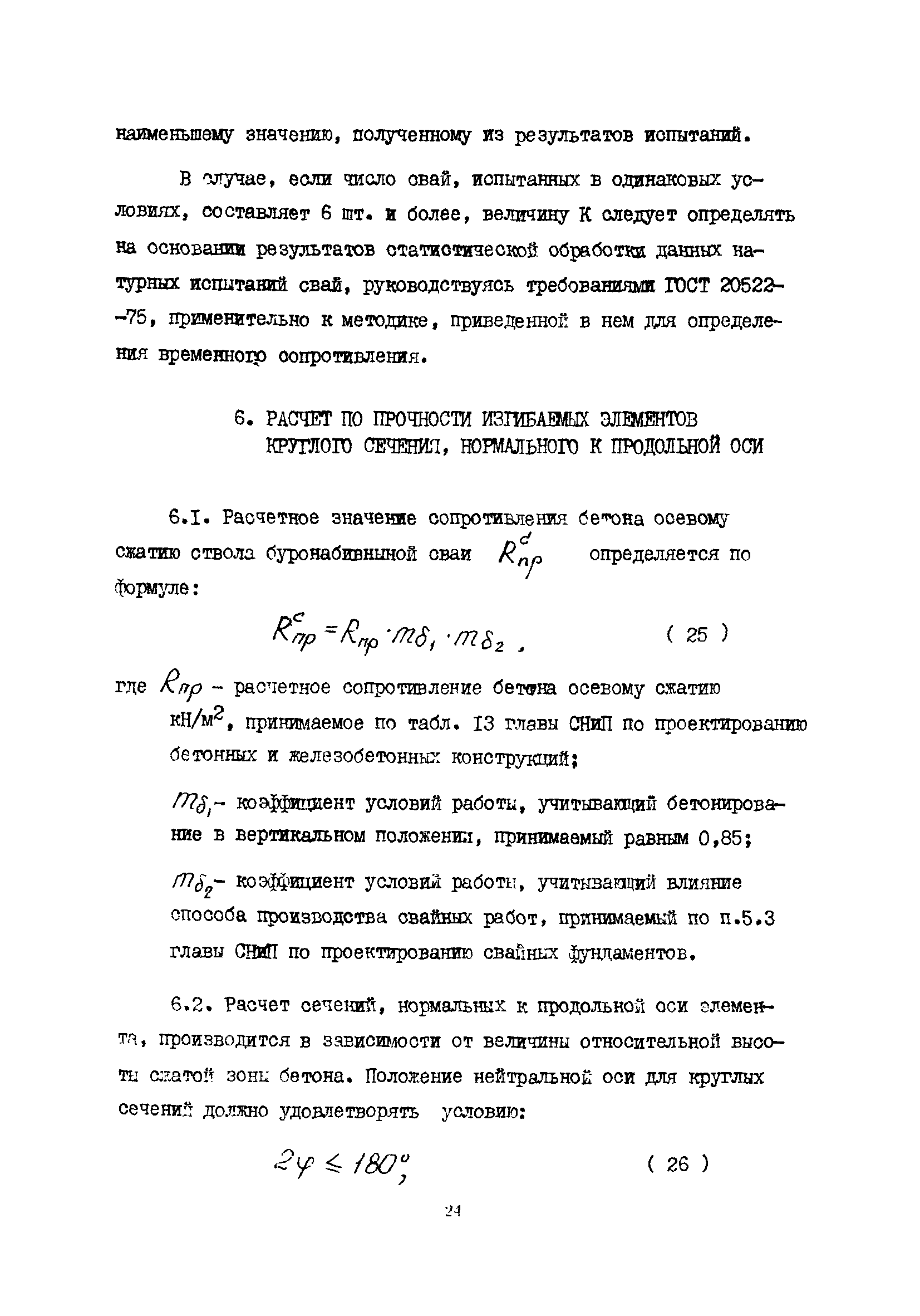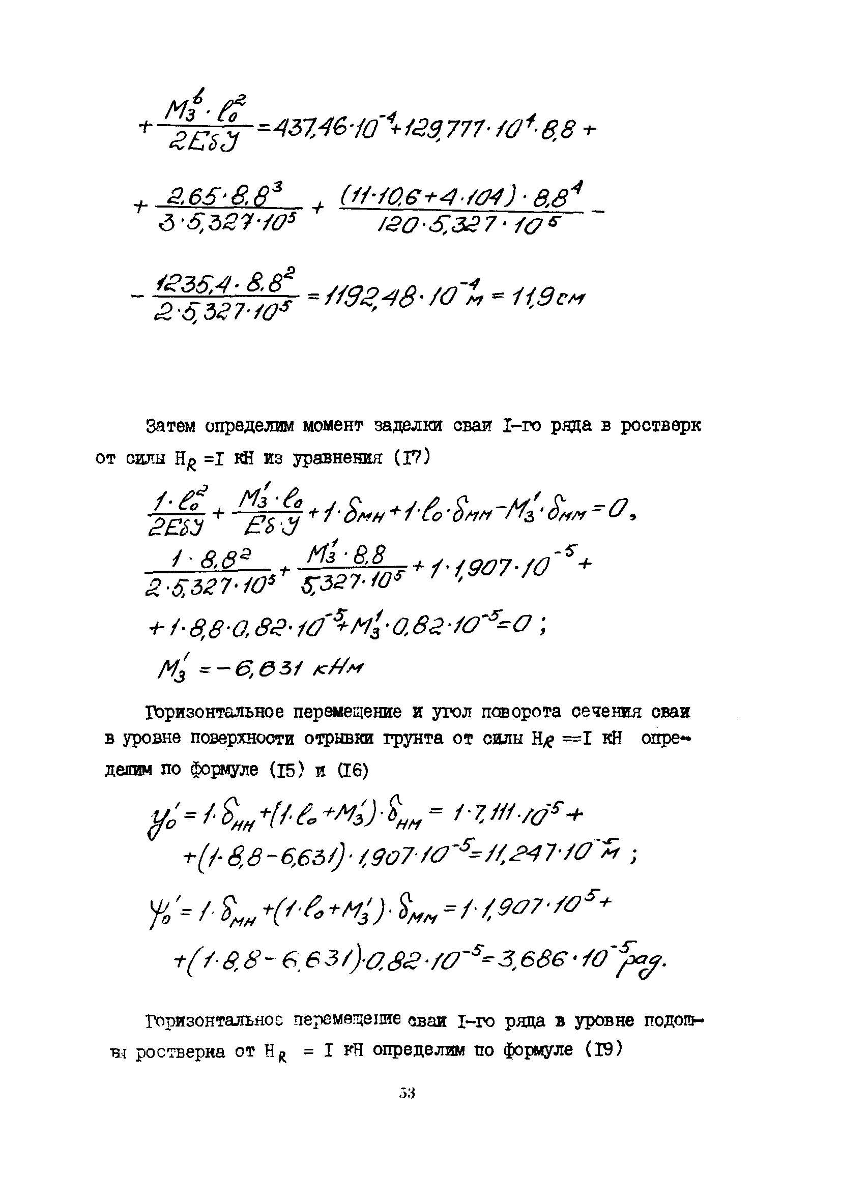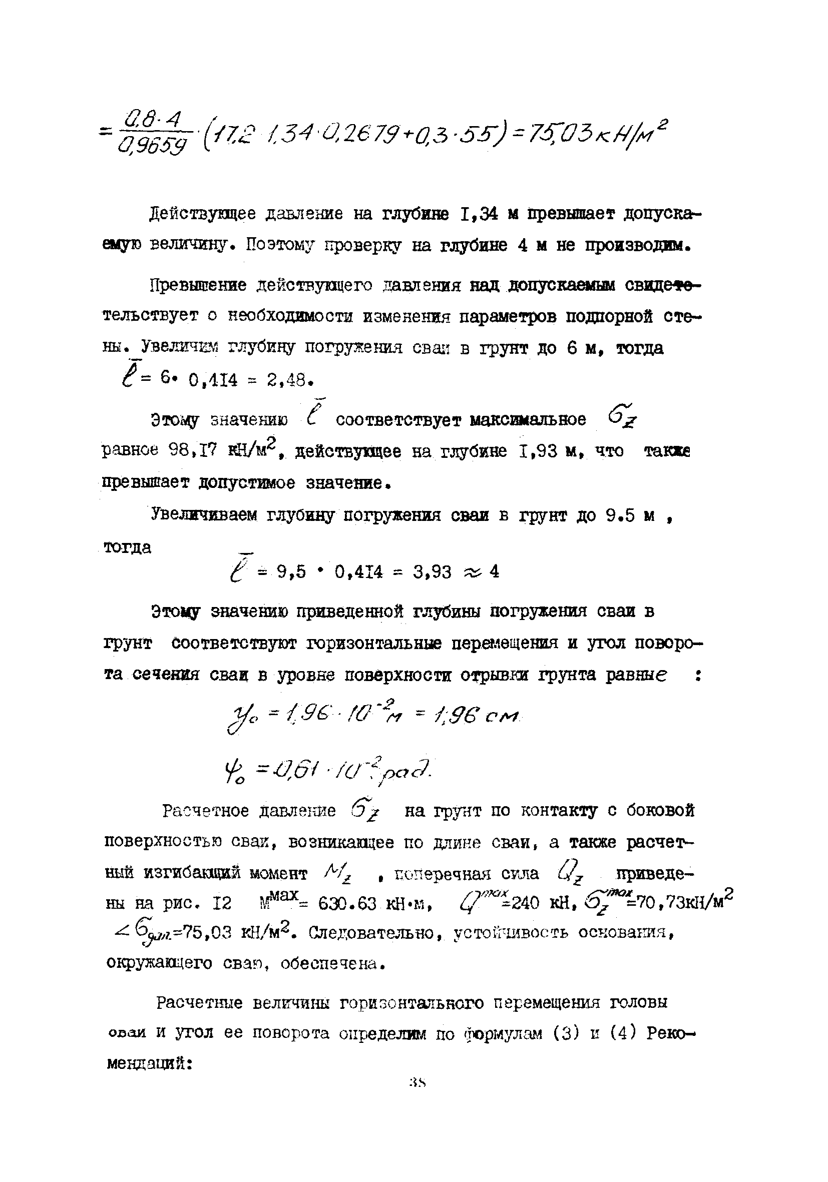 | Оглавление: | 1 Общие положения 2 Конструктивные требования 3 Общие положения расчета подпорных стен из буронабивных свай 4 Расчет подпорных стен из буронабивных свай на горизонтальные и моментные нагрузки 5 Определение коэффициента пропорциональности грунта по результатам статических испытаний свай на горизонтальную нагрузку 6 Расчет по прочности изгибаемых элементов круглого сечения, нормального к продольной оси Приложение 1. Пример расчета подпорных стен при однорядном расположении свай Приложение 2. Схема армирования свай подпорной стены при однорядном их расположении Приложение 3. Примеры расчета на прочность изгибаемых элементов круглого сечения с неравномерным расположением продольной арматуры в поперечном сечении Приложение 4. Графики изменения расчетных величин в зависимости от приведенной длины сваи Приложение 5. Графики изменения расчетных величин в зависимости от диаметра сваи Приложение 6. Пример расчета двухрядной подпорной стены из буронабивных свай Приложение 7. Графики изменения расчетных величин в зависимости от приведенной длины сваи Приложение 8. Графики изменения расчетных величин в зависимости от диаметра сваи Приложение 9. Графики изменения расчетных величин в зависимости от расстояния между рядами свай в осях Приложение 10. Пример статистической обработки результатов статических испытаний свай на горизонтальную нагрузку и определение коэффициента пропорциональности и допускаемого расчетного давления на грунт боковой поверхностью сваи |