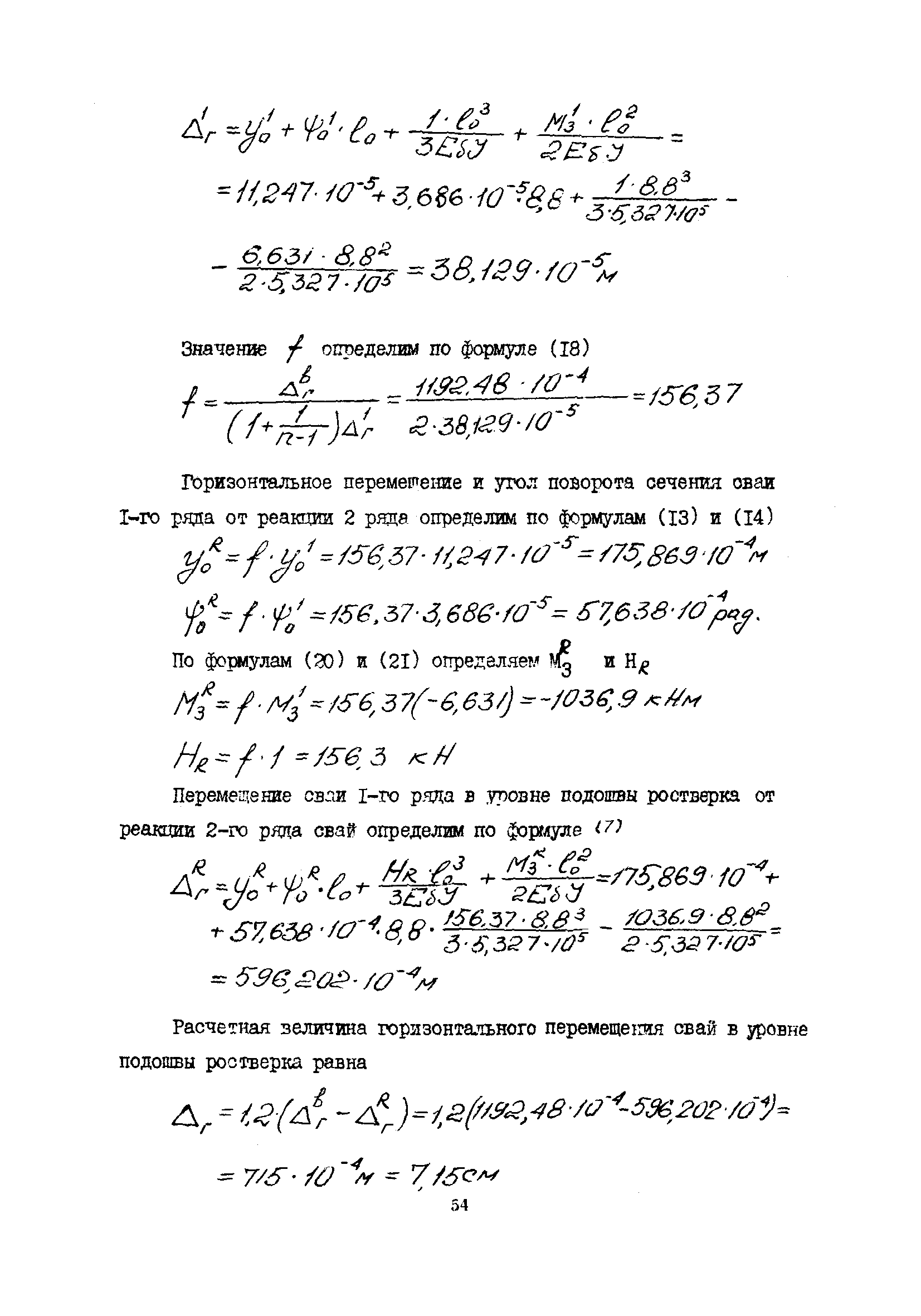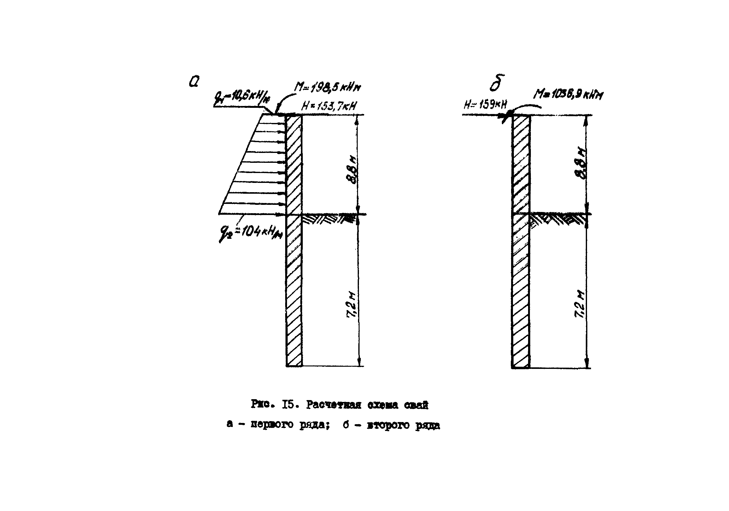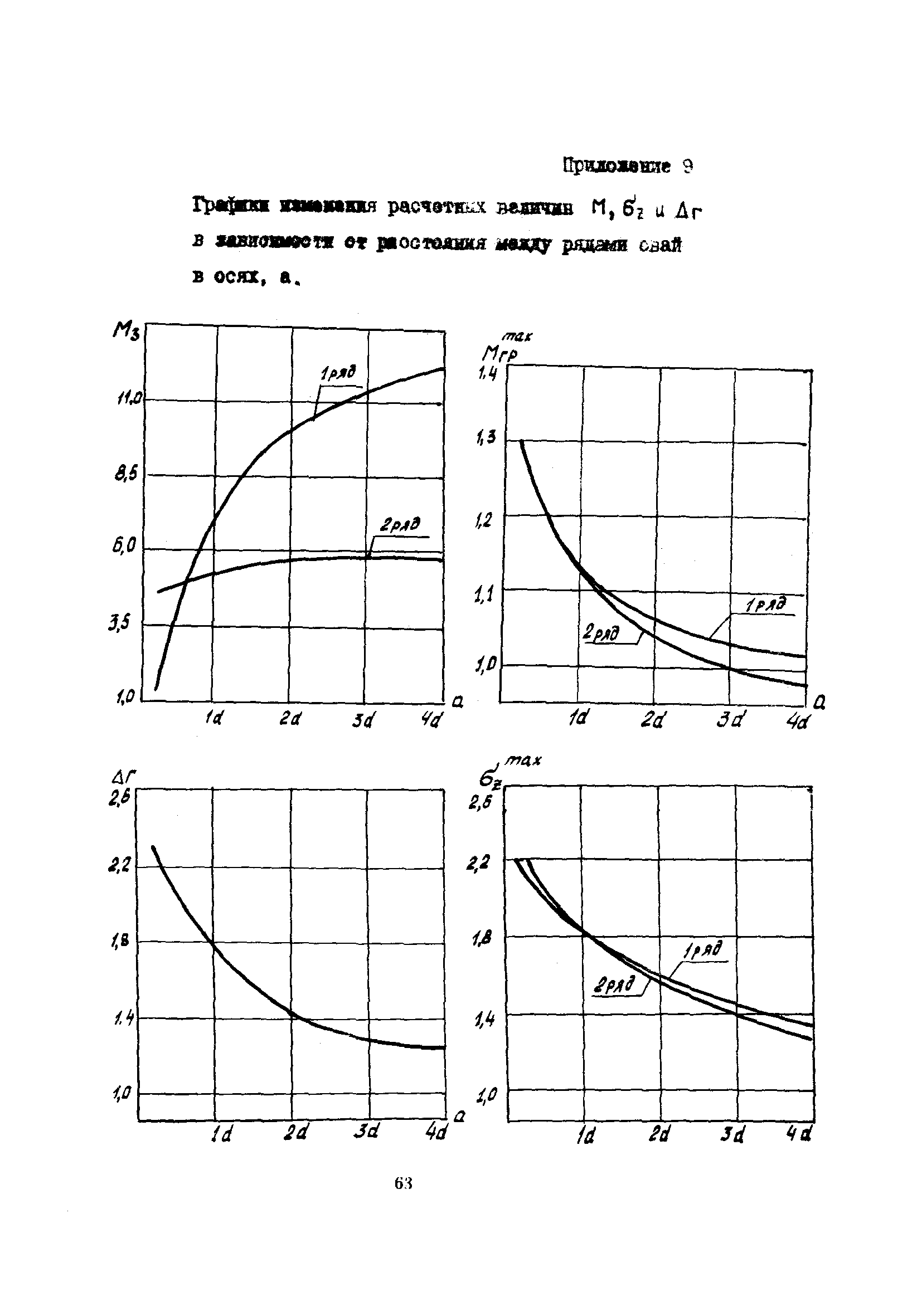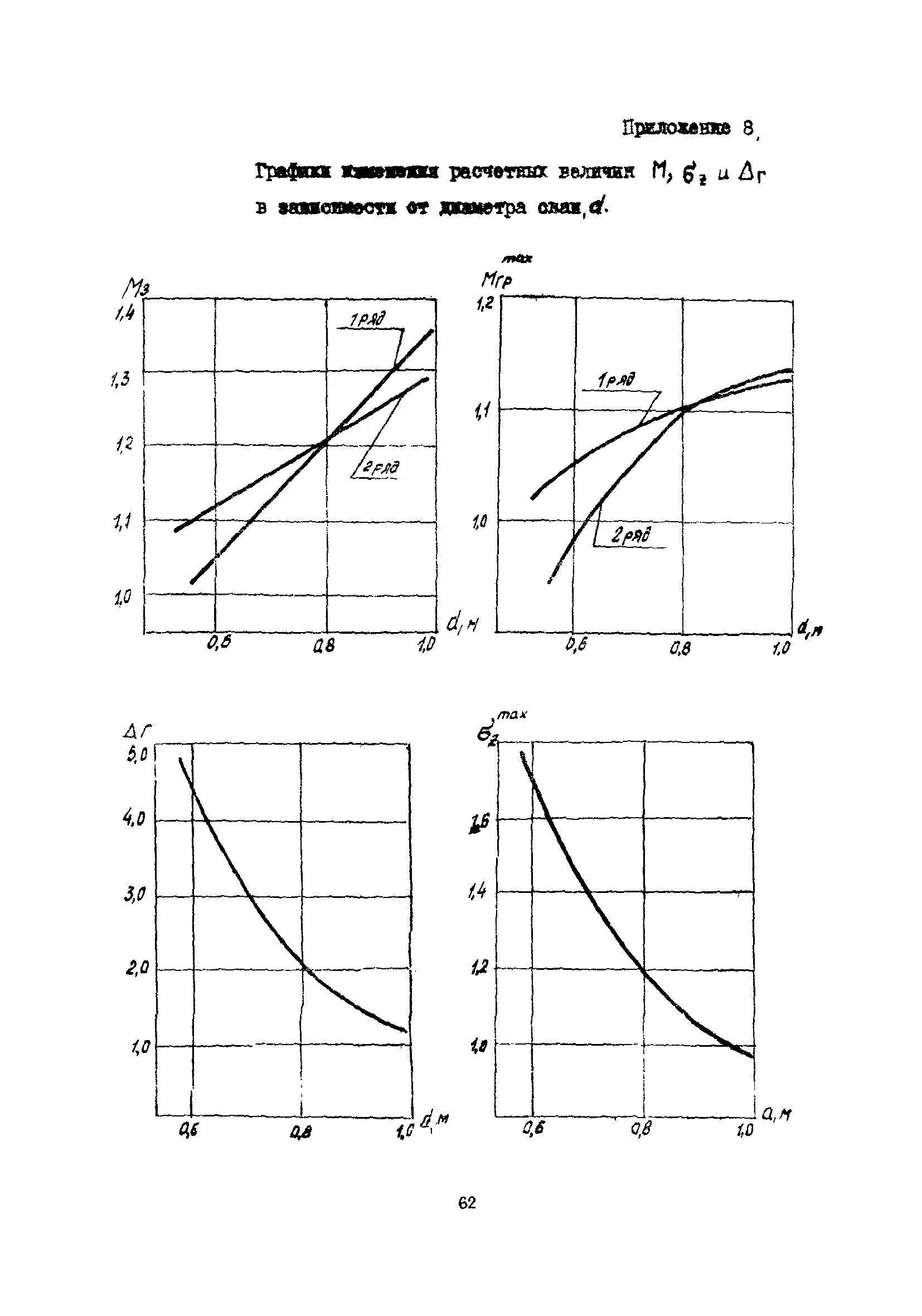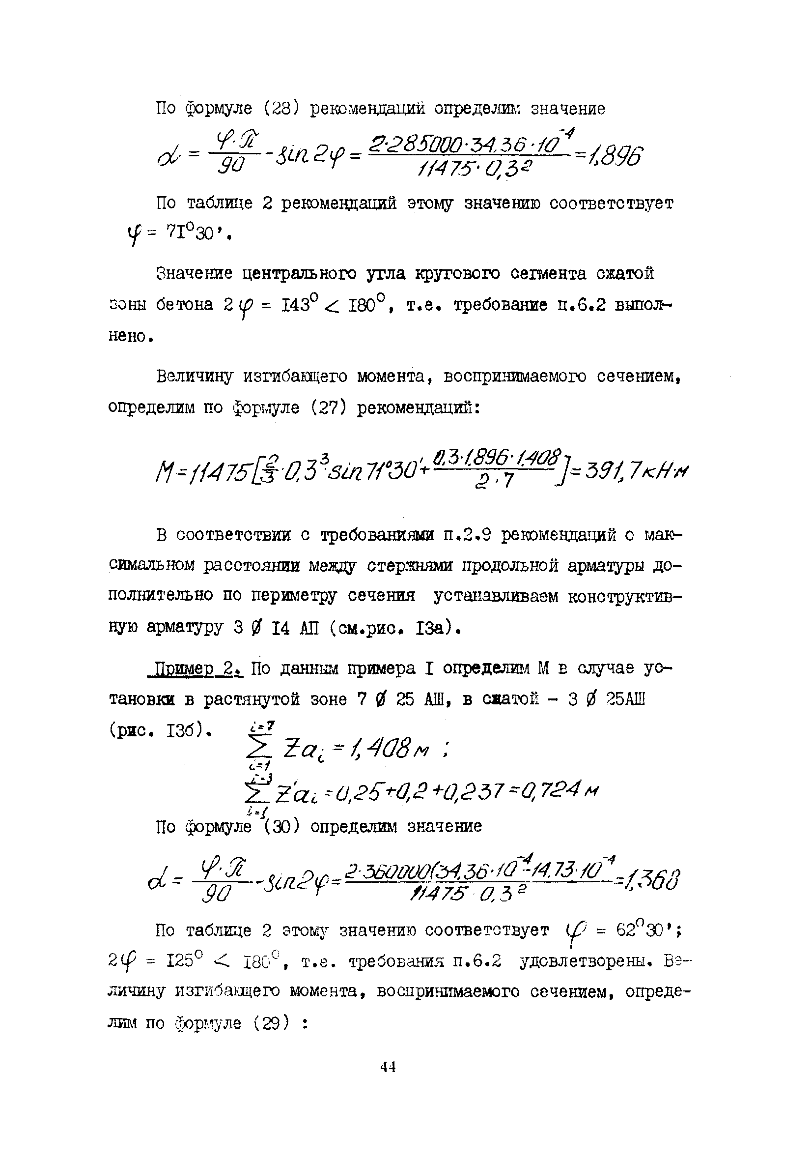 | Оглавление: | 1 Общие положения 2 Конструктивные требования 3 Общие положения расчета подпорных стен из буронабивных свай 4 Расчет подпорных стен из буронабивных свай на горизонтальные и моментные нагрузки 5 Определение коэффициента пропорциональности грунта по результатам статических испытаний свай на горизонтальную нагрузку 6 Расчет по прочности изгибаемых элементов круглого сечения, нормального к продольной оси Приложение 1. Пример расчета подпорных стен при однорядном расположении свай Приложение 2. Схема армирования свай подпорной стены при однорядном их расположении Приложение 3. Примеры расчета на прочность изгибаемых элементов круглого сечения с неравномерным расположением продольной арматуры в поперечном сечении Приложение 4. Графики изменения расчетных величин в зависимости от приведенной длины сваи Приложение 5. Графики изменения расчетных величин в зависимости от диаметра сваи Приложение 6. Пример расчета двухрядной подпорной стены из буронабивных свай Приложение 7. Графики изменения расчетных величин в зависимости от приведенной длины сваи Приложение 8. Графики изменения расчетных величин в зависимости от диаметра сваи Приложение 9. Графики изменения расчетных величин в зависимости от расстояния между рядами свай в осях Приложение 10. Пример статистической обработки результатов статических испытаний свай на горизонтальную нагрузку и определение коэффициента пропорциональности и допускаемого расчетного давления на грунт боковой поверхностью сваи |