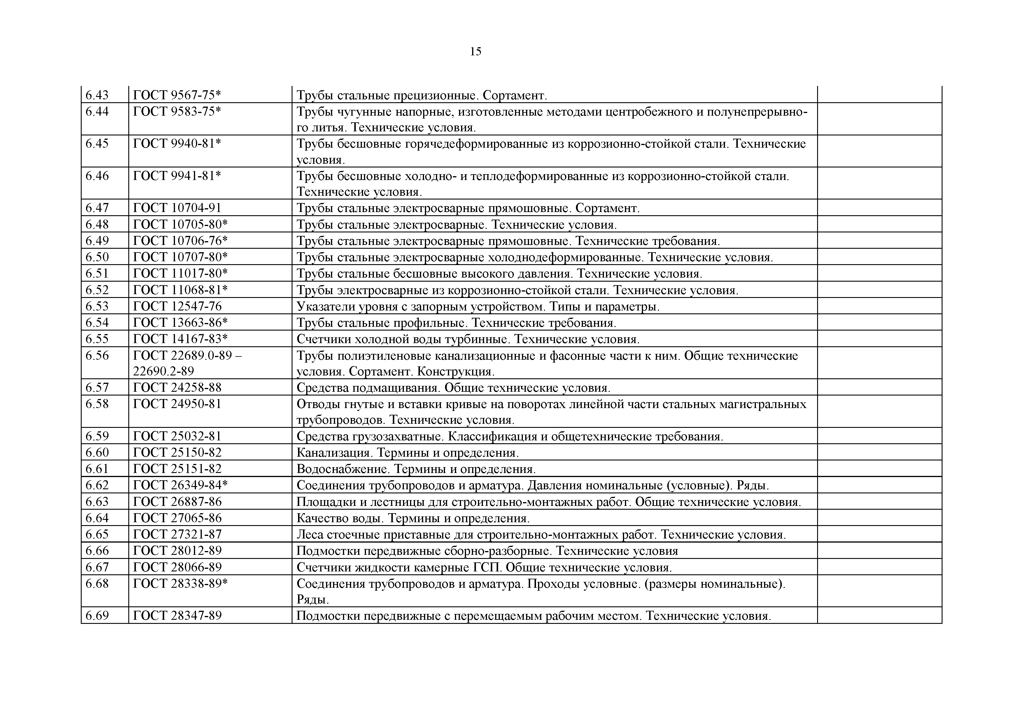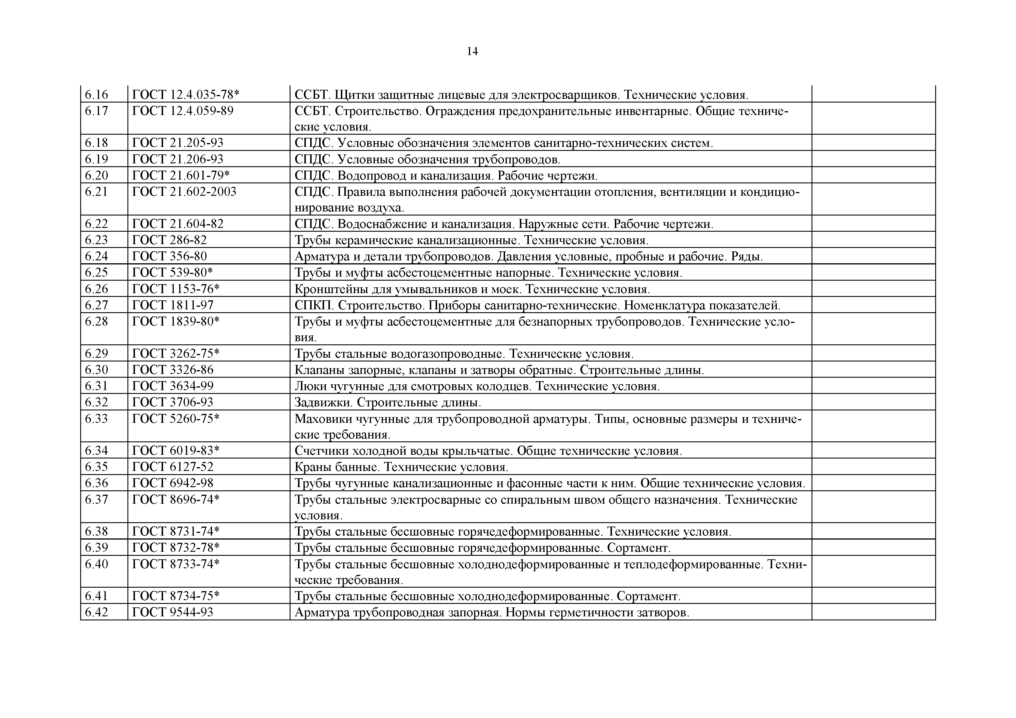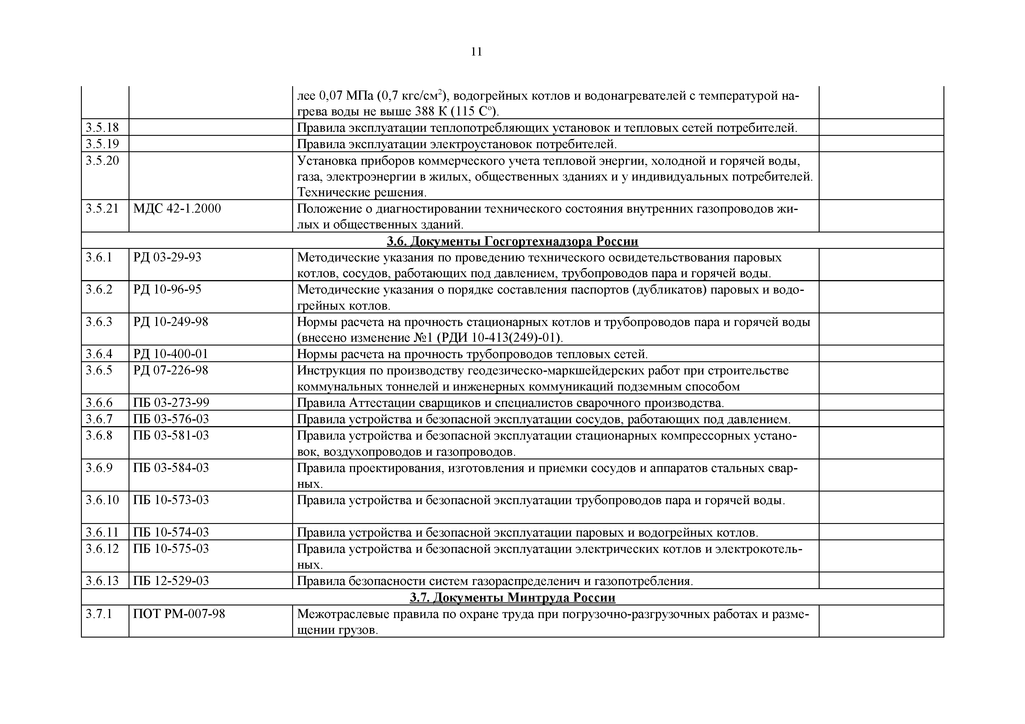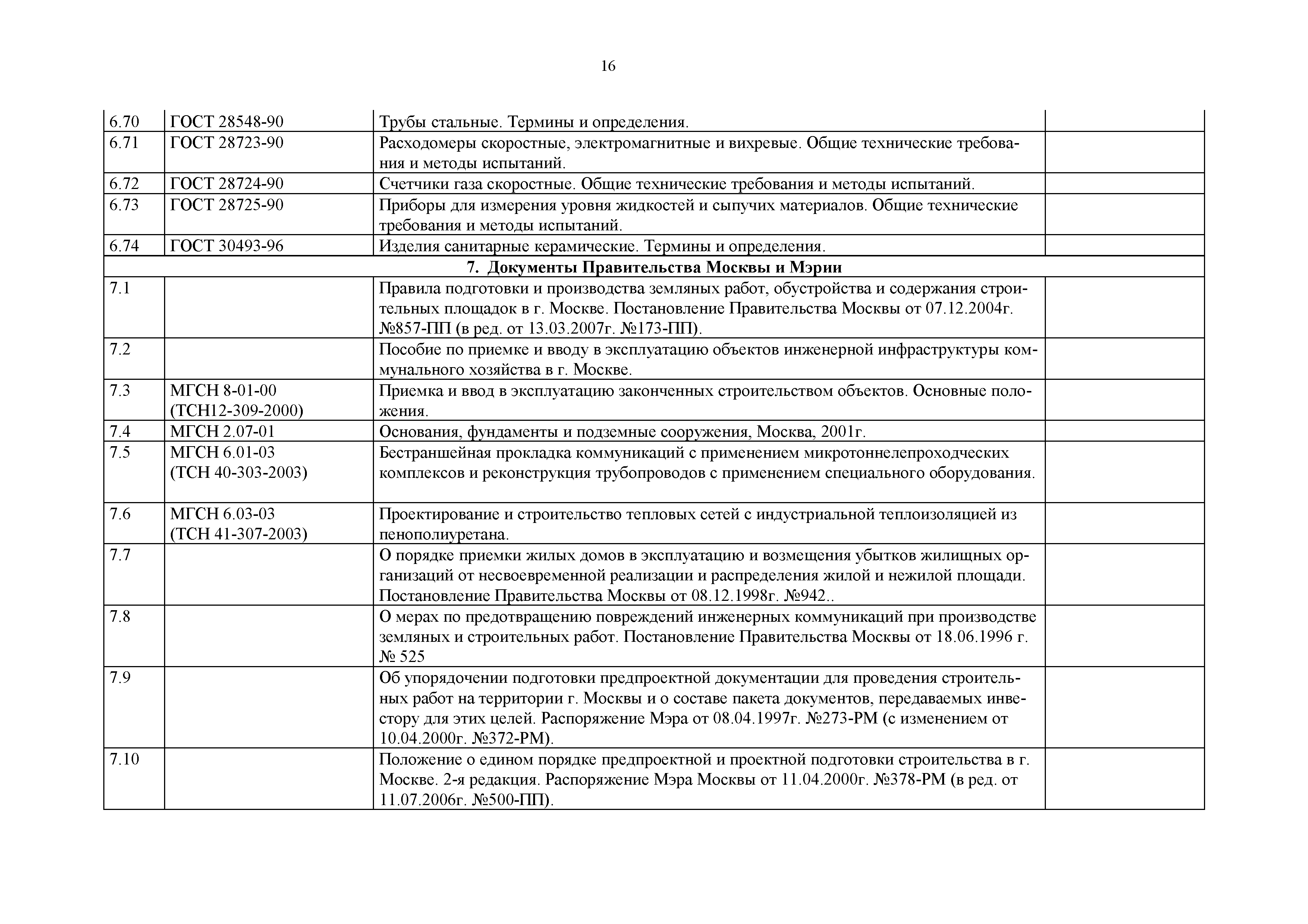 Примерный перечень законодательно-правовых, нормативных, справочно-методических и других документов, необходимых при проектировании, строительстве и эксплуатации инженерных сетей и систем| Статус: | действует | | Название рус.: | Примерный перечень законодательно-правовых, нормативных, справочно-методических и других документов, необходимых при проектировании, строительстве и эксплуатации инженерных сетей и систем | | Дата добавления в базу: | 01.09.2013 | | Дата актуализации: | 01.01.2021 | | Оглавление: | Общая часть 1. Законодательные, правовые акты РФ, регулирующие строительную деятельность 1.1 Законы Российской Федерации 1.2 Указы Президента Российской Федерации 1.3 Постановления Правительства Российской Федерации 2. Документы министерств и ведомств РФ, регулирующие строительную деятельность 2.1 Документы Госстроя России 2.2 Документы Минтопэнерго России 2.3 Документы Минздрава России 3. Нормативные и рекомендательные документы по вопросам строительства 3.1 Строительные нормы и правила - СНиП 3.2 Своды правил по проектированию и строительству - СП 3.3 Нормативные документы, утвержденные Госстроем СССР и Госстроем РСФСР -СН, РСН 3.4 Ведомственные строительные нормы - ВСН 3.5 Документы жилищно-коммунального комплекса 3.6 Документы Госгортехнадзора России 3.7 Документы Минтруда России 4. Сметы. Ценообразование. Экономика 5. Материальные и трудовые ресурсы 6. Государственные стандарты 7. Документы правительства Москвы и мэрии | | Разработан: | ОАО ПКТИпромстрой