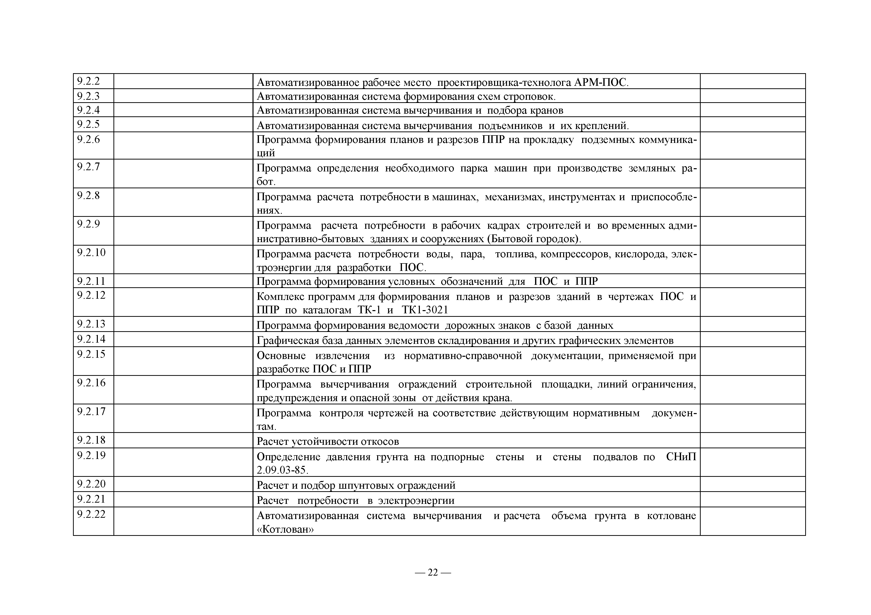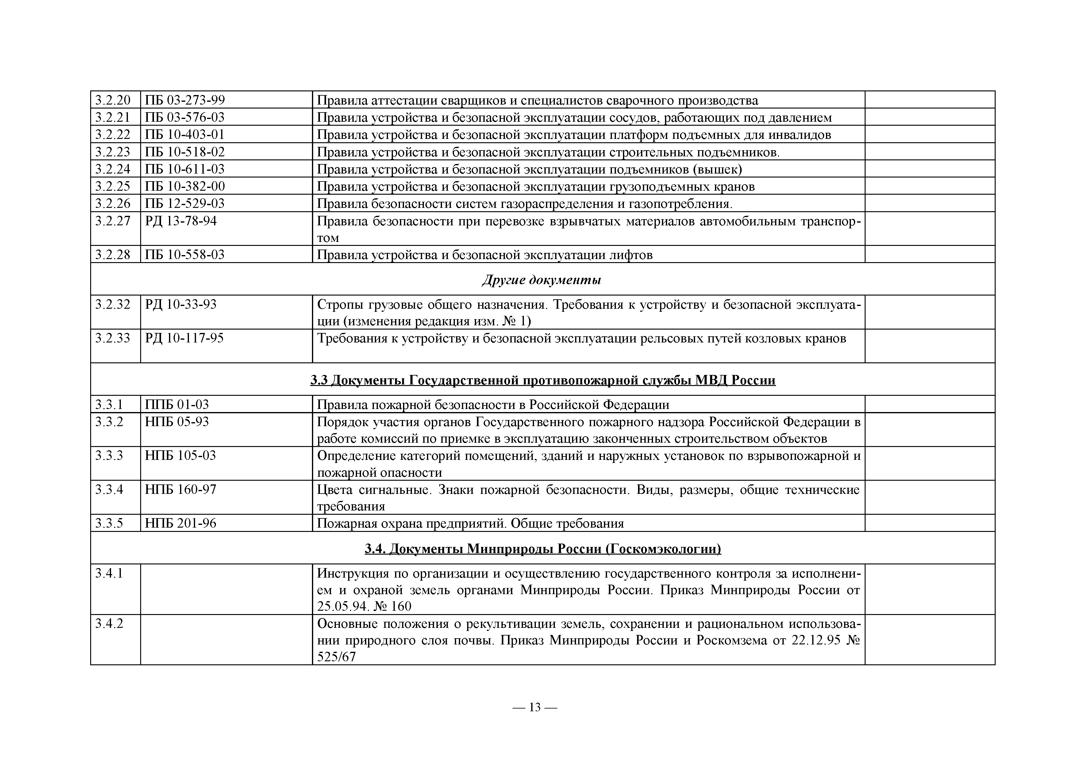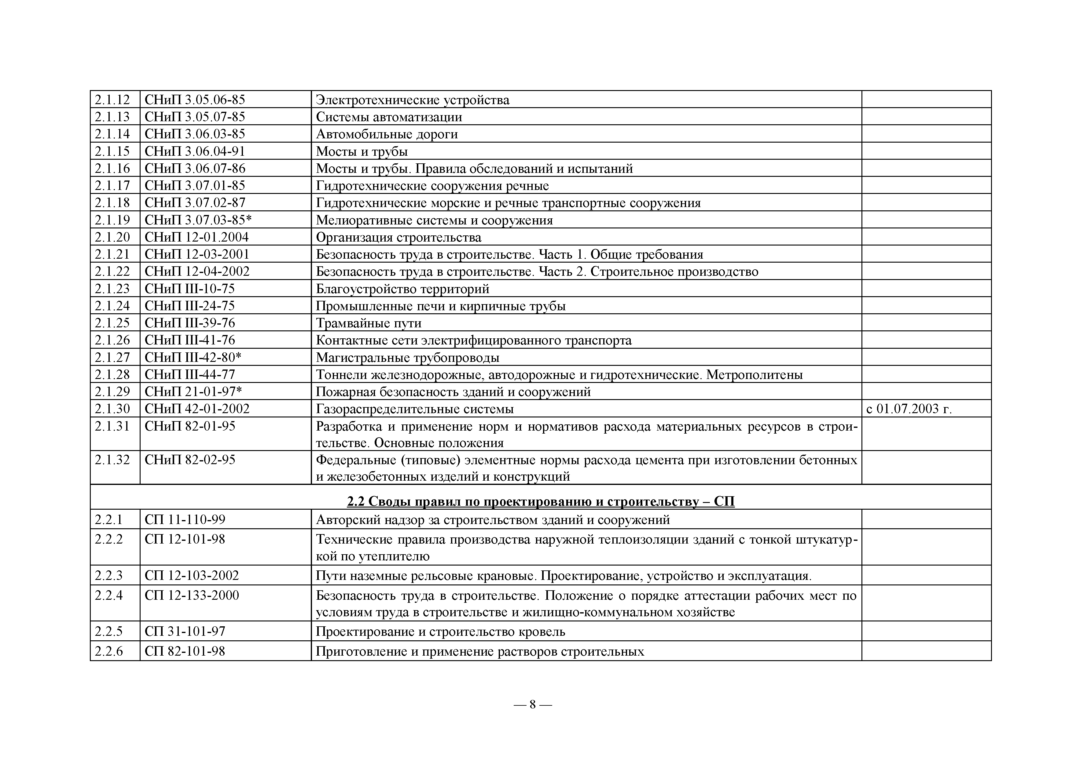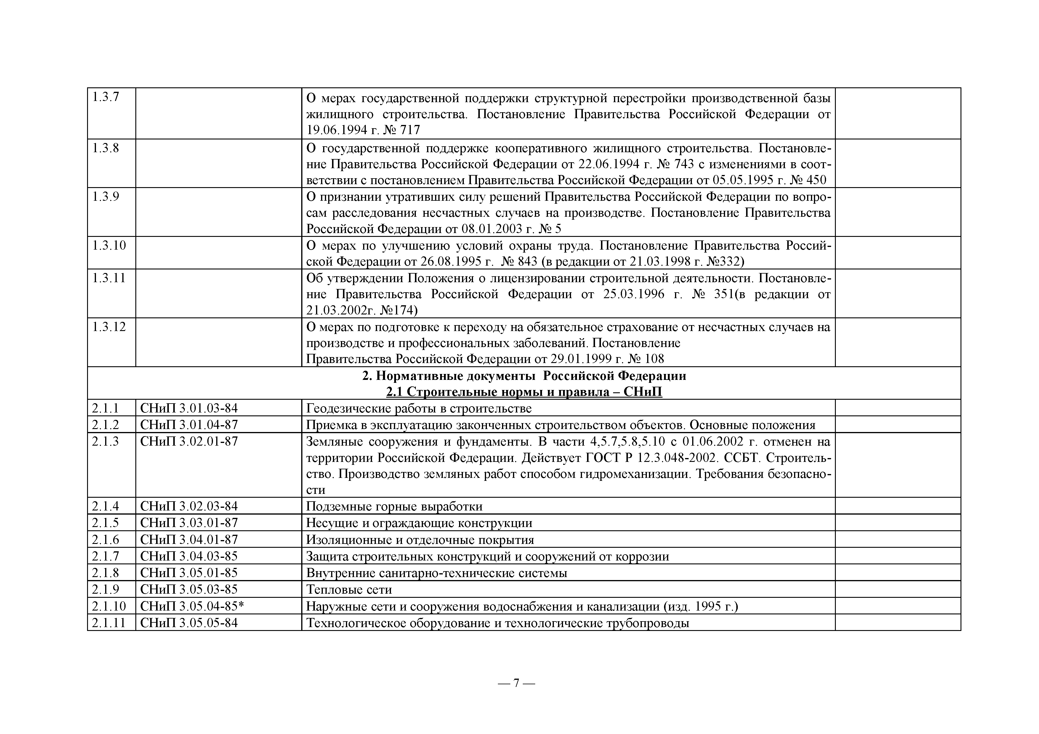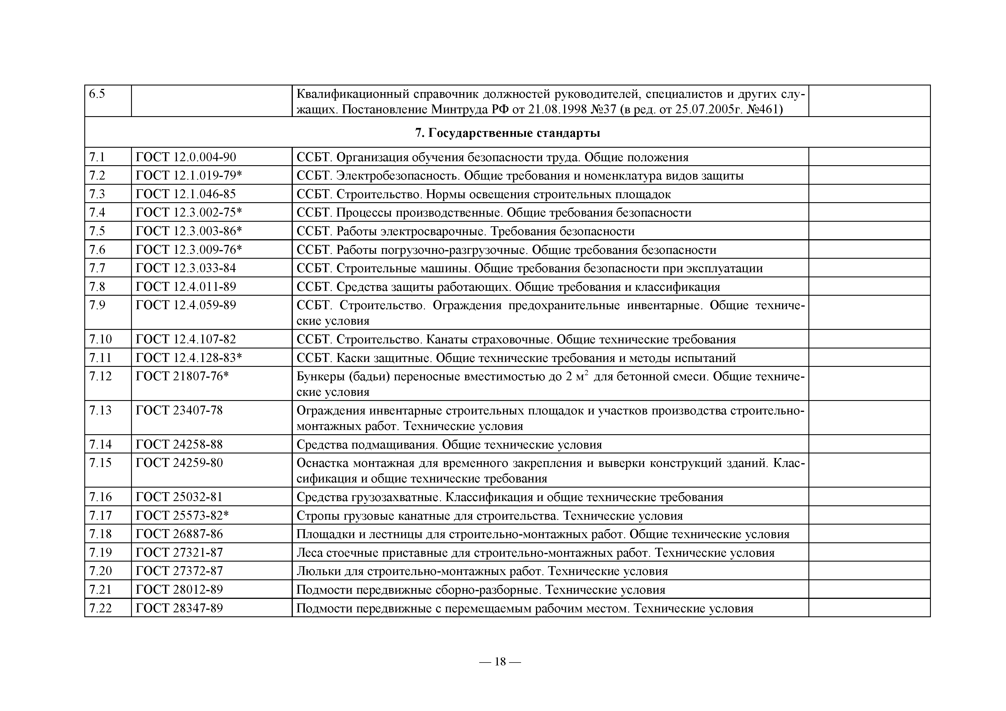 Примерный перечень законодательно-правовых, нормативных, справочно-методических и других документов, необходимых для выполнения функций Генерального подрядчика| Статус: | действует | | Название рус.: | Примерный перечень законодательно-правовых, нормативных, справочно-методических и других документов, необходимых для выполнения функций Генерального подрядчика | | Дата добавления в базу: | 01.09.2013 | | Дата актуализации: | 01.01.2021 | | Оглавление: | Общая часть 1. Законодательные, правовые акты РФ, регулирующие строительную деятельность 1.1 Законы Российской Федерации 1.2 Указы Президента Российской Федерации 1.3 Постановления Правительства Российской Федерации 2. Нормативные документы Российской Федерации 2.1 Строительные нормы и правила - СНиП 2.2 Своды правил по проектированию и строительству - СП 2.3 Руководящие документы системы - РДС 2.4 Территориальные строительные нормы - ТСН 2.5 Документы, утвержденные Госстроем СССР и Госстроем РСФСР -СН, РСН, ВСН 3. Документы органов государственного надзора 3.1 Документы Госстандарта России 3.2 Документы Госгортехнадзора России 3.3 Документы Государственной противопожарной службы 3.4 Документы Минприроды России (Госкомэкологии) 3.5 Документы по охране труда 4. Ведомственные нормативные и методические документы 4.1 Документы по строительному проектированию - ВСН, ВНП, СТО, РД 4.2 Методические документы Госстроя России 5. Сметы. Ценообразование. Экономика 6. Материальные и трудовые ресурсы 7. Государственные стандарты 8. Документы Правительства Москвы и мэрии 9. Документы ОАО ПКТИпромстрой 9.1 Программы для управления строительством 9.2 Программы для разработки проектов производства работ и проектов организаций строительства 9.3 Программы для автоматизации архитектурно-строительного проектирования 9.4 Автоматизация задач управления производством | | Разработан: | ОАО ПКТИпромстрой