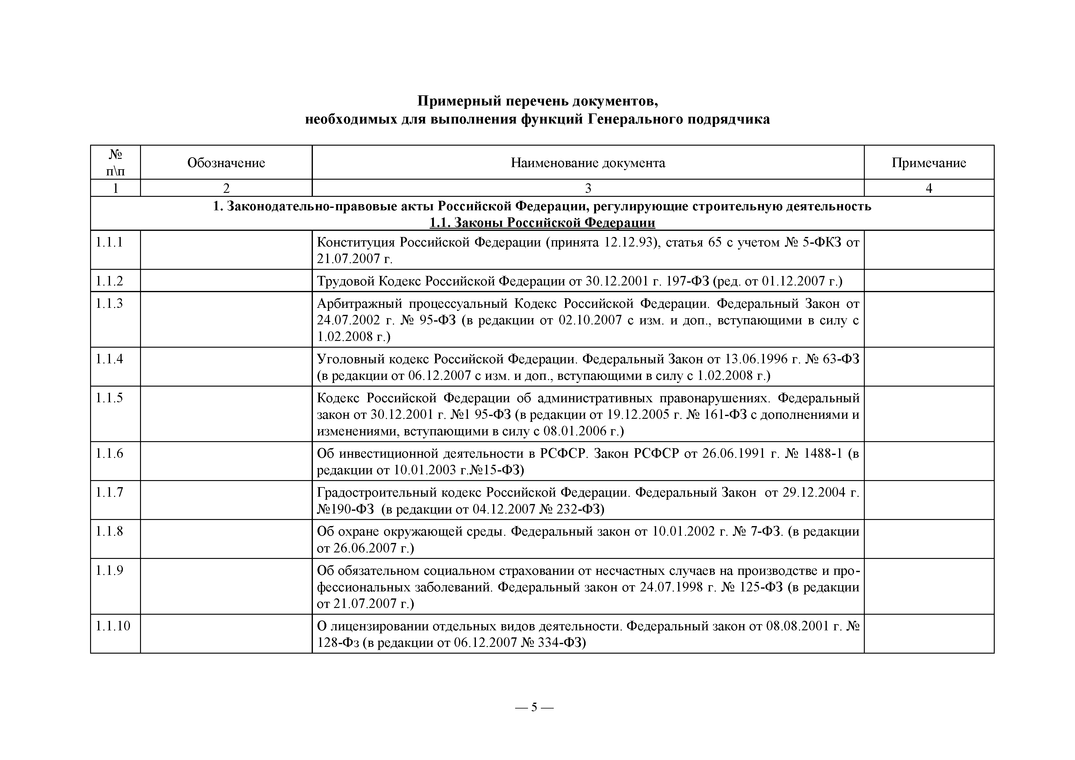 Скачать Примерный перечень законодательно-правовых, нормативных, справочно-методических и других документов, необходимых для выполнения функций Генерального подрядчикаДата актуализации: 01.01.2021