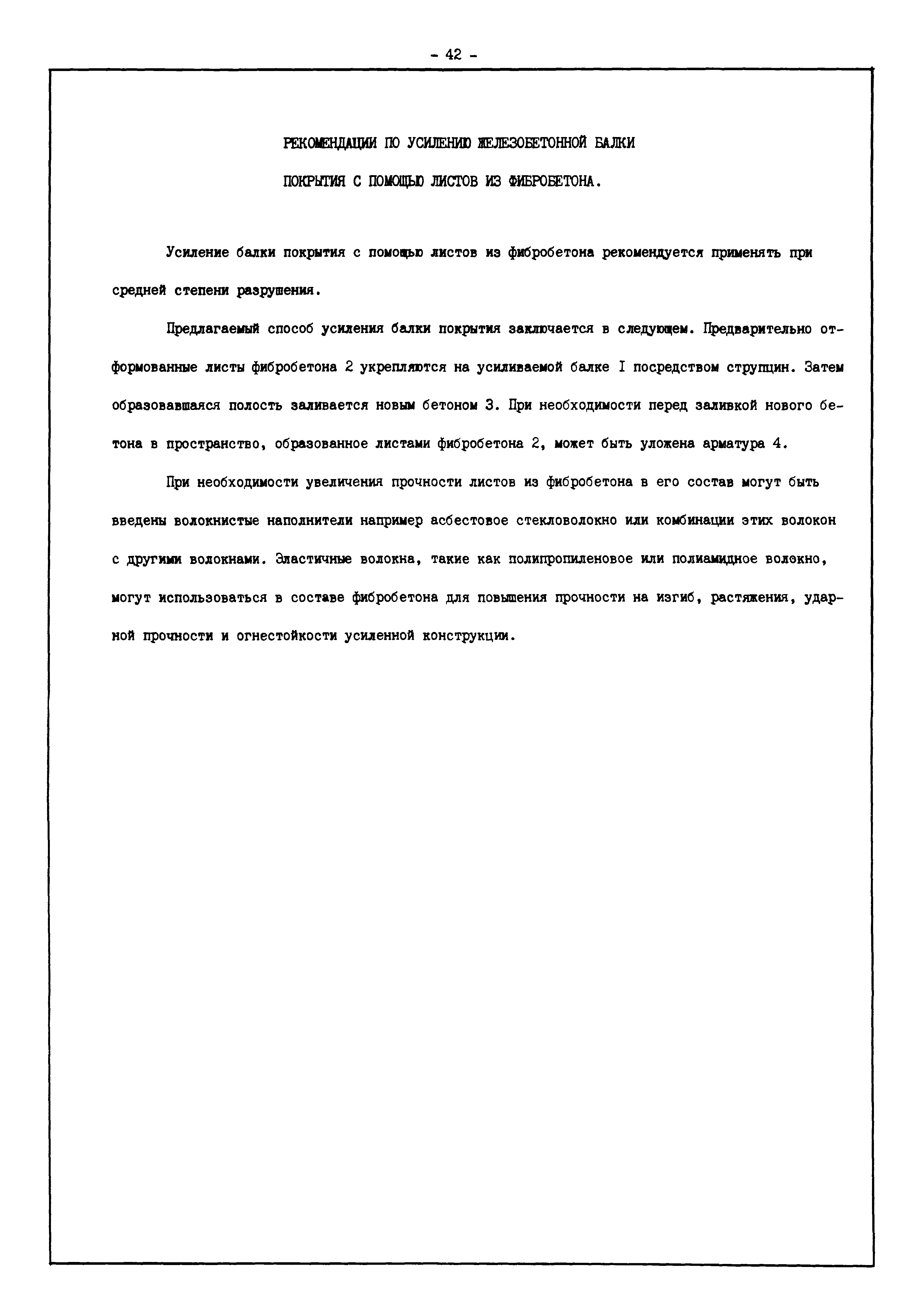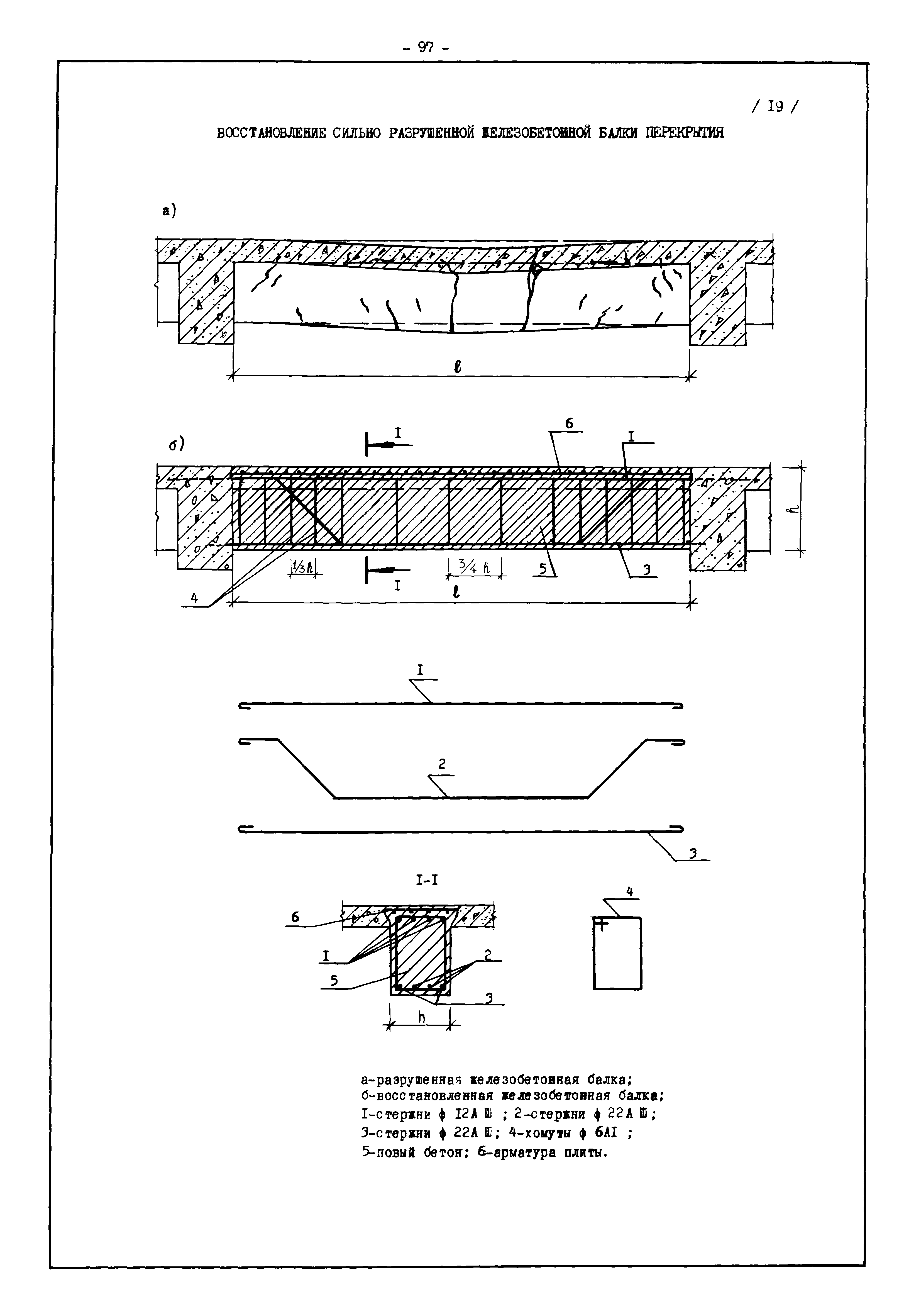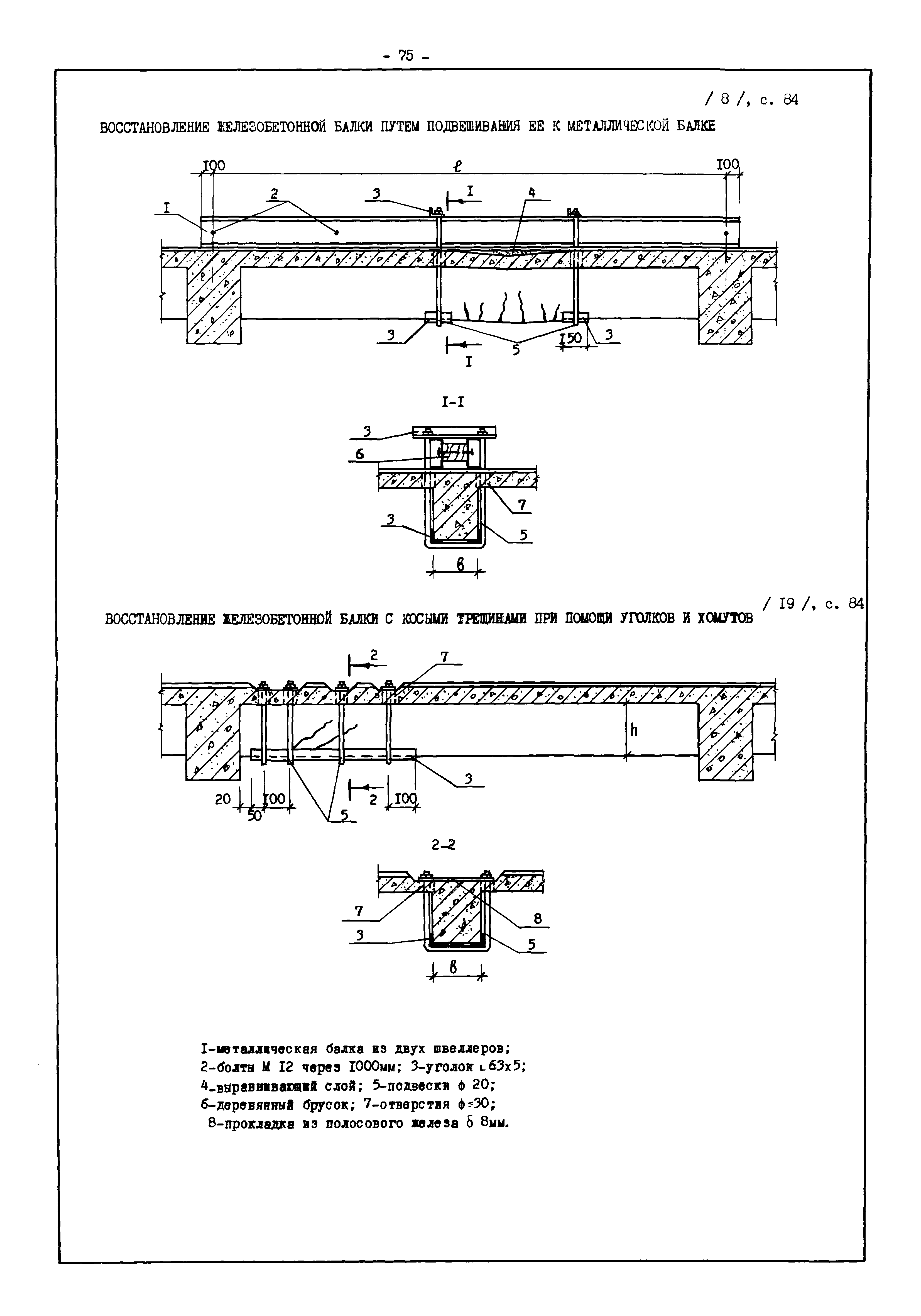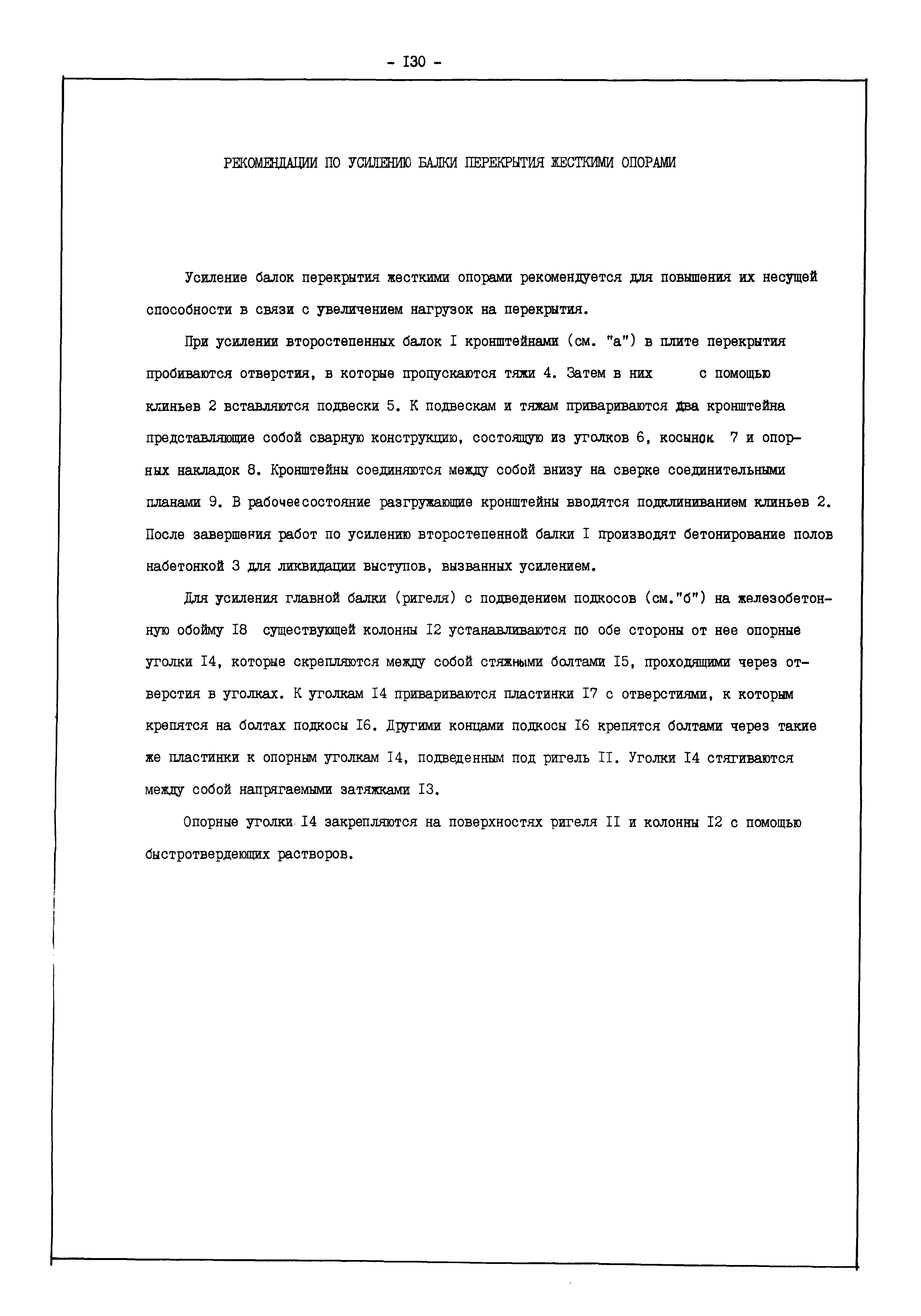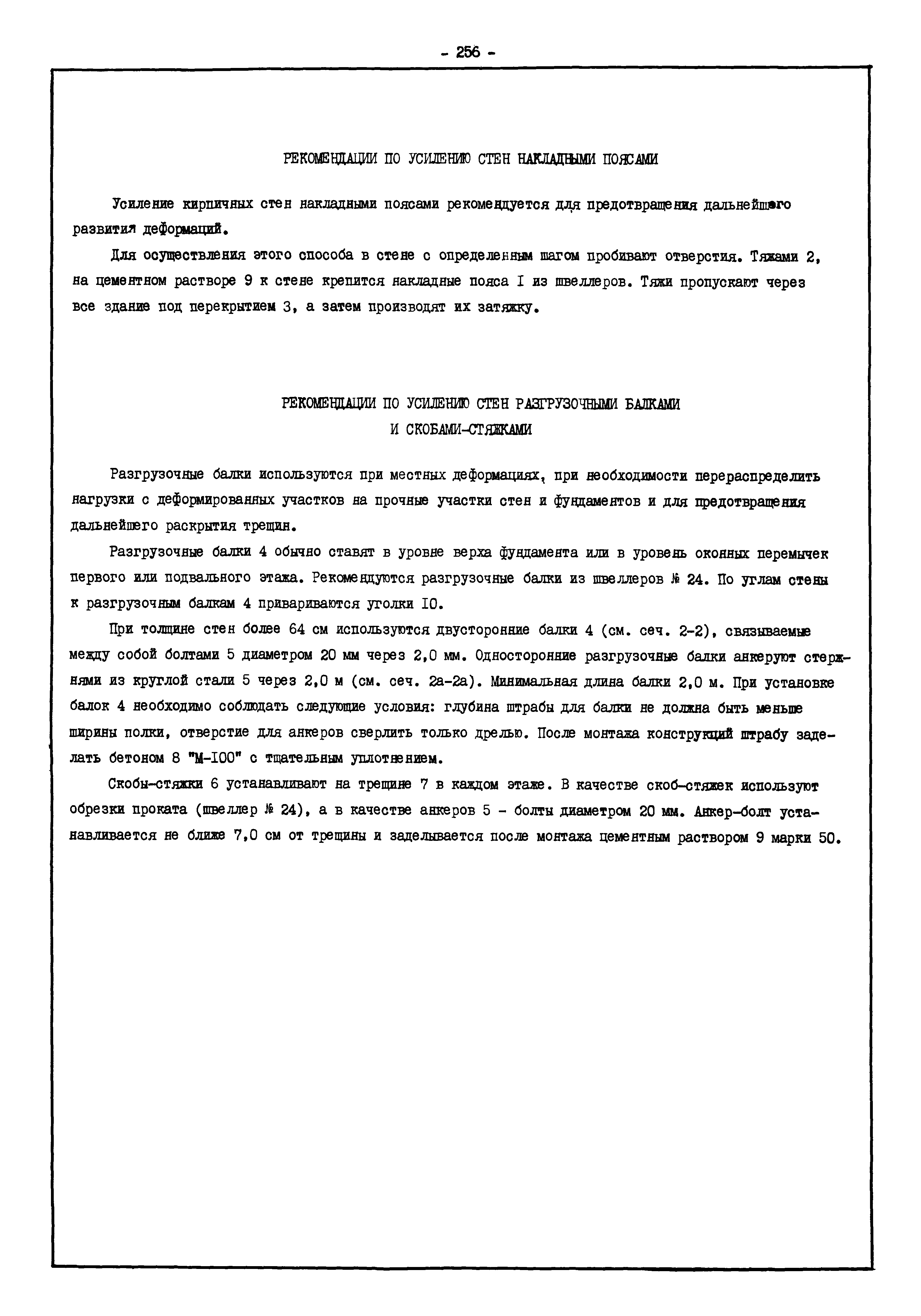 | Оглавление: | Введение I. Усиление и восстановление железобетонных конструкций Основные положения по усилению конструкций Оценка несущей способности железобетонных конструкций Основные положения по расчету и конструированию усилений Основные материалы для усиления и восстановления существующих железобетонных конструкций и требования к ним Требования к материалам для приготовления быстротвердеющих ремонтных составов Составы бетонов и растворов, предназначенных для усиления и восстановления строительных конструкций Усиление ребристых плит покрытия наращиванием Усиление ребристых плит покрытия при повреждении ребер Усиление сборной железобетонной плиты покрытия металлической балкой с подклинкой Усиление плит покрытия с помощью листов из волнистой стали Восстановление опирания ребристых плит покрытия на опоры Усиление продольных ребер плит покрытия Усиление сборных балок покрытия наращиванием сверху Усиление стропильных балок наращиванием снизу Усиление балок покрытия обоймой и дополнительными хомутами Усиление сжатой зоны стропильной балки обоймами Усиление железобетонной балки покрытия с помощью листов из фибробетона Усиление сборной балки покрытия шарнирно-стержневой цепью Усиление сборной балки покрытия шпренгелем Усиление железобетонной балки покрытия с помощью двухветьевой шпренгельной затяжки (а.с. СССР N 922257) Усиление стропильных балок подпружными системами Усиление опорных участков балок покрытия хомутами Усиление балок покрытия двухконсольной балочной системой Усиление верхнего пояса фермы Усиление нижнего пояса фермы Усиление стойки фермы Усиление раскоса и стойки фермы Усиление ребер сборных плит перекрытия с помощью дополнительной арматуры Усиление сборных плит перекрытия при помощи наклонных хомутов Усиление приопорных участков многопустотных плит перекрытий Усиление сборной многопустотной плиты перекрытия замоноличиванием каналов пустот Усиление сборной железобетонной плиты перекрытия с помощью изогнутого вниз стального листа (патент Японии N 56-54428) Восстановление ригеля перекрытия созданием обратного конструктивного выгиба с помощью домкрата (а.с. 1352023) Восстановление ригеля перекрытия созданием обратного конструктивного выгиба без домкрата (а.с. 1352023) Восстановление железобетонной балки путем подвешивания ее к металлической балке Восстановление плит перекрытия, получивших пробоины, с применением стали и бетона Восстановление безбалочного перекрытия, получившего пробоину величиной более 1 метра, деревянным щитом, не выступающим над полом Восстановление плит перекрытий, получивших пробоину величиной менее 1 метра, деревянным щитом, выступающим над полом Восстановление плит перекрытий, получивших пробоину менее 1 метра, деревянным щитом, не выступающим над полом Восстановление монолитных перекрытий, получивших пробоину величиной более 1 метра, деревянным щитом, не выступающим над полом Усиление монолитных плит перекрытия односторонним наращиванием Усиление железобетонной балки монолитного перекрытия наращиванием с помощью хомутов Усиление монолитной плиты перекрытия наращиванием с устройством железобетонных шпонок Восстановление железобетонных балок монолитного перекрытия при отколе Восстановление железбетонной балки монолитного перекрыти