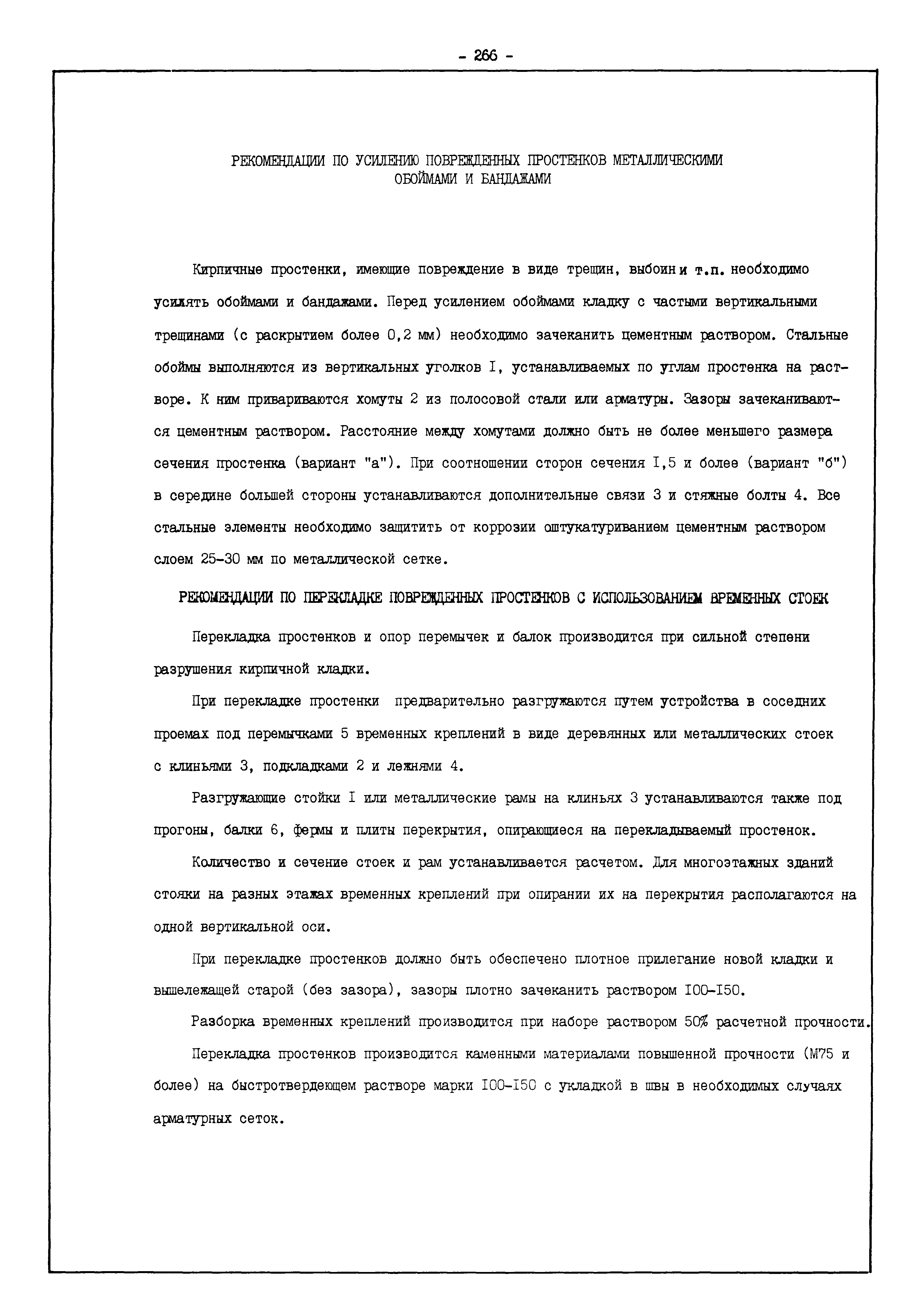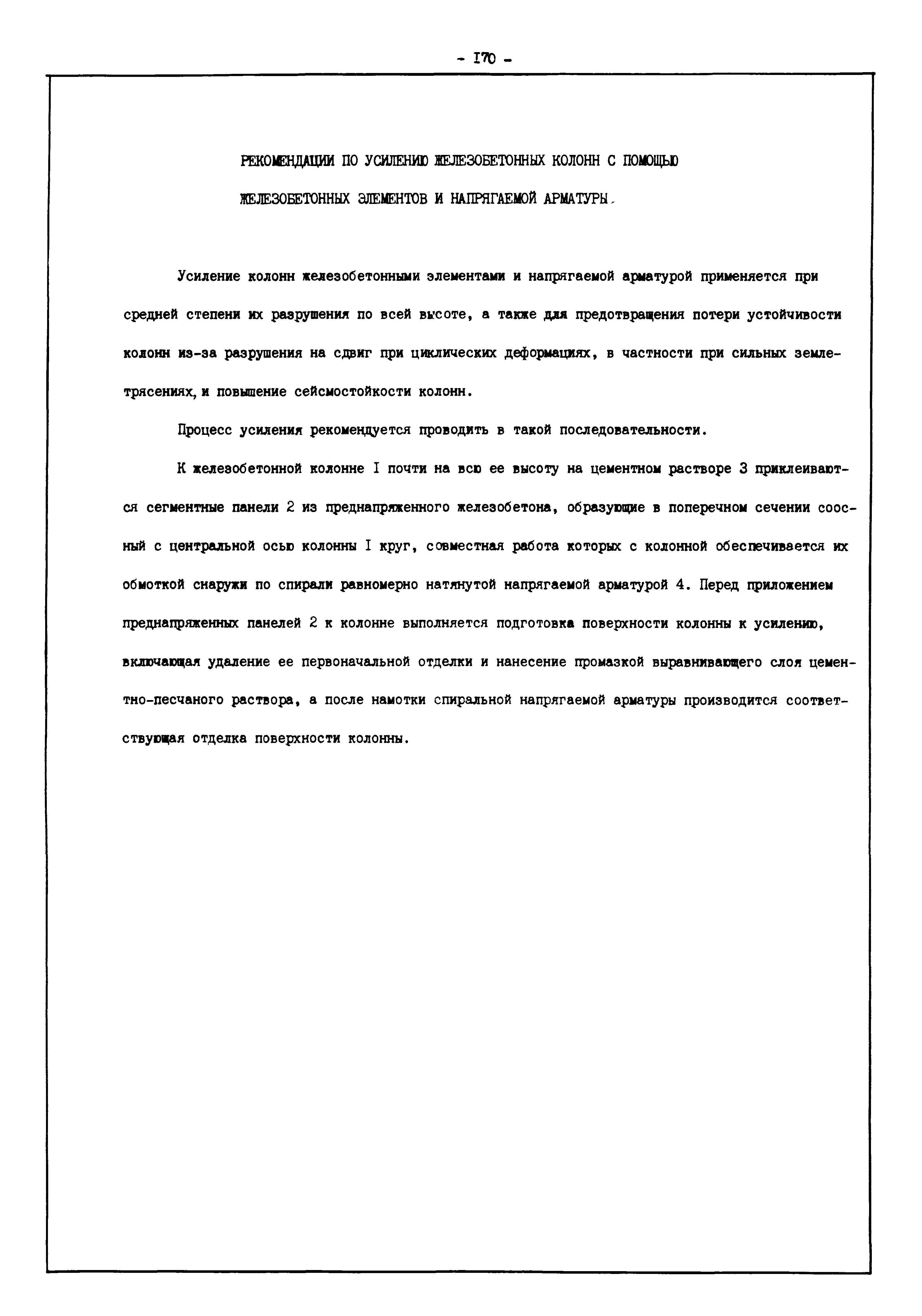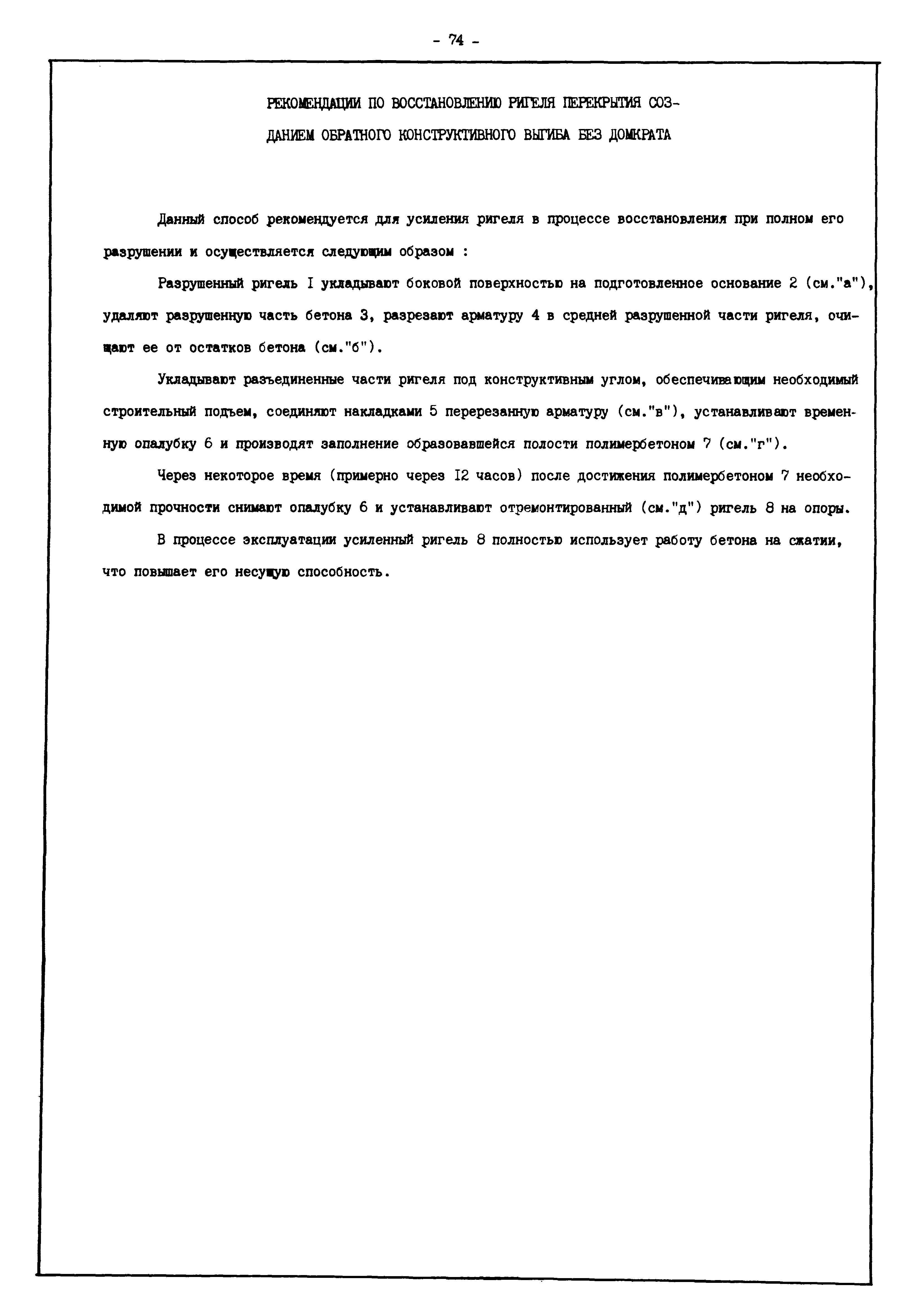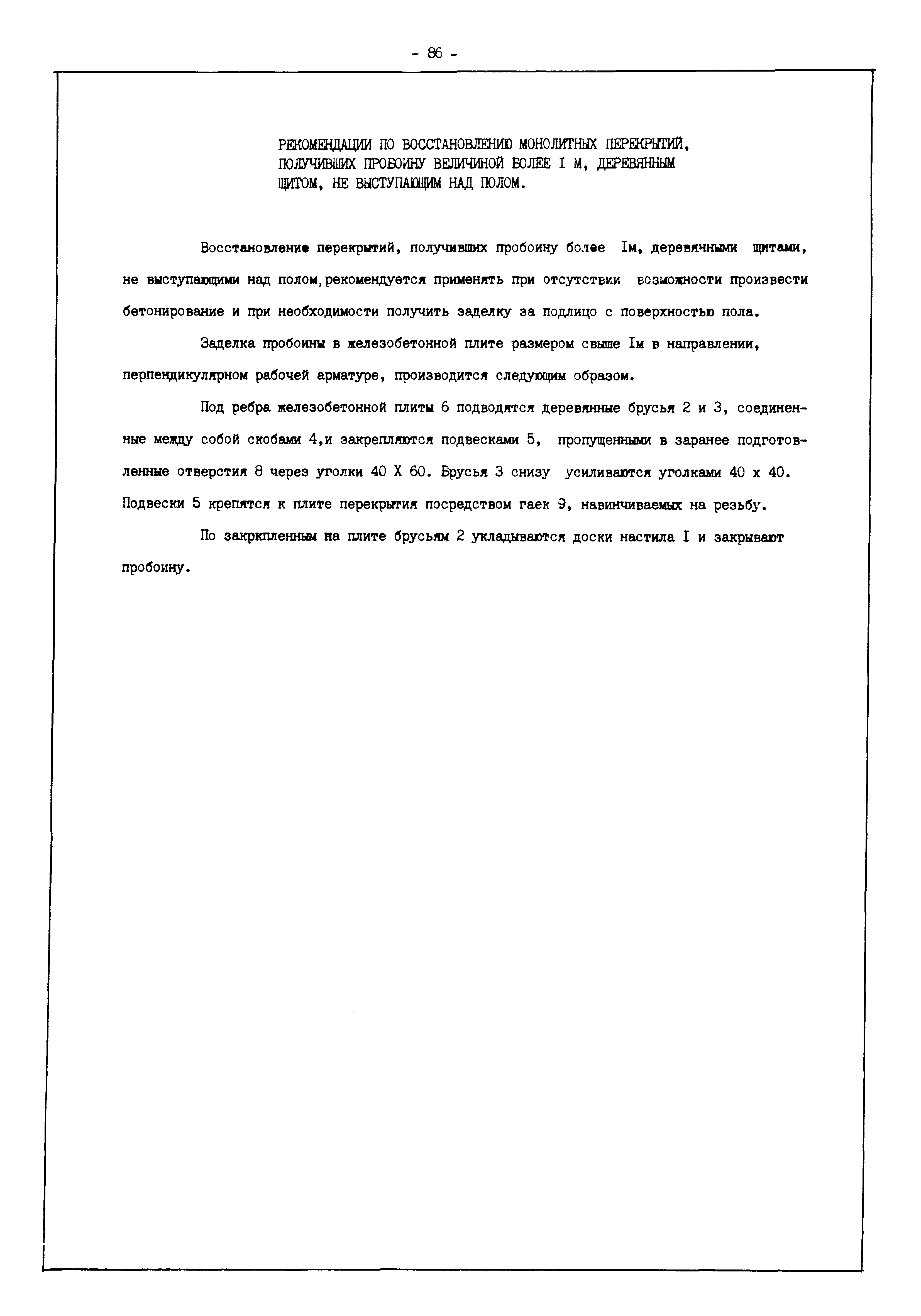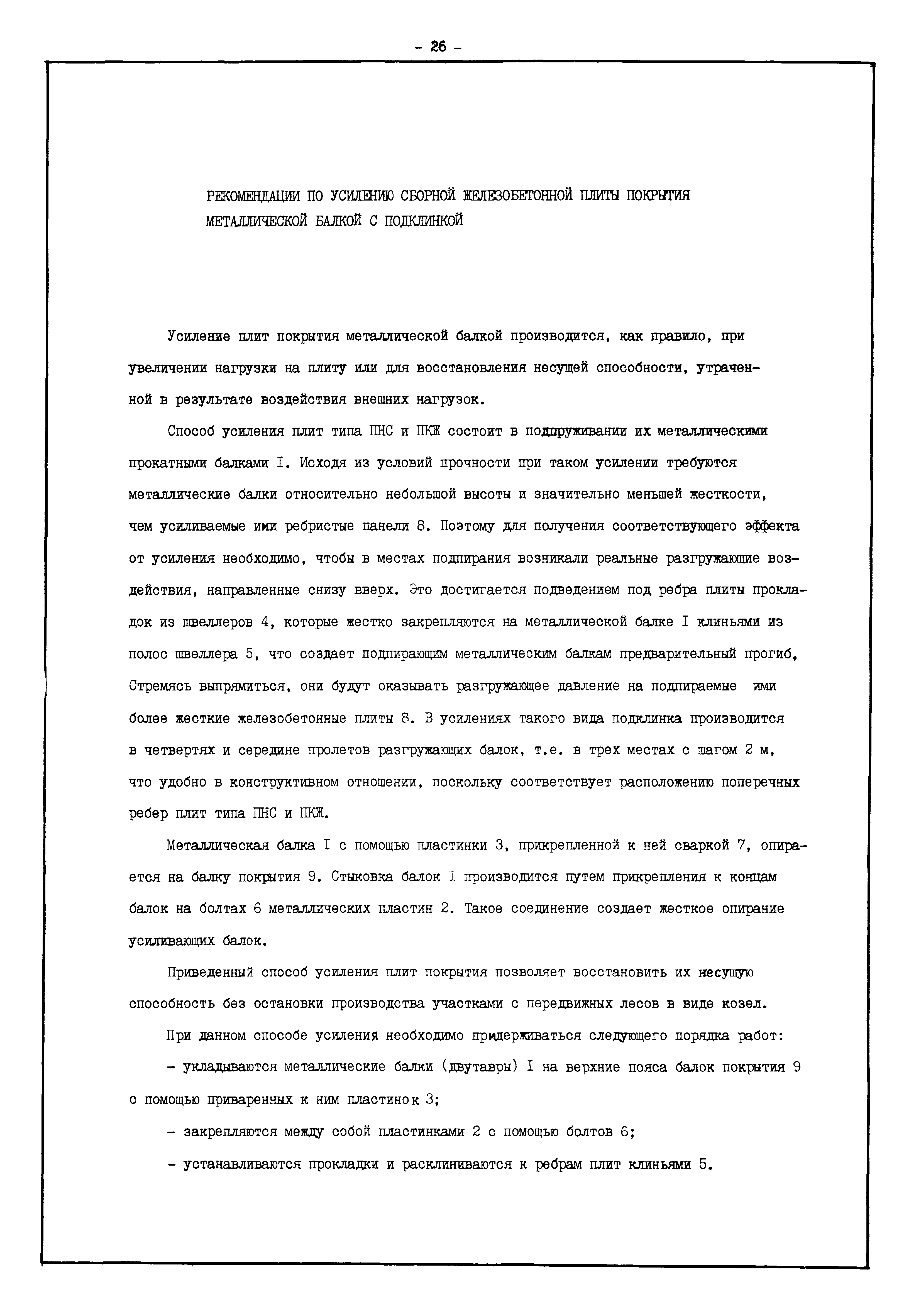 | Оглавление: | Введение I. Усиление и восстановление железобетонных конструкций Основные положения по усилению конструкций Оценка несущей способности железобетонных конструкций Основные положения по расчету и конструированию усилений Основные материалы для усиления и восстановления существующих железобетонных конструкций и требования к ним Требования к материалам для приготовления быстротвердеющих ремонтных составов Составы бетонов и растворов, предназначенных для усиления и восстановления строительных конструкций Усиление ребристых плит покрытия наращиванием Усиление ребристых плит покрытия при повреждении ребер Усиление сборной железобетонной плиты покрытия металлической балкой с подклинкой Усиление плит покрытия с помощью листов из волнистой стали Восстановление опирания ребристых плит покрытия на опоры Усиление продольных ребер плит покрытия Усиление сборных балок покрытия наращиванием сверху Усиление стропильных балок наращиванием снизу Усиление балок покрытия обоймой и дополнительными хомутами Усиление сжатой зоны стропильной балки обоймами Усиление железобетонной балки покрытия с помощью листов из фибробетона Усиление сборной балки покрытия шарнирно-стержневой цепью Усиление сборной балки покрытия шпренгелем Усиление железобетонной балки покрытия с помощью двухветьевой шпренгельной затяжки (а.с. СССР N 922257) Усиление стропильных балок подпружными системами Усиление опорных участков балок покрытия хомутами Усиление балок покрытия двухконсольной балочной системой Усиление верхнего пояса фермы Усиление нижнего пояса фермы Усиление стойки фермы Усиление раскоса и стойки фермы Усиление ребер сборных плит перекрытия с помощью дополнительной арматуры Усиление сборных плит перекрытия при помощи наклонных хомутов Усиление приопорных участков многопустотных плит перекрытий Усиление сборной многопустотной плиты перекрытия замоноличиванием каналов пустот Усиление сборной железобетонной плиты перекрытия с помощью изогнутого вниз стального листа (патент Японии N 56-54428) Восстановление ригеля перекрытия созданием обратного конструктивного выгиба с помощью домкрата (а.с. 1352023) Восстановление ригеля перекрытия созданием обратного конструктивного выгиба без домкрата (а.с. 1352023) Восстановление железобетонной балки путем подвешивания ее к металлической балке Восстановление плит перекрытия, получивших пробоины, с применением стали и бетона Восстановление безбалочного перекрытия, получившего пробоину величиной более 1 метра, деревянным щитом, не выступающим над полом Восстановление плит перекрытий, получивших пробоину величиной менее 1 метра, деревянным щитом, выступающим над полом Восстановление плит перекрытий, получивших пробоину менее 1 метра, деревянным щитом, не выступающим над полом Восстановление монолитных перекрытий, получивших пробоину величиной более 1 метра, деревянным щитом, не выступающим над полом Усиление монолитных плит перекрытия односторонним наращиванием Усиление железобетонной балки монолитного перекрытия наращиванием с помощью хомутов Усиление монолитной плиты перекрытия наращиванием с устройством железобетонных шпонок Восстановление железобетонных балок монолитного перекрытия при отколе Восстановление железбетонной балки монолитного перекрыти