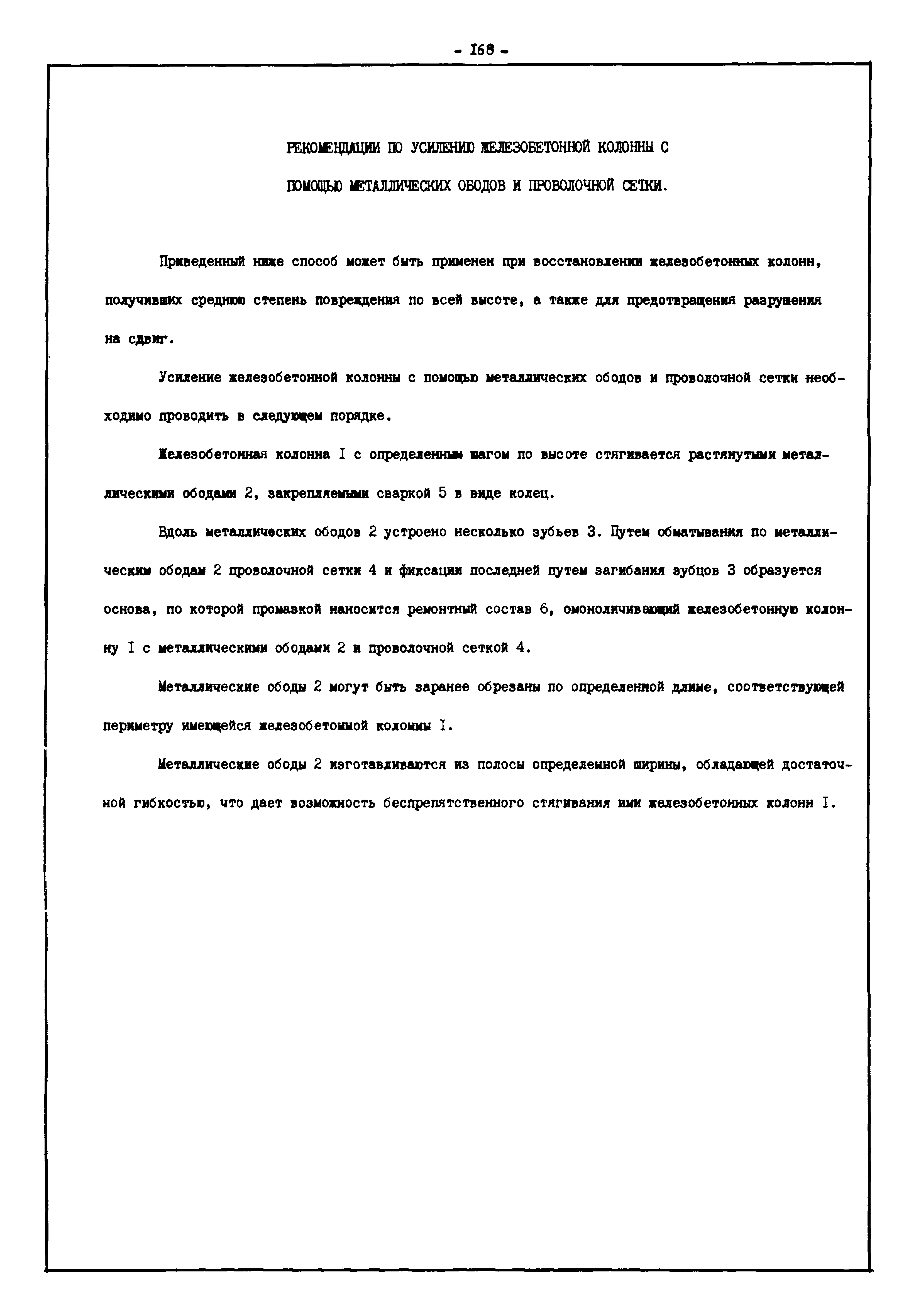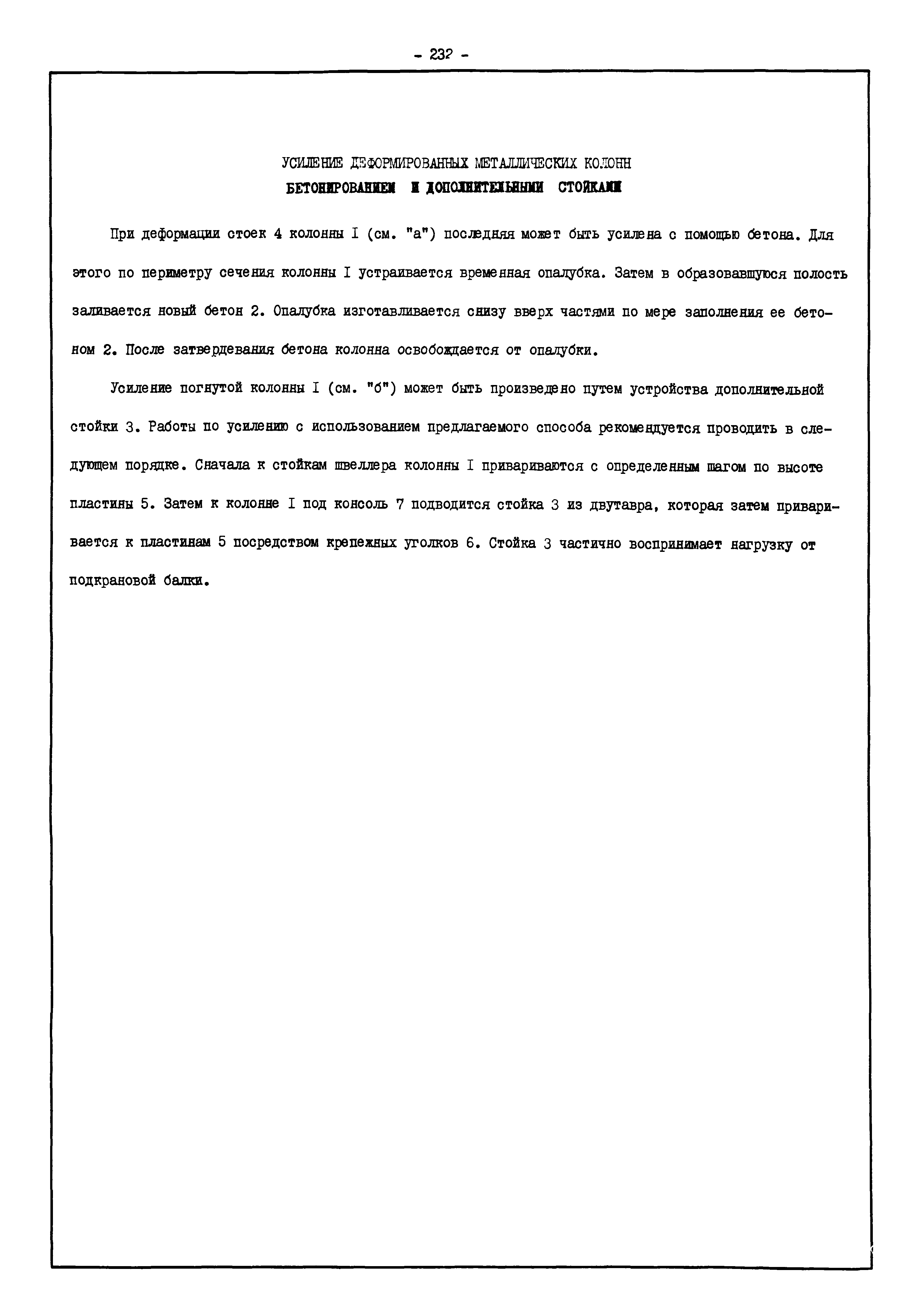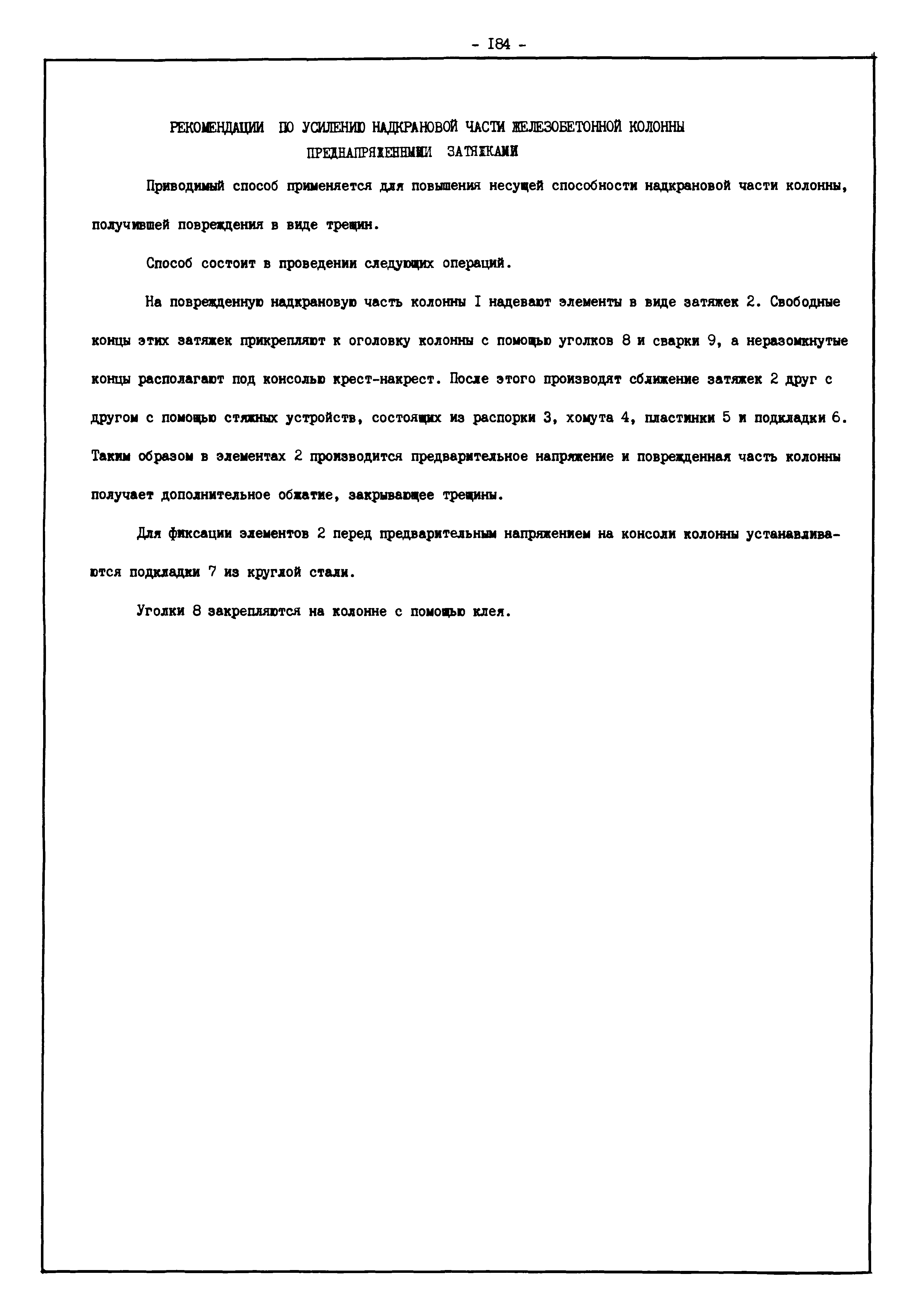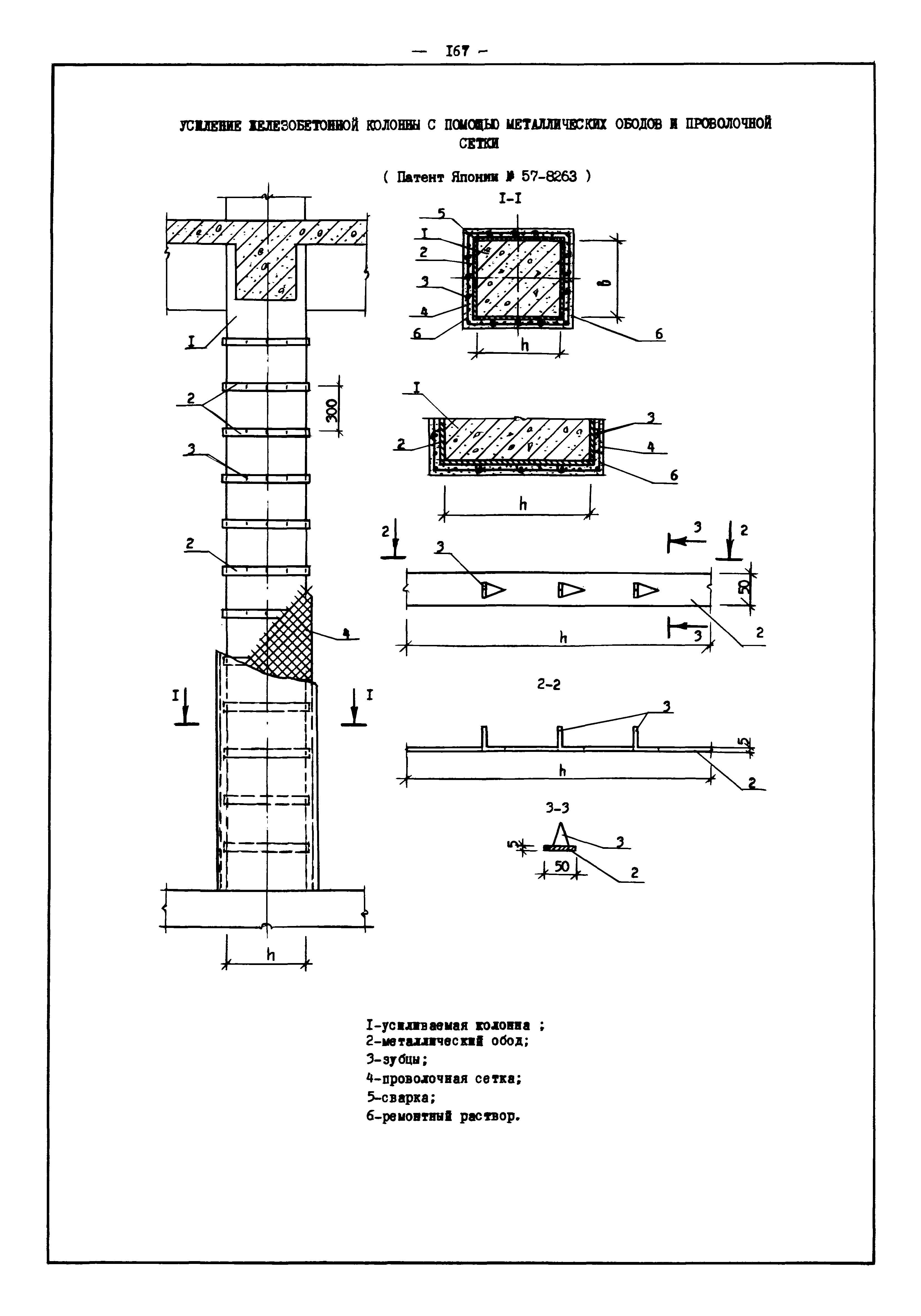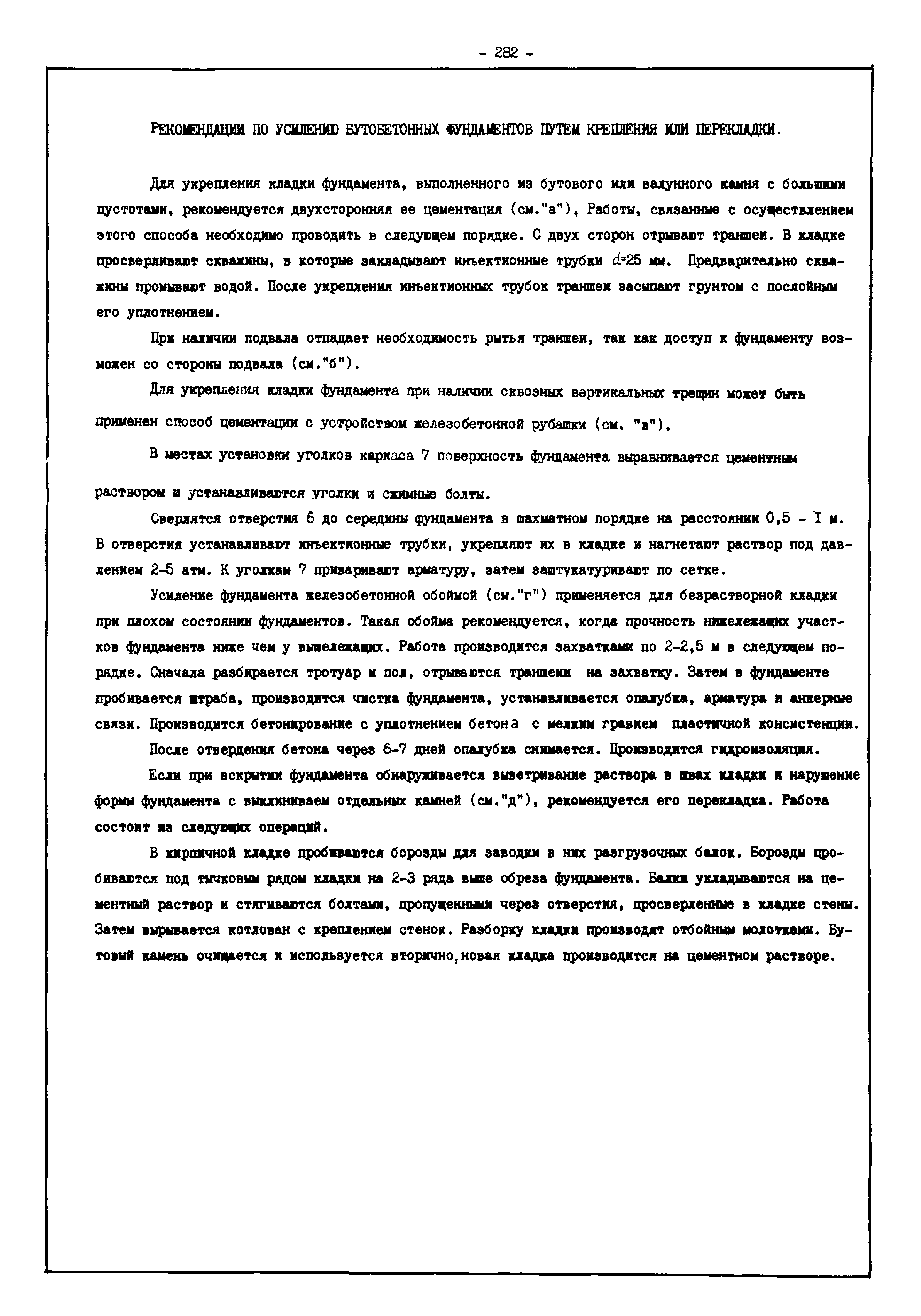 | Оглавление: | Введение I. Усиление и восстановление железобетонных конструкций Основные положения по усилению конструкций Оценка несущей способности железобетонных конструкций Основные положения по расчету и конструированию усилений Основные материалы для усиления и восстановления существующих железобетонных конструкций и требования к ним Требования к материалам для приготовления быстротвердеющих ремонтных составов Составы бетонов и растворов, предназначенных для усиления и восстановления строительных конструкций Усиление ребристых плит покрытия наращиванием Усиление ребристых плит покрытия при повреждении ребер Усиление сборной железобетонной плиты покрытия металлической балкой с подклинкой Усиление плит покрытия с помощью листов из волнистой стали Восстановление опирания ребристых плит покрытия на опоры Усиление продольных ребер плит покрытия Усиление сборных балок покрытия наращиванием сверху Усиление стропильных балок наращиванием снизу Усиление балок покрытия обоймой и дополнительными хомутами Усиление сжатой зоны стропильной балки обоймами Усиление железобетонной балки покрытия с помощью листов из фибробетона Усиление сборной балки покрытия шарнирно-стержневой цепью Усиление сборной балки покрытия шпренгелем Усиление железобетонной балки покрытия с помощью двухветьевой шпренгельной затяжки (а.с. СССР N 922257) Усиление стропильных балок подпружными системами Усиление опорных участков балок покрытия хомутами Усиление балок покрытия двухконсольной балочной системой Усиление верхнего пояса фермы Усиление нижнего пояса фермы Усиление стойки фермы Усиление раскоса и стойки фермы Усиление ребер сборных плит перекрытия с помощью дополнительной арматуры Усиление сборных плит перекрытия при помощи наклонных хомутов Усиление приопорных участков многопустотных плит перекрытий Усиление сборной многопустотной плиты перекрытия замоноличиванием каналов пустот Усиление сборной железобетонной плиты перекрытия с помощью изогнутого вниз стального листа (патент Японии N 56-54428) Восстановление ригеля перекрытия созданием обратного конструктивного выгиба с помощью домкрата (а.с. 1352023) Восстановление ригеля перекрытия созданием обратного конструктивного выгиба без домкрата (а.с. 1352023) Восстановление железобетонной балки путем подвешивания ее к металлической балке Восстановление плит перекрытия, получивших пробоины, с применением стали и бетона Восстановление безбалочного перекрытия, получившего пробоину величиной более 1 метра, деревянным щитом, не выступающим над полом Восстановление плит перекрытий, получивших пробоину величиной менее 1 метра, деревянным щитом, выступающим над полом Восстановление плит перекрытий, получивших пробоину менее 1 метра, деревянным щитом, не выступающим над полом Восстановление монолитных перекрытий, получивших пробоину величиной более 1 метра, деревянным щитом, не выступающим над полом Усиление монолитных плит перекрытия односторонним наращиванием Усиление железобетонной балки монолитного перекрытия наращиванием с помощью хомутов Усиление монолитной плиты перекрытия наращиванием с устройством железобетонных шпонок Восстановление железобетонных балок монолитного перекрытия при отколе Восстановление железбетонной балки монолитного перекрыти