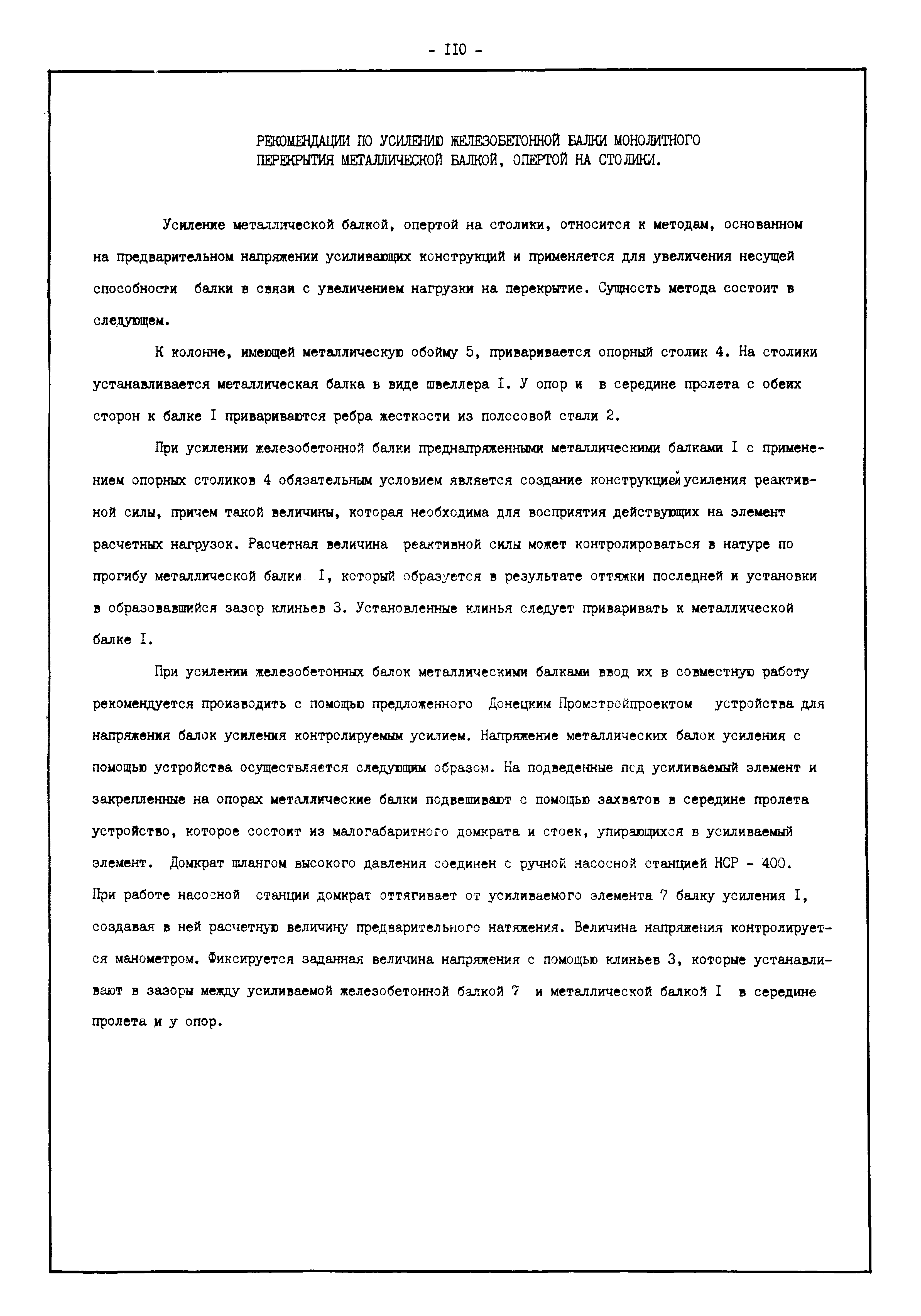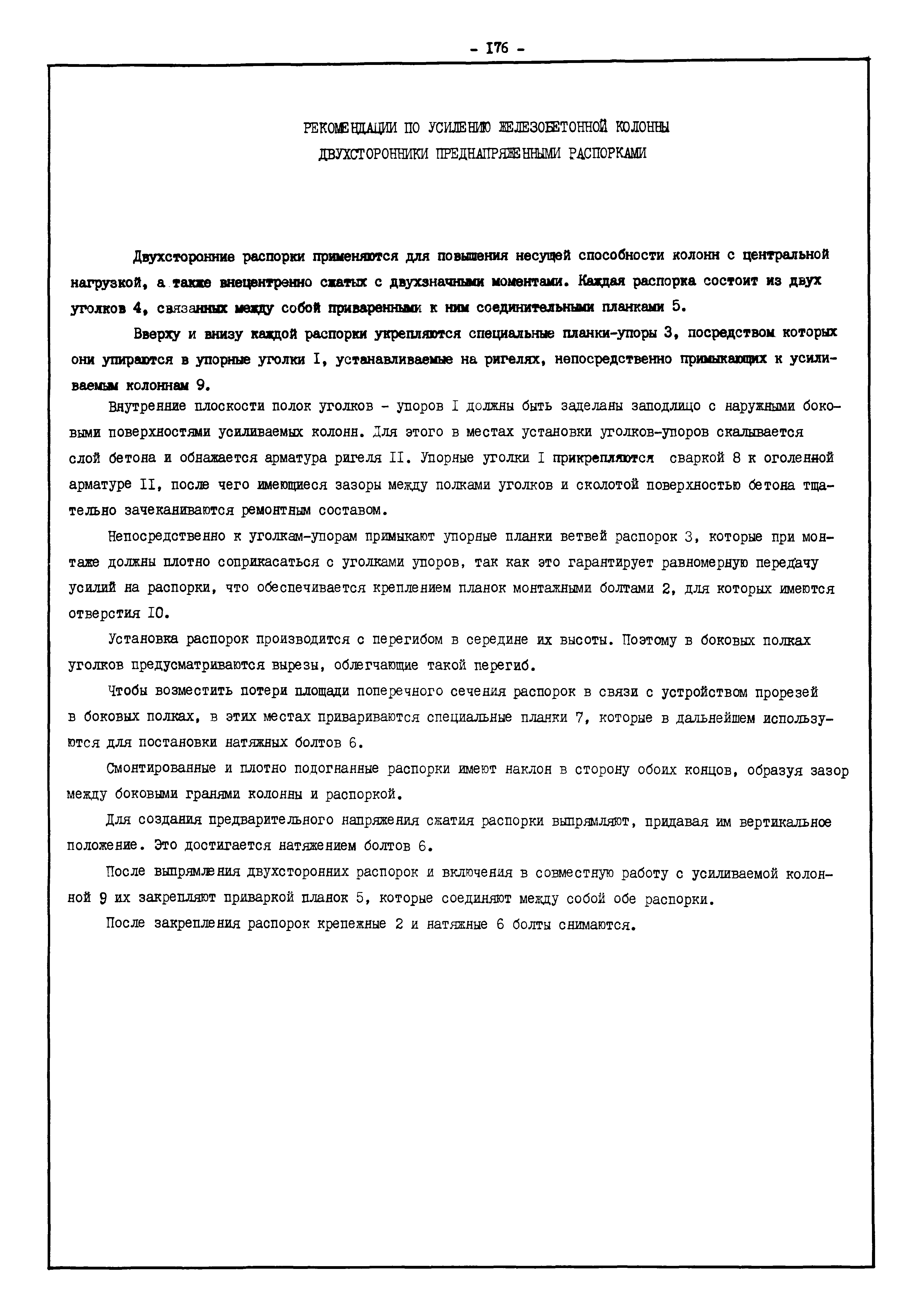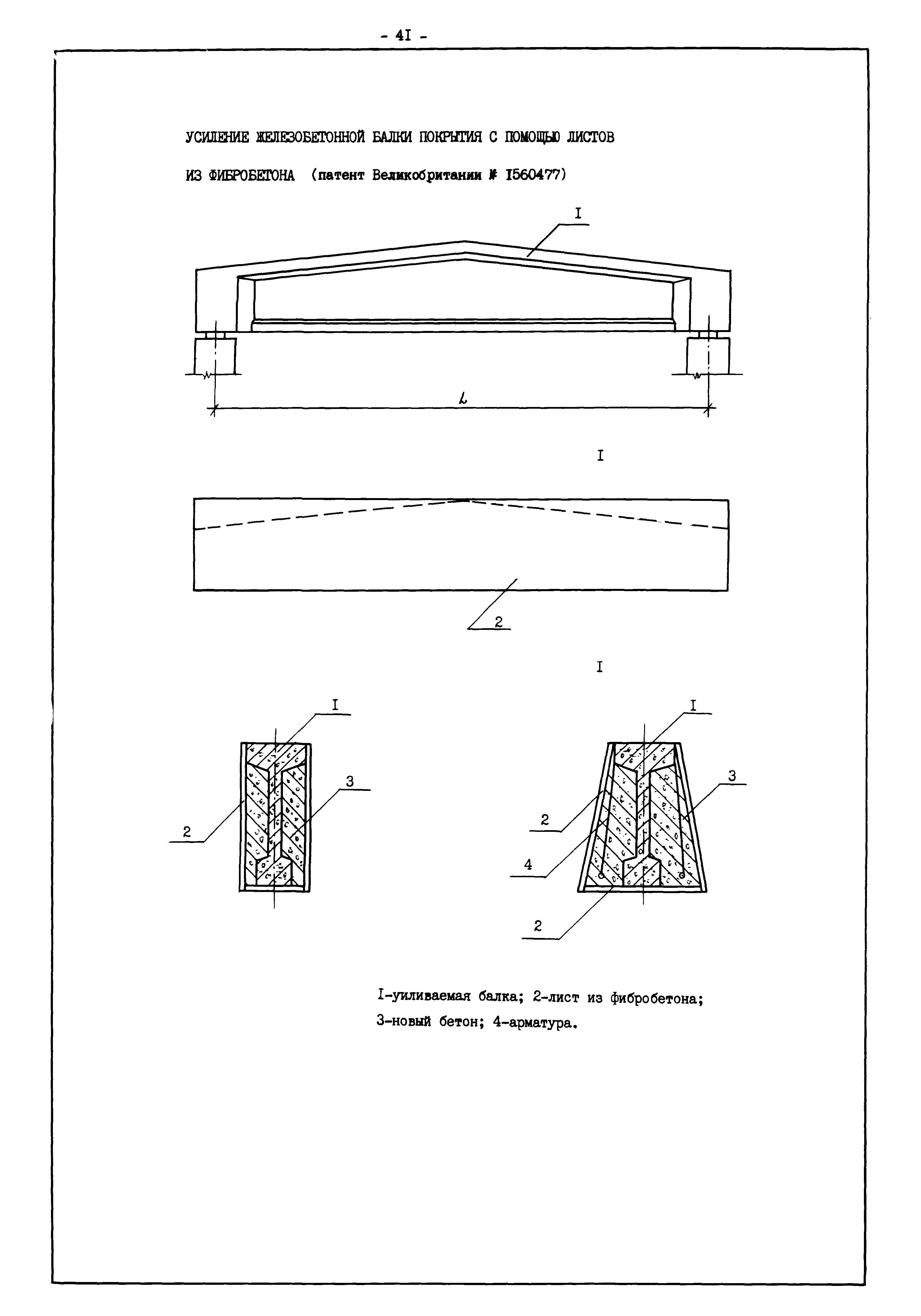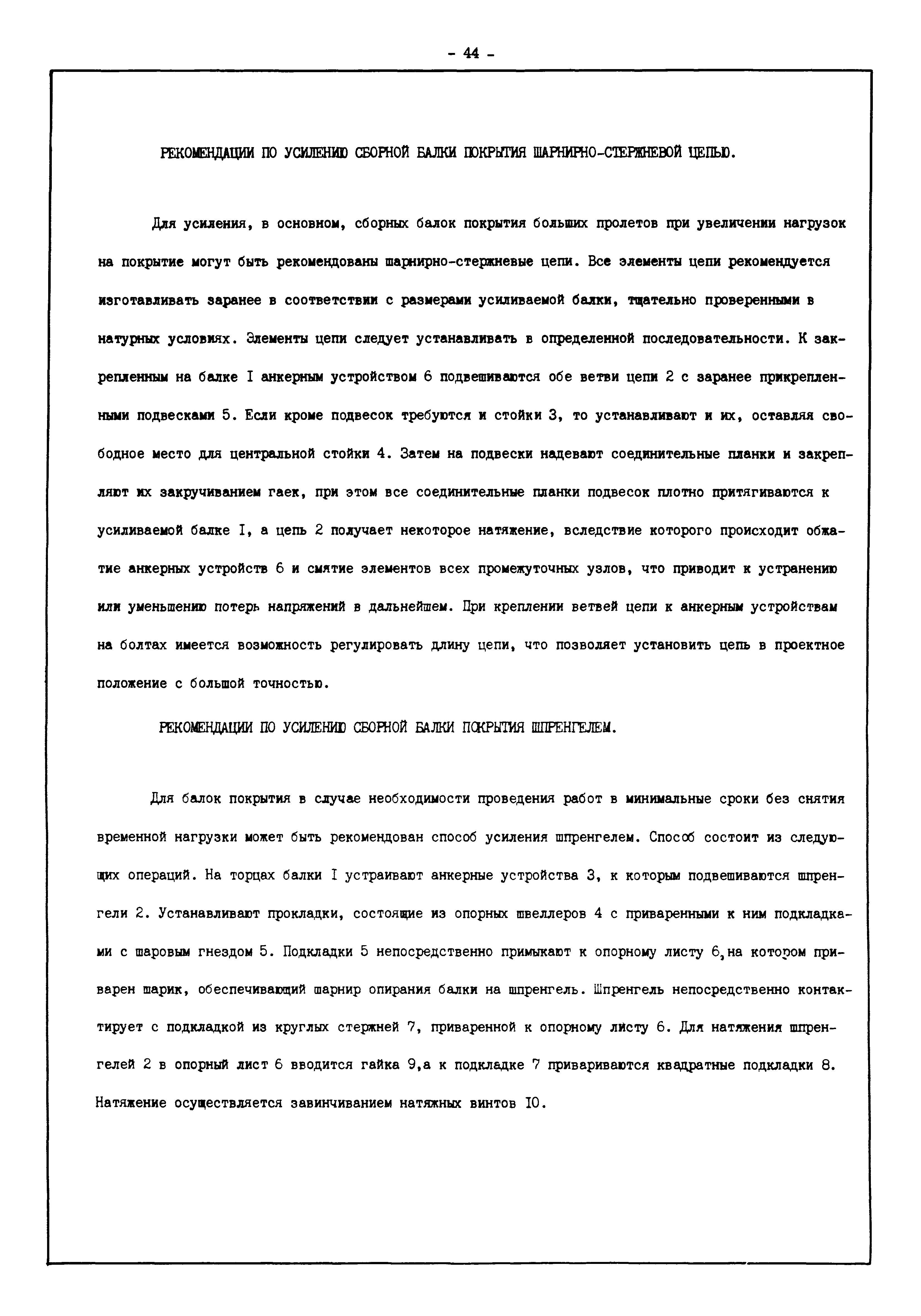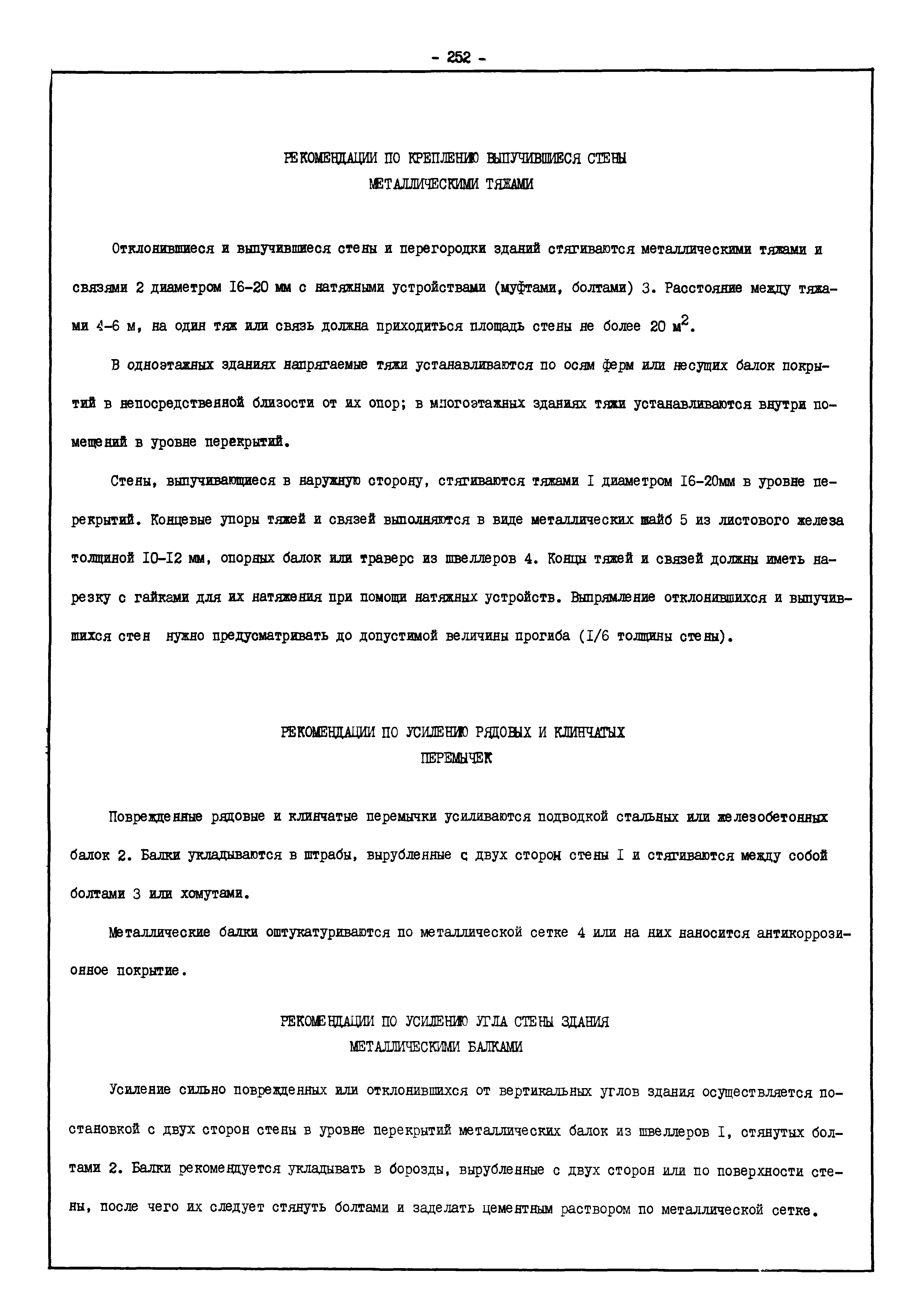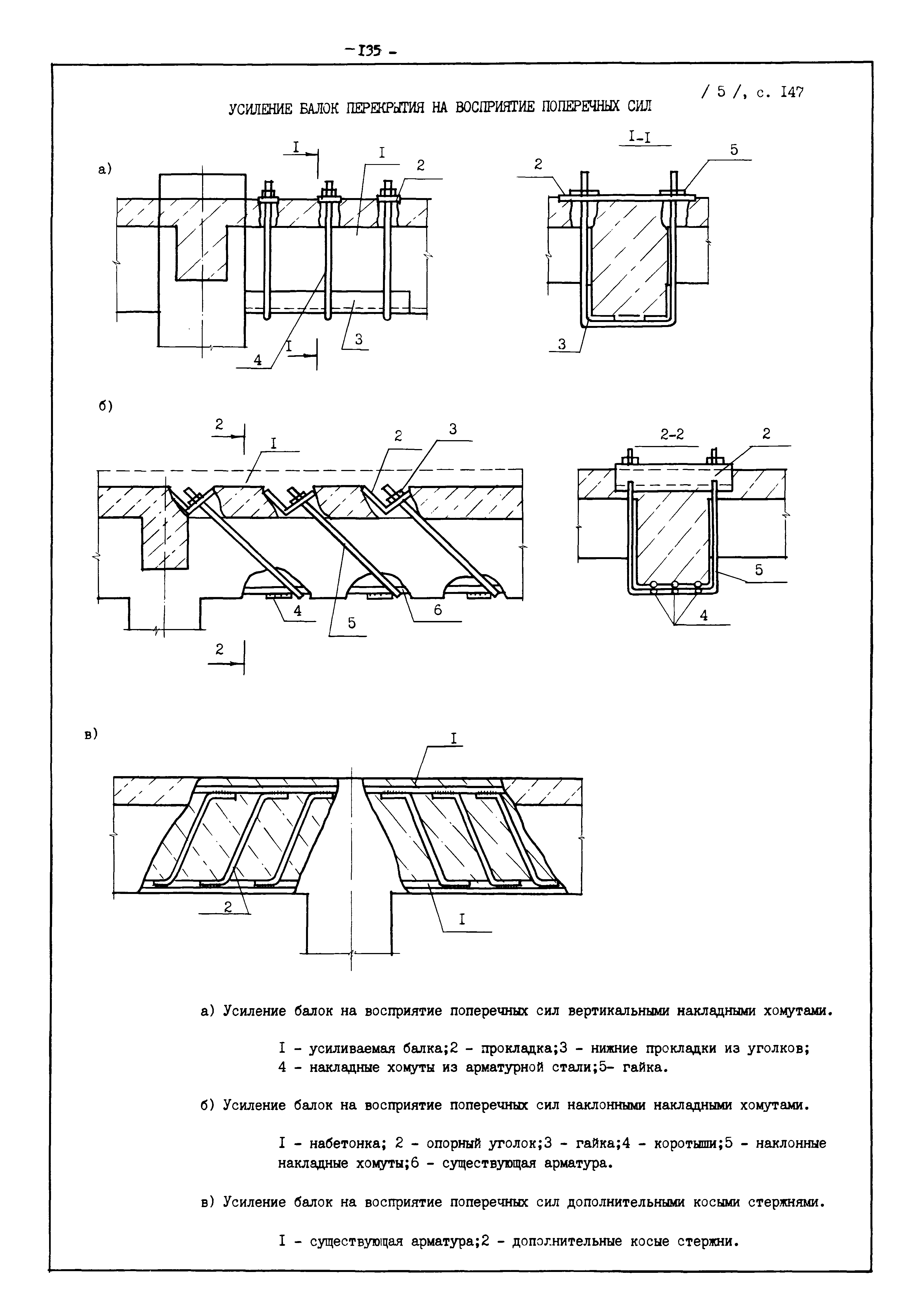 | Оглавление: | Введение I. Усиление и восстановление железобетонных конструкций Основные положения по усилению конструкций Оценка несущей способности железобетонных конструкций Основные положения по расчету и конструированию усилений Основные материалы для усиления и восстановления существующих железобетонных конструкций и требования к ним Требования к материалам для приготовления быстротвердеющих ремонтных составов Составы бетонов и растворов, предназначенных для усиления и восстановления строительных конструкций Усиление ребристых плит покрытия наращиванием Усиление ребристых плит покрытия при повреждении ребер Усиление сборной железобетонной плиты покрытия металлической балкой с подклинкой Усиление плит покрытия с помощью листов из волнистой стали Восстановление опирания ребристых плит покрытия на опоры Усиление продольных ребер плит покрытия Усиление сборных балок покрытия наращиванием сверху Усиление стропильных балок наращиванием снизу Усиление балок покрытия обоймой и дополнительными хомутами Усиление сжатой зоны стропильной балки обоймами Усиление железобетонной балки покрытия с помощью листов из фибробетона Усиление сборной балки покрытия шарнирно-стержневой цепью Усиление сборной балки покрытия шпренгелем Усиление железобетонной балки покрытия с помощью двухветьевой шпренгельной затяжки (а.с. СССР N 922257) Усиление стропильных балок подпружными системами Усиление опорных участков балок покрытия хомутами Усиление балок покрытия двухконсольной балочной системой Усиление верхнего пояса фермы Усиление нижнего пояса фермы Усиление стойки фермы Усиление раскоса и стойки фермы Усиление ребер сборных плит перекрытия с помощью дополнительной арматуры Усиление сборных плит перекрытия при помощи наклонных хомутов Усиление приопорных участков многопустотных плит перекрытий Усиление сборной многопустотной плиты перекрытия замоноличиванием каналов пустот Усиление сборной железобетонной плиты перекрытия с помощью изогнутого вниз стального листа (патент Японии N 56-54428) Восстановление ригеля перекрытия созданием обратного конструктивного выгиба с помощью домкрата (а.с. 1352023) Восстановление ригеля перекрытия созданием обратного конструктивного выгиба без домкрата (а.с. 1352023) Восстановление железобетонной балки путем подвешивания ее к металлической балке Восстановление плит перекрытия, получивших пробоины, с применением стали и бетона Восстановление безбалочного перекрытия, получившего пробоину величиной более 1 метра, деревянным щитом, не выступающим над полом Восстановление плит перекрытий, получивших пробоину величиной менее 1 метра, деревянным щитом, выступающим над полом Восстановление плит перекрытий, получивших пробоину менее 1 метра, деревянным щитом, не выступающим над полом Восстановление монолитных перекрытий, получивших пробоину величиной более 1 метра, деревянным щитом, не выступающим над полом Усиление монолитных плит перекрытия односторонним наращиванием Усиление железобетонной балки монолитного перекрытия наращиванием с помощью хомутов Усиление монолитной плиты перекрытия наращиванием с устройством железобетонных шпонок Восстановление железобетонных балок монолитного перекрытия при отколе Восстановление железбетонной балки монолитного перекрыти