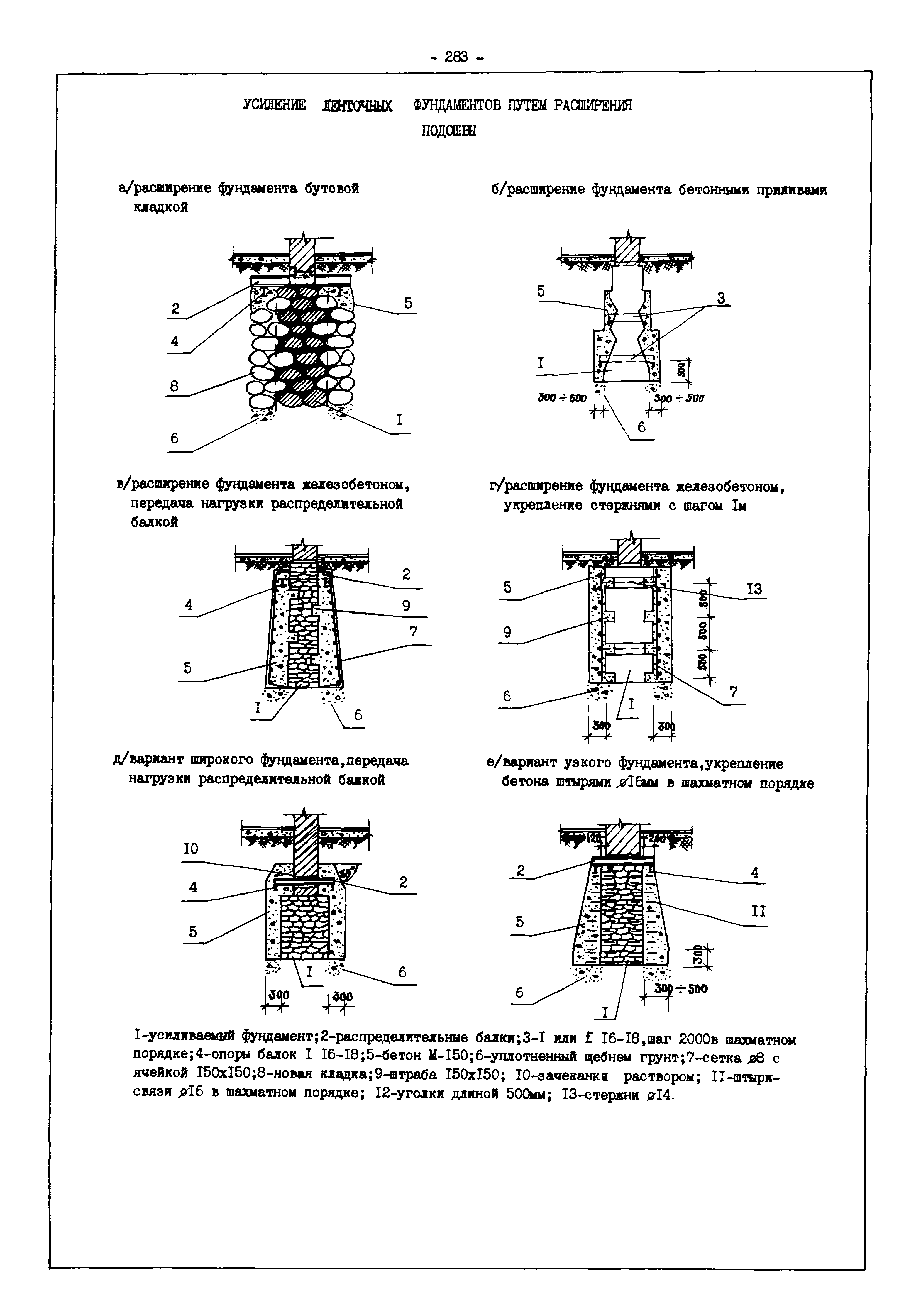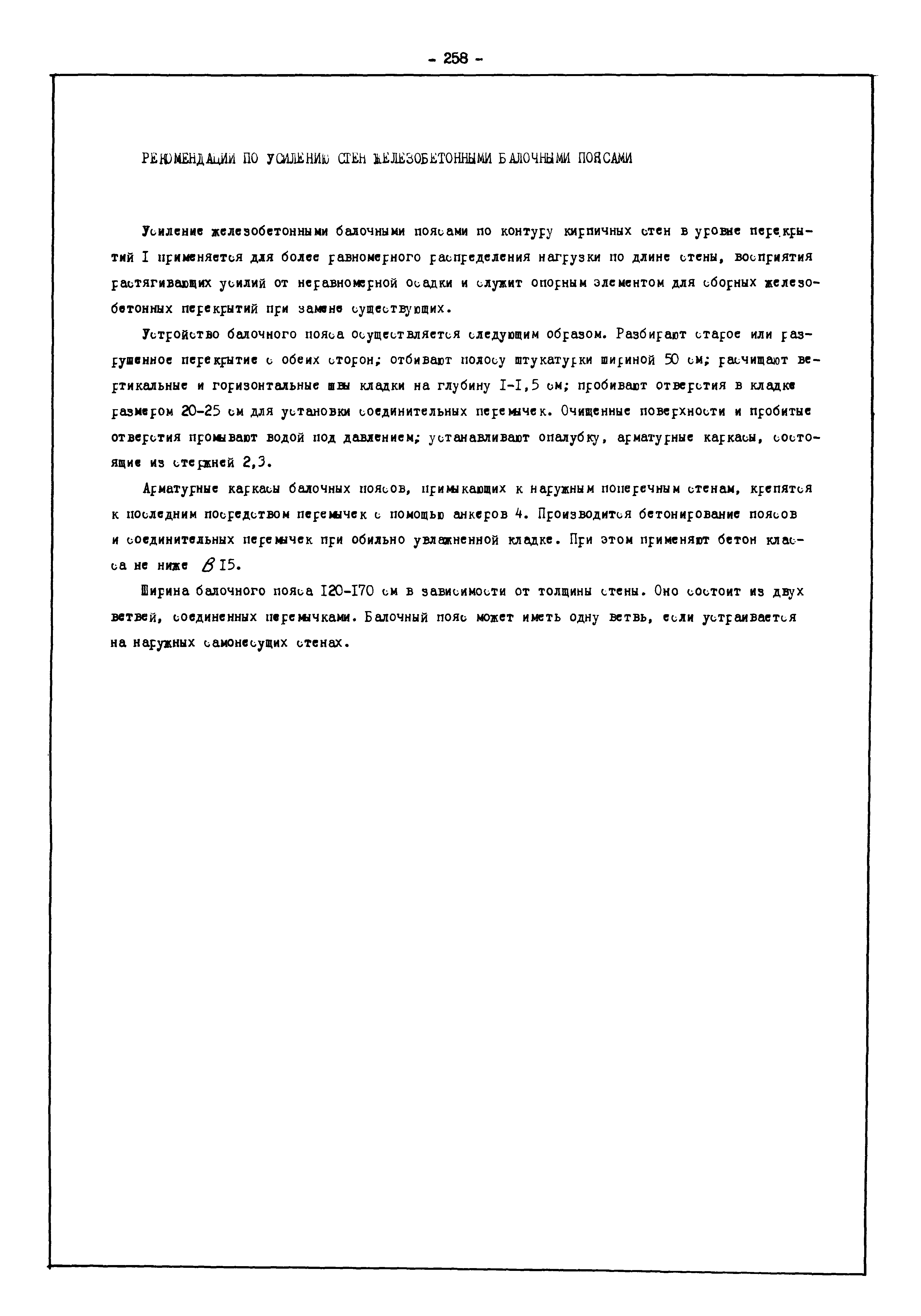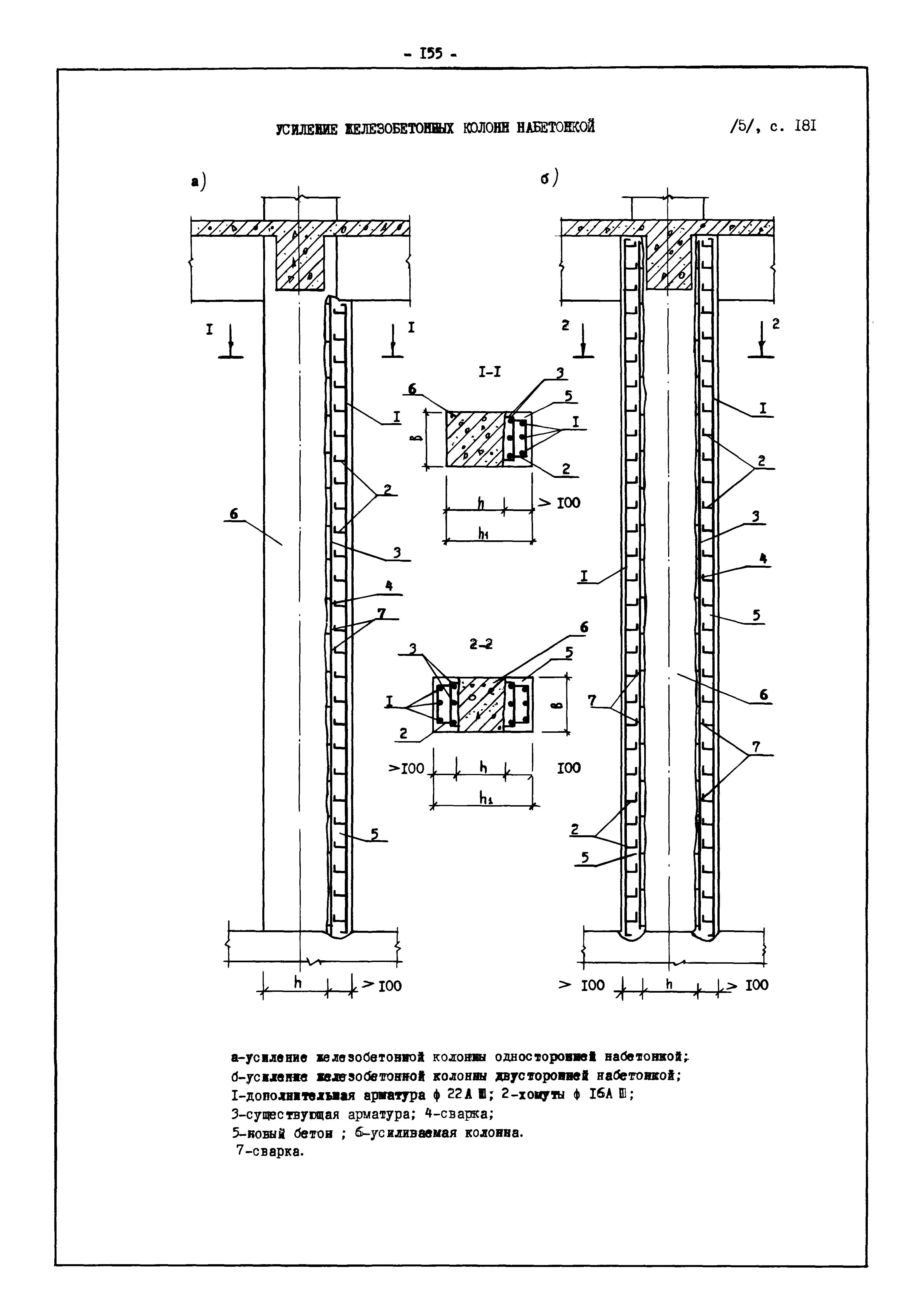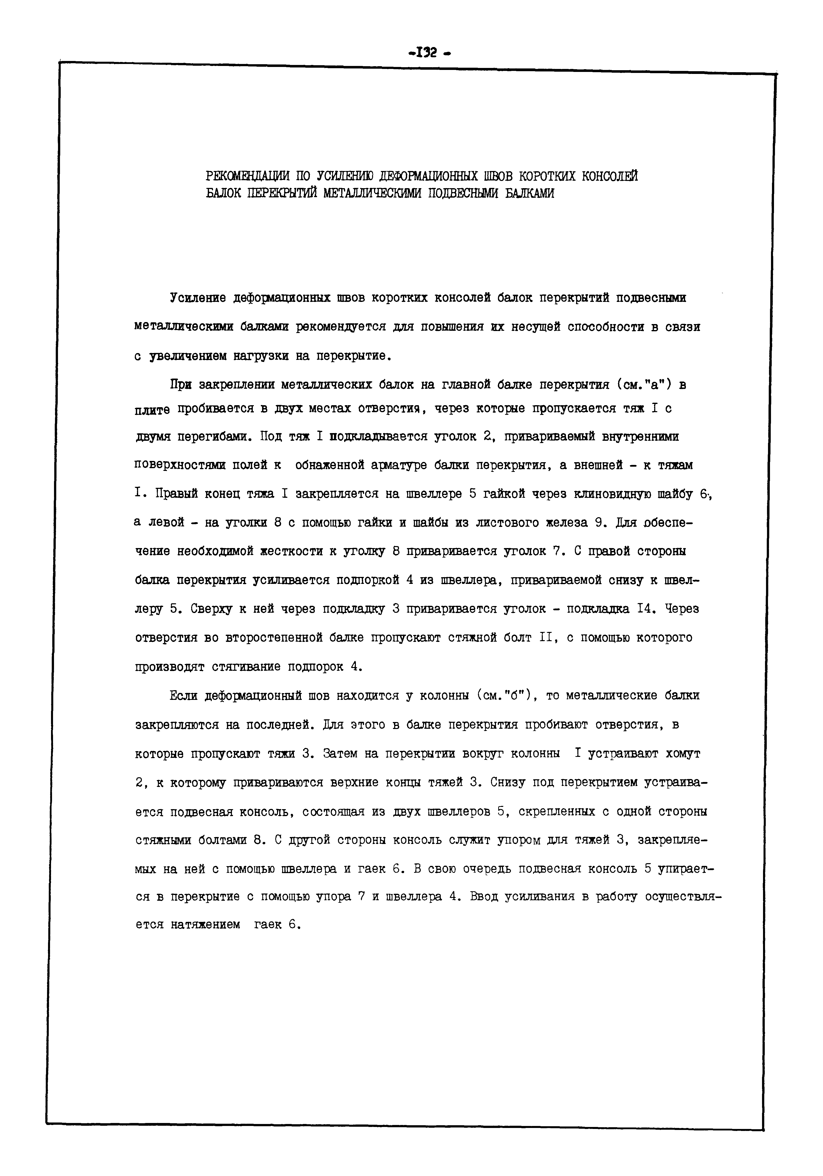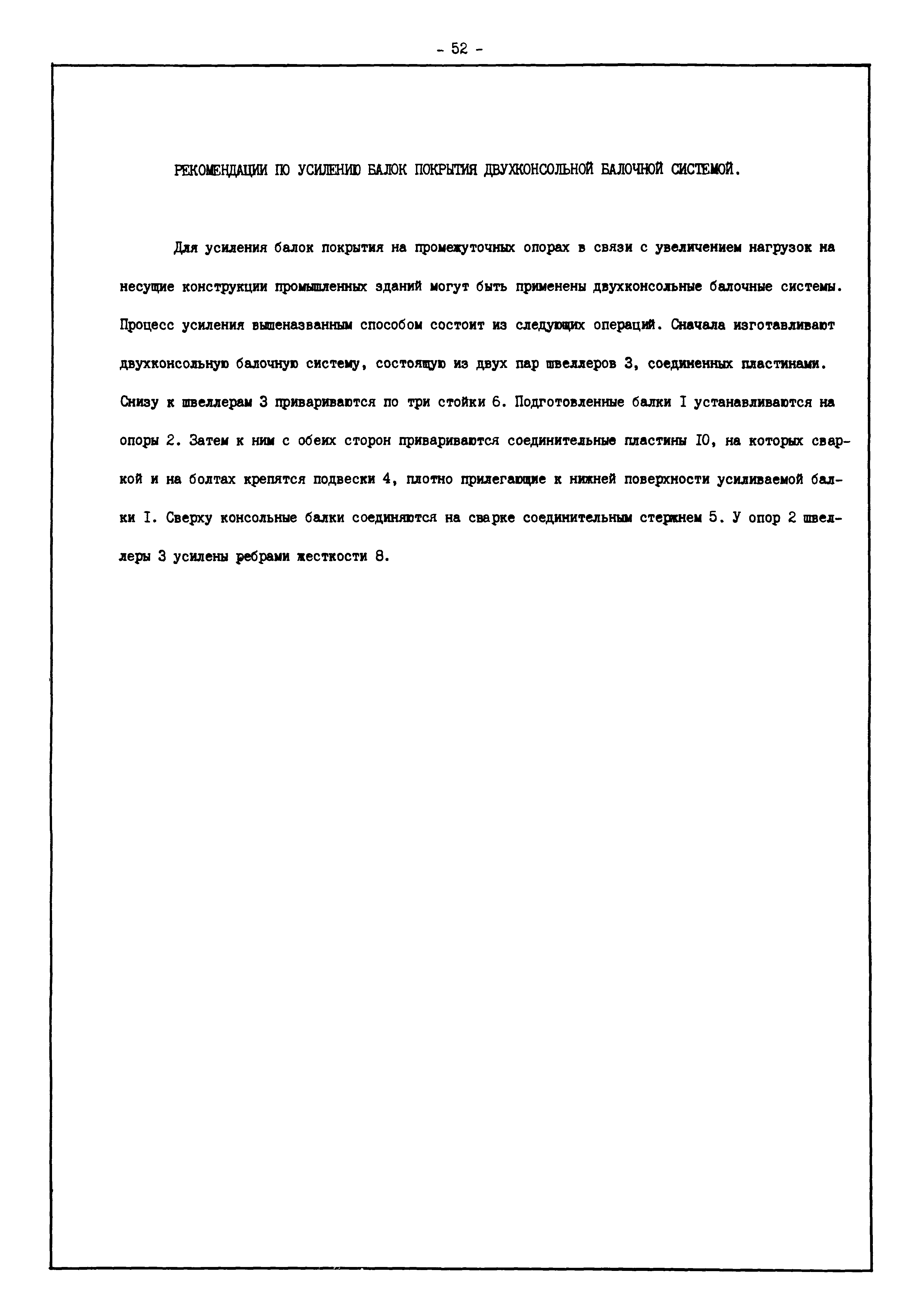 | Оглавление: | Введение I. Усиление и восстановление железобетонных конструкций Основные положения по усилению конструкций Оценка несущей способности железобетонных конструкций Основные положения по расчету и конструированию усилений Основные материалы для усиления и восстановления существующих железобетонных конструкций и требования к ним Требования к материалам для приготовления быстротвердеющих ремонтных составов Составы бетонов и растворов, предназначенных для усиления и восстановления строительных конструкций Усиление ребристых плит покрытия наращиванием Усиление ребристых плит покрытия при повреждении ребер Усиление сборной железобетонной плиты покрытия металлической балкой с подклинкой Усиление плит покрытия с помощью листов из волнистой стали Восстановление опирания ребристых плит покрытия на опоры Усиление продольных ребер плит покрытия Усиление сборных балок покрытия наращиванием сверху Усиление стропильных балок наращиванием снизу Усиление балок покрытия обоймой и дополнительными хомутами Усиление сжатой зоны стропильной балки обоймами Усиление железобетонной балки покрытия с помощью листов из фибробетона Усиление сборной балки покрытия шарнирно-стержневой цепью Усиление сборной балки покрытия шпренгелем Усиление железобетонной балки покрытия с помощью двухветьевой шпренгельной затяжки (а.с. СССР N 922257) Усиление стропильных балок подпружными системами Усиление опорных участков балок покрытия хомутами Усиление балок покрытия двухконсольной балочной системой Усиление верхнего пояса фермы Усиление нижнего пояса фермы Усиление стойки фермы Усиление раскоса и стойки фермы Усиление ребер сборных плит перекрытия с помощью дополнительной арматуры Усиление сборных плит перекрытия при помощи наклонных хомутов Усиление приопорных участков многопустотных плит перекрытий Усиление сборной многопустотной плиты перекрытия замоноличиванием каналов пустот Усиление сборной железобетонной плиты перекрытия с помощью изогнутого вниз стального листа (патент Японии N 56-54428) Восстановление ригеля перекрытия созданием обратного конструктивного выгиба с помощью домкрата (а.с. 1352023) Восстановление ригеля перекрытия созданием обратного конструктивного выгиба без домкрата (а.с. 1352023) Восстановление железобетонной балки путем подвешивания ее к металлической балке Восстановление плит перекрытия, получивших пробоины, с применением стали и бетона Восстановление безбалочного перекрытия, получившего пробоину величиной более 1 метра, деревянным щитом, не выступающим над полом Восстановление плит перекрытий, получивших пробоину величиной менее 1 метра, деревянным щитом, выступающим над полом Восстановление плит перекрытий, получивших пробоину менее 1 метра, деревянным щитом, не выступающим над полом Восстановление монолитных перекрытий, получивших пробоину величиной более 1 метра, деревянным щитом, не выступающим над полом Усиление монолитных плит перекрытия односторонним наращиванием Усиление железобетонной балки монолитного перекрытия наращиванием с помощью хомутов Усиление монолитной плиты перекрытия наращиванием с устройством железобетонных шпонок Восстановление железобетонных балок монолитного перекрытия при отколе Восстановление железбетонной балки монолитного перекрыти