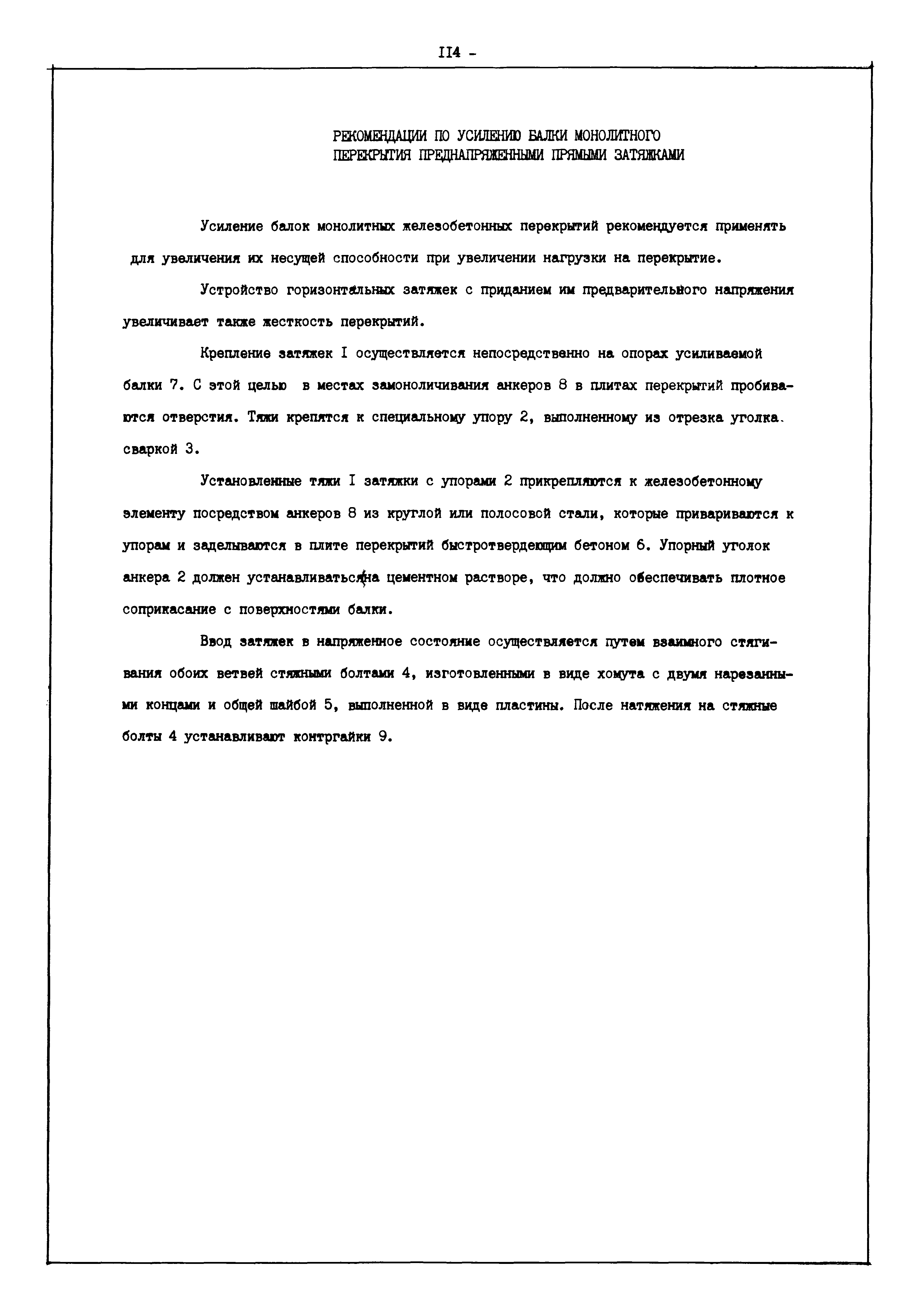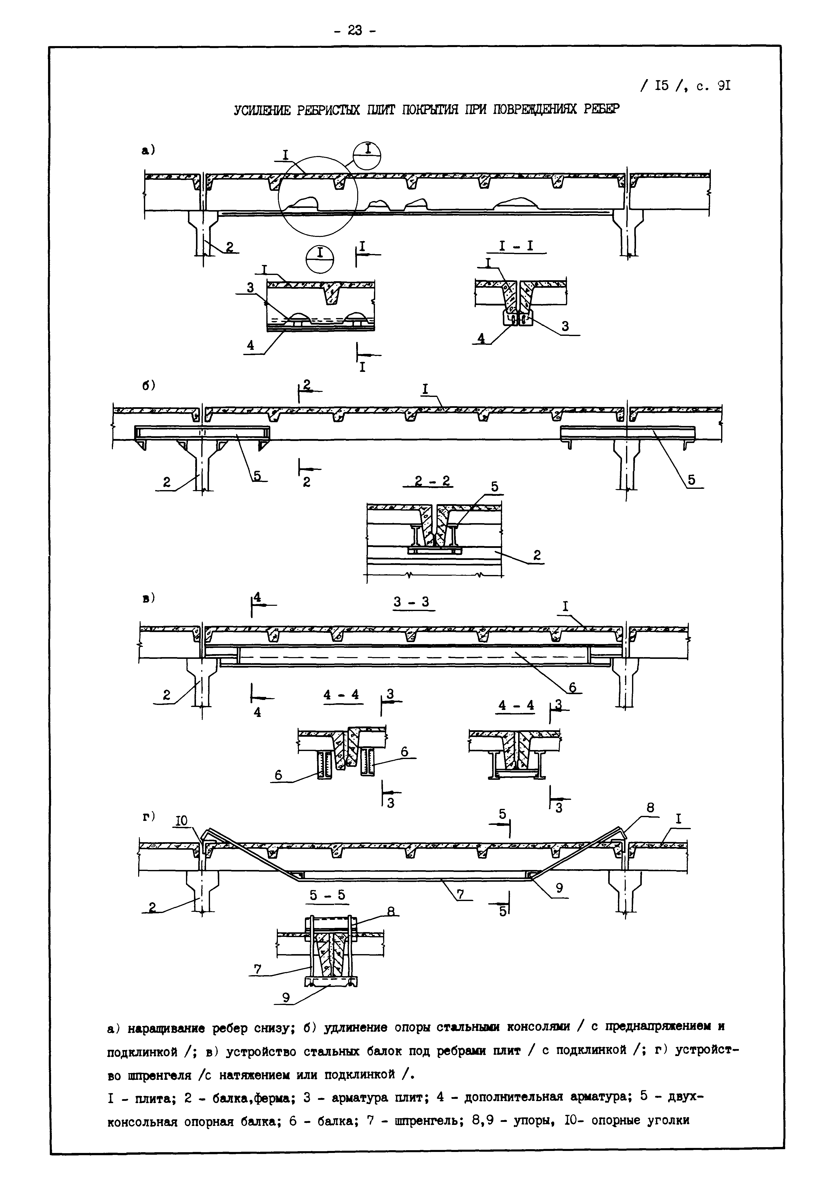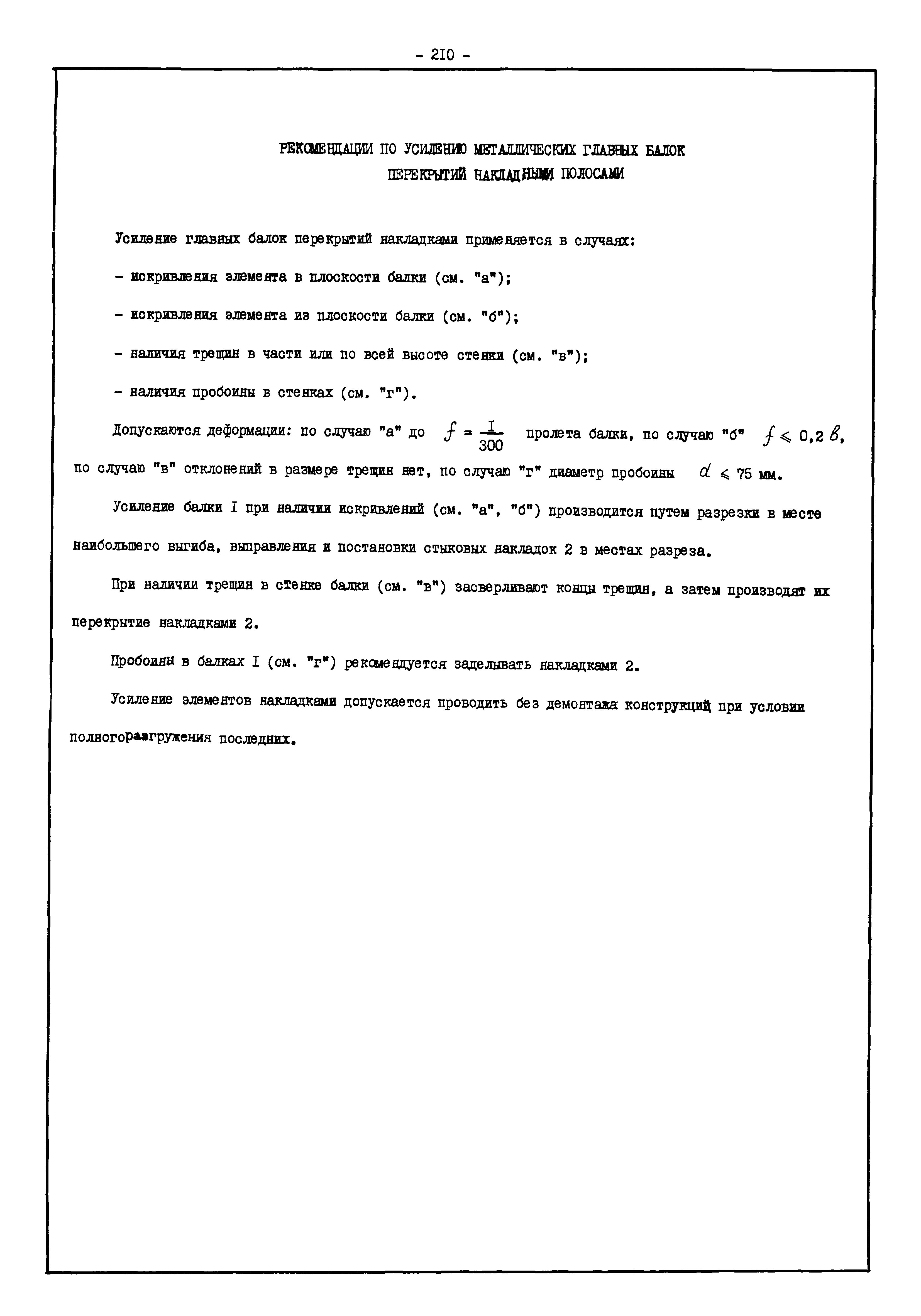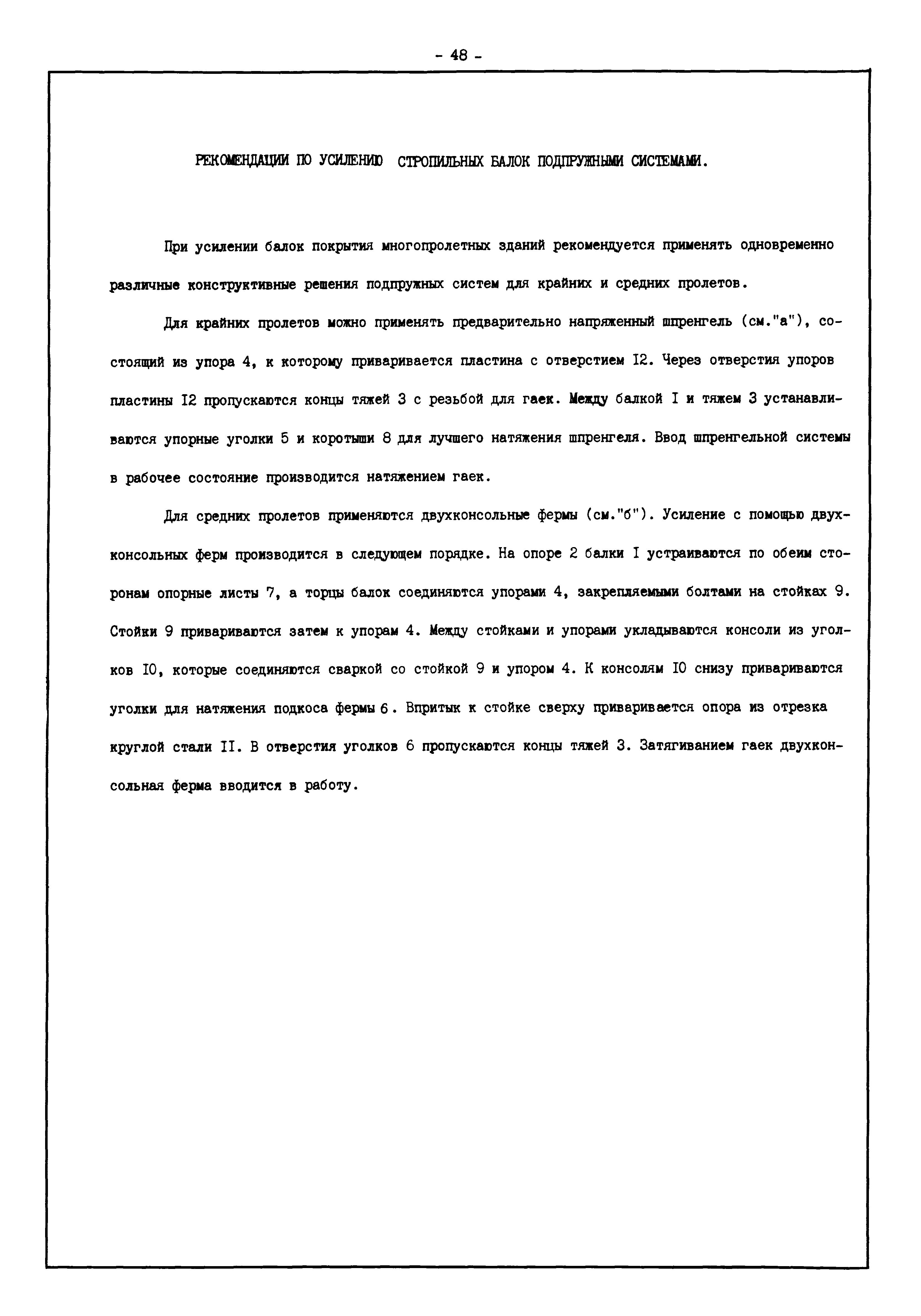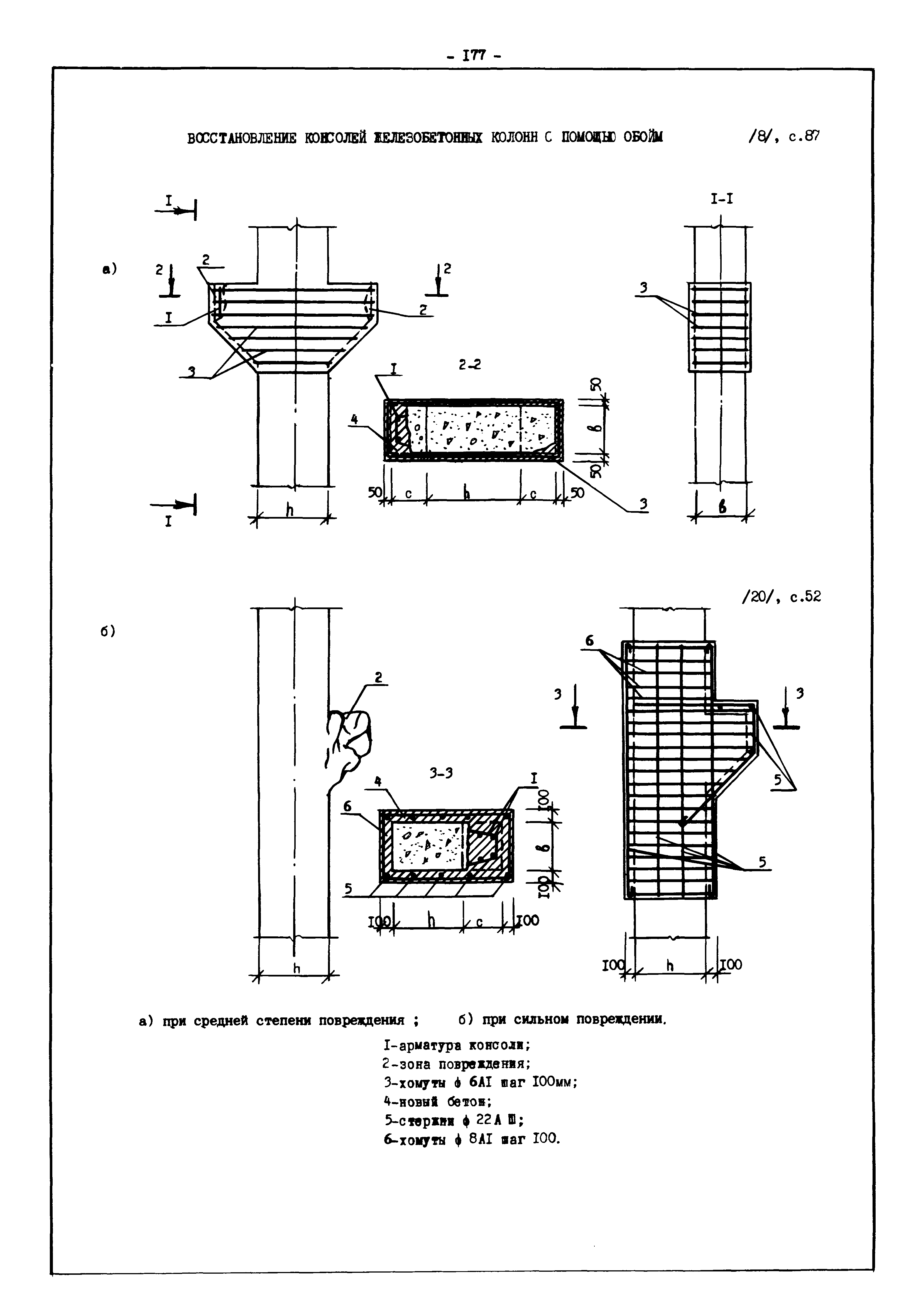 | Оглавление: | Введение I. Усиление и восстановление железобетонных конструкций Основные положения по усилению конструкций Оценка несущей способности железобетонных конструкций Основные положения по расчету и конструированию усилений Основные материалы для усиления и восстановления существующих железобетонных конструкций и требования к ним Требования к материалам для приготовления быстротвердеющих ремонтных составов Составы бетонов и растворов, предназначенных для усиления и восстановления строительных конструкций Усиление ребристых плит покрытия наращиванием Усиление ребристых плит покрытия при повреждении ребер Усиление сборной железобетонной плиты покрытия металлической балкой с подклинкой Усиление плит покрытия с помощью листов из волнистой стали Восстановление опирания ребристых плит покрытия на опоры Усиление продольных ребер плит покрытия Усиление сборных балок покрытия наращиванием сверху Усиление стропильных балок наращиванием снизу Усиление балок покрытия обоймой и дополнительными хомутами Усиление сжатой зоны стропильной балки обоймами Усиление железобетонной балки покрытия с помощью листов из фибробетона Усиление сборной балки покрытия шарнирно-стержневой цепью Усиление сборной балки покрытия шпренгелем Усиление железобетонной балки покрытия с помощью двухветьевой шпренгельной затяжки (а.с. СССР N 922257) Усиление стропильных балок подпружными системами Усиление опорных участков балок покрытия хомутами Усиление балок покрытия двухконсольной балочной системой Усиление верхнего пояса фермы Усиление нижнего пояса фермы Усиление стойки фермы Усиление раскоса и стойки фермы Усиление ребер сборных плит перекрытия с помощью дополнительной арматуры Усиление сборных плит перекрытия при помощи наклонных хомутов Усиление приопорных участков многопустотных плит перекрытий Усиление сборной многопустотной плиты перекрытия замоноличиванием каналов пустот Усиление сборной железобетонной плиты перекрытия с помощью изогнутого вниз стального листа (патент Японии N 56-54428) Восстановление ригеля перекрытия созданием обратного конструктивного выгиба с помощью домкрата (а.с. 1352023) Восстановление ригеля перекрытия созданием обратного конструктивного выгиба без домкрата (а.с. 1352023) Восстановление железобетонной балки путем подвешивания ее к металлической балке Восстановление плит перекрытия, получивших пробоины, с применением стали и бетона Восстановление безбалочного перекрытия, получившего пробоину величиной более 1 метра, деревянным щитом, не выступающим над полом Восстановление плит перекрытий, получивших пробоину величиной менее 1 метра, деревянным щитом, выступающим над полом Восстановление плит перекрытий, получивших пробоину менее 1 метра, деревянным щитом, не выступающим над полом Восстановление монолитных перекрытий, получивших пробоину величиной более 1 метра, деревянным щитом, не выступающим над полом Усиление монолитных плит перекрытия односторонним наращиванием Усиление железобетонной балки монолитного перекрытия наращиванием с помощью хомутов Усиление монолитной плиты перекрытия наращиванием с устройством железобетонных шпонок Восстановление железобетонных балок монолитного перекрытия при отколе Восстановление железбетонной балки монолитного перекрыти