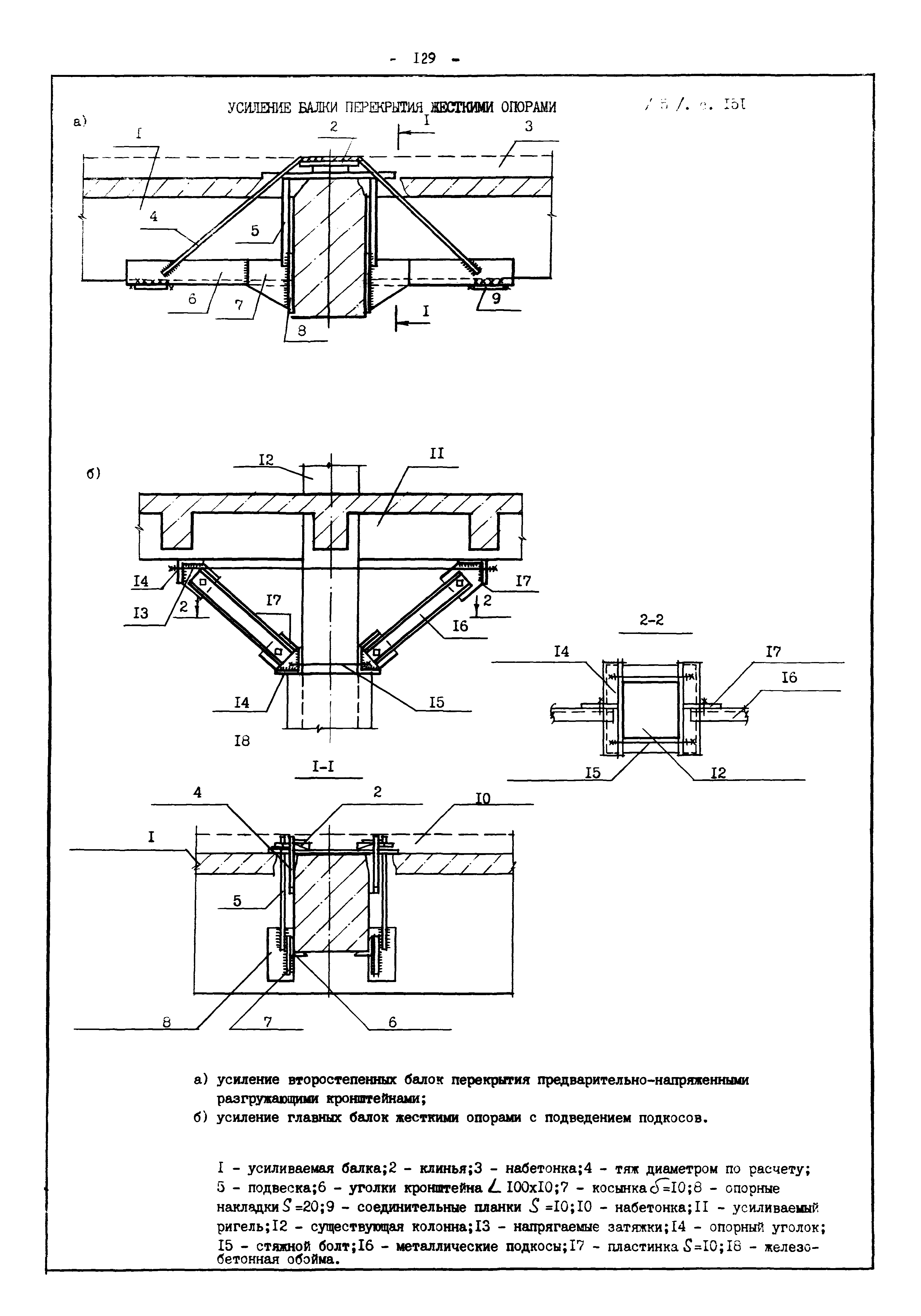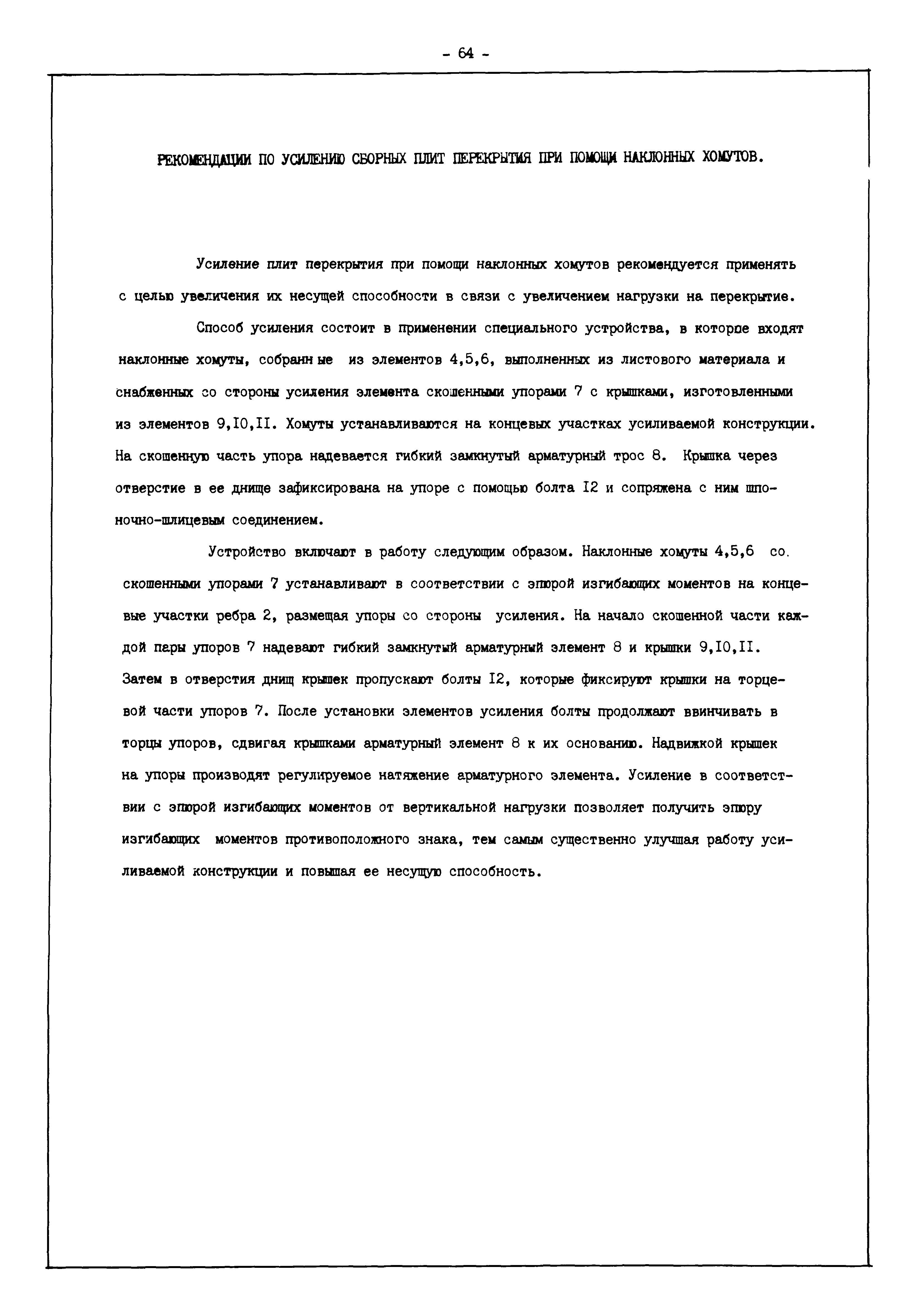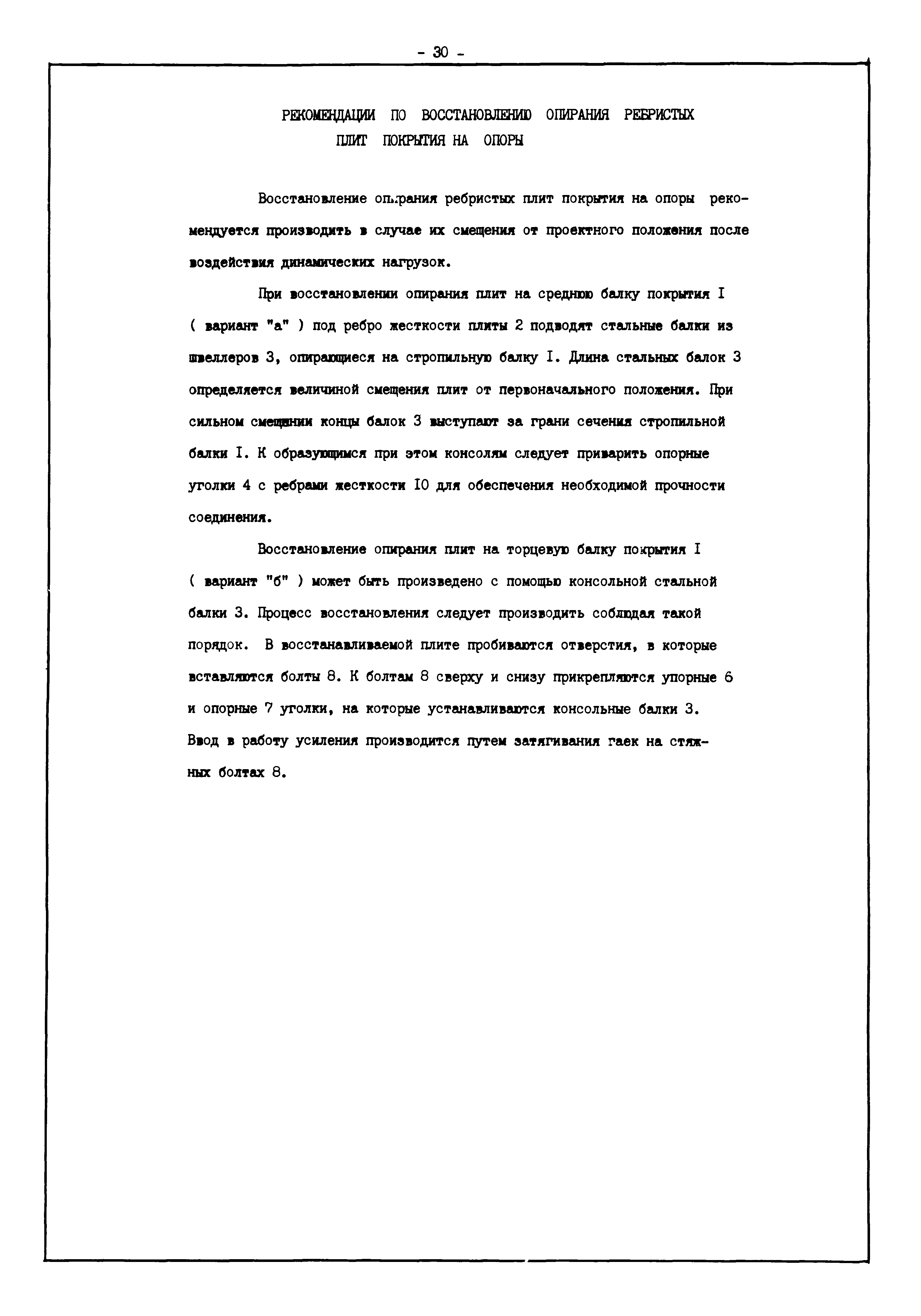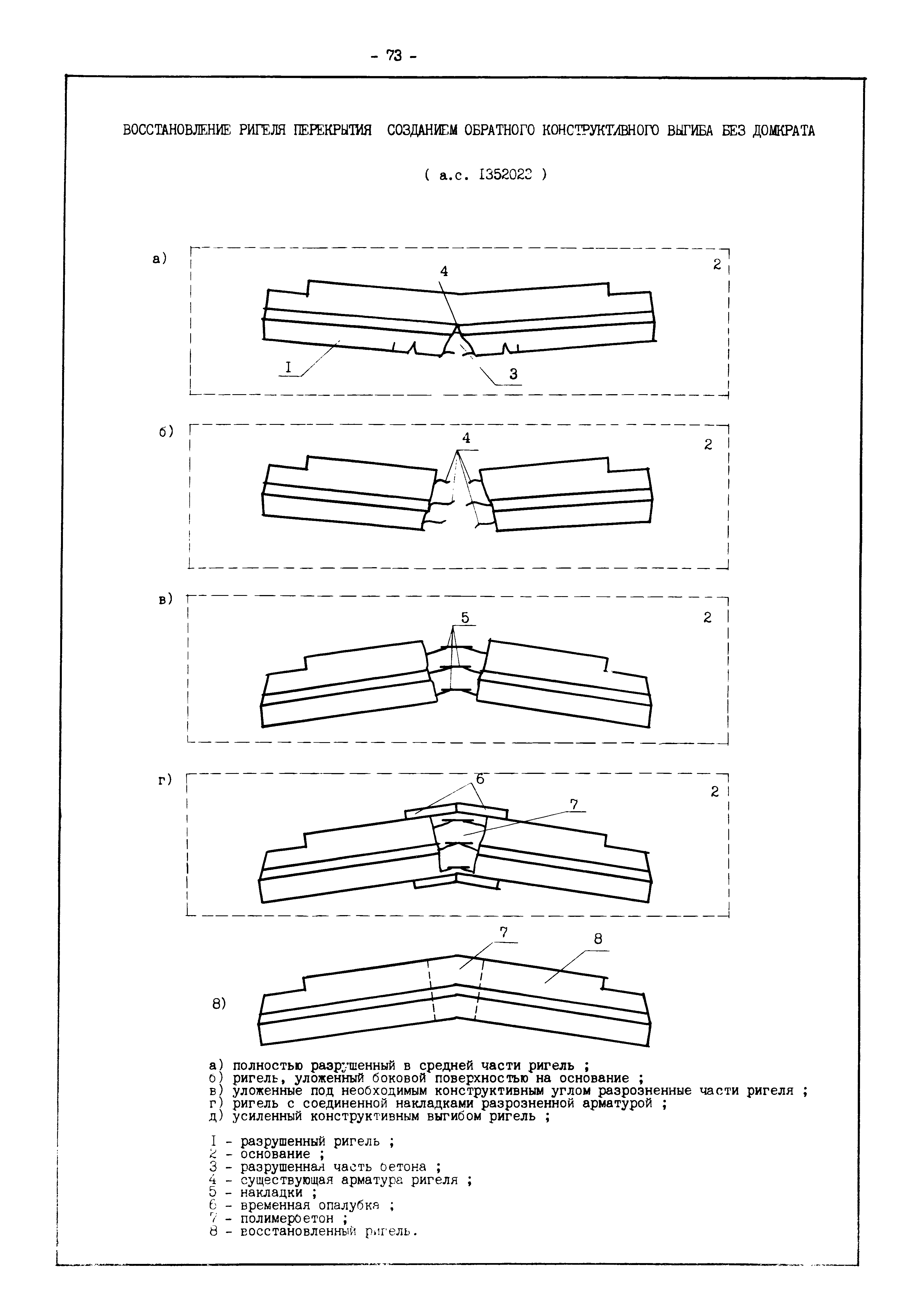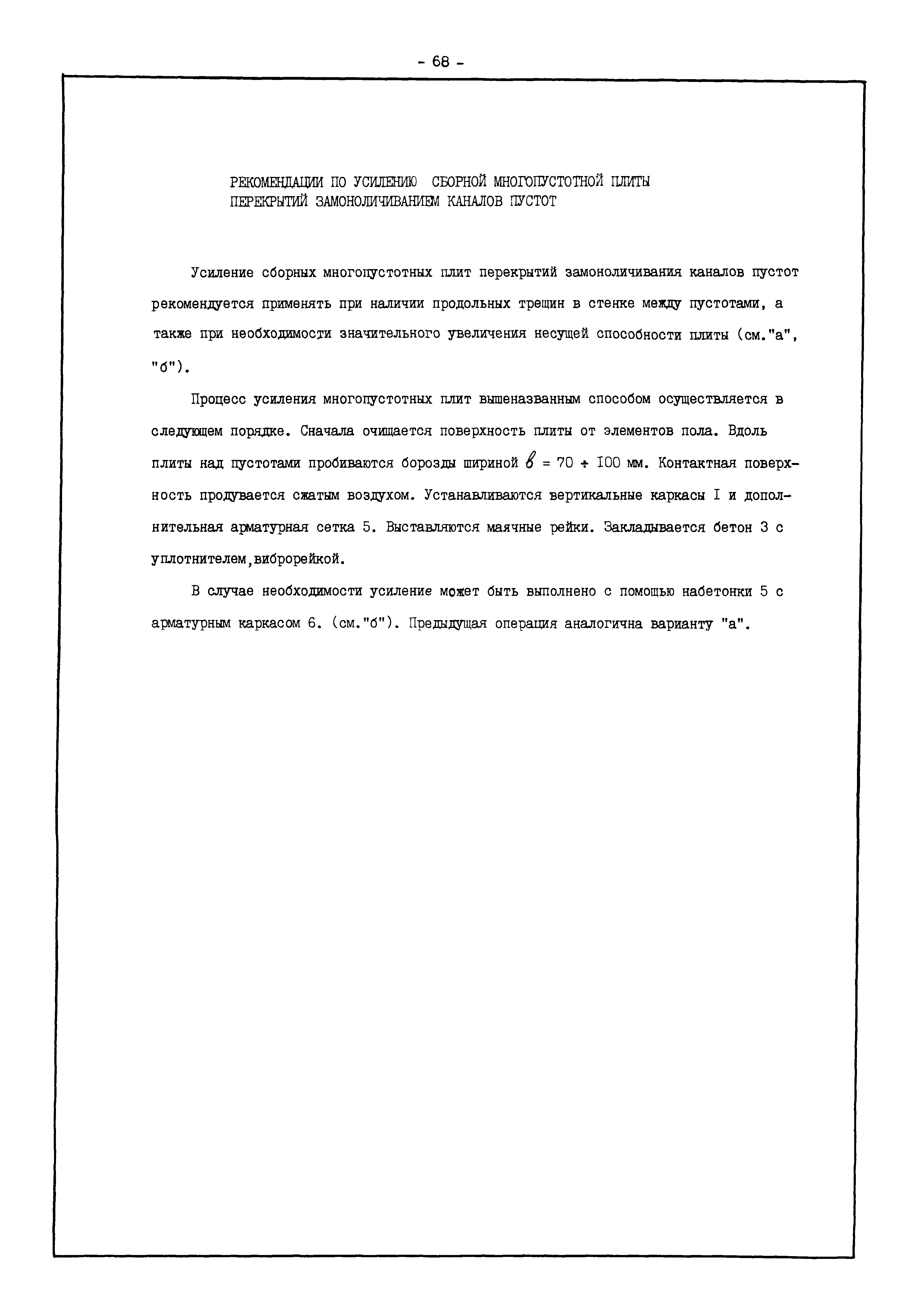 | Оглавление: | Введение I. Усиление и восстановление железобетонных конструкций Основные положения по усилению конструкций Оценка несущей способности железобетонных конструкций Основные положения по расчету и конструированию усилений Основные материалы для усиления и восстановления существующих железобетонных конструкций и требования к ним Требования к материалам для приготовления быстротвердеющих ремонтных составов Составы бетонов и растворов, предназначенных для усиления и восстановления строительных конструкций Усиление ребристых плит покрытия наращиванием Усиление ребристых плит покрытия при повреждении ребер Усиление сборной железобетонной плиты покрытия металлической балкой с подклинкой Усиление плит покрытия с помощью листов из волнистой стали Восстановление опирания ребристых плит покрытия на опоры Усиление продольных ребер плит покрытия Усиление сборных балок покрытия наращиванием сверху Усиление стропильных балок наращиванием снизу Усиление балок покрытия обоймой и дополнительными хомутами Усиление сжатой зоны стропильной балки обоймами Усиление железобетонной балки покрытия с помощью листов из фибробетона Усиление сборной балки покрытия шарнирно-стержневой цепью Усиление сборной балки покрытия шпренгелем Усиление железобетонной балки покрытия с помощью двухветьевой шпренгельной затяжки (а.с. СССР N 922257) Усиление стропильных балок подпружными системами Усиление опорных участков балок покрытия хомутами Усиление балок покрытия двухконсольной балочной системой Усиление верхнего пояса фермы Усиление нижнего пояса фермы Усиление стойки фермы Усиление раскоса и стойки фермы Усиление ребер сборных плит перекрытия с помощью дополнительной арматуры Усиление сборных плит перекрытия при помощи наклонных хомутов Усиление приопорных участков многопустотных плит перекрытий Усиление сборной многопустотной плиты перекрытия замоноличиванием каналов пустот Усиление сборной железобетонной плиты перекрытия с помощью изогнутого вниз стального листа (патент Японии N 56-54428) Восстановление ригеля перекрытия созданием обратного конструктивного выгиба с помощью домкрата (а.с. 1352023) Восстановление ригеля перекрытия созданием обратного конструктивного выгиба без домкрата (а.с. 1352023) Восстановление железобетонной балки путем подвешивания ее к металлической балке Восстановление плит перекрытия, получивших пробоины, с применением стали и бетона Восстановление безбалочного перекрытия, получившего пробоину величиной более 1 метра, деревянным щитом, не выступающим над полом Восстановление плит перекрытий, получивших пробоину величиной менее 1 метра, деревянным щитом, выступающим над полом Восстановление плит перекрытий, получивших пробоину менее 1 метра, деревянным щитом, не выступающим над полом Восстановление монолитных перекрытий, получивших пробоину величиной более 1 метра, деревянным щитом, не выступающим над полом Усиление монолитных плит перекрытия односторонним наращиванием Усиление железобетонной балки монолитного перекрытия наращиванием с помощью хомутов Усиление монолитной плиты перекрытия наращиванием с устройством железобетонных шпонок Восстановление железобетонных балок монолитного перекрытия при отколе Восстановление железбетонной балки монолитного перекрыти