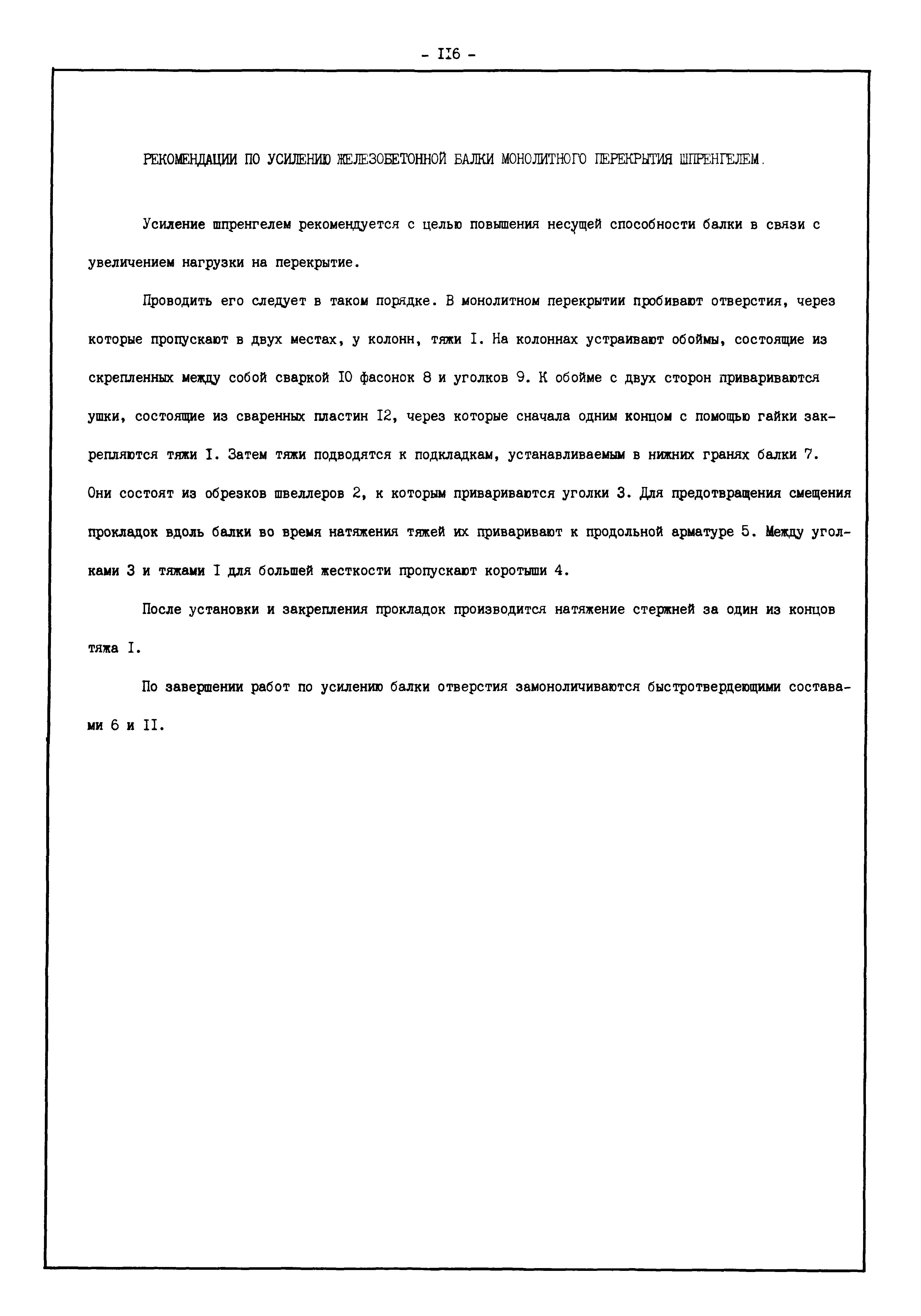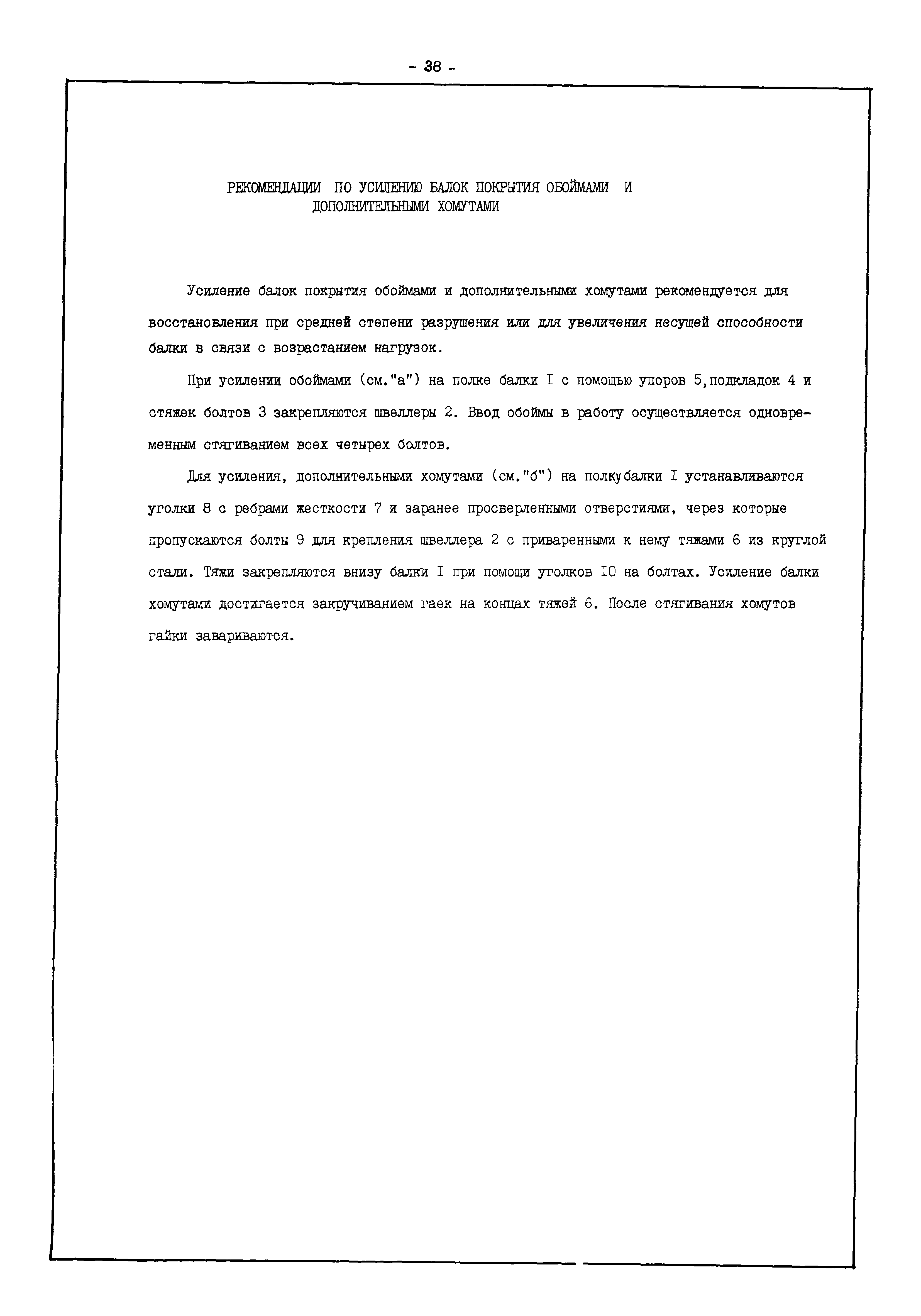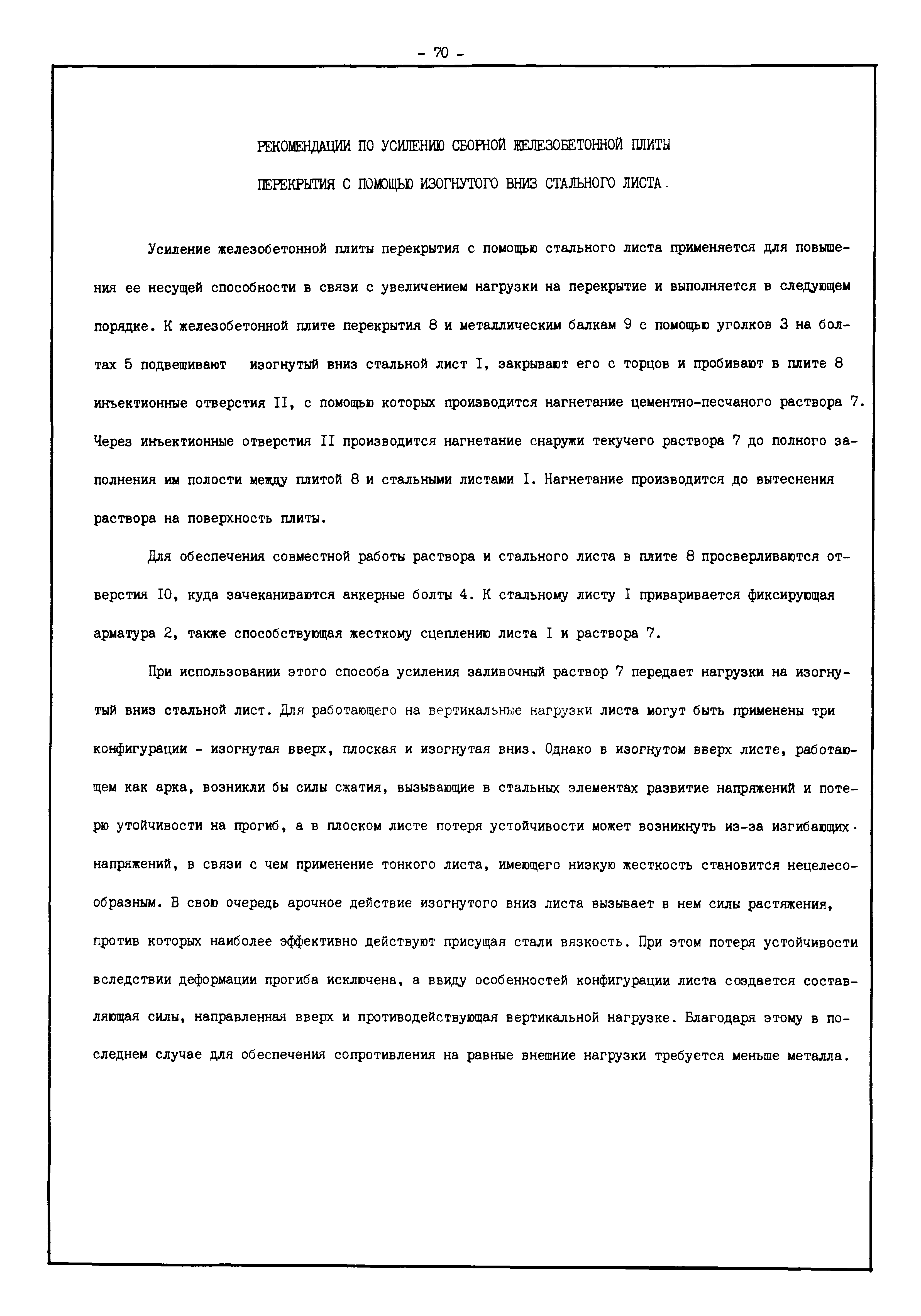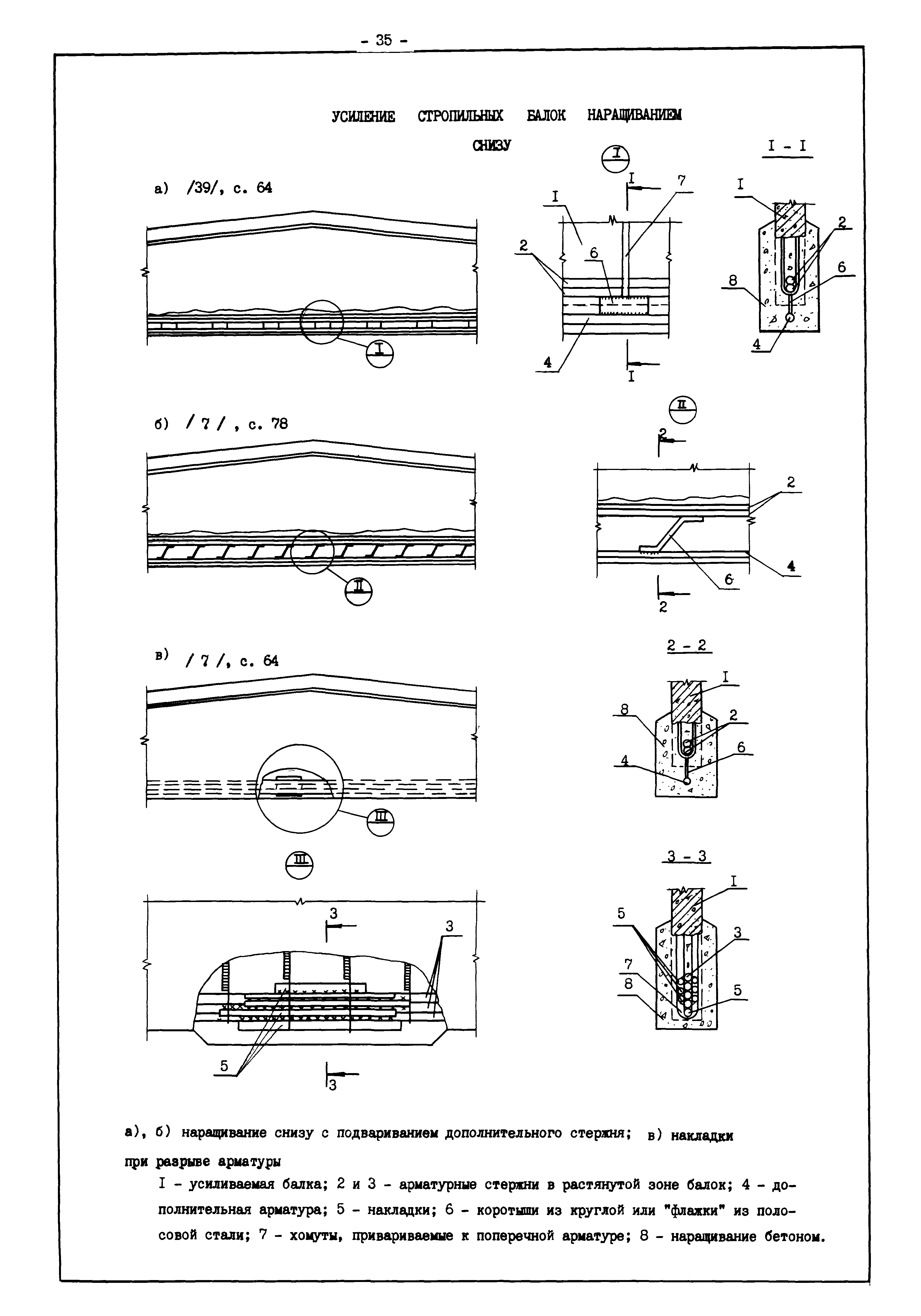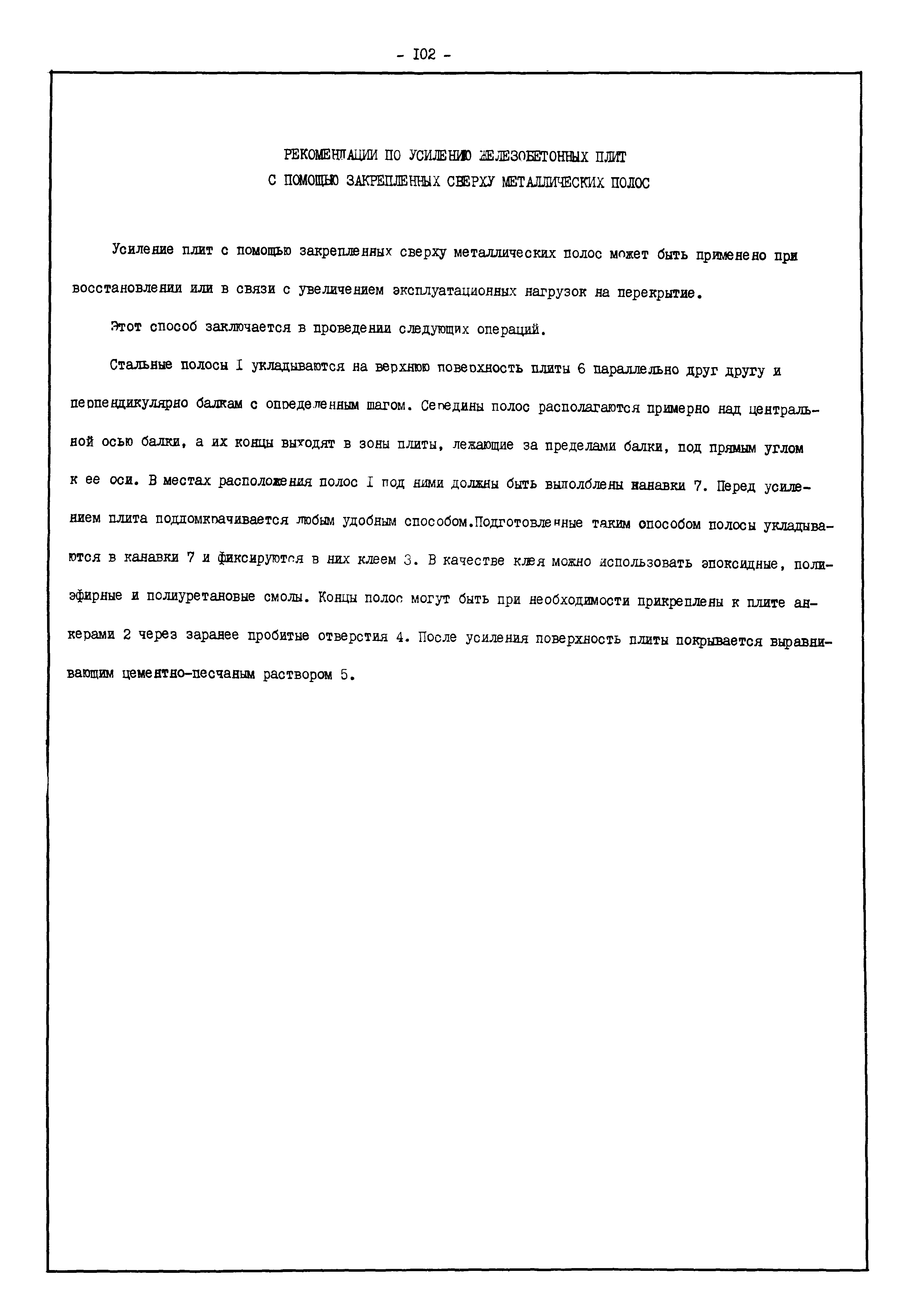 | Оглавление: | Введение I. Усиление и восстановление железобетонных конструкций Основные положения по усилению конструкций Оценка несущей способности железобетонных конструкций Основные положения по расчету и конструированию усилений Основные материалы для усиления и восстановления существующих железобетонных конструкций и требования к ним Требования к материалам для приготовления быстротвердеющих ремонтных составов Составы бетонов и растворов, предназначенных для усиления и восстановления строительных конструкций Усиление ребристых плит покрытия наращиванием Усиление ребристых плит покрытия при повреждении ребер Усиление сборной железобетонной плиты покрытия металлической балкой с подклинкой Усиление плит покрытия с помощью листов из волнистой стали Восстановление опирания ребристых плит покрытия на опоры Усиление продольных ребер плит покрытия Усиление сборных балок покрытия наращиванием сверху Усиление стропильных балок наращиванием снизу Усиление балок покрытия обоймой и дополнительными хомутами Усиление сжатой зоны стропильной балки обоймами Усиление железобетонной балки покрытия с помощью листов из фибробетона Усиление сборной балки покрытия шарнирно-стержневой цепью Усиление сборной балки покрытия шпренгелем Усиление железобетонной балки покрытия с помощью двухветьевой шпренгельной затяжки (а.с. СССР N 922257) Усиление стропильных балок подпружными системами Усиление опорных участков балок покрытия хомутами Усиление балок покрытия двухконсольной балочной системой Усиление верхнего пояса фермы Усиление нижнего пояса фермы Усиление стойки фермы Усиление раскоса и стойки фермы Усиление ребер сборных плит перекрытия с помощью дополнительной арматуры Усиление сборных плит перекрытия при помощи наклонных хомутов Усиление приопорных участков многопустотных плит перекрытий Усиление сборной многопустотной плиты перекрытия замоноличиванием каналов пустот Усиление сборной железобетонной плиты перекрытия с помощью изогнутого вниз стального листа (патент Японии N 56-54428) Восстановление ригеля перекрытия созданием обратного конструктивного выгиба с помощью домкрата (а.с. 1352023) Восстановление ригеля перекрытия созданием обратного конструктивного выгиба без домкрата (а.с. 1352023) Восстановление железобетонной балки путем подвешивания ее к металлической балке Восстановление плит перекрытия, получивших пробоины, с применением стали и бетона Восстановление безбалочного перекрытия, получившего пробоину величиной более 1 метра, деревянным щитом, не выступающим над полом Восстановление плит перекрытий, получивших пробоину величиной менее 1 метра, деревянным щитом, выступающим над полом Восстановление плит перекрытий, получивших пробоину менее 1 метра, деревянным щитом, не выступающим над полом Восстановление монолитных перекрытий, получивших пробоину величиной более 1 метра, деревянным щитом, не выступающим над полом Усиление монолитных плит перекрытия односторонним наращиванием Усиление железобетонной балки монолитного перекрытия наращиванием с помощью хомутов Усиление монолитной плиты перекрытия наращиванием с устройством железобетонных шпонок Восстановление железобетонных балок монолитного перекрытия при отколе Восстановление железбетонной балки монолитного перекрыти