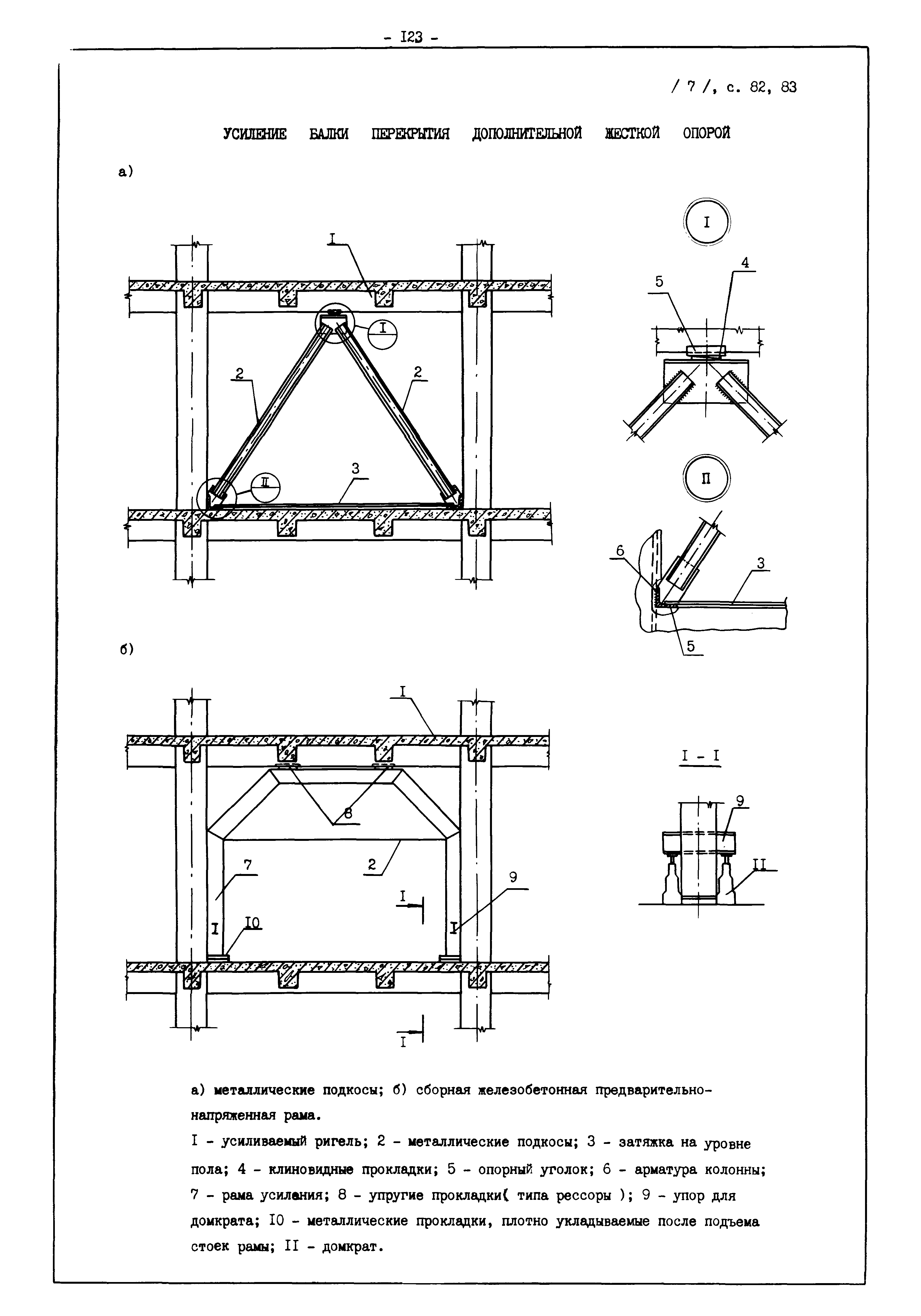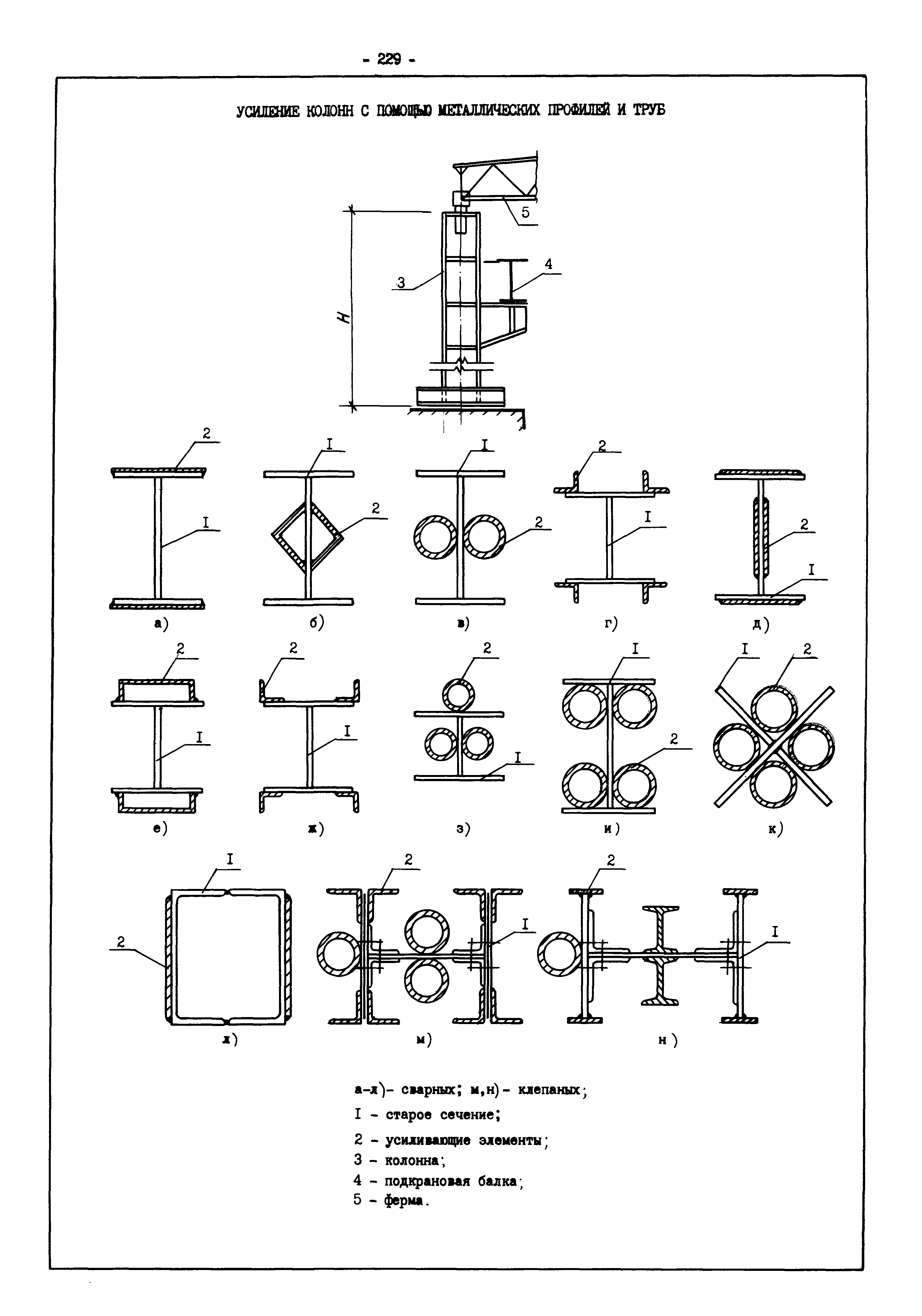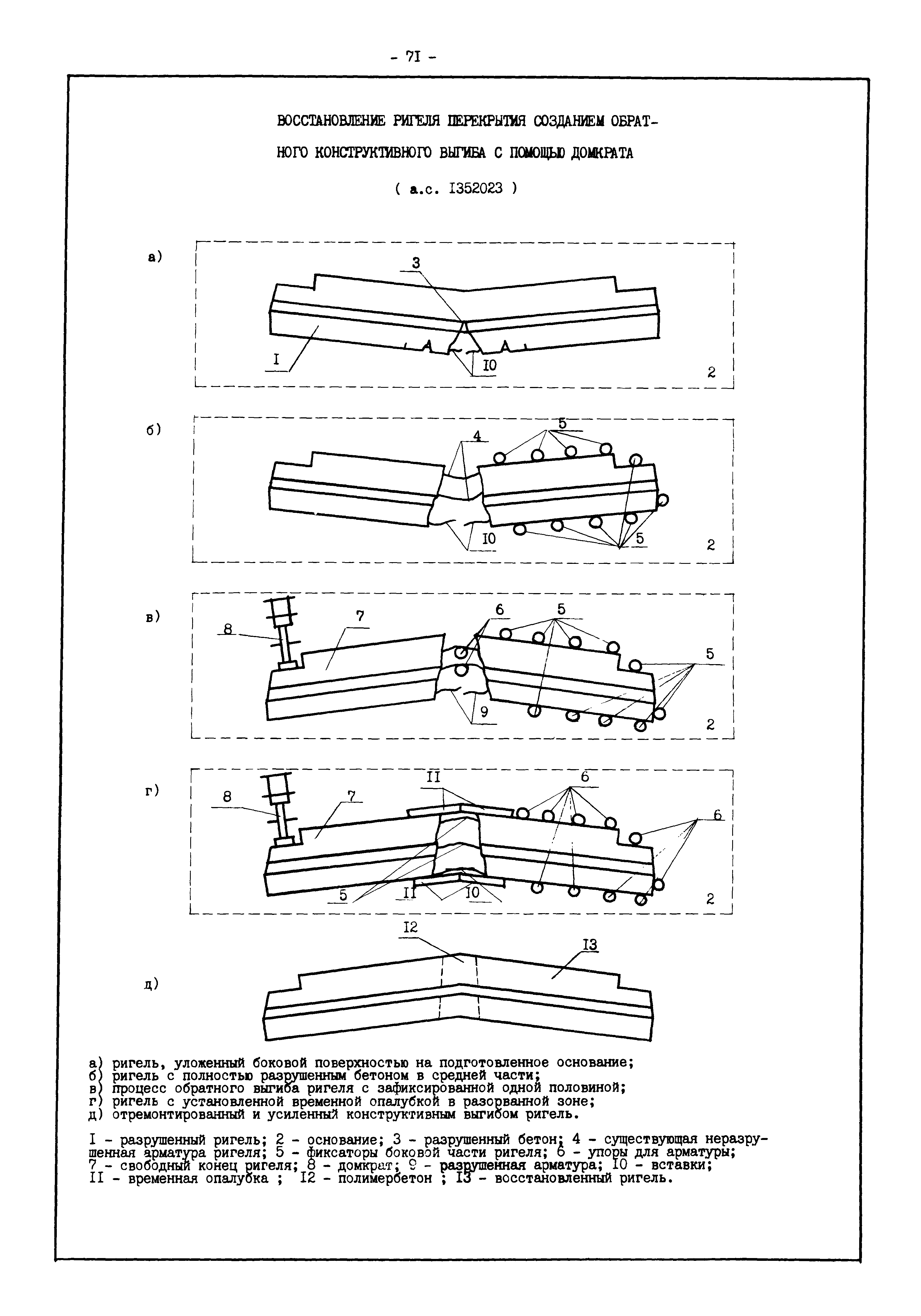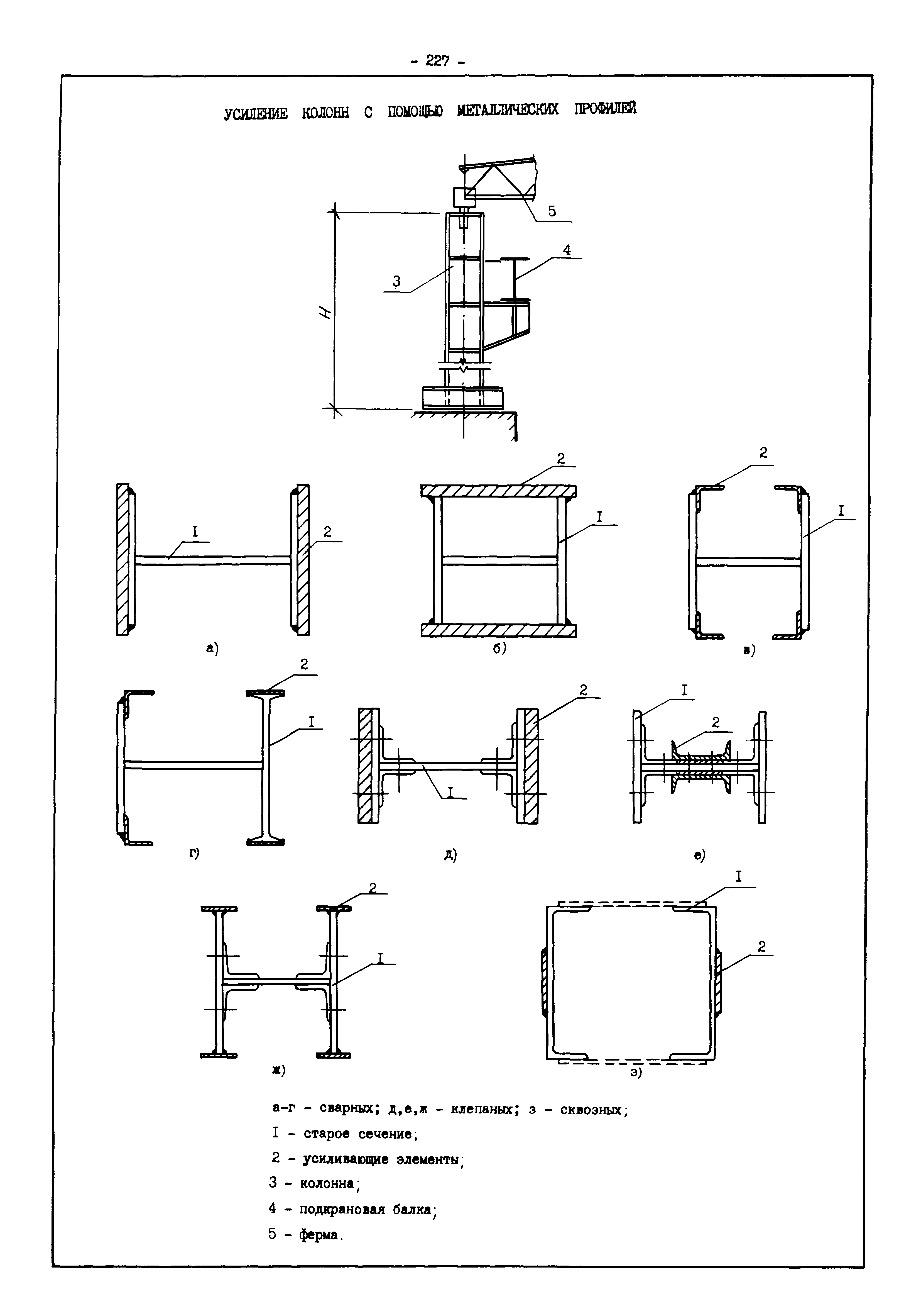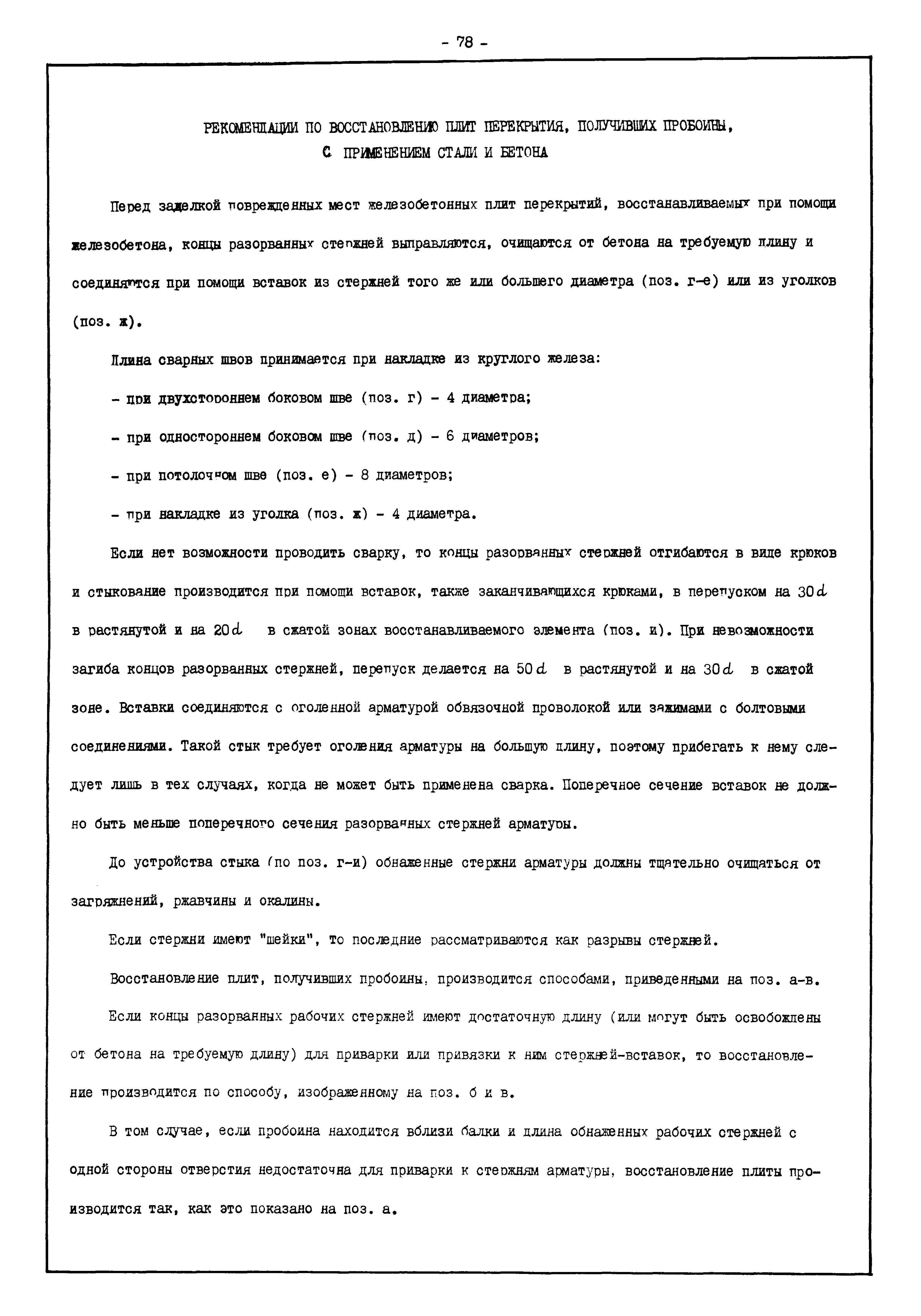 | Оглавление: | Введение I. Усиление и восстановление железобетонных конструкций Основные положения по усилению конструкций Оценка несущей способности железобетонных конструкций Основные положения по расчету и конструированию усилений Основные материалы для усиления и восстановления существующих железобетонных конструкций и требования к ним Требования к материалам для приготовления быстротвердеющих ремонтных составов Составы бетонов и растворов, предназначенных для усиления и восстановления строительных конструкций Усиление ребристых плит покрытия наращиванием Усиление ребристых плит покрытия при повреждении ребер Усиление сборной железобетонной плиты покрытия металлической балкой с подклинкой Усиление плит покрытия с помощью листов из волнистой стали Восстановление опирания ребристых плит покрытия на опоры Усиление продольных ребер плит покрытия Усиление сборных балок покрытия наращиванием сверху Усиление стропильных балок наращиванием снизу Усиление балок покрытия обоймой и дополнительными хомутами Усиление сжатой зоны стропильной балки обоймами Усиление железобетонной балки покрытия с помощью листов из фибробетона Усиление сборной балки покрытия шарнирно-стержневой цепью Усиление сборной балки покрытия шпренгелем Усиление железобетонной балки покрытия с помощью двухветьевой шпренгельной затяжки (а.с. СССР N 922257) Усиление стропильных балок подпружными системами Усиление опорных участков балок покрытия хомутами Усиление балок покрытия двухконсольной балочной системой Усиление верхнего пояса фермы Усиление нижнего пояса фермы Усиление стойки фермы Усиление раскоса и стойки фермы Усиление ребер сборных плит перекрытия с помощью дополнительной арматуры Усиление сборных плит перекрытия при помощи наклонных хомутов Усиление приопорных участков многопустотных плит перекрытий Усиление сборной многопустотной плиты перекрытия замоноличиванием каналов пустот Усиление сборной железобетонной плиты перекрытия с помощью изогнутого вниз стального листа (патент Японии N 56-54428) Восстановление ригеля перекрытия созданием обратного конструктивного выгиба с помощью домкрата (а.с. 1352023) Восстановление ригеля перекрытия созданием обратного конструктивного выгиба без домкрата (а.с. 1352023) Восстановление железобетонной балки путем подвешивания ее к металлической балке Восстановление плит перекрытия, получивших пробоины, с применением стали и бетона Восстановление безбалочного перекрытия, получившего пробоину величиной более 1 метра, деревянным щитом, не выступающим над полом Восстановление плит перекрытий, получивших пробоину величиной менее 1 метра, деревянным щитом, выступающим над полом Восстановление плит перекрытий, получивших пробоину менее 1 метра, деревянным щитом, не выступающим над полом Восстановление монолитных перекрытий, получивших пробоину величиной более 1 метра, деревянным щитом, не выступающим над полом Усиление монолитных плит перекрытия односторонним наращиванием Усиление железобетонной балки монолитного перекрытия наращиванием с помощью хомутов Усиление монолитной плиты перекрытия наращиванием с устройством железобетонных шпонок Восстановление железобетонных балок монолитного перекрытия при отколе Восстановление железбетонной балки монолитного перекрыти