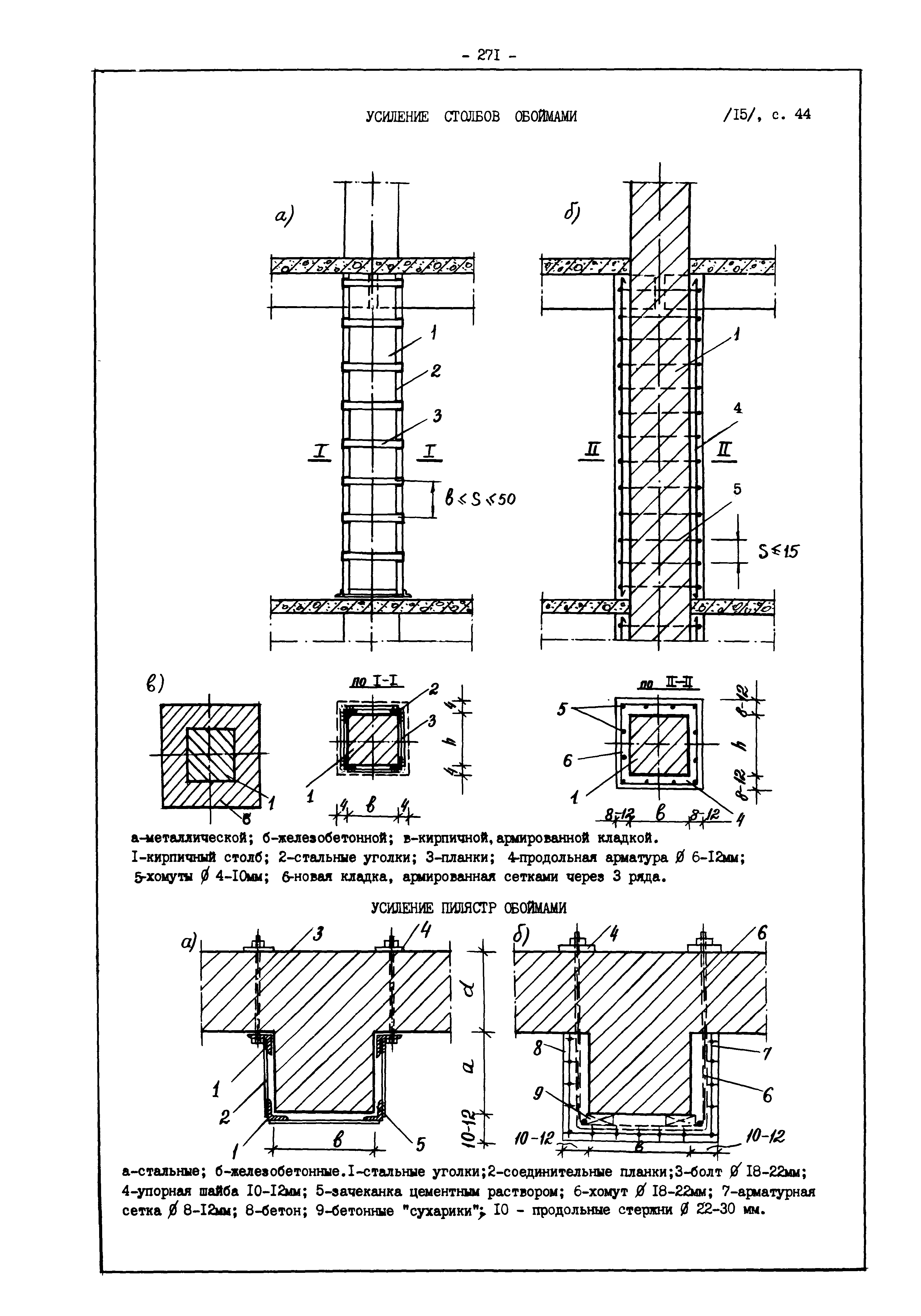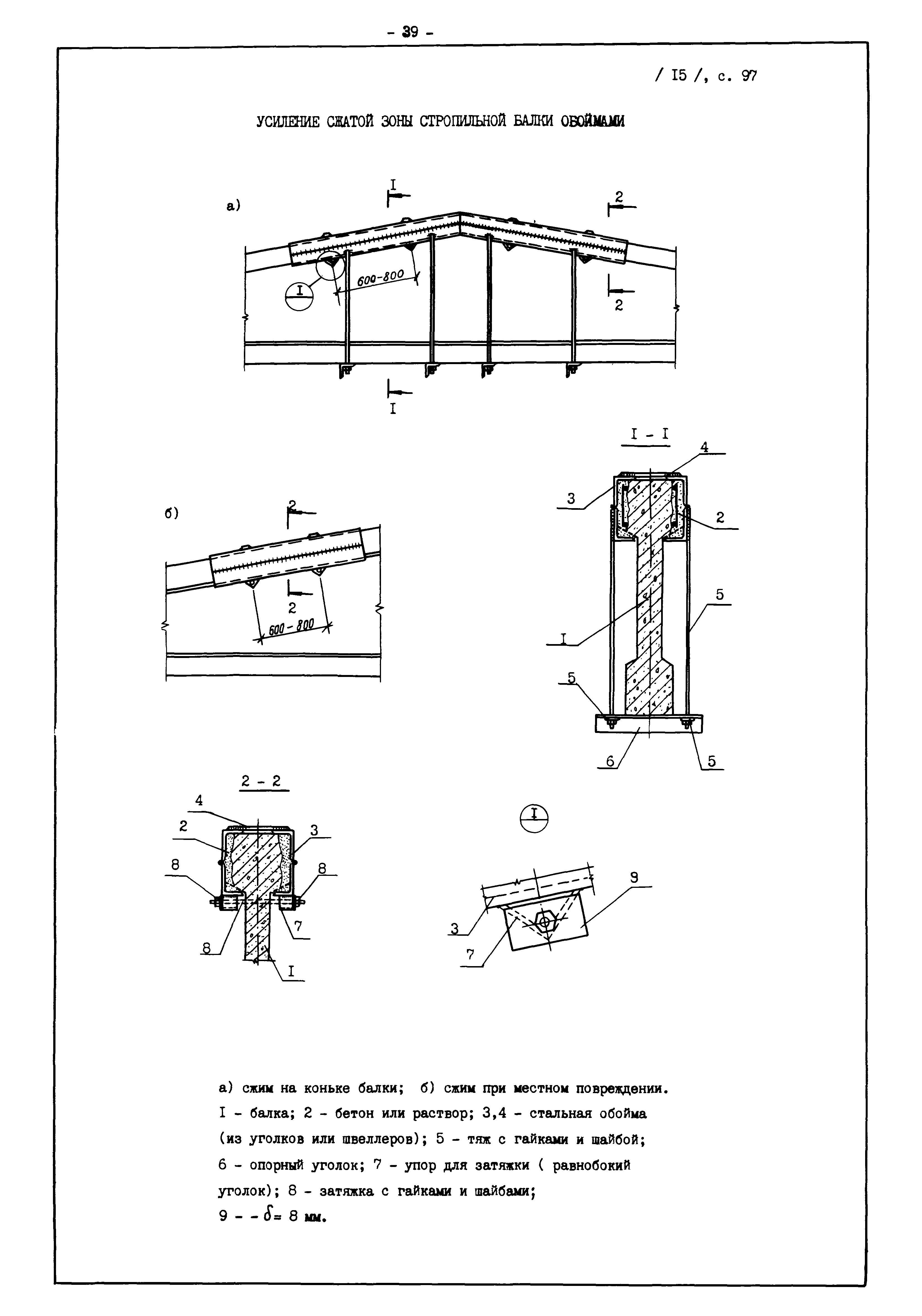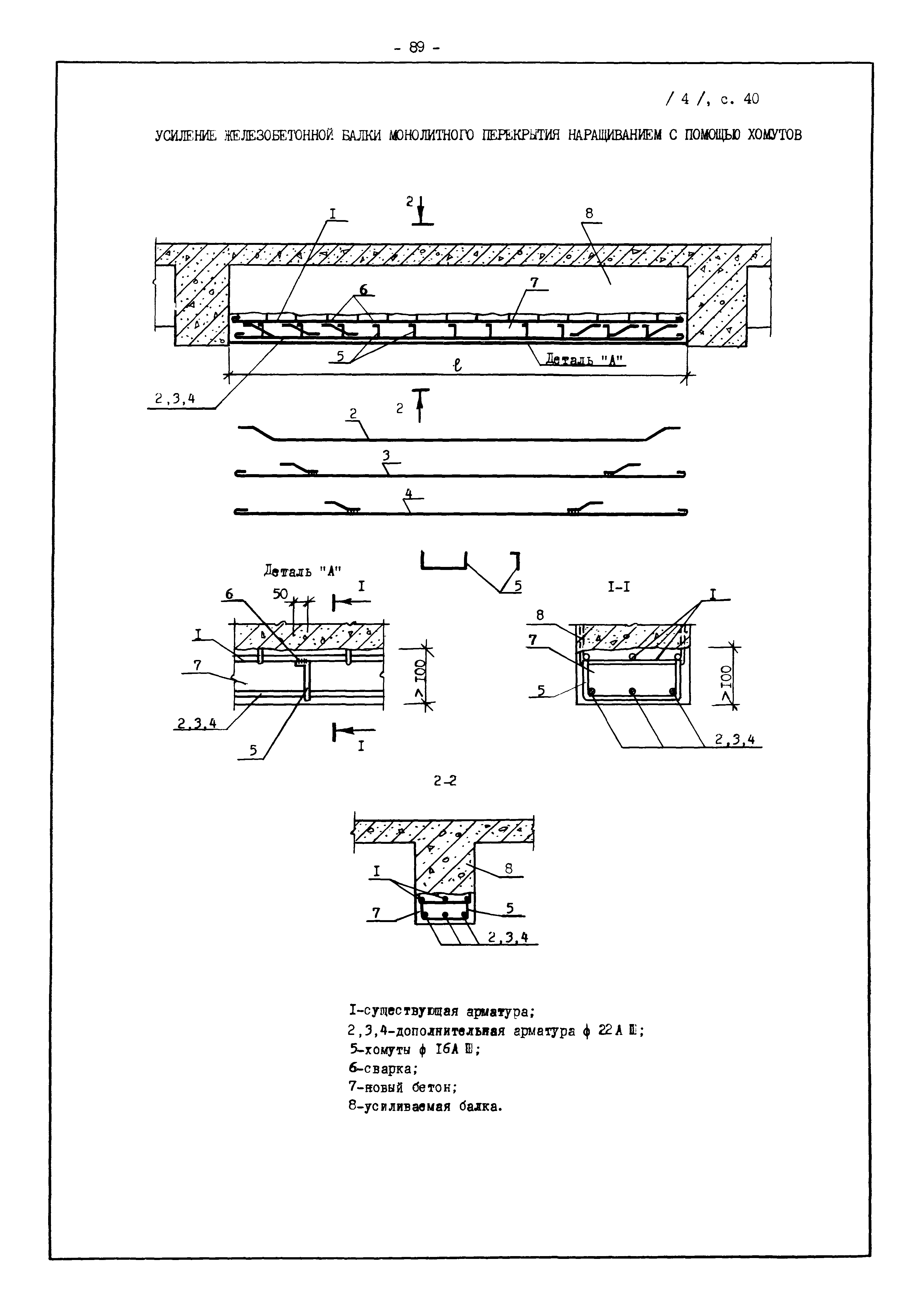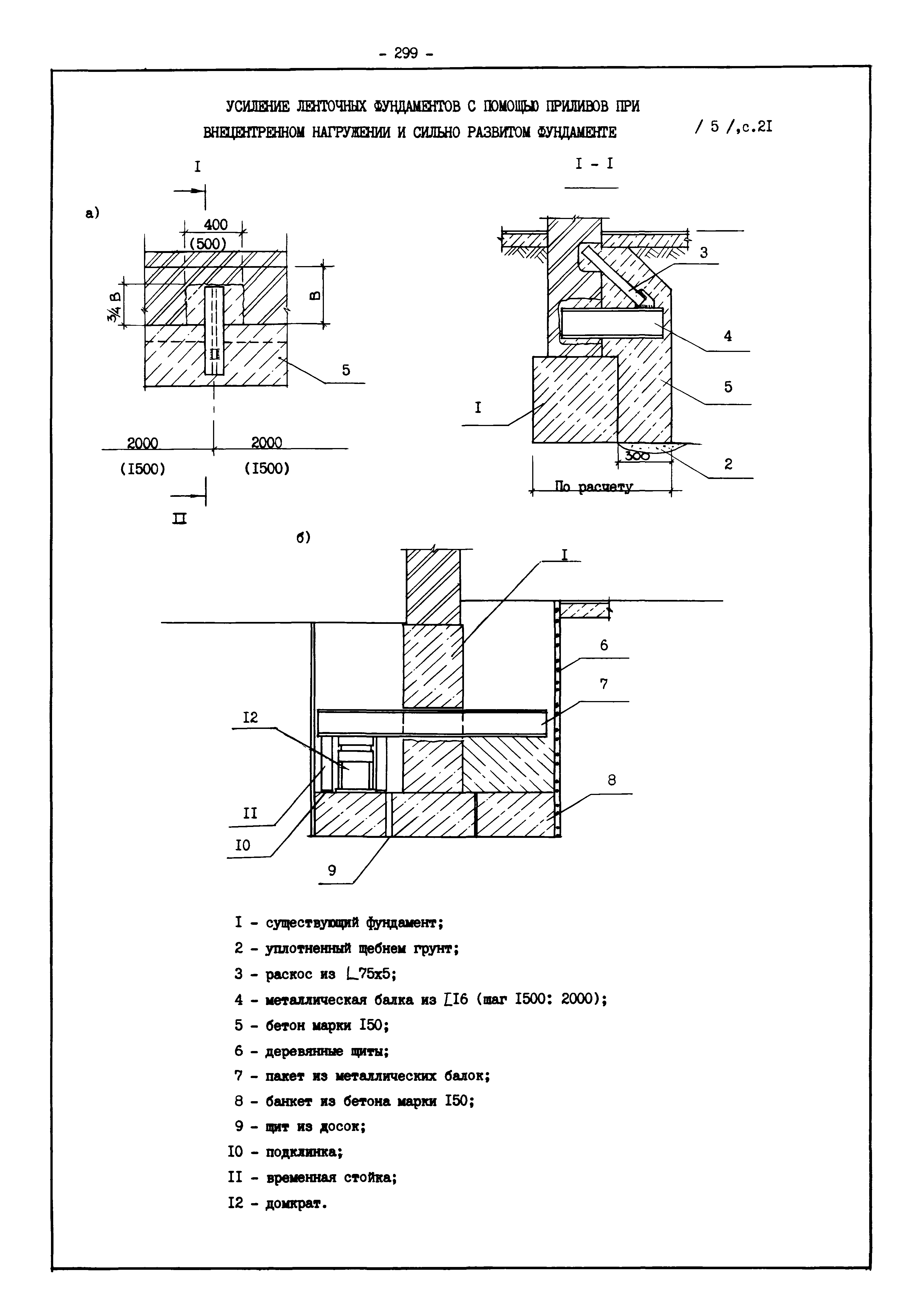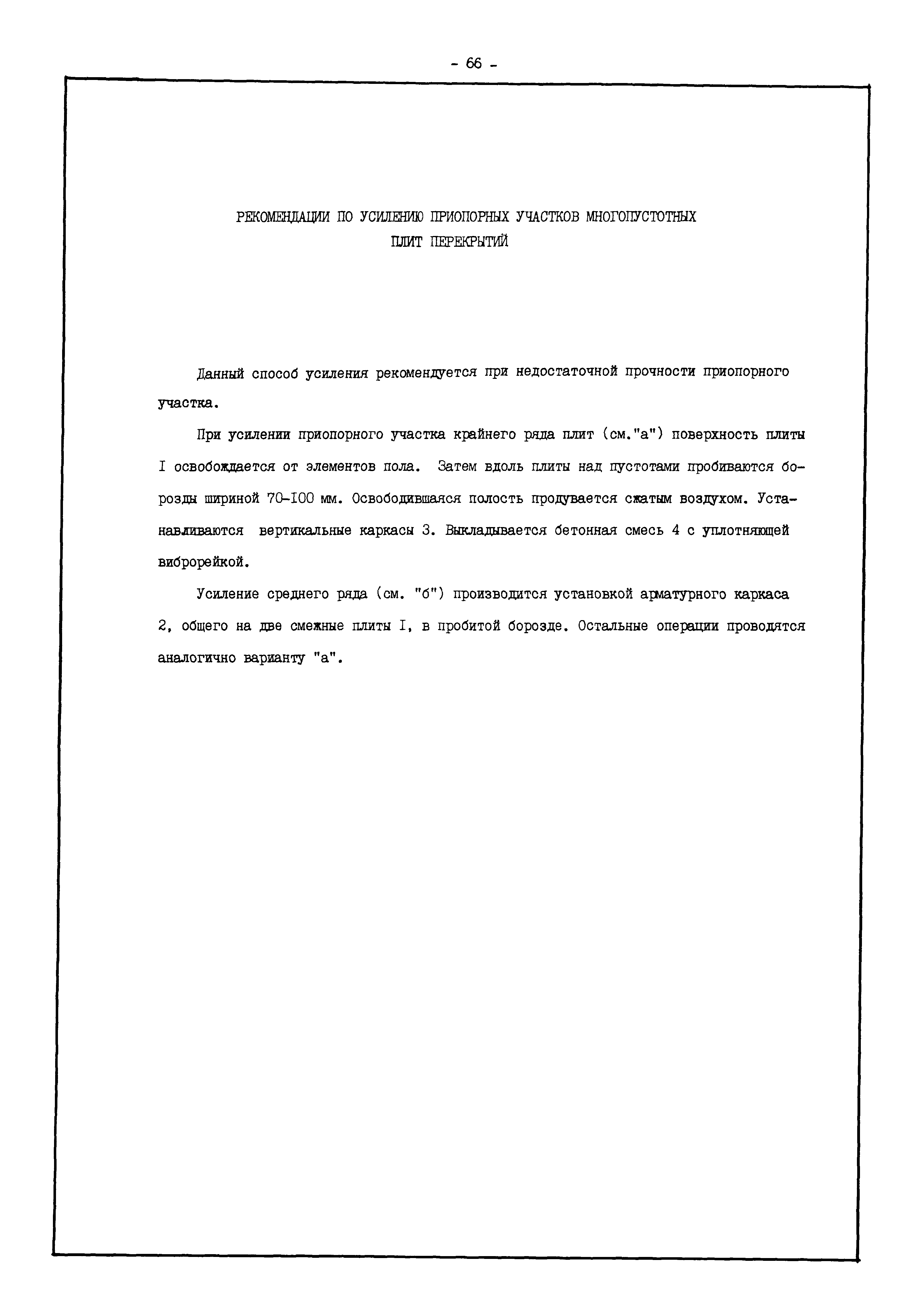 | Оглавление: | Введение I. Усиление и восстановление железобетонных конструкций Основные положения по усилению конструкций Оценка несущей способности железобетонных конструкций Основные положения по расчету и конструированию усилений Основные материалы для усиления и восстановления существующих железобетонных конструкций и требования к ним Требования к материалам для приготовления быстротвердеющих ремонтных составов Составы бетонов и растворов, предназначенных для усиления и восстановления строительных конструкций Усиление ребристых плит покрытия наращиванием Усиление ребристых плит покрытия при повреждении ребер Усиление сборной железобетонной плиты покрытия металлической балкой с подклинкой Усиление плит покрытия с помощью листов из волнистой стали Восстановление опирания ребристых плит покрытия на опоры Усиление продольных ребер плит покрытия Усиление сборных балок покрытия наращиванием сверху Усиление стропильных балок наращиванием снизу Усиление балок покрытия обоймой и дополнительными хомутами Усиление сжатой зоны стропильной балки обоймами Усиление железобетонной балки покрытия с помощью листов из фибробетона Усиление сборной балки покрытия шарнирно-стержневой цепью Усиление сборной балки покрытия шпренгелем Усиление железобетонной балки покрытия с помощью двухветьевой шпренгельной затяжки (а.с. СССР N 922257) Усиление стропильных балок подпружными системами Усиление опорных участков балок покрытия хомутами Усиление балок покрытия двухконсольной балочной системой Усиление верхнего пояса фермы Усиление нижнего пояса фермы Усиление стойки фермы Усиление раскоса и стойки фермы Усиление ребер сборных плит перекрытия с помощью дополнительной арматуры Усиление сборных плит перекрытия при помощи наклонных хомутов Усиление приопорных участков многопустотных плит перекрытий Усиление сборной многопустотной плиты перекрытия замоноличиванием каналов пустот Усиление сборной железобетонной плиты перекрытия с помощью изогнутого вниз стального листа (патент Японии N 56-54428) Восстановление ригеля перекрытия созданием обратного конструктивного выгиба с помощью домкрата (а.с. 1352023) Восстановление ригеля перекрытия созданием обратного конструктивного выгиба без домкрата (а.с. 1352023) Восстановление железобетонной балки путем подвешивания ее к металлической балке Восстановление плит перекрытия, получивших пробоины, с применением стали и бетона Восстановление безбалочного перекрытия, получившего пробоину величиной более 1 метра, деревянным щитом, не выступающим над полом Восстановление плит перекрытий, получивших пробоину величиной менее 1 метра, деревянным щитом, выступающим над полом Восстановление плит перекрытий, получивших пробоину менее 1 метра, деревянным щитом, не выступающим над полом Восстановление монолитных перекрытий, получивших пробоину величиной более 1 метра, деревянным щитом, не выступающим над полом Усиление монолитных плит перекрытия односторонним наращиванием Усиление железобетонной балки монолитного перекрытия наращиванием с помощью хомутов Усиление монолитной плиты перекрытия наращиванием с устройством железобетонных шпонок Восстановление железобетонных балок монолитного перекрытия при отколе Восстановление железбетонной балки монолитного перекрыти