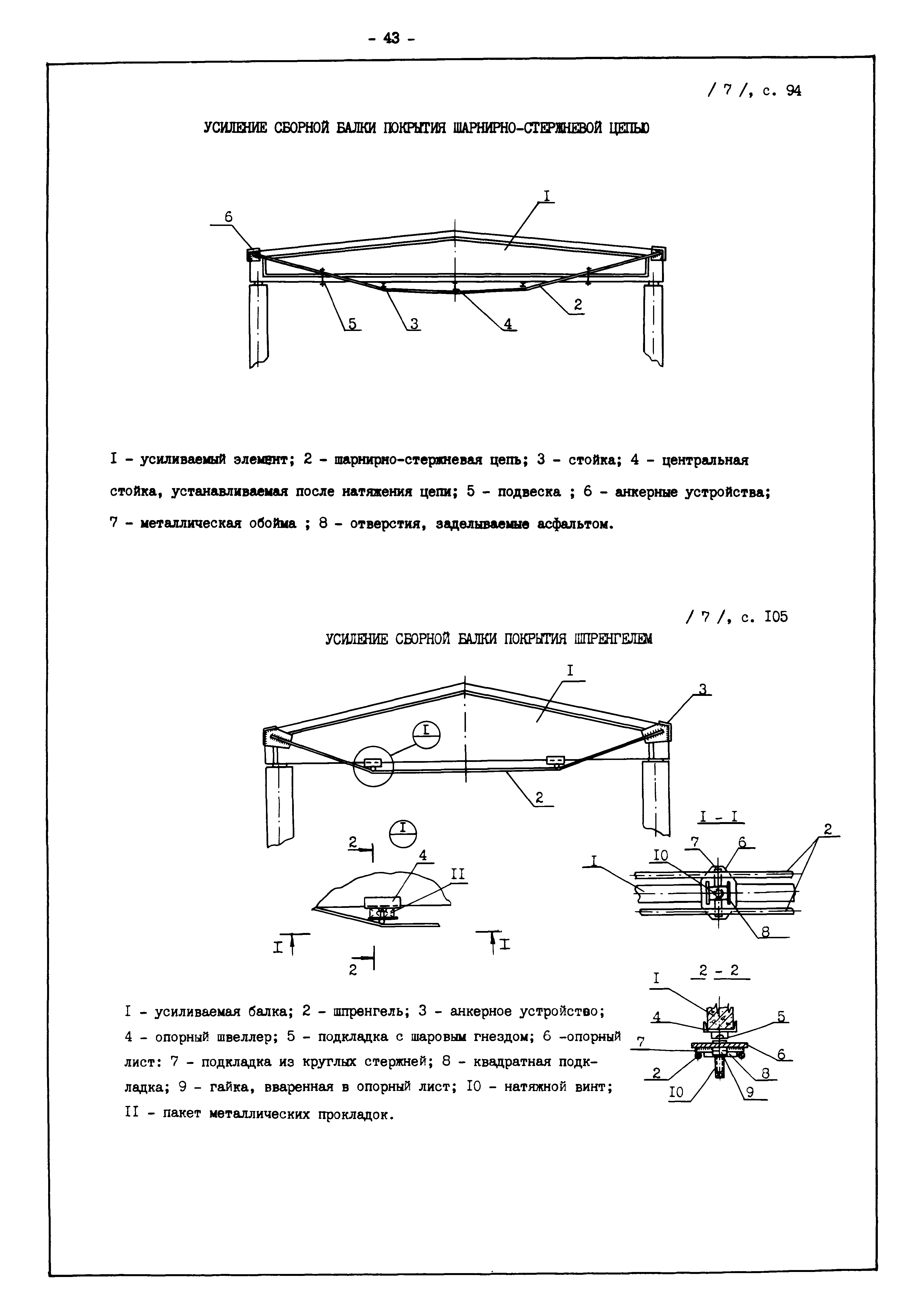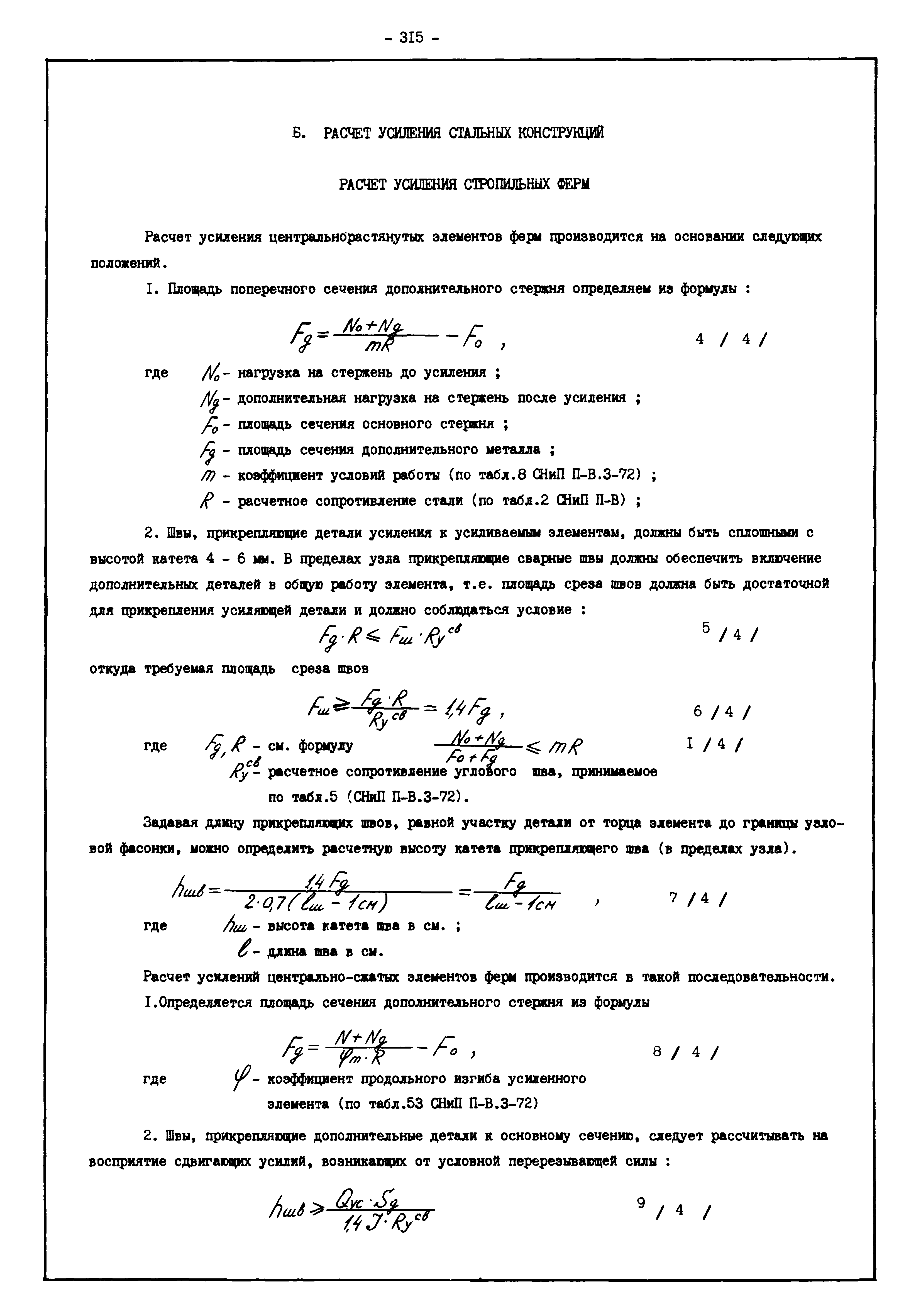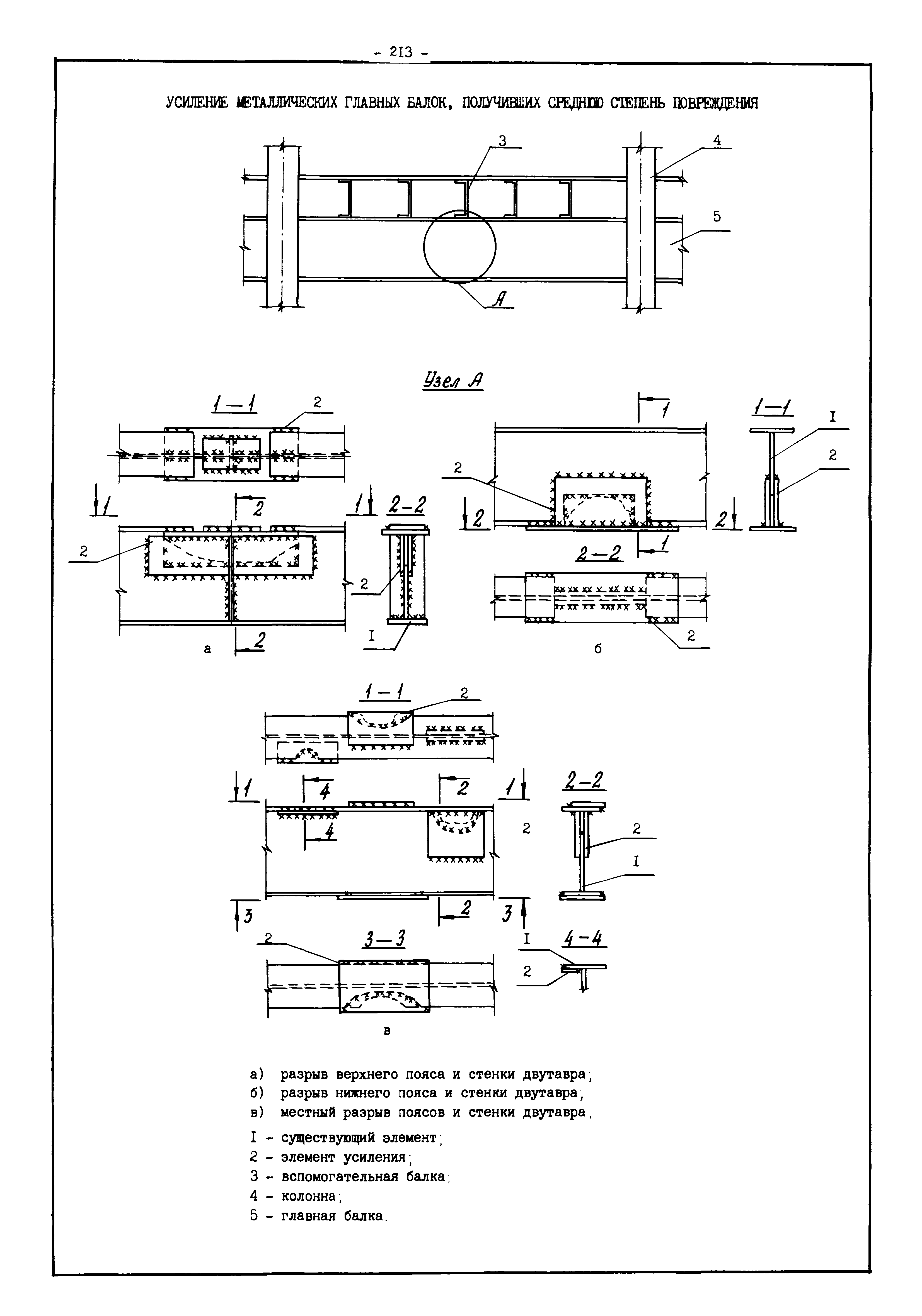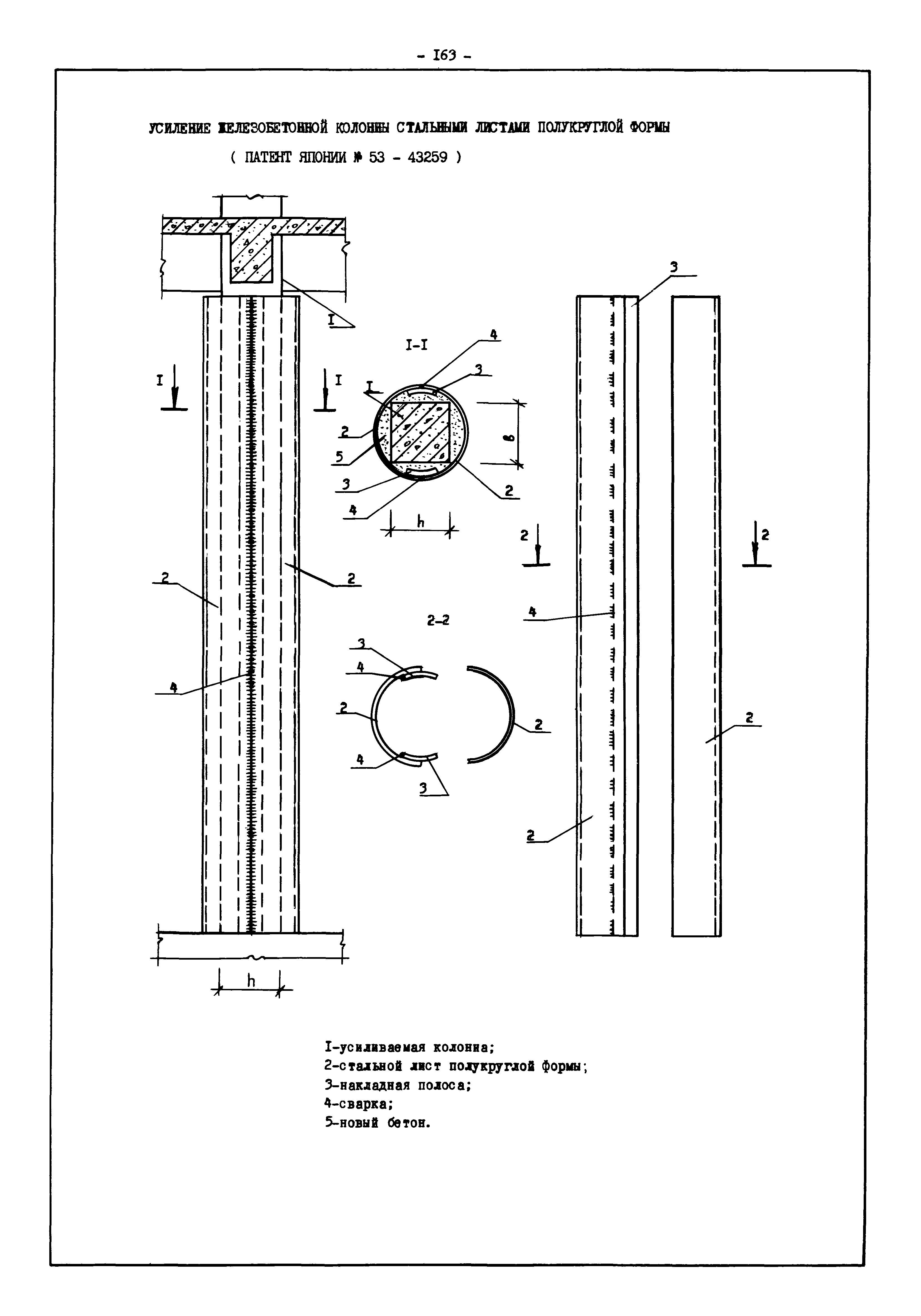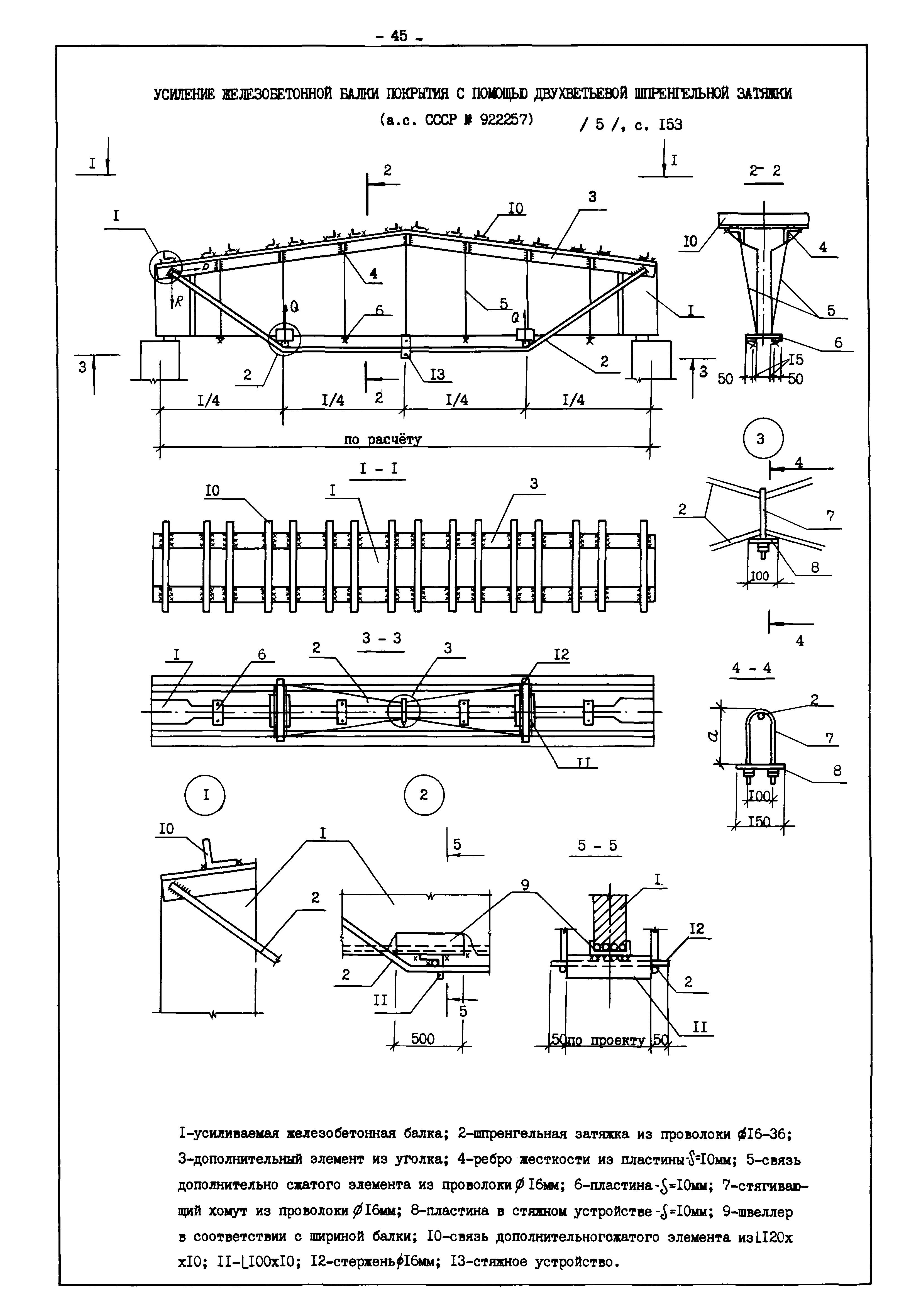 | Оглавление: | Введение I. Усиление и восстановление железобетонных конструкций Основные положения по усилению конструкций Оценка несущей способности железобетонных конструкций Основные положения по расчету и конструированию усилений Основные материалы для усиления и восстановления существующих железобетонных конструкций и требования к ним Требования к материалам для приготовления быстротвердеющих ремонтных составов Составы бетонов и растворов, предназначенных для усиления и восстановления строительных конструкций Усиление ребристых плит покрытия наращиванием Усиление ребристых плит покрытия при повреждении ребер Усиление сборной железобетонной плиты покрытия металлической балкой с подклинкой Усиление плит покрытия с помощью листов из волнистой стали Восстановление опирания ребристых плит покрытия на опоры Усиление продольных ребер плит покрытия Усиление сборных балок покрытия наращиванием сверху Усиление стропильных балок наращиванием снизу Усиление балок покрытия обоймой и дополнительными хомутами Усиление сжатой зоны стропильной балки обоймами Усиление железобетонной балки покрытия с помощью листов из фибробетона Усиление сборной балки покрытия шарнирно-стержневой цепью Усиление сборной балки покрытия шпренгелем Усиление железобетонной балки покрытия с помощью двухветьевой шпренгельной затяжки (а.с. СССР N 922257) Усиление стропильных балок подпружными системами Усиление опорных участков балок покрытия хомутами Усиление балок покрытия двухконсольной балочной системой Усиление верхнего пояса фермы Усиление нижнего пояса фермы Усиление стойки фермы Усиление раскоса и стойки фермы Усиление ребер сборных плит перекрытия с помощью дополнительной арматуры Усиление сборных плит перекрытия при помощи наклонных хомутов Усиление приопорных участков многопустотных плит перекрытий Усиление сборной многопустотной плиты перекрытия замоноличиванием каналов пустот Усиление сборной железобетонной плиты перекрытия с помощью изогнутого вниз стального листа (патент Японии N 56-54428) Восстановление ригеля перекрытия созданием обратного конструктивного выгиба с помощью домкрата (а.с. 1352023) Восстановление ригеля перекрытия созданием обратного конструктивного выгиба без домкрата (а.с. 1352023) Восстановление железобетонной балки путем подвешивания ее к металлической балке Восстановление плит перекрытия, получивших пробоины, с применением стали и бетона Восстановление безбалочного перекрытия, получившего пробоину величиной более 1 метра, деревянным щитом, не выступающим над полом Восстановление плит перекрытий, получивших пробоину величиной менее 1 метра, деревянным щитом, выступающим над полом Восстановление плит перекрытий, получивших пробоину менее 1 метра, деревянным щитом, не выступающим над полом Восстановление монолитных перекрытий, получивших пробоину величиной более 1 метра, деревянным щитом, не выступающим над полом Усиление монолитных плит перекрытия односторонним наращиванием Усиление железобетонной балки монолитного перекрытия наращиванием с помощью хомутов Усиление монолитной плиты перекрытия наращиванием с устройством железобетонных шпонок Восстановление железобетонных балок монолитного перекрытия при отколе Восстановление железбетонной балки монолитного перекрыти