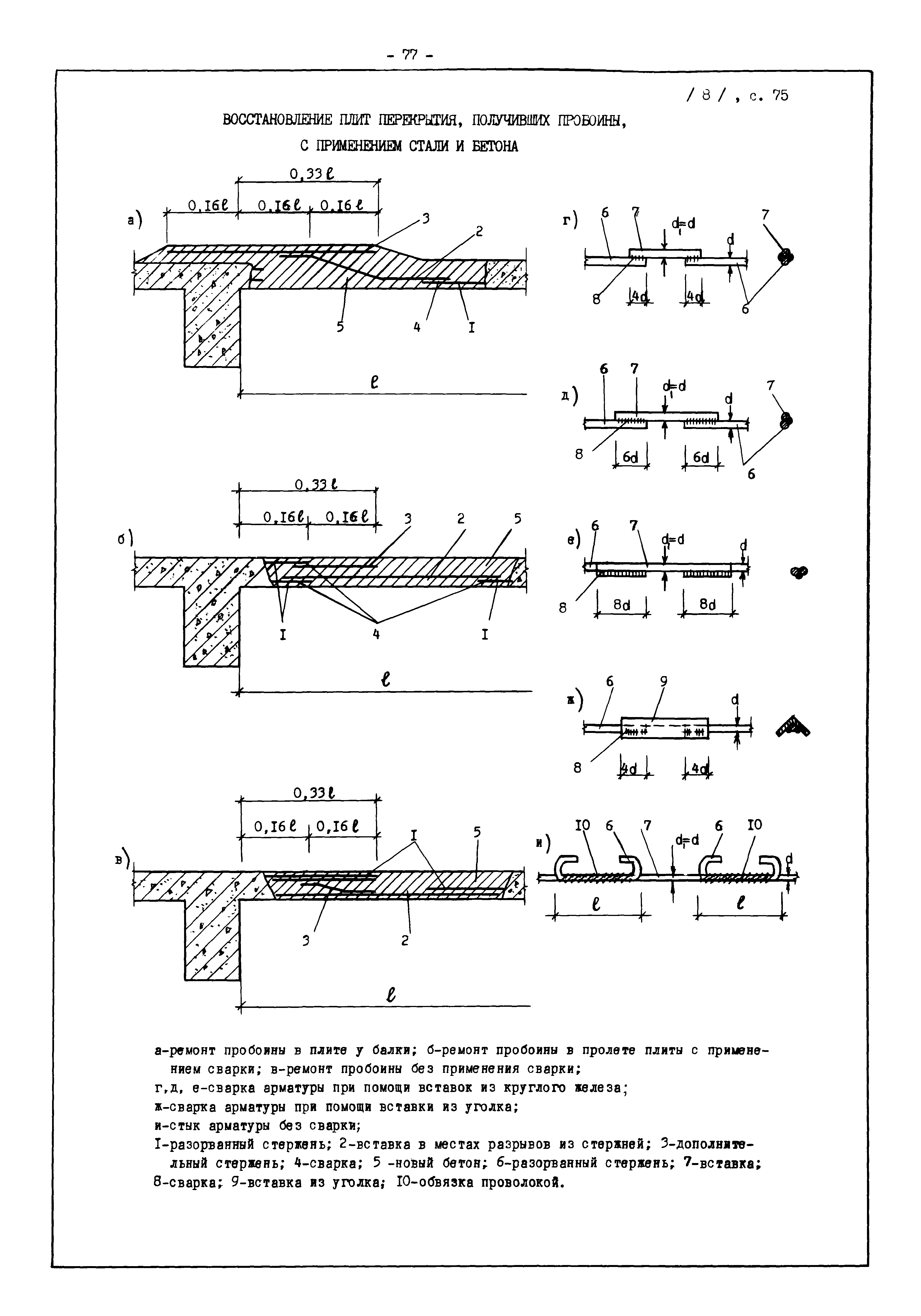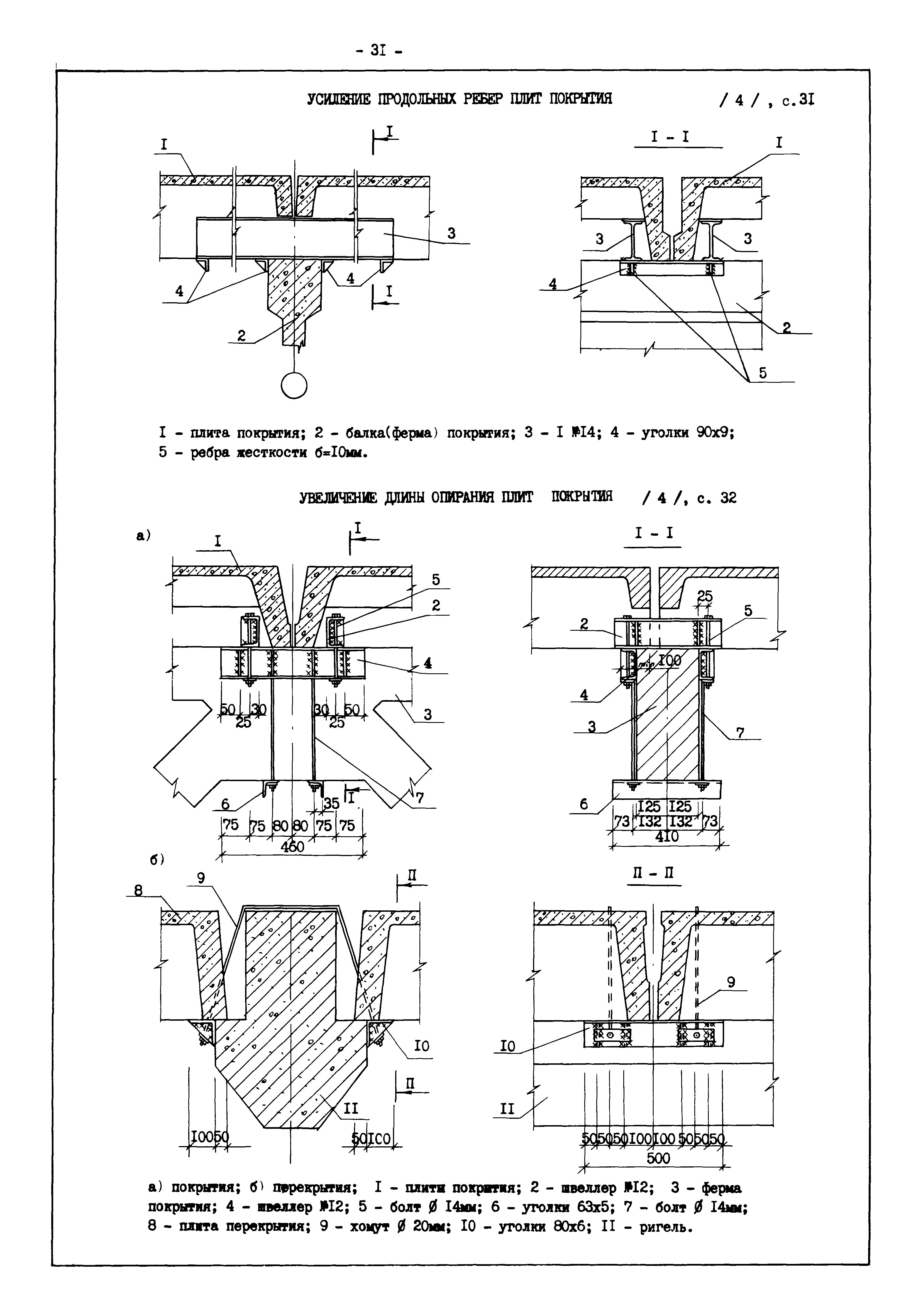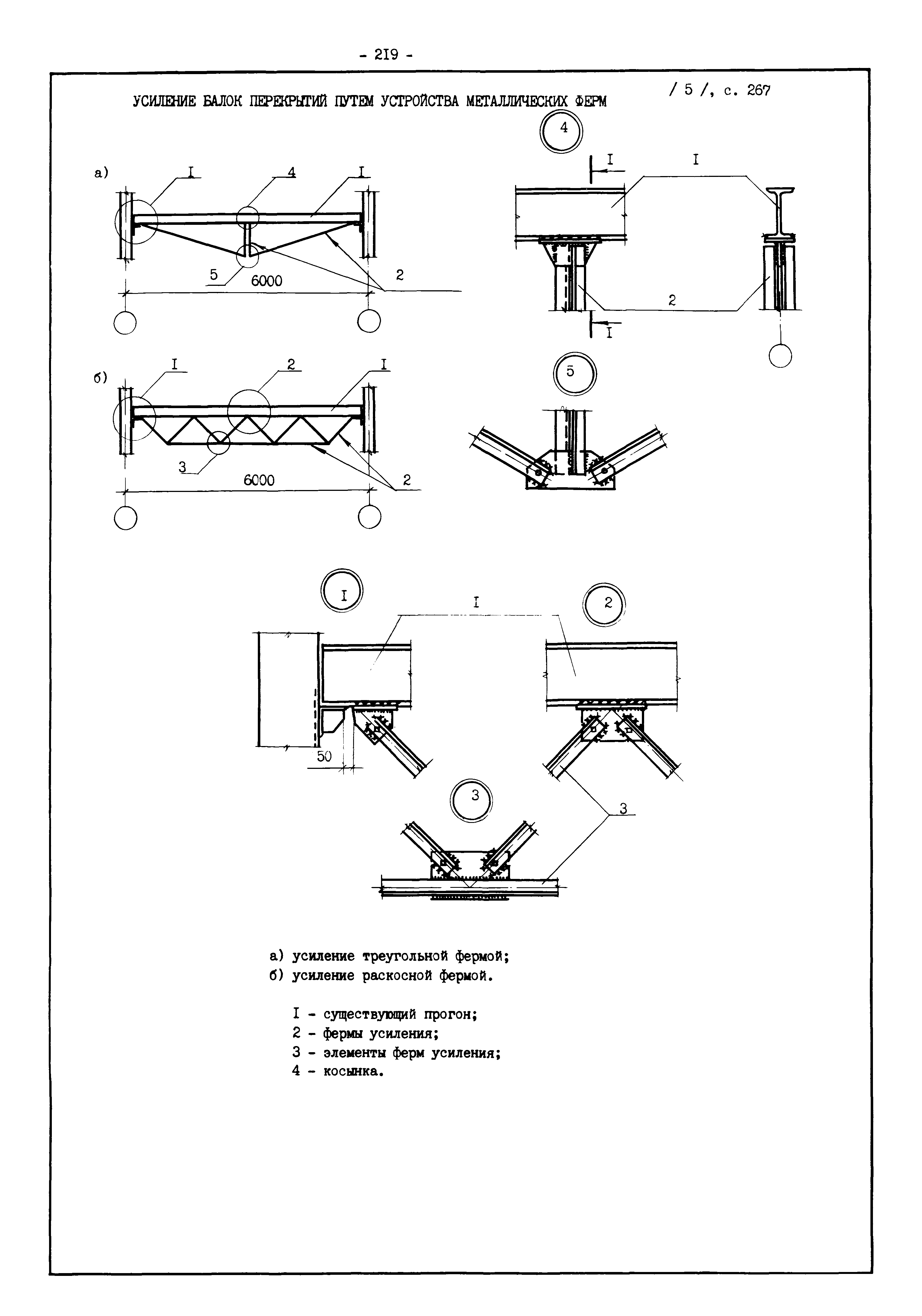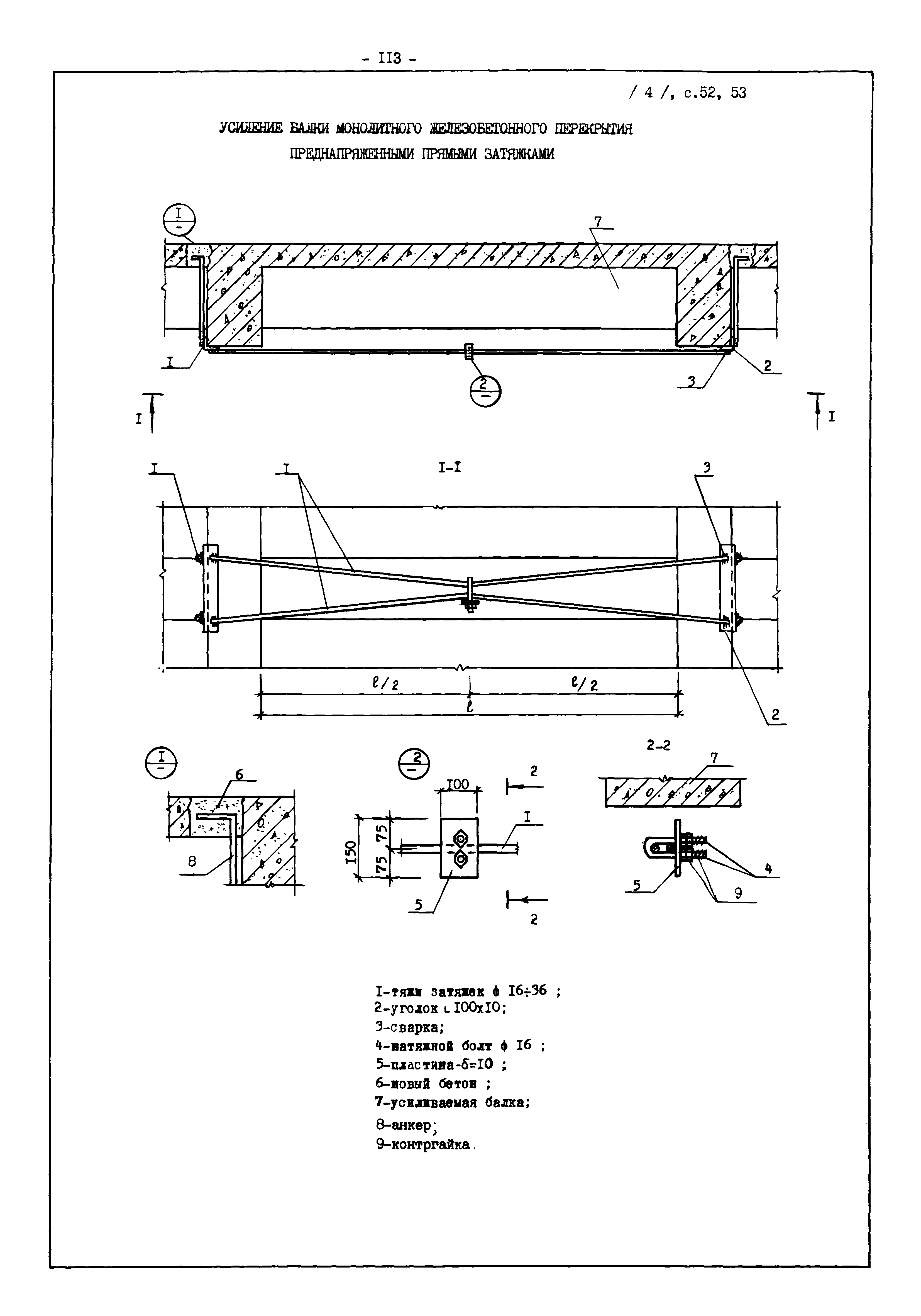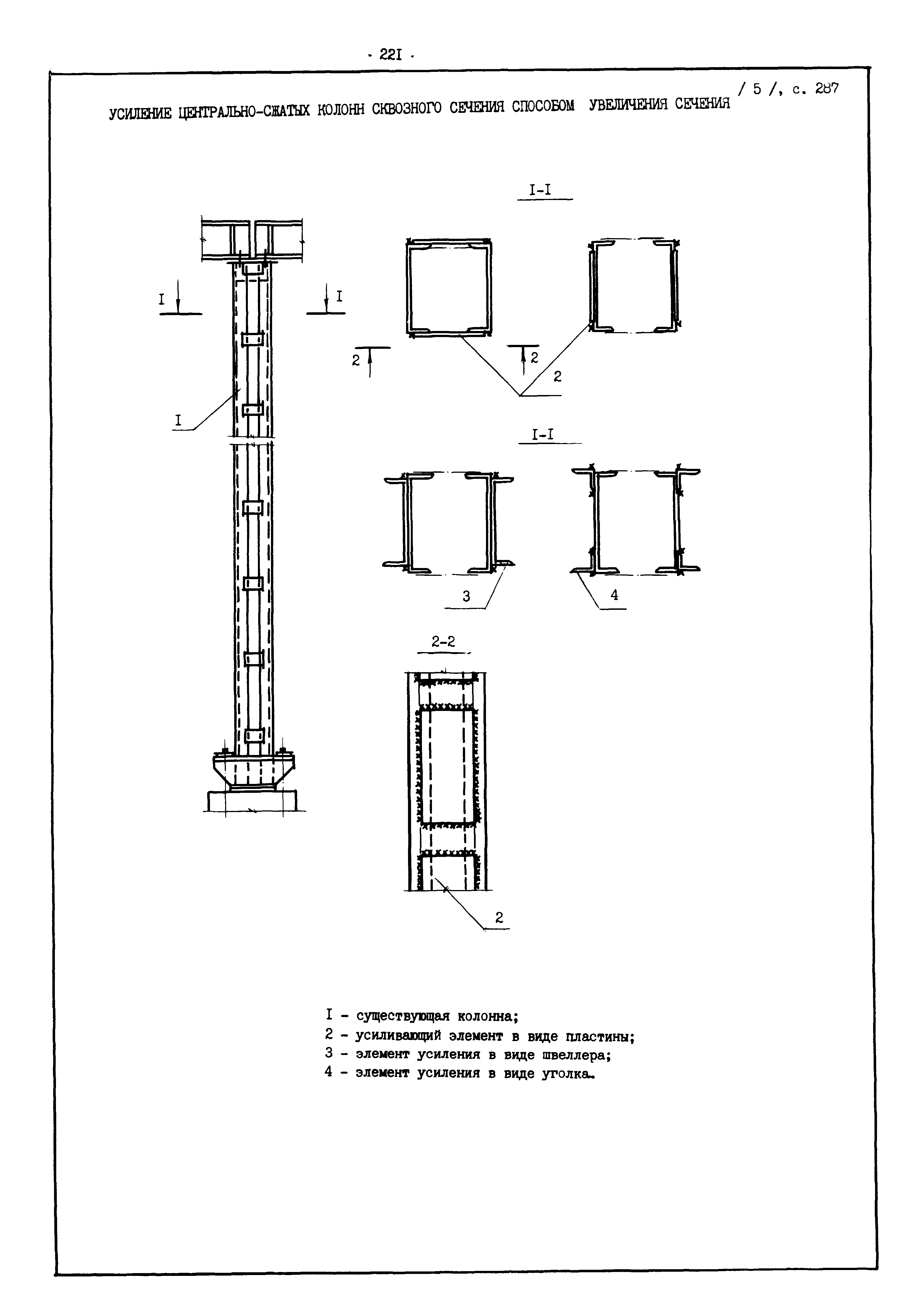 | Оглавление: | Введение I. Усиление и восстановление железобетонных конструкций Основные положения по усилению конструкций Оценка несущей способности железобетонных конструкций Основные положения по расчету и конструированию усилений Основные материалы для усиления и восстановления существующих железобетонных конструкций и требования к ним Требования к материалам для приготовления быстротвердеющих ремонтных составов Составы бетонов и растворов, предназначенных для усиления и восстановления строительных конструкций Усиление ребристых плит покрытия наращиванием Усиление ребристых плит покрытия при повреждении ребер Усиление сборной железобетонной плиты покрытия металлической балкой с подклинкой Усиление плит покрытия с помощью листов из волнистой стали Восстановление опирания ребристых плит покрытия на опоры Усиление продольных ребер плит покрытия Усиление сборных балок покрытия наращиванием сверху Усиление стропильных балок наращиванием снизу Усиление балок покрытия обоймой и дополнительными хомутами Усиление сжатой зоны стропильной балки обоймами Усиление железобетонной балки покрытия с помощью листов из фибробетона Усиление сборной балки покрытия шарнирно-стержневой цепью Усиление сборной балки покрытия шпренгелем Усиление железобетонной балки покрытия с помощью двухветьевой шпренгельной затяжки (а.с. СССР N 922257) Усиление стропильных балок подпружными системами Усиление опорных участков балок покрытия хомутами Усиление балок покрытия двухконсольной балочной системой Усиление верхнего пояса фермы Усиление нижнего пояса фермы Усиление стойки фермы Усиление раскоса и стойки фермы Усиление ребер сборных плит перекрытия с помощью дополнительной арматуры Усиление сборных плит перекрытия при помощи наклонных хомутов Усиление приопорных участков многопустотных плит перекрытий Усиление сборной многопустотной плиты перекрытия замоноличиванием каналов пустот Усиление сборной железобетонной плиты перекрытия с помощью изогнутого вниз стального листа (патент Японии N 56-54428) Восстановление ригеля перекрытия созданием обратного конструктивного выгиба с помощью домкрата (а.с. 1352023) Восстановление ригеля перекрытия созданием обратного конструктивного выгиба без домкрата (а.с. 1352023) Восстановление железобетонной балки путем подвешивания ее к металлической балке Восстановление плит перекрытия, получивших пробоины, с применением стали и бетона Восстановление безбалочного перекрытия, получившего пробоину величиной более 1 метра, деревянным щитом, не выступающим над полом Восстановление плит перекрытий, получивших пробоину величиной менее 1 метра, деревянным щитом, выступающим над полом Восстановление плит перекрытий, получивших пробоину менее 1 метра, деревянным щитом, не выступающим над полом Восстановление монолитных перекрытий, получивших пробоину величиной более 1 метра, деревянным щитом, не выступающим над полом Усиление монолитных плит перекрытия односторонним наращиванием Усиление железобетонной балки монолитного перекрытия наращиванием с помощью хомутов Усиление монолитной плиты перекрытия наращиванием с устройством железобетонных шпонок Восстановление железобетонных балок монолитного перекрытия при отколе Восстановление железбетонной балки монолитного перекрыти