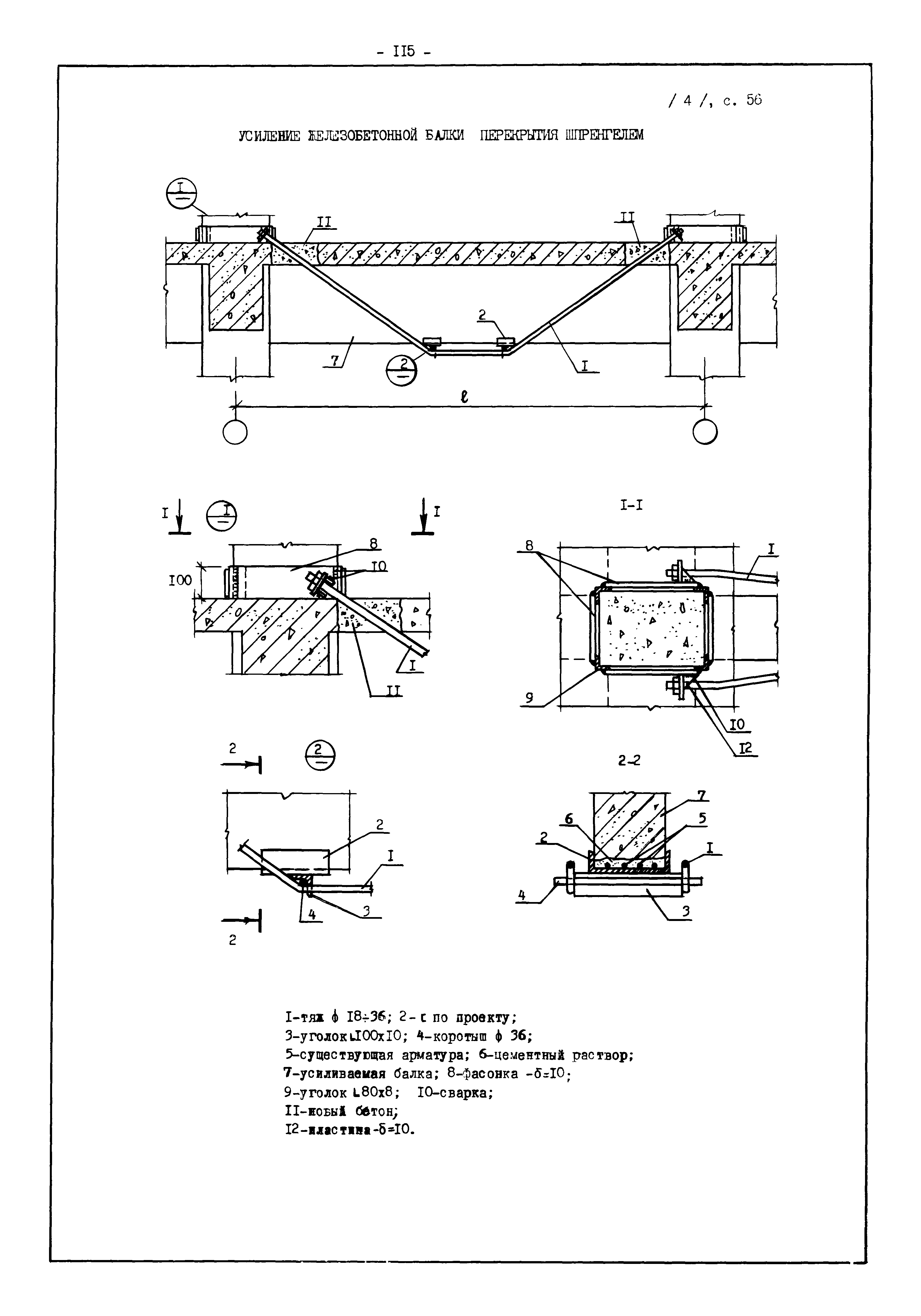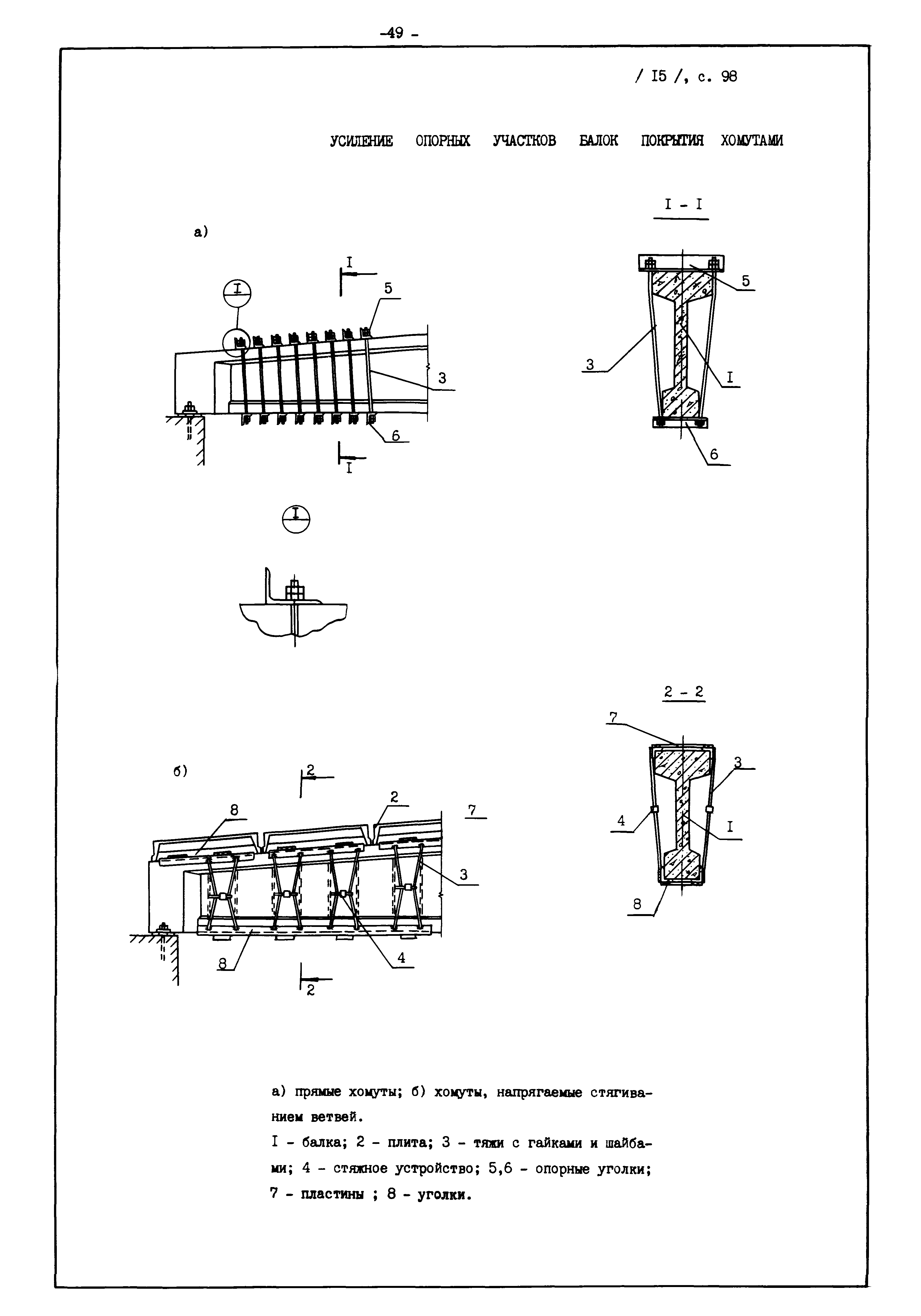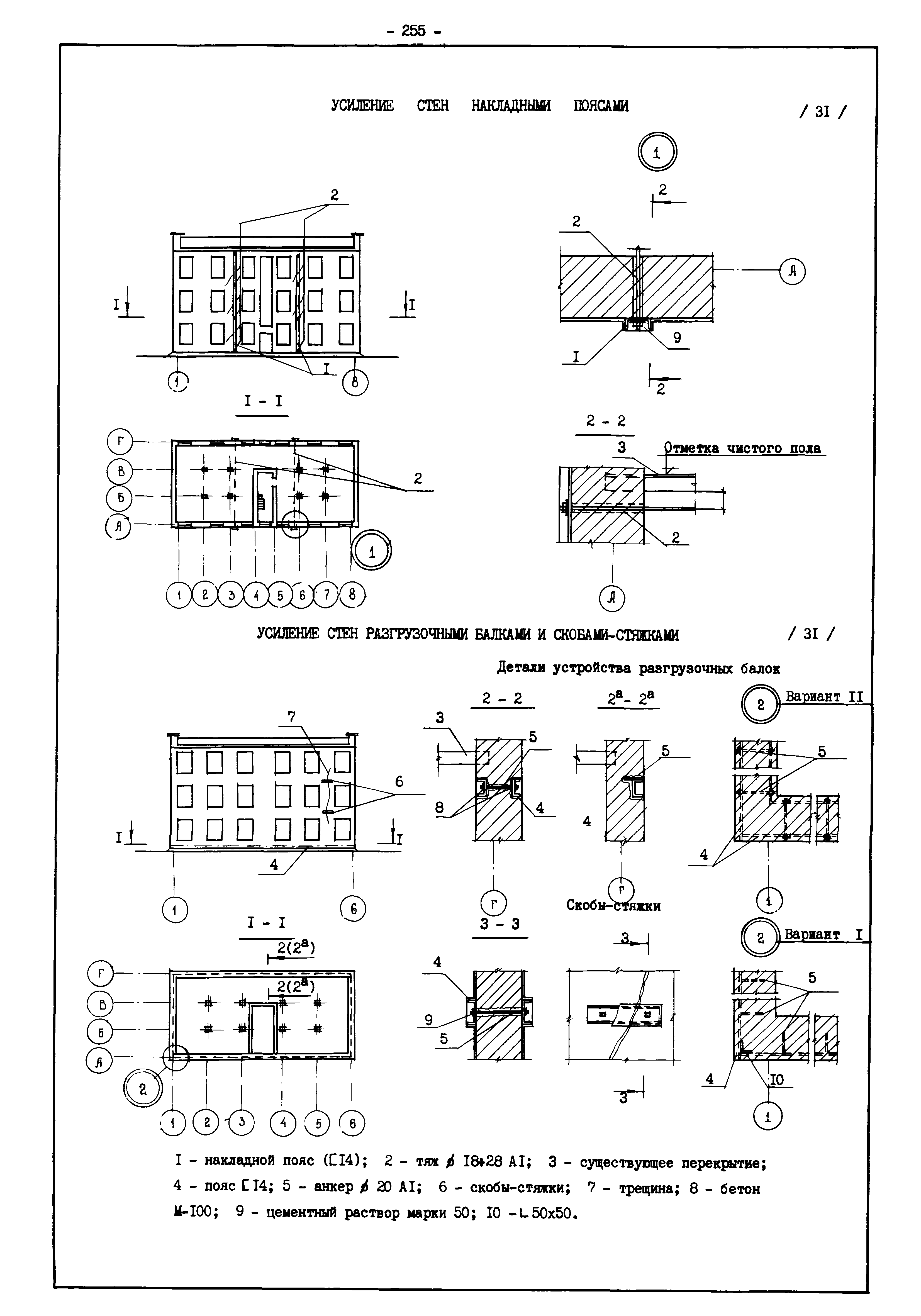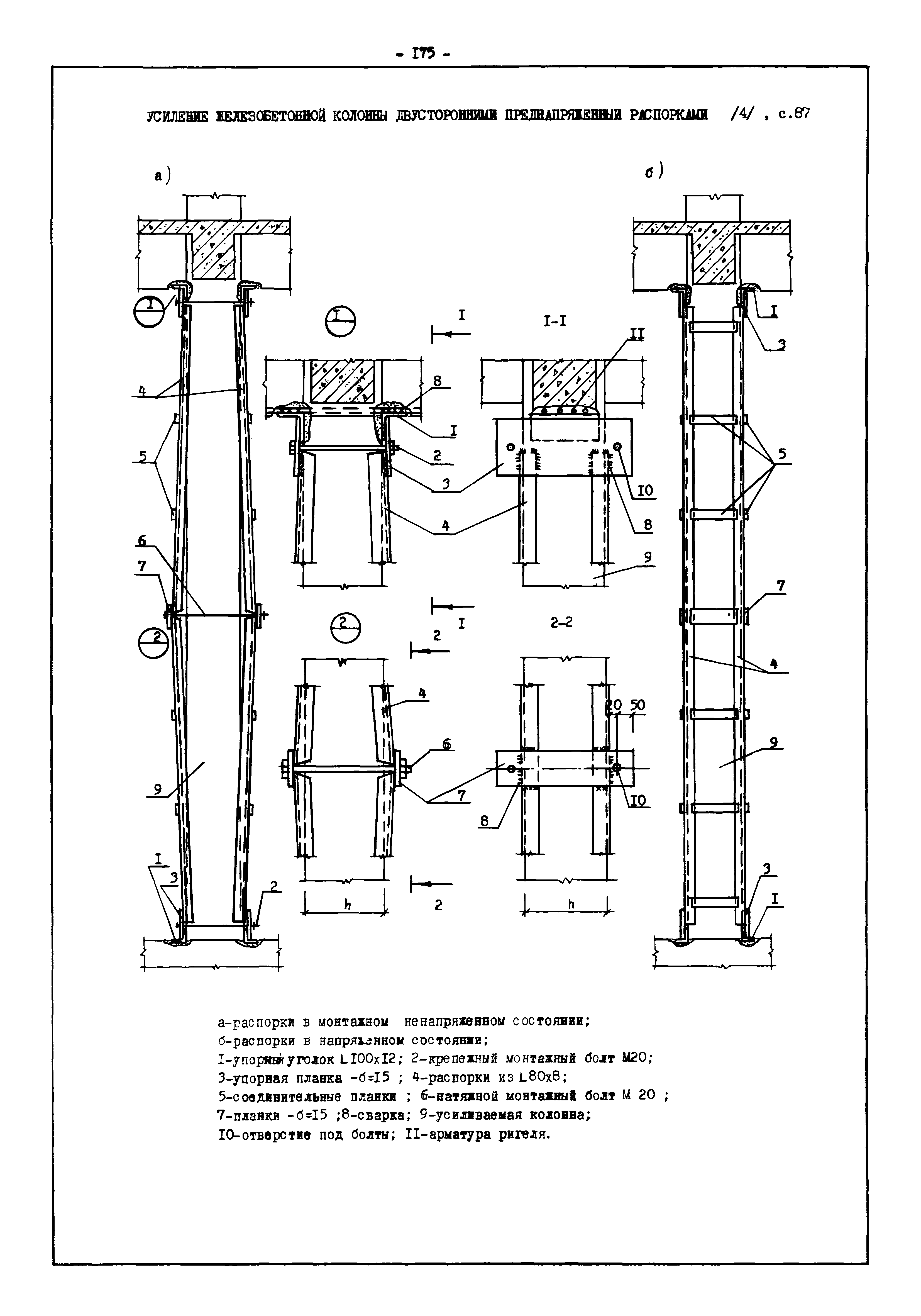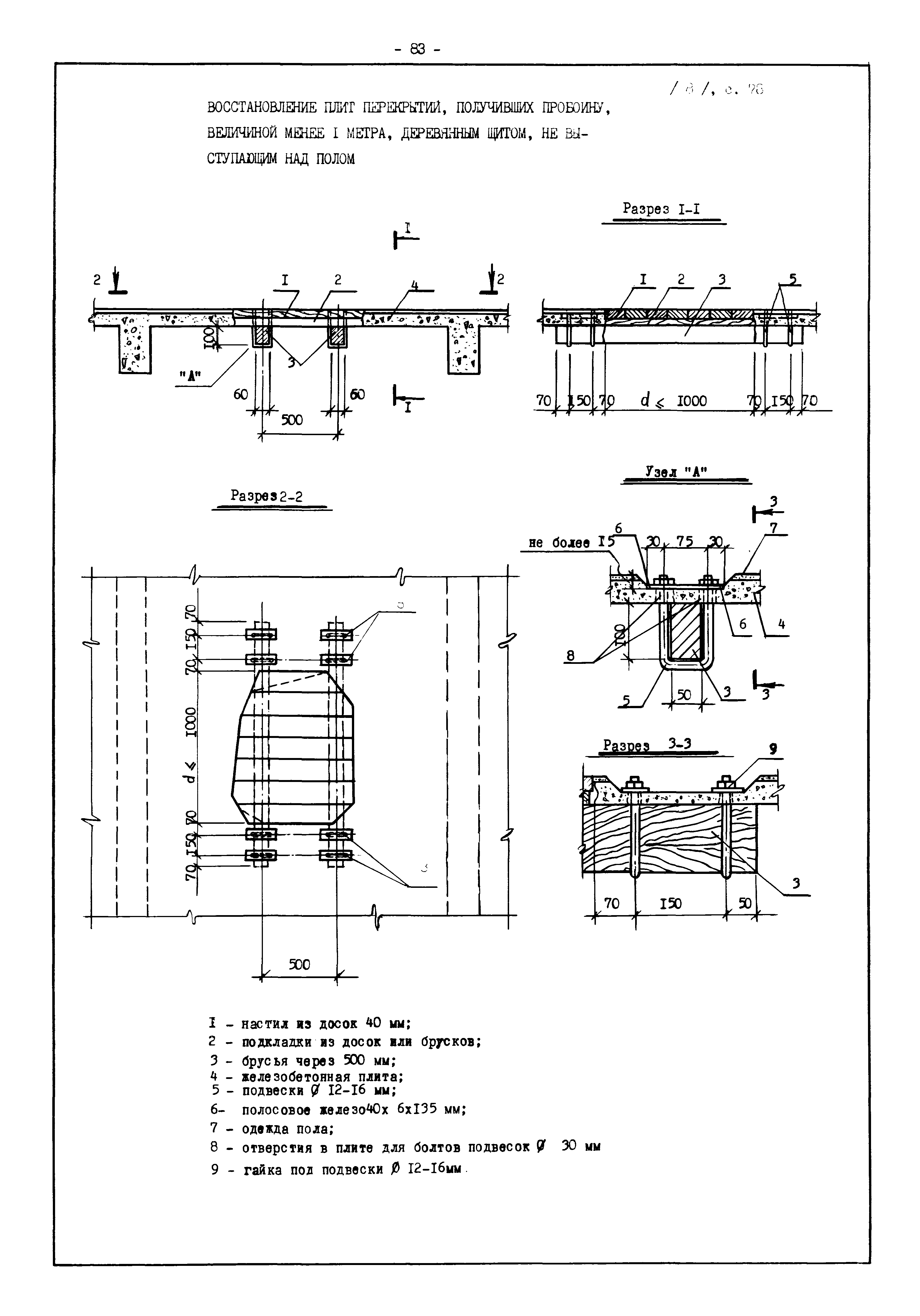 | Оглавление: | Введение I. Усиление и восстановление железобетонных конструкций Основные положения по усилению конструкций Оценка несущей способности железобетонных конструкций Основные положения по расчету и конструированию усилений Основные материалы для усиления и восстановления существующих железобетонных конструкций и требования к ним Требования к материалам для приготовления быстротвердеющих ремонтных составов Составы бетонов и растворов, предназначенных для усиления и восстановления строительных конструкций Усиление ребристых плит покрытия наращиванием Усиление ребристых плит покрытия при повреждении ребер Усиление сборной железобетонной плиты покрытия металлической балкой с подклинкой Усиление плит покрытия с помощью листов из волнистой стали Восстановление опирания ребристых плит покрытия на опоры Усиление продольных ребер плит покрытия Усиление сборных балок покрытия наращиванием сверху Усиление стропильных балок наращиванием снизу Усиление балок покрытия обоймой и дополнительными хомутами Усиление сжатой зоны стропильной балки обоймами Усиление железобетонной балки покрытия с помощью листов из фибробетона Усиление сборной балки покрытия шарнирно-стержневой цепью Усиление сборной балки покрытия шпренгелем Усиление железобетонной балки покрытия с помощью двухветьевой шпренгельной затяжки (а.с. СССР N 922257) Усиление стропильных балок подпружными системами Усиление опорных участков балок покрытия хомутами Усиление балок покрытия двухконсольной балочной системой Усиление верхнего пояса фермы Усиление нижнего пояса фермы Усиление стойки фермы Усиление раскоса и стойки фермы Усиление ребер сборных плит перекрытия с помощью дополнительной арматуры Усиление сборных плит перекрытия при помощи наклонных хомутов Усиление приопорных участков многопустотных плит перекрытий Усиление сборной многопустотной плиты перекрытия замоноличиванием каналов пустот Усиление сборной железобетонной плиты перекрытия с помощью изогнутого вниз стального листа (патент Японии N 56-54428) Восстановление ригеля перекрытия созданием обратного конструктивного выгиба с помощью домкрата (а.с. 1352023) Восстановление ригеля перекрытия созданием обратного конструктивного выгиба без домкрата (а.с. 1352023) Восстановление железобетонной балки путем подвешивания ее к металлической балке Восстановление плит перекрытия, получивших пробоины, с применением стали и бетона Восстановление безбалочного перекрытия, получившего пробоину величиной более 1 метра, деревянным щитом, не выступающим над полом Восстановление плит перекрытий, получивших пробоину величиной менее 1 метра, деревянным щитом, выступающим над полом Восстановление плит перекрытий, получивших пробоину менее 1 метра, деревянным щитом, не выступающим над полом Восстановление монолитных перекрытий, получивших пробоину величиной более 1 метра, деревянным щитом, не выступающим над полом Усиление монолитных плит перекрытия односторонним наращиванием Усиление железобетонной балки монолитного перекрытия наращиванием с помощью хомутов Усиление монолитной плиты перекрытия наращиванием с устройством железобетонных шпонок Восстановление железобетонных балок монолитного перекрытия при отколе Восстановление железбетонной балки монолитного перекрыти