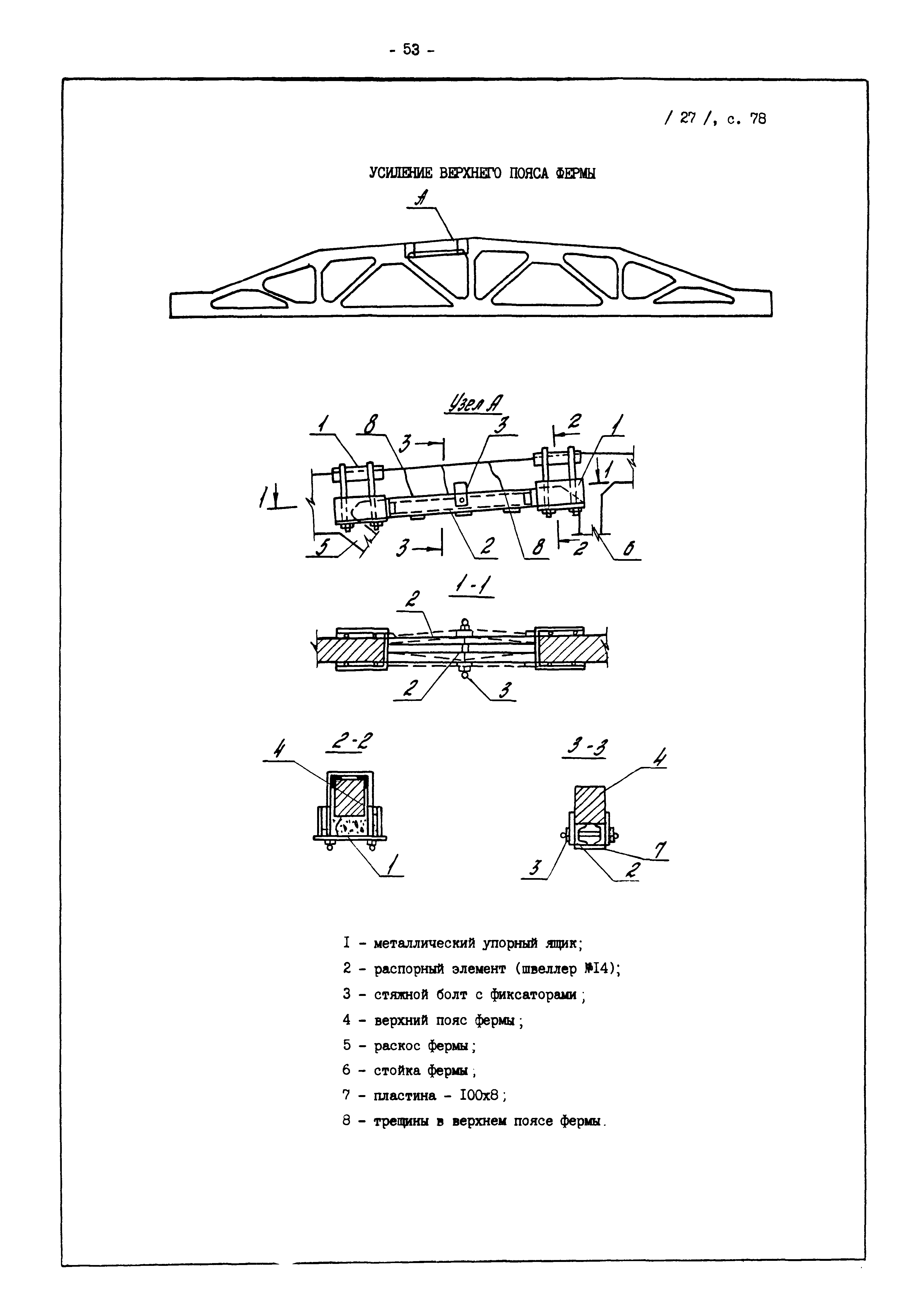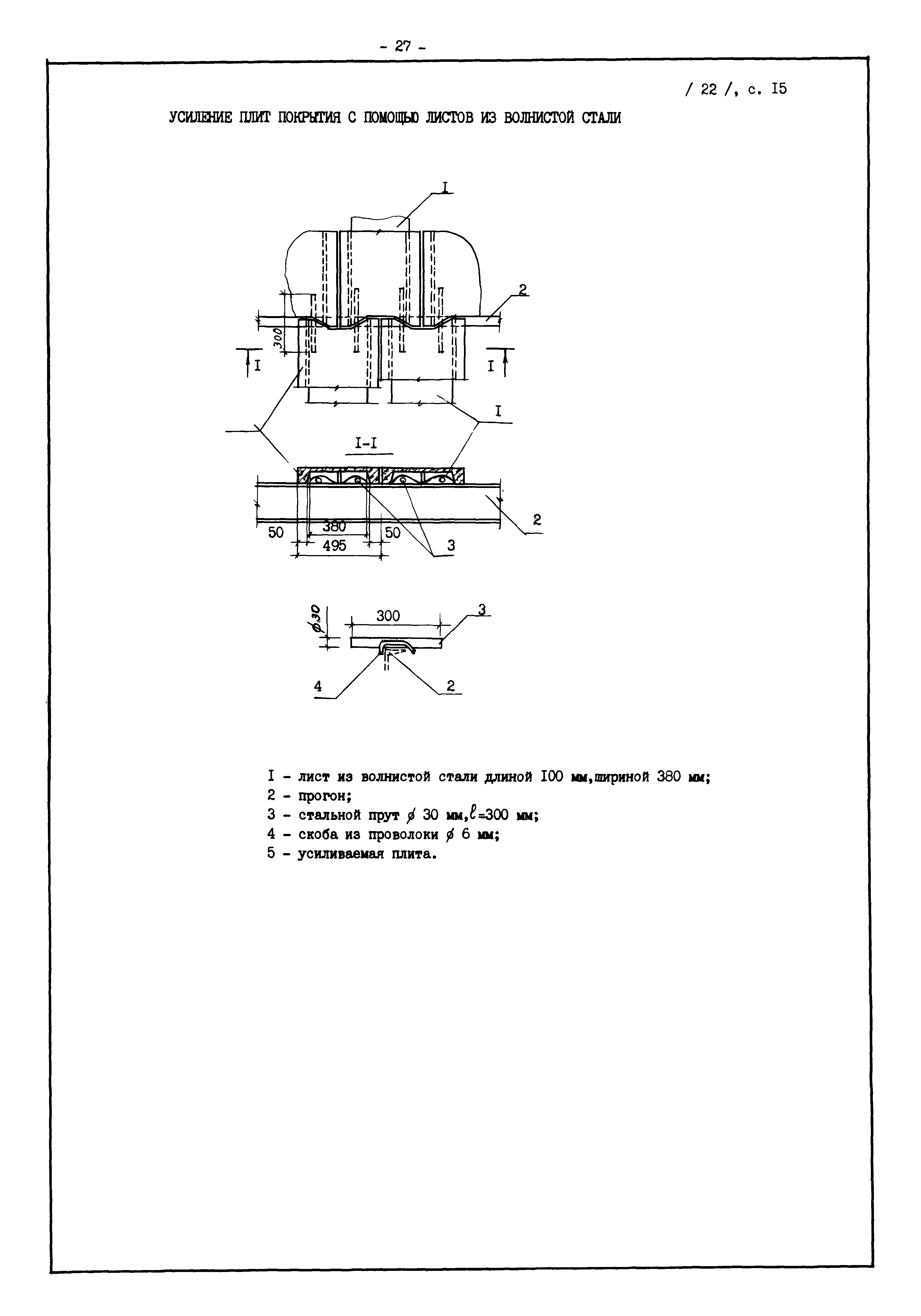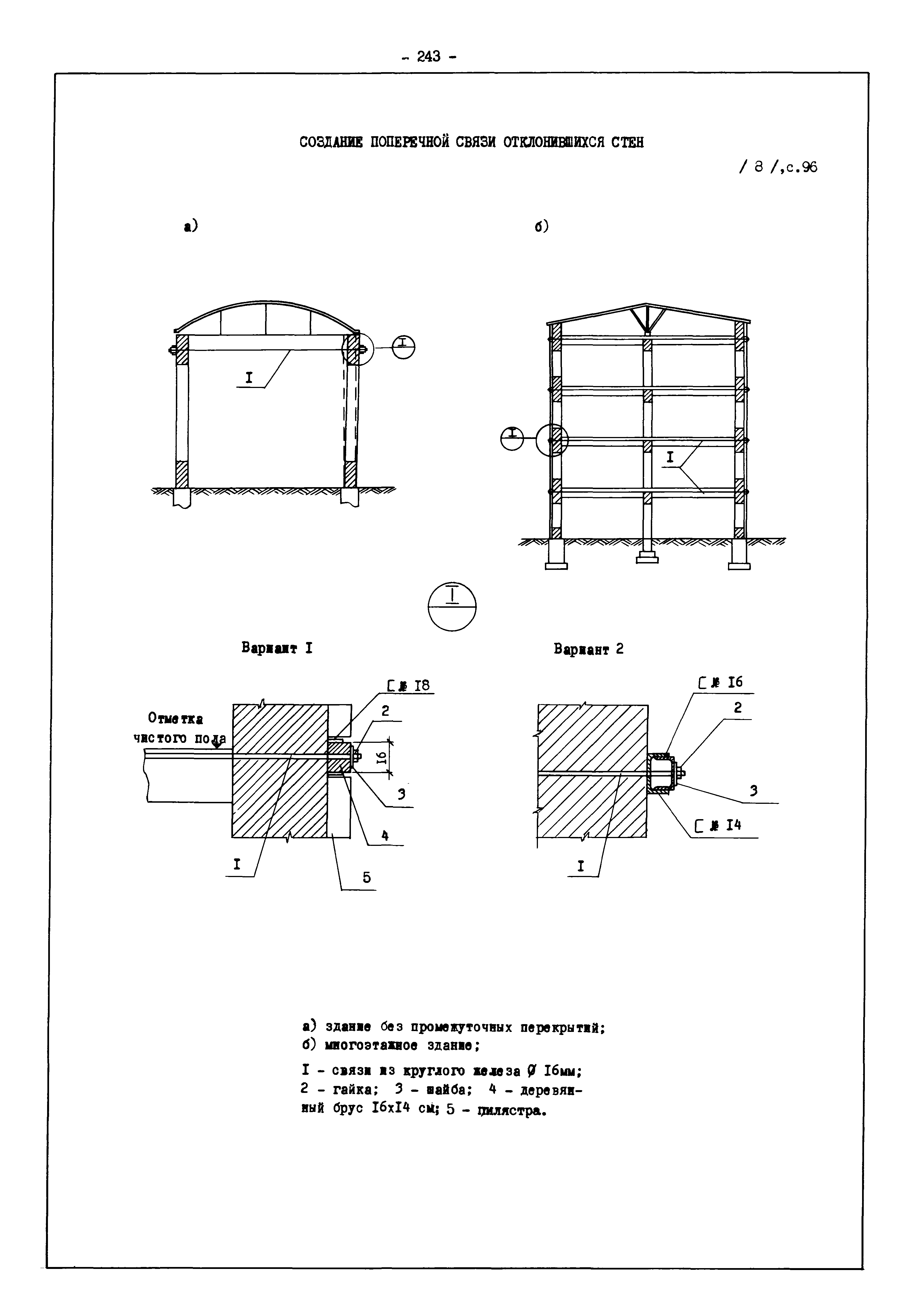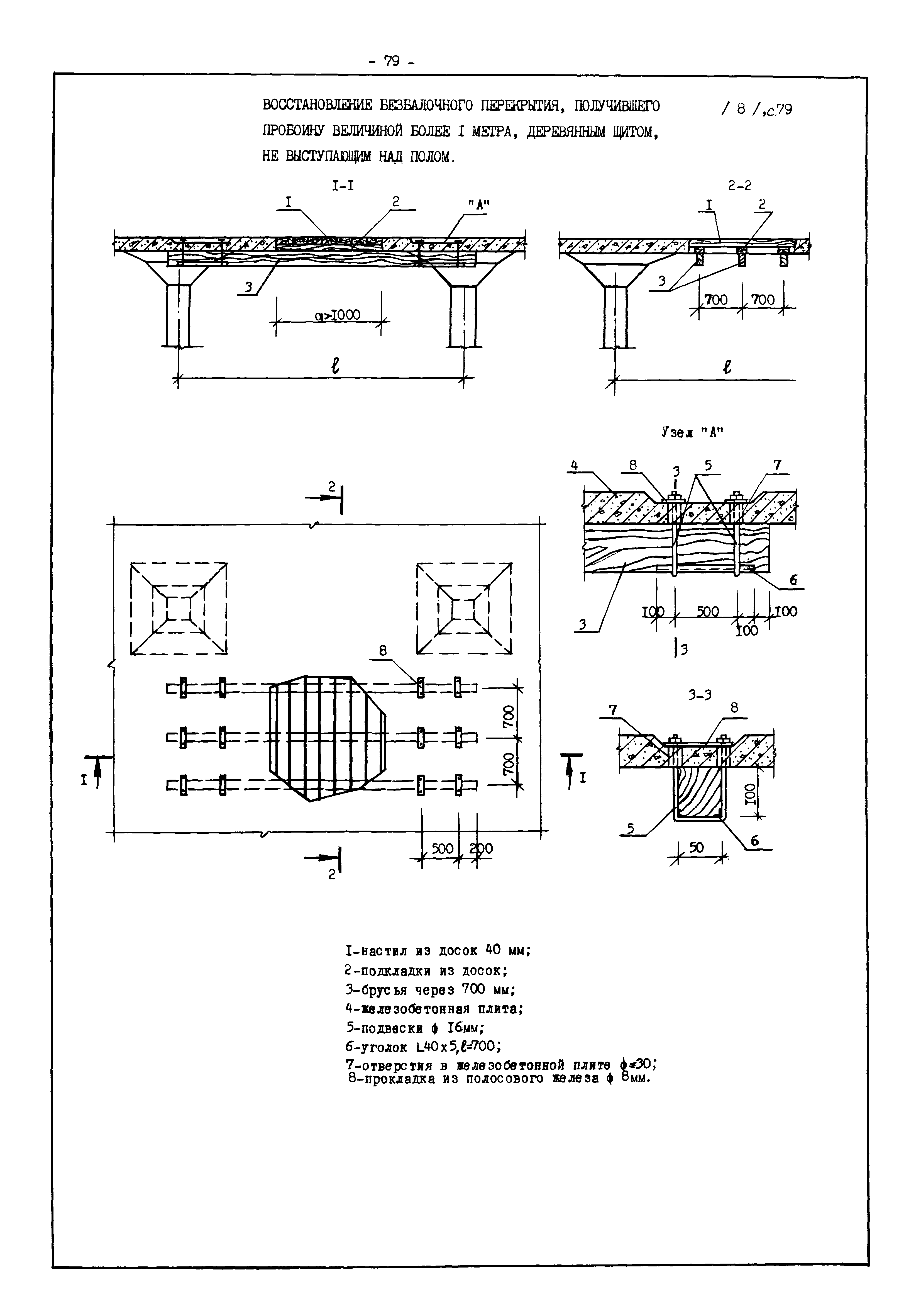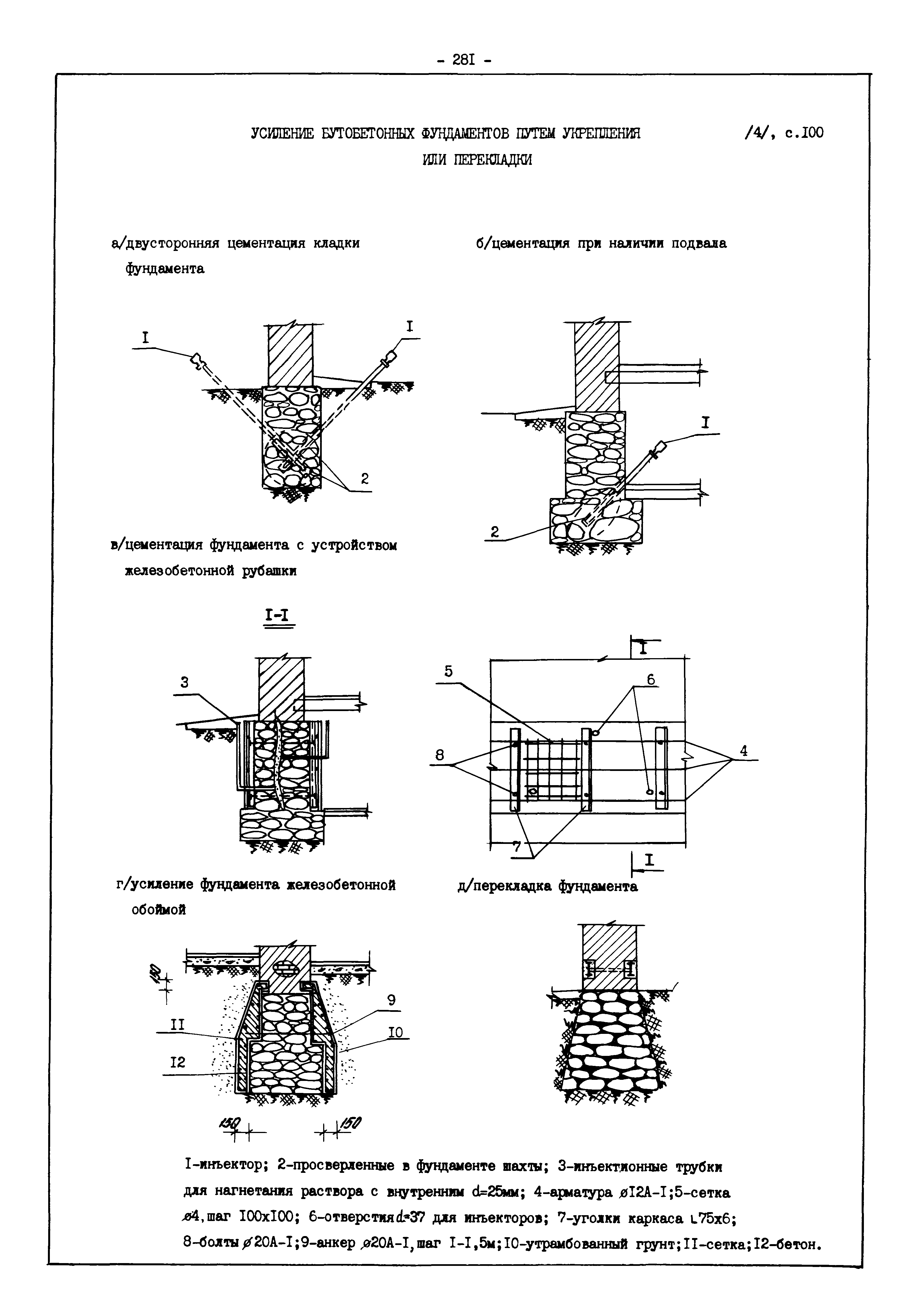 | Оглавление: | Введение I. Усиление и восстановление железобетонных конструкций Основные положения по усилению конструкций Оценка несущей способности железобетонных конструкций Основные положения по расчету и конструированию усилений Основные материалы для усиления и восстановления существующих железобетонных конструкций и требования к ним Требования к материалам для приготовления быстротвердеющих ремонтных составов Составы бетонов и растворов, предназначенных для усиления и восстановления строительных конструкций Усиление ребристых плит покрытия наращиванием Усиление ребристых плит покрытия при повреждении ребер Усиление сборной железобетонной плиты покрытия металлической балкой с подклинкой Усиление плит покрытия с помощью листов из волнистой стали Восстановление опирания ребристых плит покрытия на опоры Усиление продольных ребер плит покрытия Усиление сборных балок покрытия наращиванием сверху Усиление стропильных балок наращиванием снизу Усиление балок покрытия обоймой и дополнительными хомутами Усиление сжатой зоны стропильной балки обоймами Усиление железобетонной балки покрытия с помощью листов из фибробетона Усиление сборной балки покрытия шарнирно-стержневой цепью Усиление сборной балки покрытия шпренгелем Усиление железобетонной балки покрытия с помощью двухветьевой шпренгельной затяжки (а.с. СССР N 922257) Усиление стропильных балок подпружными системами Усиление опорных участков балок покрытия хомутами Усиление балок покрытия двухконсольной балочной системой Усиление верхнего пояса фермы Усиление нижнего пояса фермы Усиление стойки фермы Усиление раскоса и стойки фермы Усиление ребер сборных плит перекрытия с помощью дополнительной арматуры Усиление сборных плит перекрытия при помощи наклонных хомутов Усиление приопорных участков многопустотных плит перекрытий Усиление сборной многопустотной плиты перекрытия замоноличиванием каналов пустот Усиление сборной железобетонной плиты перекрытия с помощью изогнутого вниз стального листа (патент Японии N 56-54428) Восстановление ригеля перекрытия созданием обратного конструктивного выгиба с помощью домкрата (а.с. 1352023) Восстановление ригеля перекрытия созданием обратного конструктивного выгиба без домкрата (а.с. 1352023) Восстановление железобетонной балки путем подвешивания ее к металлической балке Восстановление плит перекрытия, получивших пробоины, с применением стали и бетона Восстановление безбалочного перекрытия, получившего пробоину величиной более 1 метра, деревянным щитом, не выступающим над полом Восстановление плит перекрытий, получивших пробоину величиной менее 1 метра, деревянным щитом, выступающим над полом Восстановление плит перекрытий, получивших пробоину менее 1 метра, деревянным щитом, не выступающим над полом Восстановление монолитных перекрытий, получивших пробоину величиной более 1 метра, деревянным щитом, не выступающим над полом Усиление монолитных плит перекрытия односторонним наращиванием Усиление железобетонной балки монолитного перекрытия наращиванием с помощью хомутов Усиление монолитной плиты перекрытия наращиванием с устройством железобетонных шпонок Восстановление железобетонных балок монолитного перекрытия при отколе Восстановление железбетонной балки монолитного перекрыти