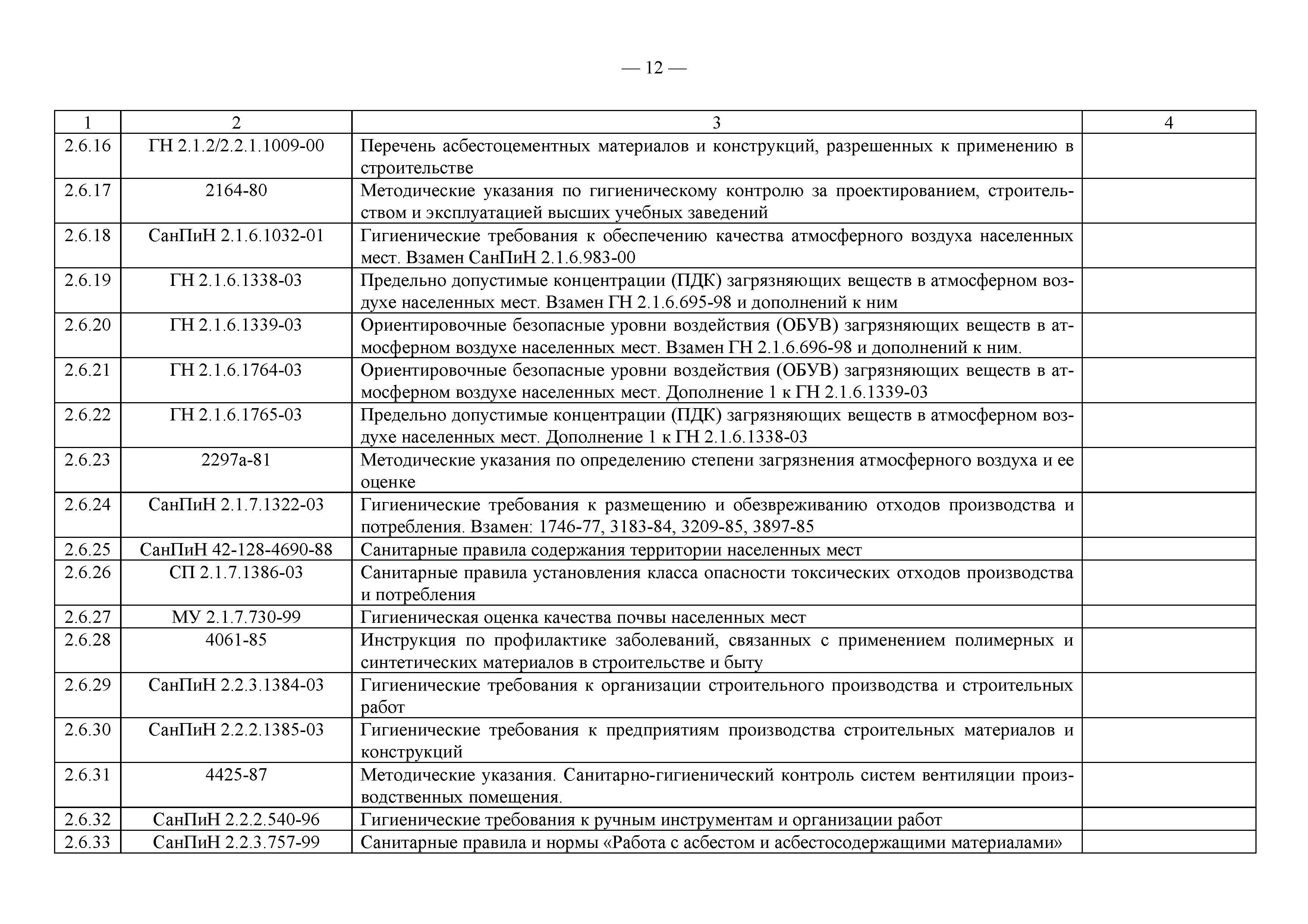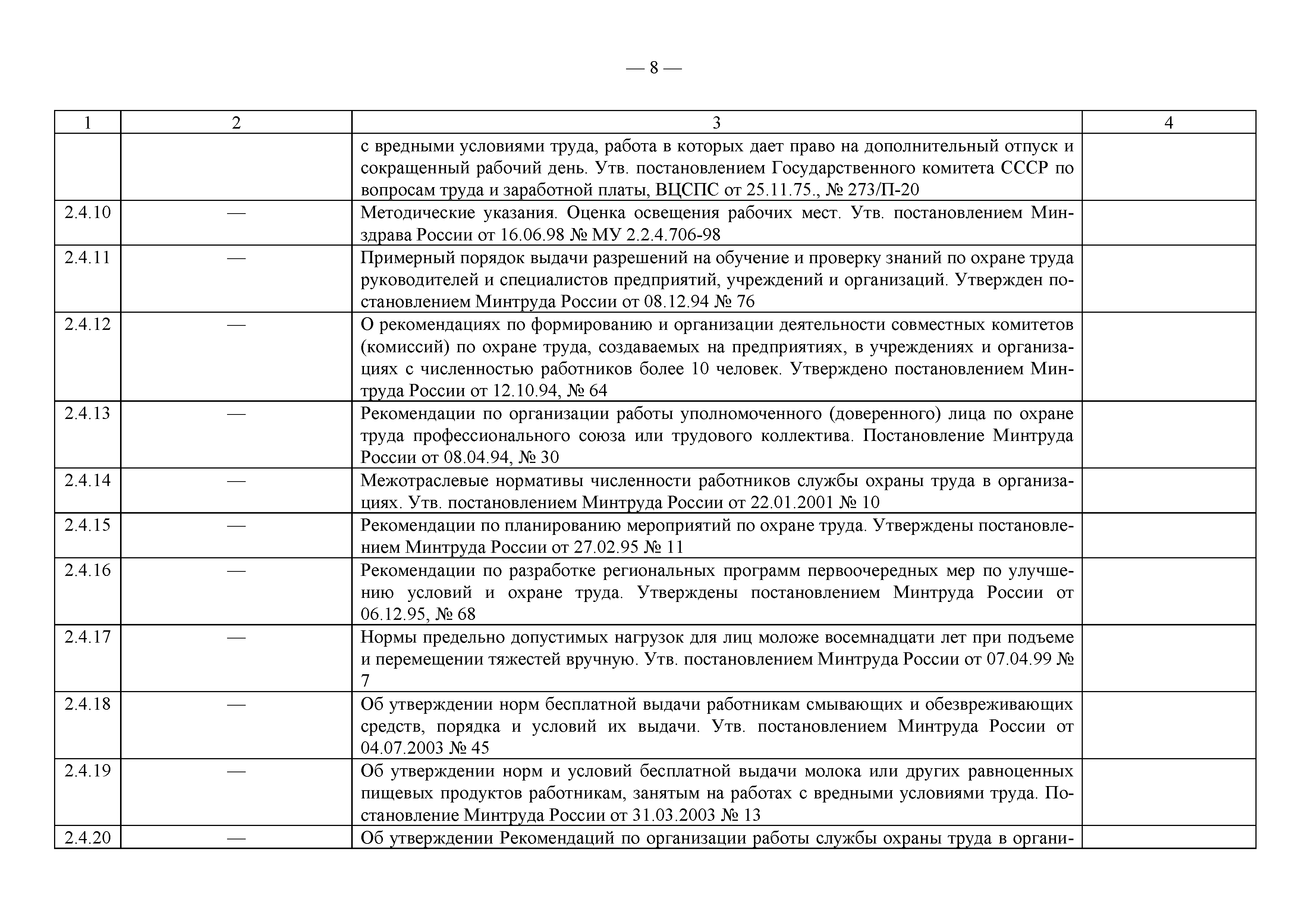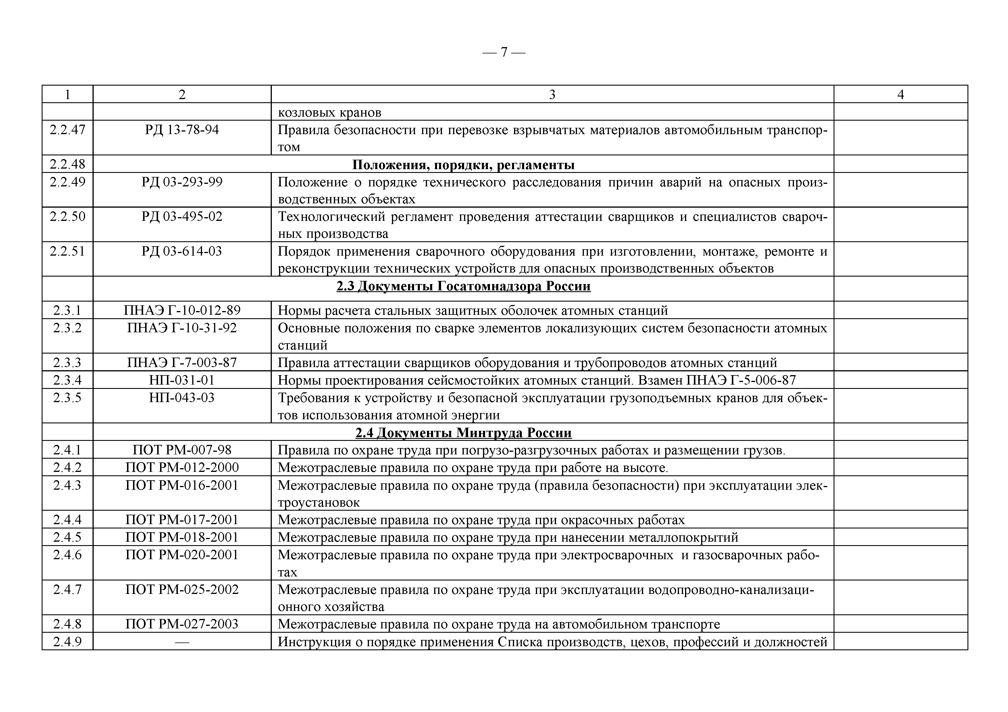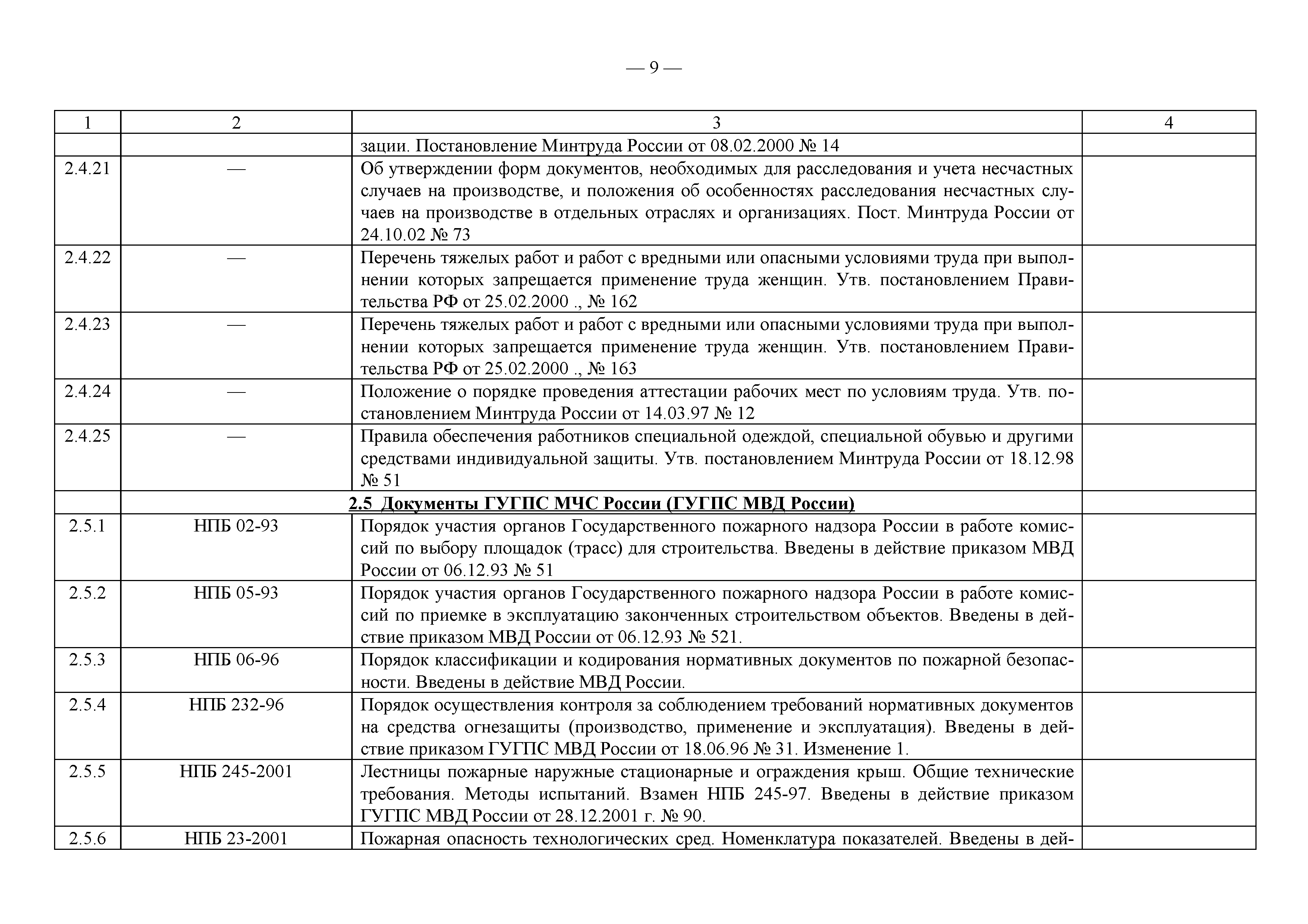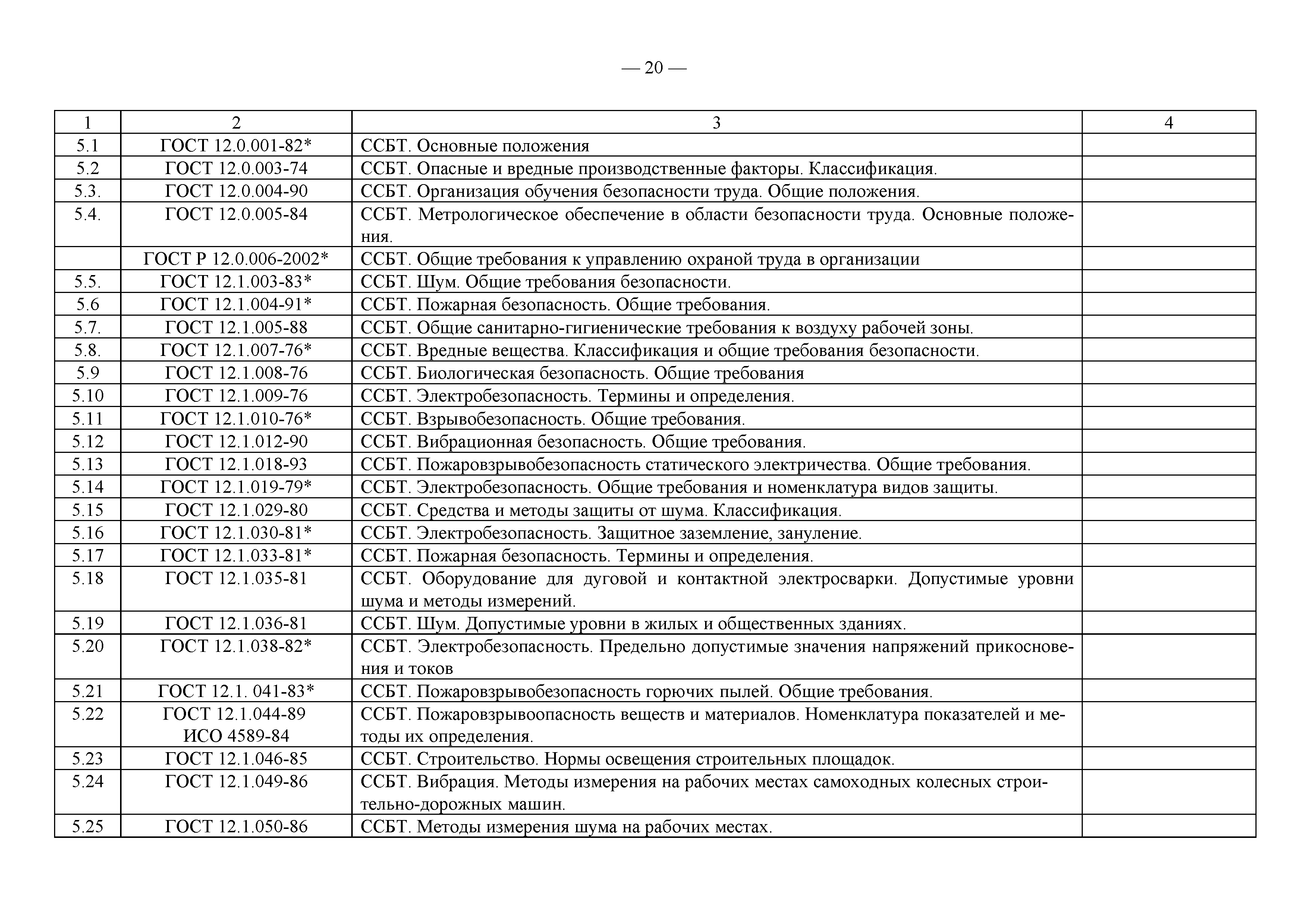 Примерный перечень законодательно-правовых, нормативных, справочно-методических и других документов по охране труда и технике безопасности при производстве строительно-монтажных работ| Статус: | действует | | Название рус.: | Примерный перечень законодательно-правовых, нормативных, справочно-методических и других документов по охране труда и технике безопасности при производстве строительно-монтажных работ | | Дата добавления в базу: | 01.09.2013 | | Дата актуализации: | 01.01.2021 | | Оглавление: | 1. Законодательные, правовые акты РФ, регулирующие строительную деятельность 1.1 Законы Российской Федерации 1.2 Указы Президента Российской Федерации 1.3 Постановления Правительства Российской Федерации 2. Документы органов государственного надзора 2.1 Документы Госстандарта России 2.2 Документы Госгортехнадзора России 2.3 Документы Госатомнадзора России 2.4 Документы Минтруда России 2.5 Документы ГУГПС МЧС России (ГУГПС МВД России) 2.6 Документы Минздрава России 2.7 Документы Минприроды России (Госкомэкологии) 3. Нормативные документы Российской Федерации 3.1 Строительные нормы и правила - СНиП 3.2 Своды правил по проектированию и строительству - СП 3.3 Территориальные строительные нормы - ТСН 3.4 Документы, утвержденные Госстроем СССР и Госстроем РСФСР -СН, РСН 4. Ведомственные нормативные и методические документы 4.1 Документы по проектированию, строительству и эксплуатации зданий и сооружений - ВСН, ВНП, СТО, РД 4.2 Методические документы Госстроя России 4.3 Другие документы ведомств и организаций 5. Государственные стандарты 6. Нормативные документы Правительства г. Москвы и мэрии 7. Документация ОАО ПКТИпромстрой | | Разработан: | ОАО ПКТИпромстрой