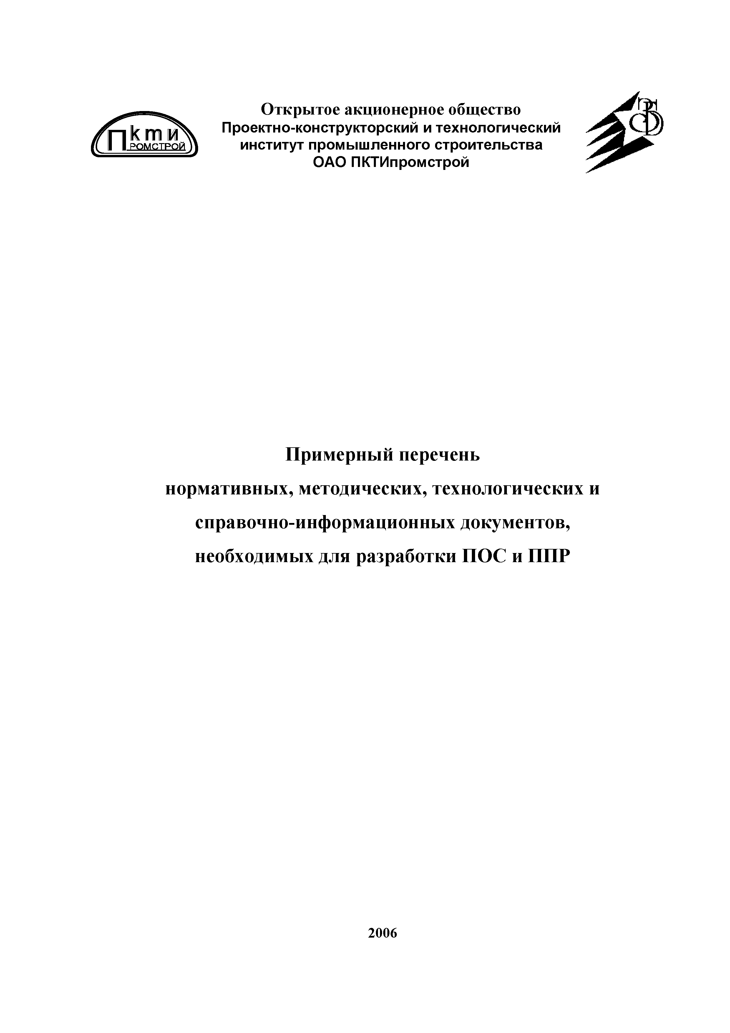 Скачать Примерный перечень нормативных, методических, технологических и справочно-информационных документов, необходимых для разработки ПОС и ППРДата актуализации: 01.01.2021