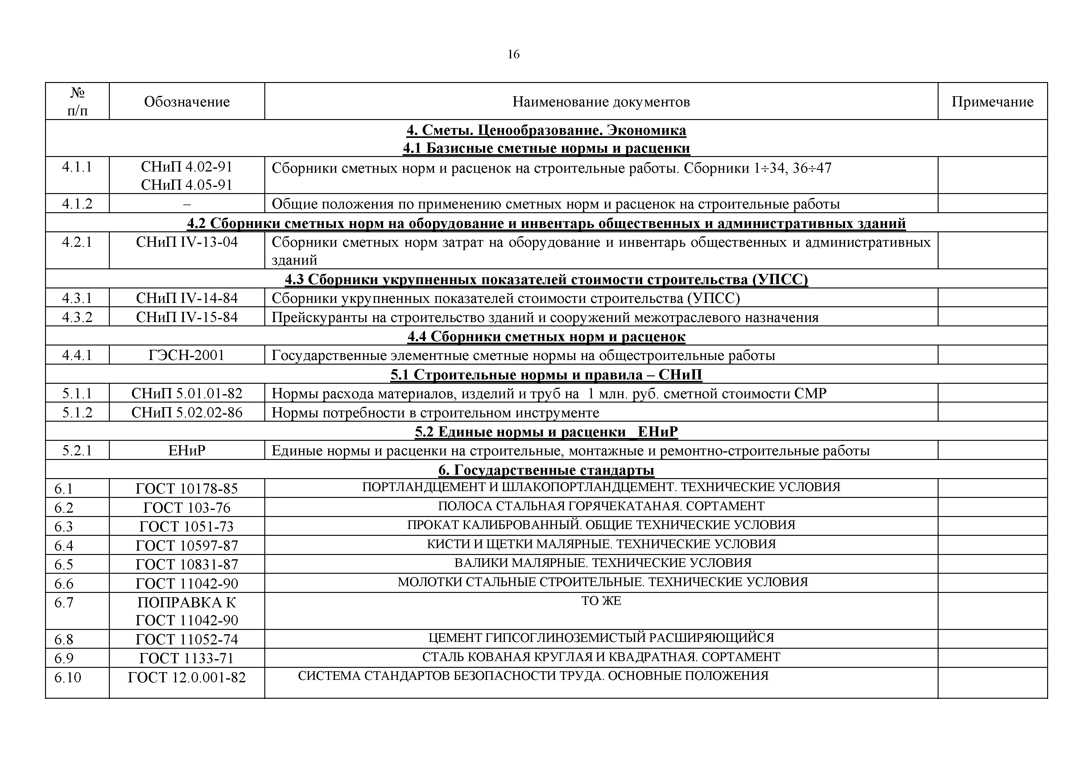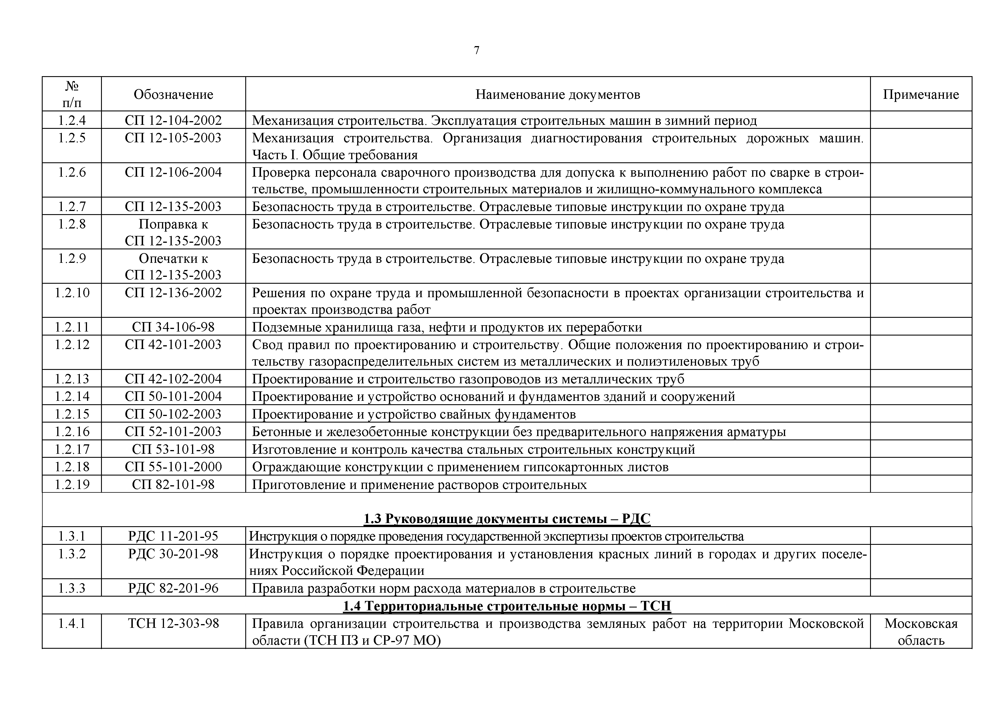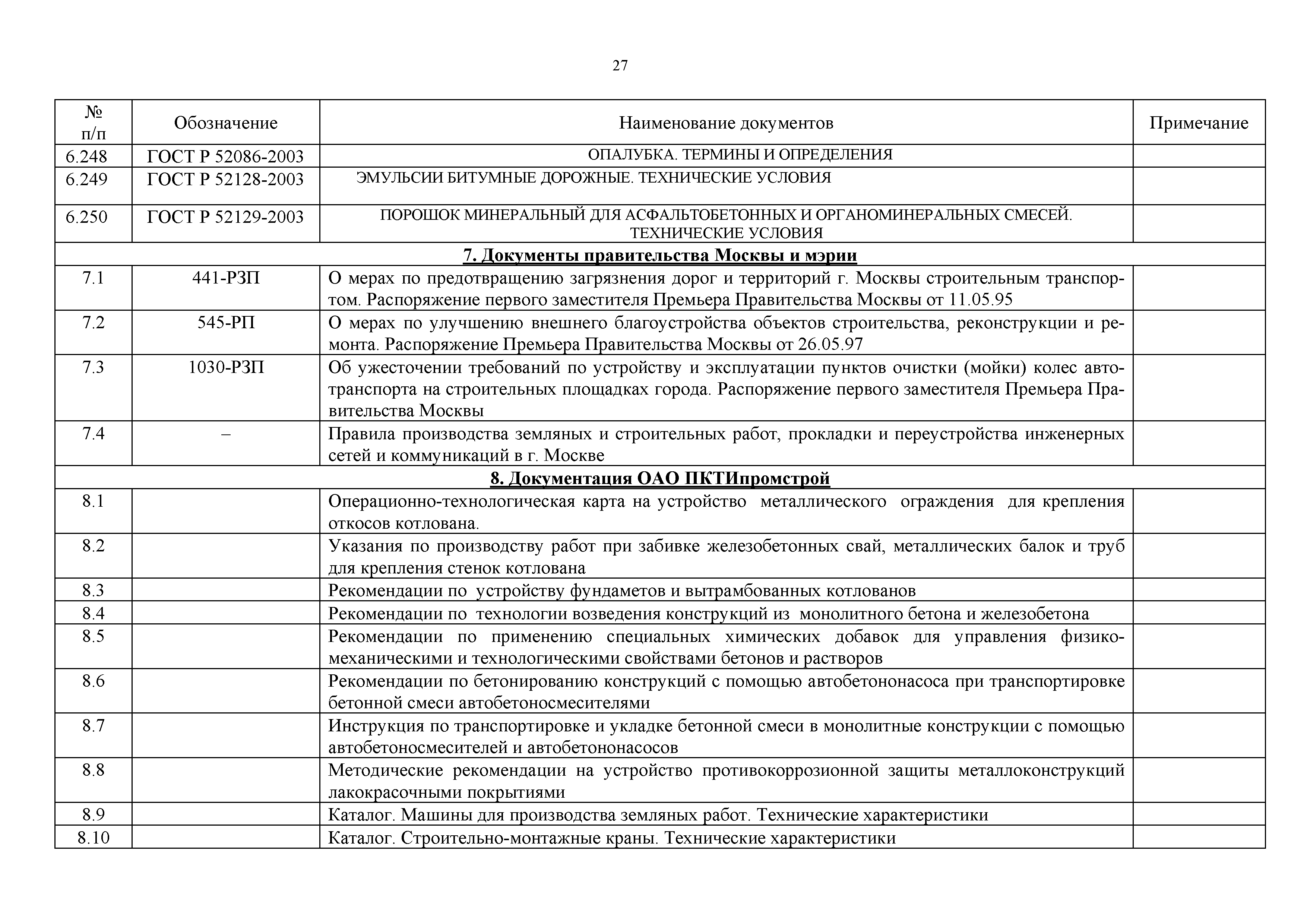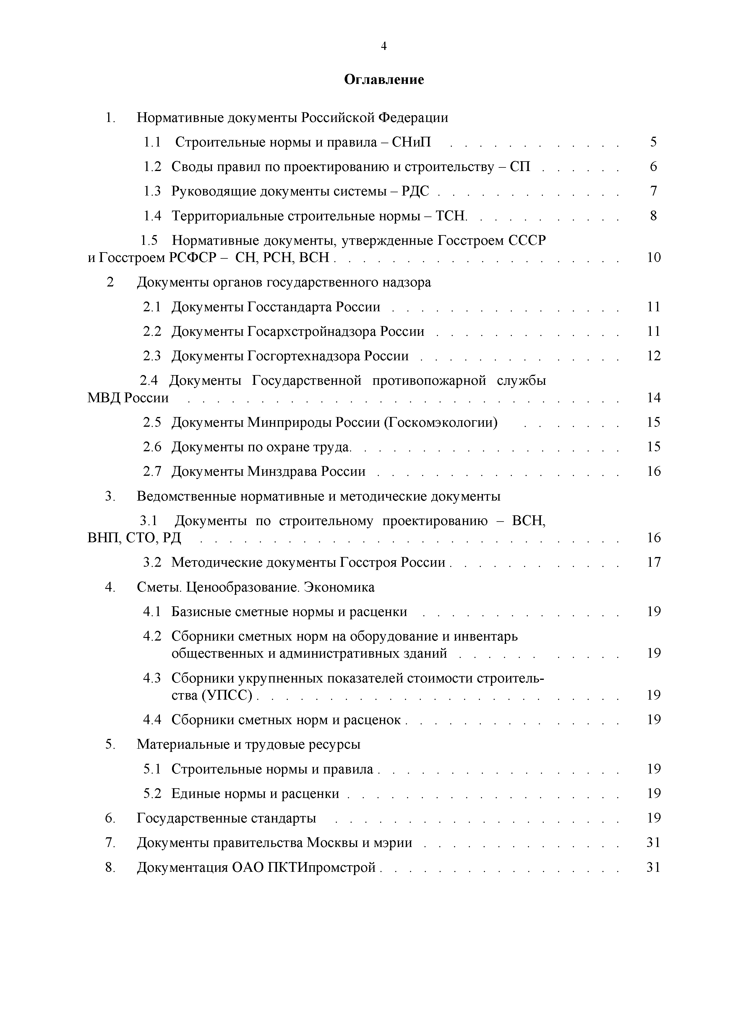 Примерный перечень нормативных, методических, технологических и справочно-информационных документов, необходимых для разработки ПОС и ППР| Статус: | действует | | Название рус.: | Примерный перечень нормативных, методических, технологических и справочно-информационных документов, необходимых для разработки ПОС и ППР | | Дата добавления в базу: | 01.09.2013 | | Дата актуализации: | 01.01.2021 | | Оглавление: | 1. Нормативные документы Российской Федерации 2. Документы органов государственного надзора 3. Ведомственные нормативные и методические документы 4. Сметы. Ценообразование. Экономика 5. Материальные и трудовые ресурсы 6. Государственные стандарты 7. Документы правительства Москвы и мэрии 8. Документация ОАО ПКТИпромстрой | | Разработан: | ОАО ПКТИпромстрой