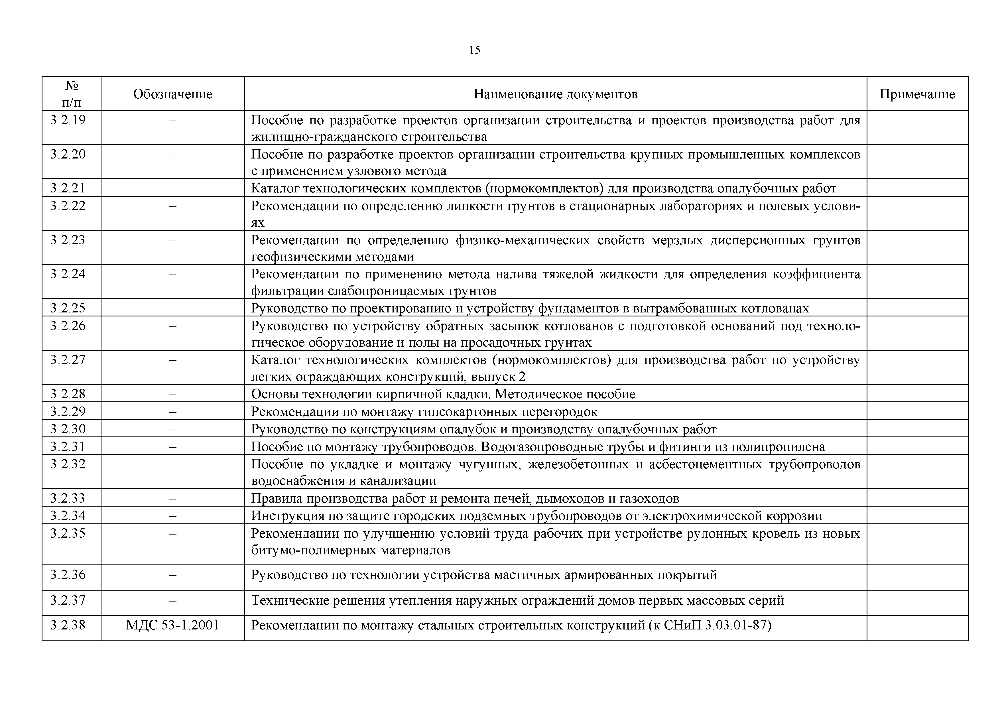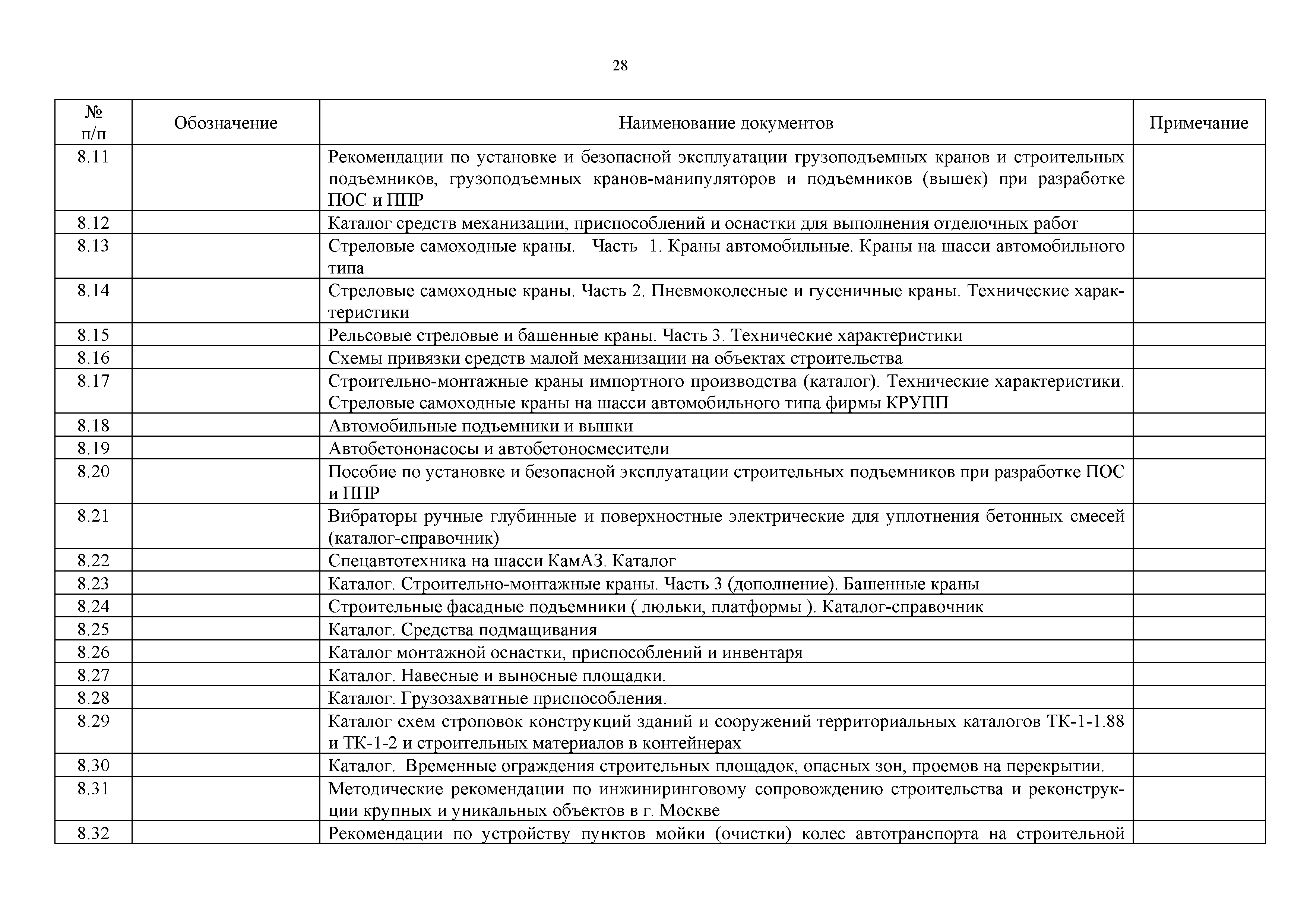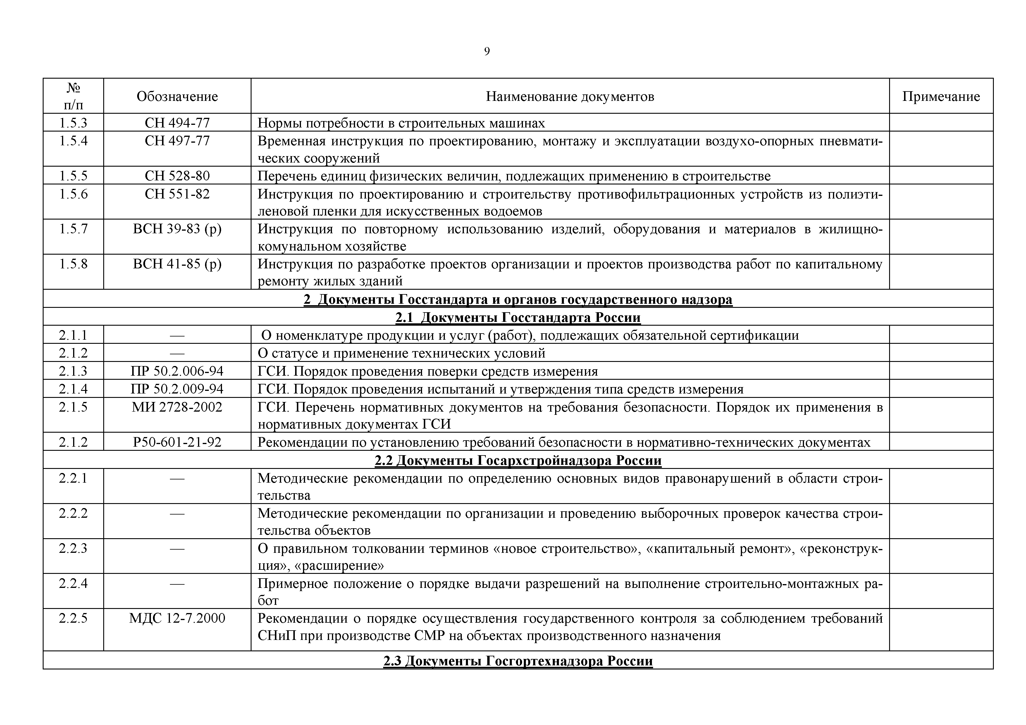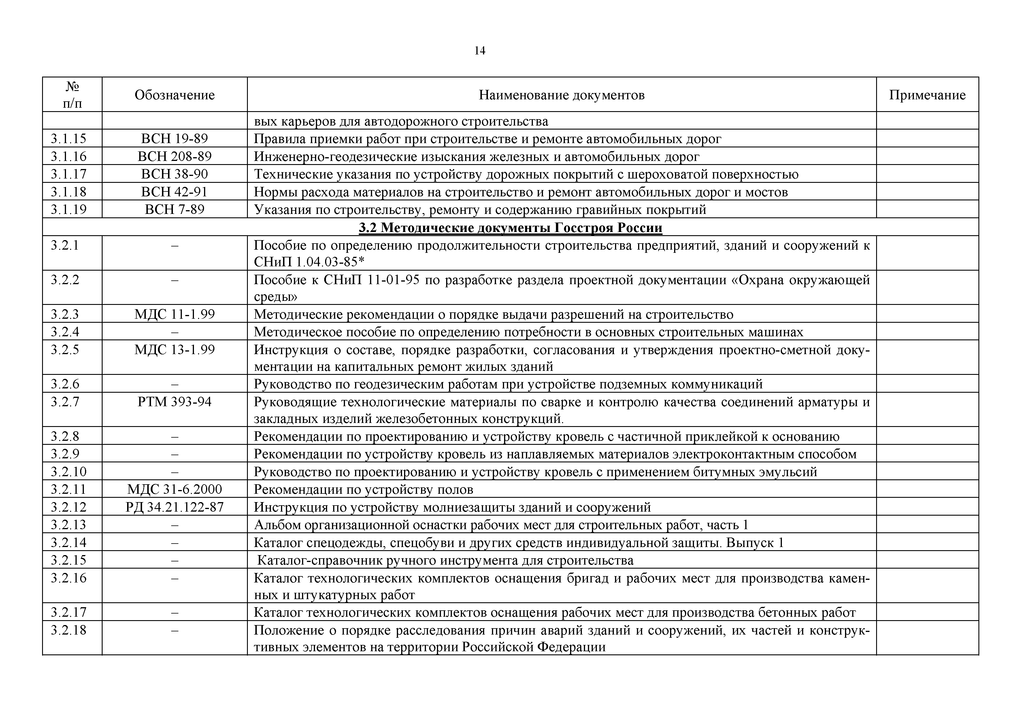 Примерный перечень нормативных, методических, технологических и справочно-информационных документов, необходимых для разработки ПОС и ППР| Статус: | действует | | Название рус.: | Примерный перечень нормативных, методических, технологических и справочно-информационных документов, необходимых для разработки ПОС и ППР | | Дата добавления в базу: | 01.09.2013 | | Дата актуализации: | 01.01.2021 | | Оглавление: | 1. Нормативные документы Российской Федерации 2. Документы органов государственного надзора 3. Ведомственные нормативные и методические документы 4. Сметы. Ценообразование. Экономика 5. Материальные и трудовые ресурсы 6. Государственные стандарты 7. Документы правительства Москвы и мэрии 8. Документация ОАО ПКТИпромстрой | | Разработан: | ОАО ПКТИпромстрой
