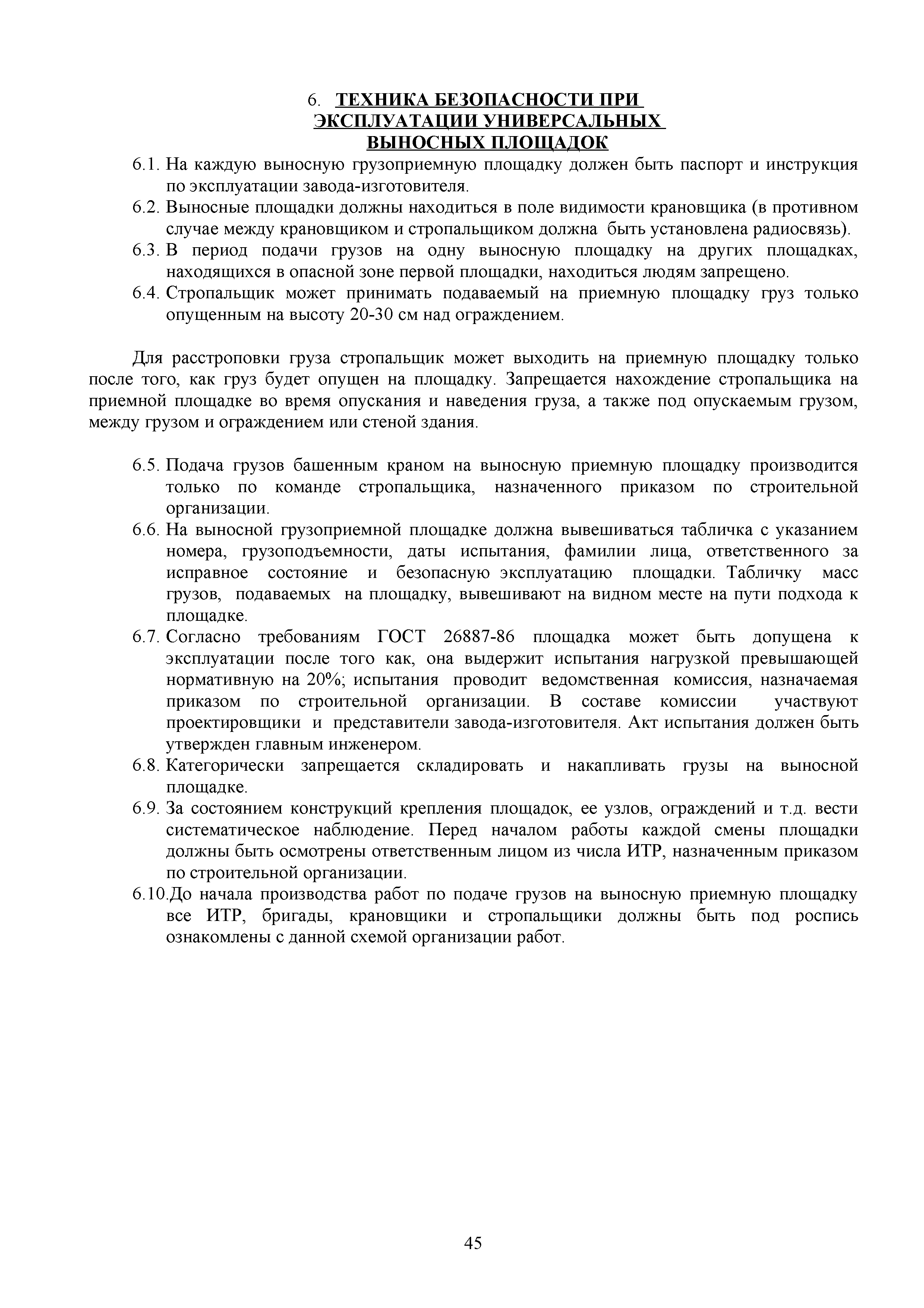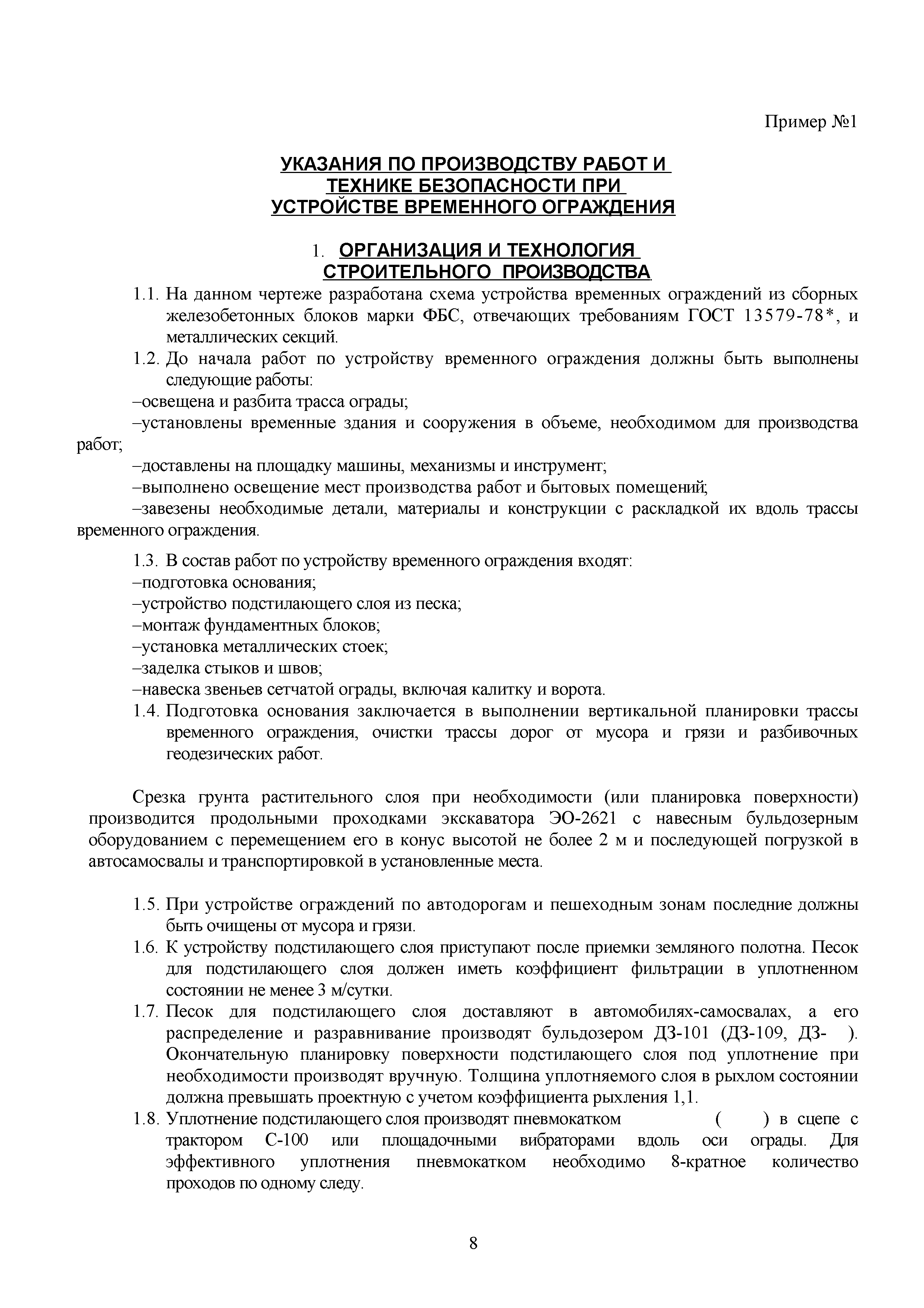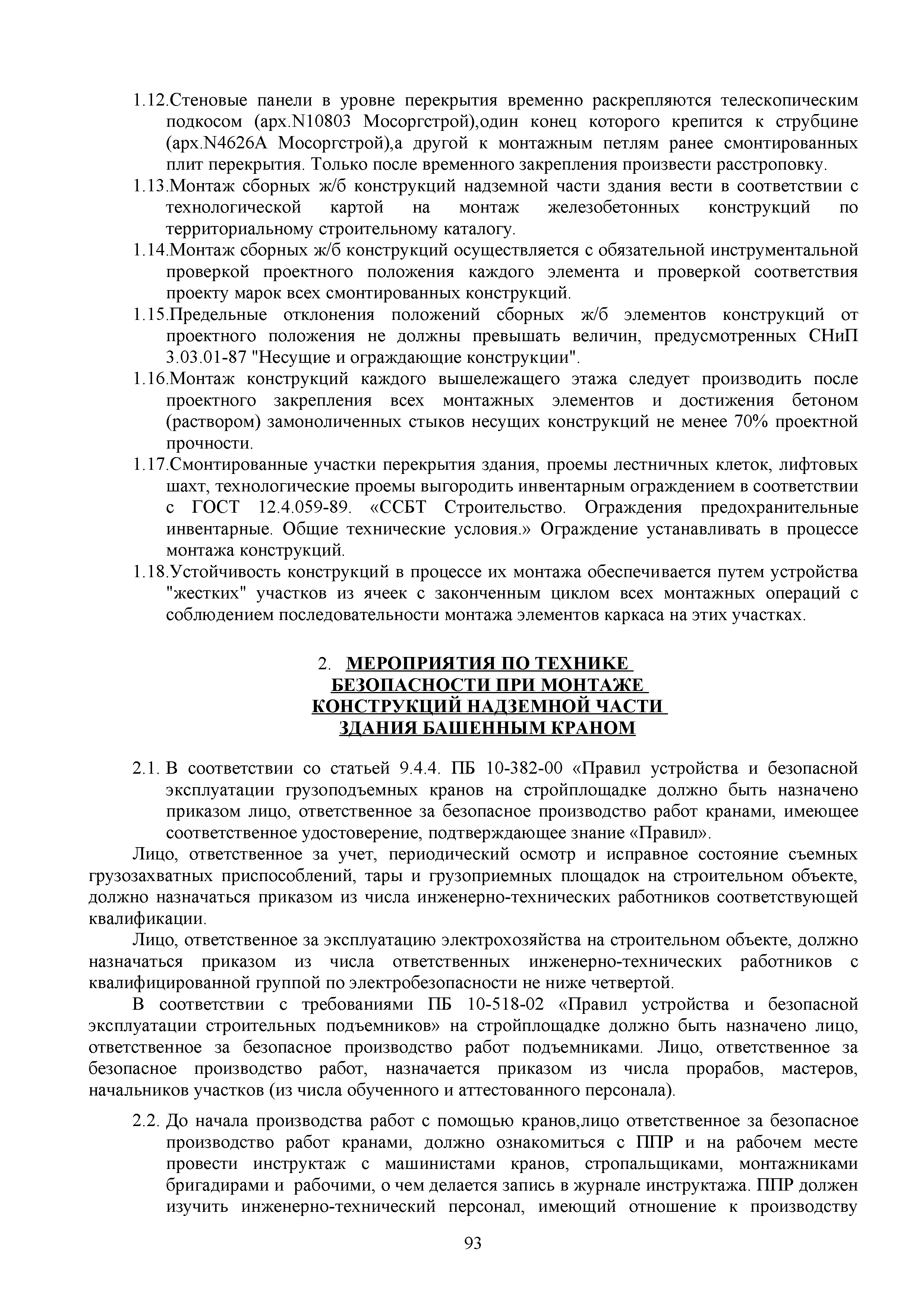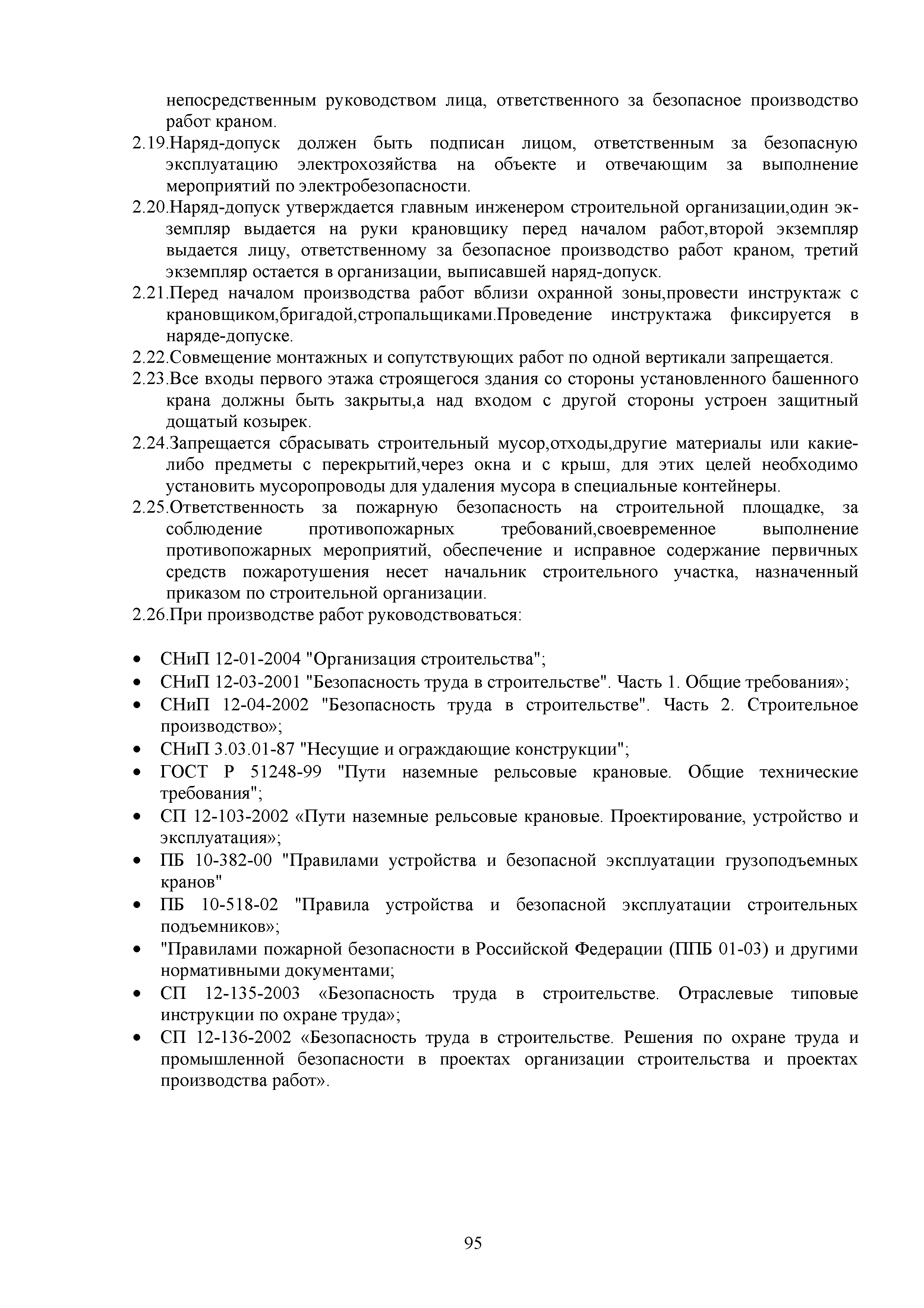 | Оглавление: | 1. Подготовительные работы по освобождению строительной площадки 2. Порядок производства работ по подготовке строительной площадки Пример № 1. Указания по производству работ и технике безопасности при устройстве временного ограждения Пример № 2. Указания по производству работ и технике безопасности труда при устройстве временных автодорог Пример № 3. Указания к производству работ при монтаже бытовых помещений контейнерного типа 3. Погрузочно-разгрузочные работы автокранами и пневмоколесными кранами 4. Работа грузоподъемных кранов в охранной зоне воздушных линий электропередачи (ВЛ) или за ее пределами до 30 м от крайних проводов 5. Указания по эксплуатации универсальных выносных площадок 6. Техника безопасности при эксплуатации универсальных выносных площадок Пример № 4. Общие указания по монтажу, демонтажу и эксплуатации лесов 7. Указания по установке и эксплуатации грузопассажирского подъемника и меры безопасности 8. Указания по технике безопасности при установке и эксплуатации подъемников Пример № 5. Указания по технике безопасности при эксплуатации люлек 9. Указания к производству работ при подаче грузов в проемы перекрытий 10. Техника безопасности при подаче грузов в проемы перекрытий 11. Указания по производству строительно-монтажных работ и безопасности труда Пример № 6. Указания по производству работ и безопасности труда при забивке свай Пример № 7. Указания по бетонированию монолитных ростверков с применением крана Пример № 8. Мероприятия при работе с бункером для бетонной смеси Пример № 9. Указания по бетонированию фундаментов с применением автобетононасосов Пример № 10. Указания по производству работ при монтаже конструкций надземной части здания башенным краном |