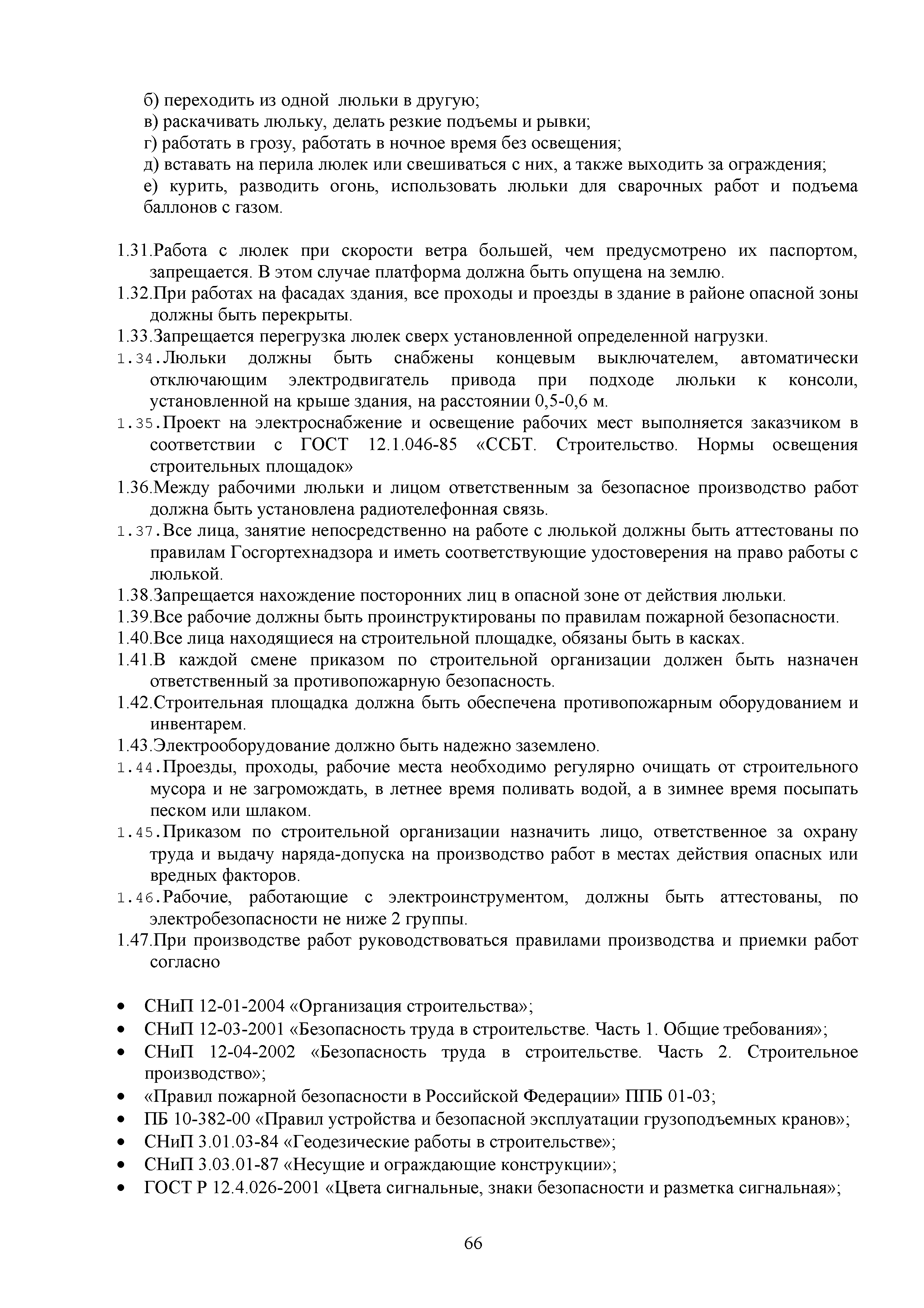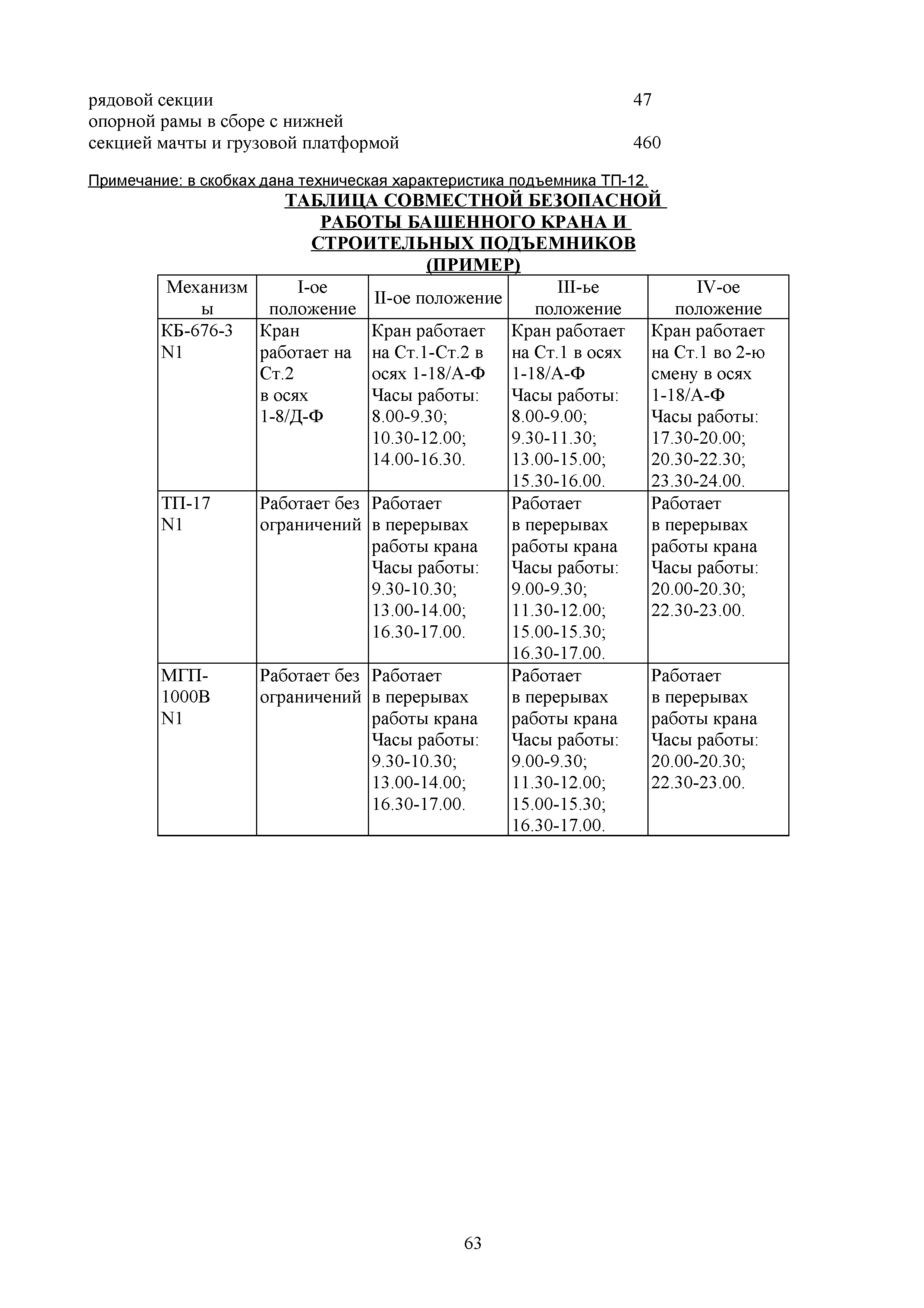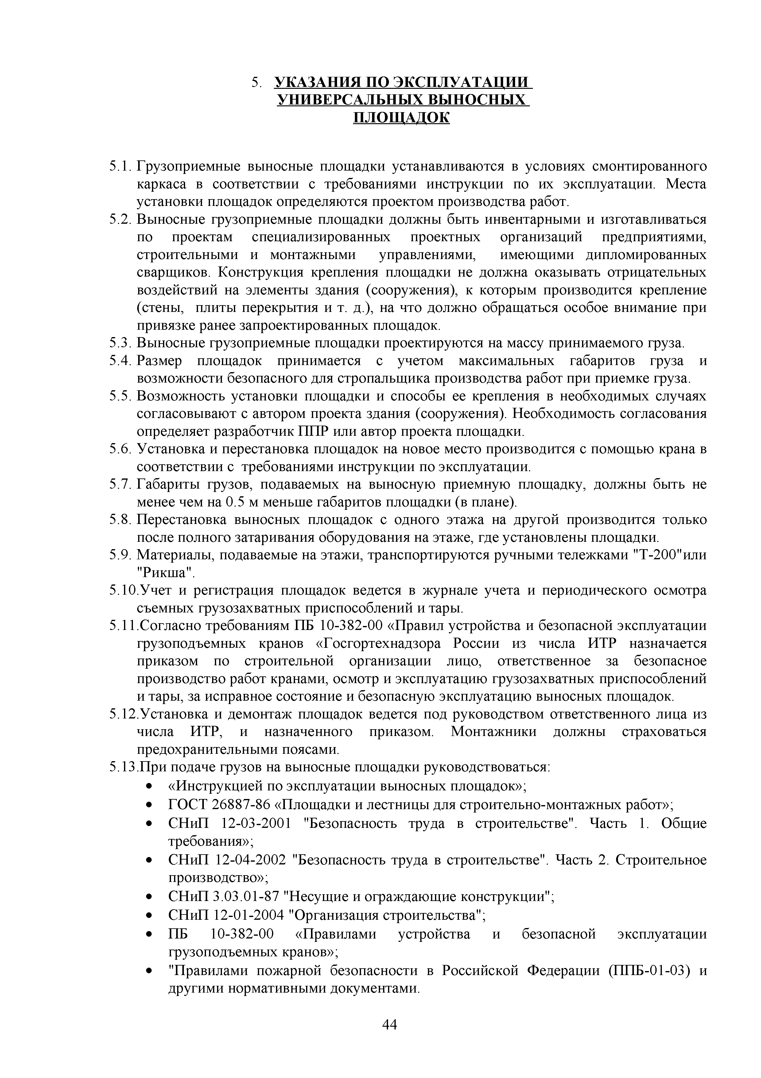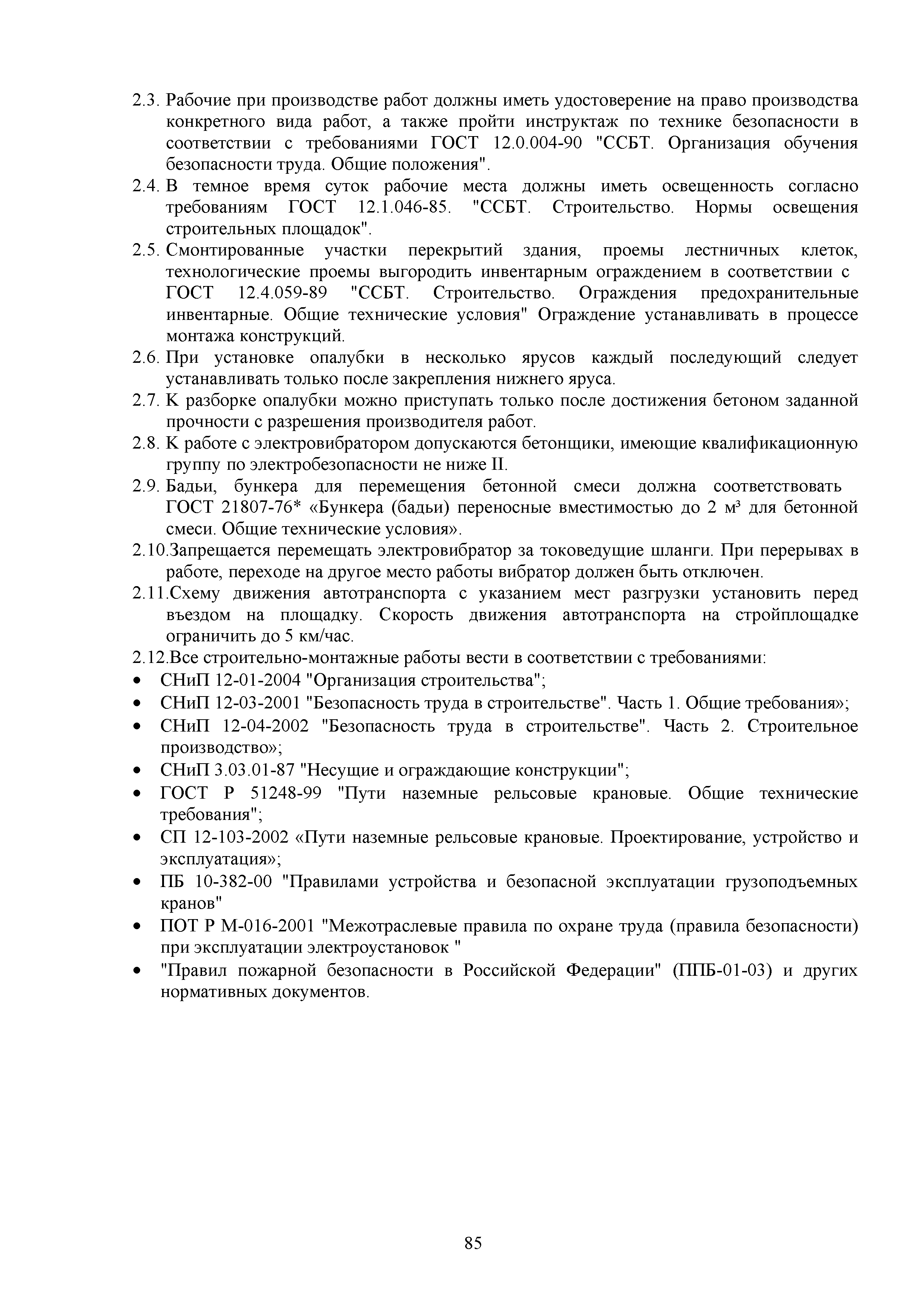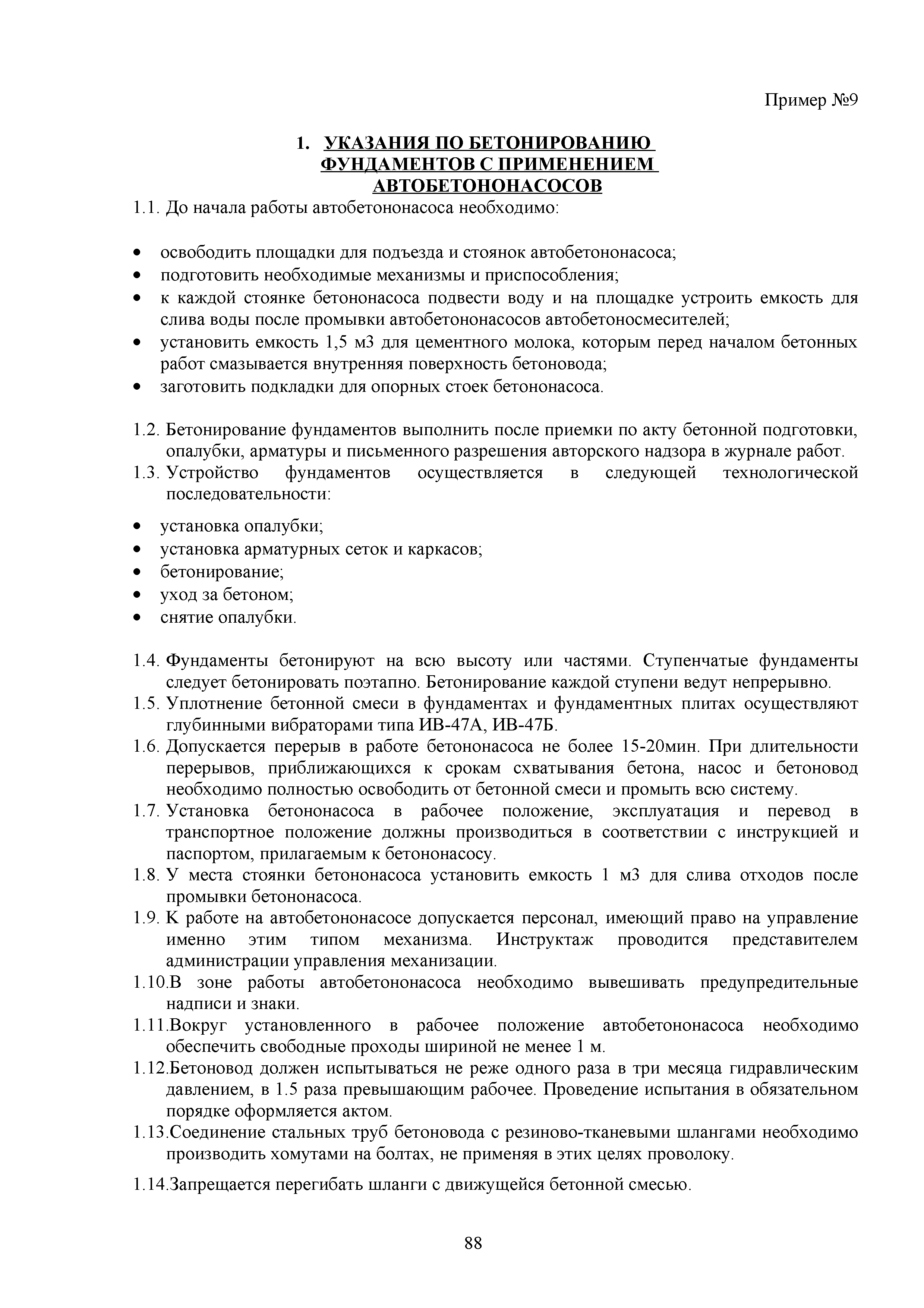 | Оглавление: | 1. Подготовительные работы по освобождению строительной площадки 2. Порядок производства работ по подготовке строительной площадки Пример № 1. Указания по производству работ и технике безопасности при устройстве временного ограждения Пример № 2. Указания по производству работ и технике безопасности труда при устройстве временных автодорог Пример № 3. Указания к производству работ при монтаже бытовых помещений контейнерного типа 3. Погрузочно-разгрузочные работы автокранами и пневмоколесными кранами 4. Работа грузоподъемных кранов в охранной зоне воздушных линий электропередачи (ВЛ) или за ее пределами до 30 м от крайних проводов 5. Указания по эксплуатации универсальных выносных площадок 6. Техника безопасности при эксплуатации универсальных выносных площадок Пример № 4. Общие указания по монтажу, демонтажу и эксплуатации лесов 7. Указания по установке и эксплуатации грузопассажирского подъемника и меры безопасности 8. Указания по технике безопасности при установке и эксплуатации подъемников Пример № 5. Указания по технике безопасности при эксплуатации люлек 9. Указания к производству работ при подаче грузов в проемы перекрытий 10. Техника безопасности при подаче грузов в проемы перекрытий 11. Указания по производству строительно-монтажных работ и безопасности труда Пример № 6. Указания по производству работ и безопасности труда при забивке свай Пример № 7. Указания по бетонированию монолитных ростверков с применением крана Пример № 8. Мероприятия при работе с бункером для бетонной смеси Пример № 9. Указания по бетонированию фундаментов с применением автобетононасосов Пример № 10. Указания по производству работ при монтаже конструкций надземной части здания башенным краном |