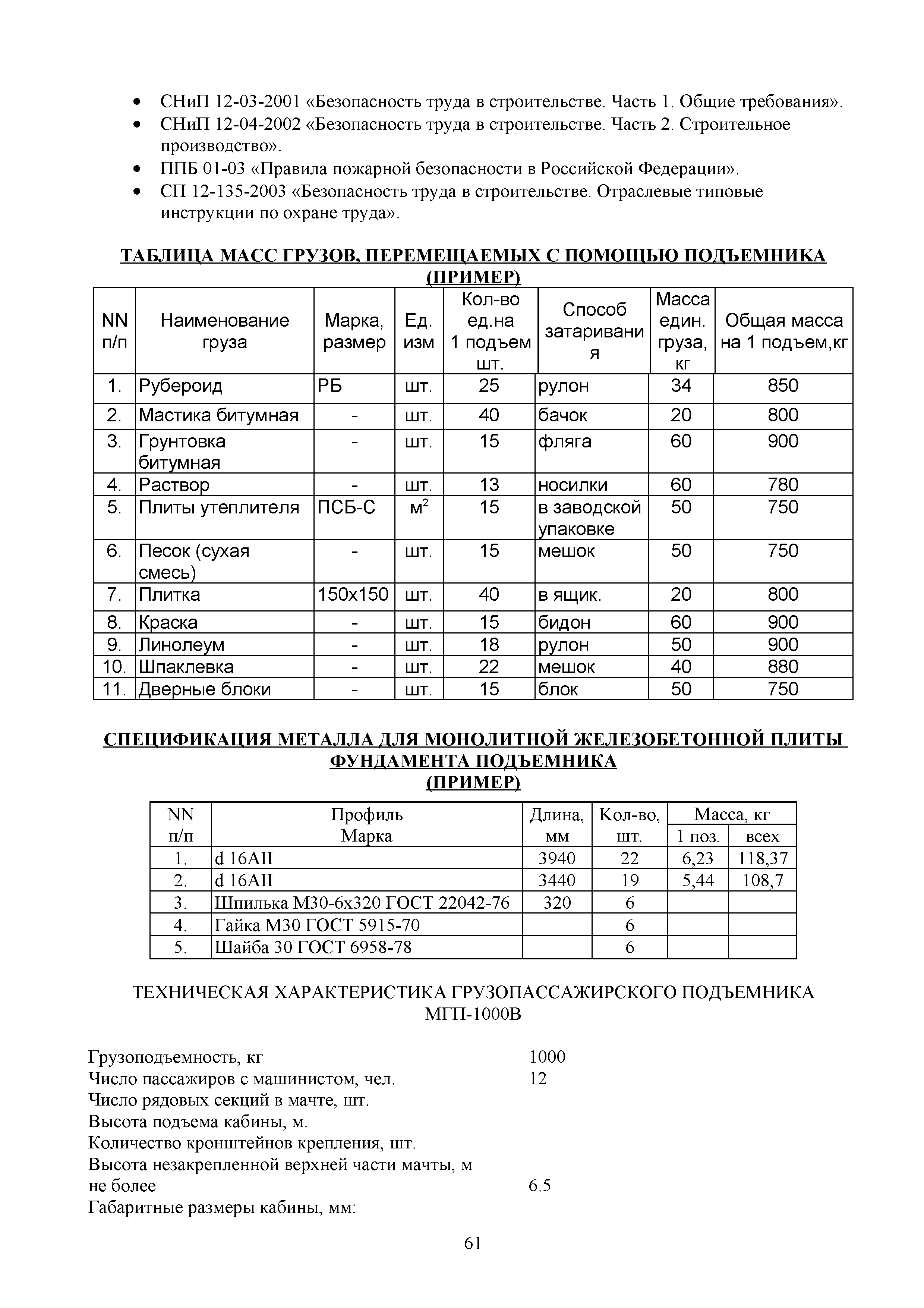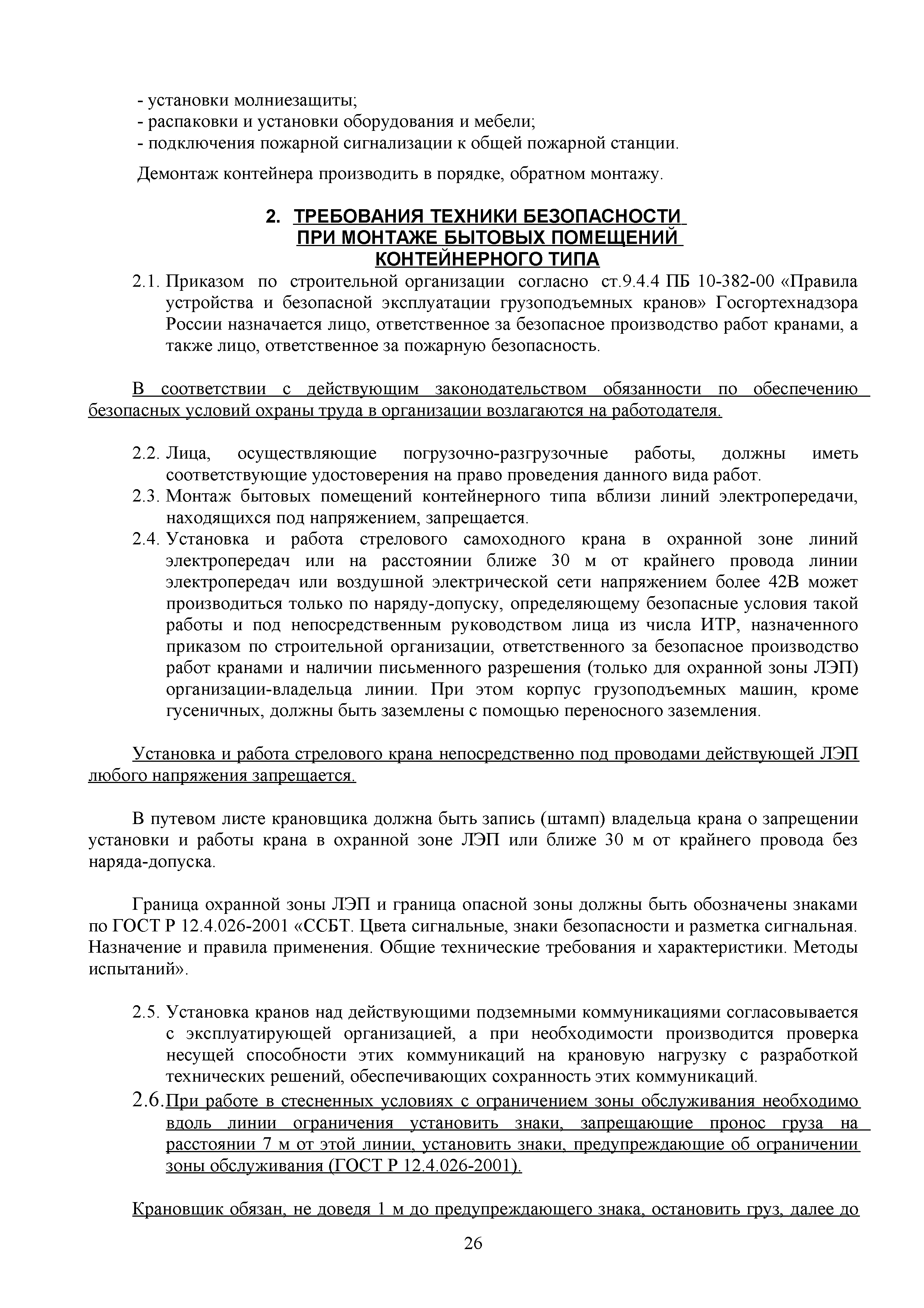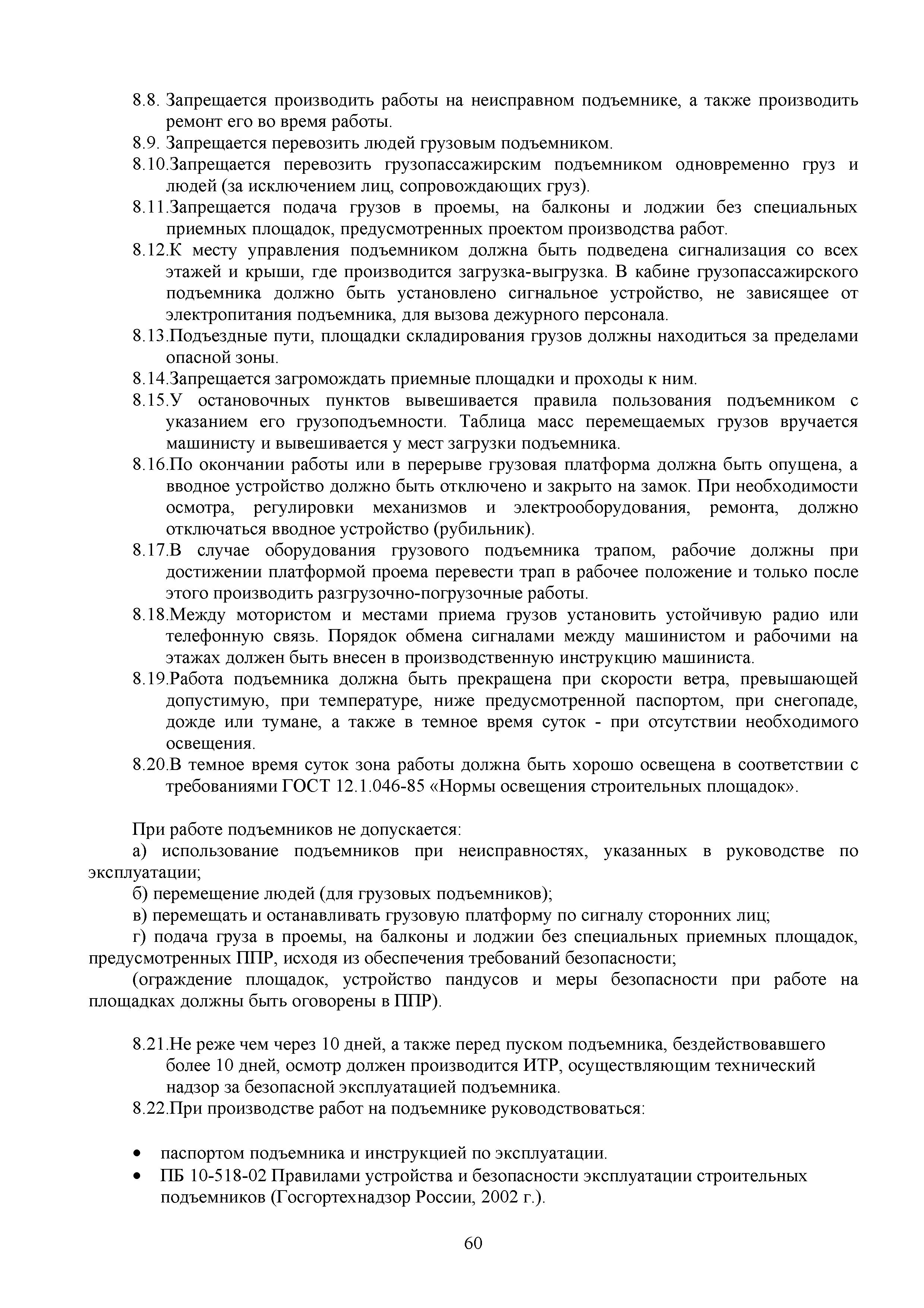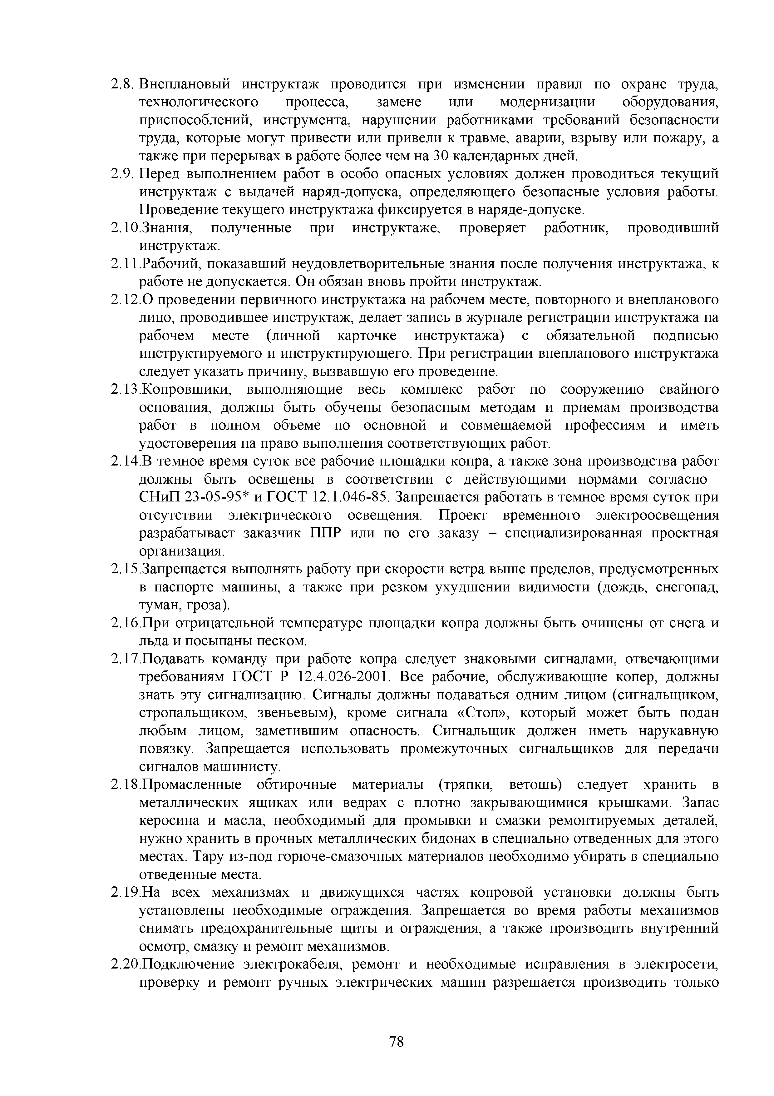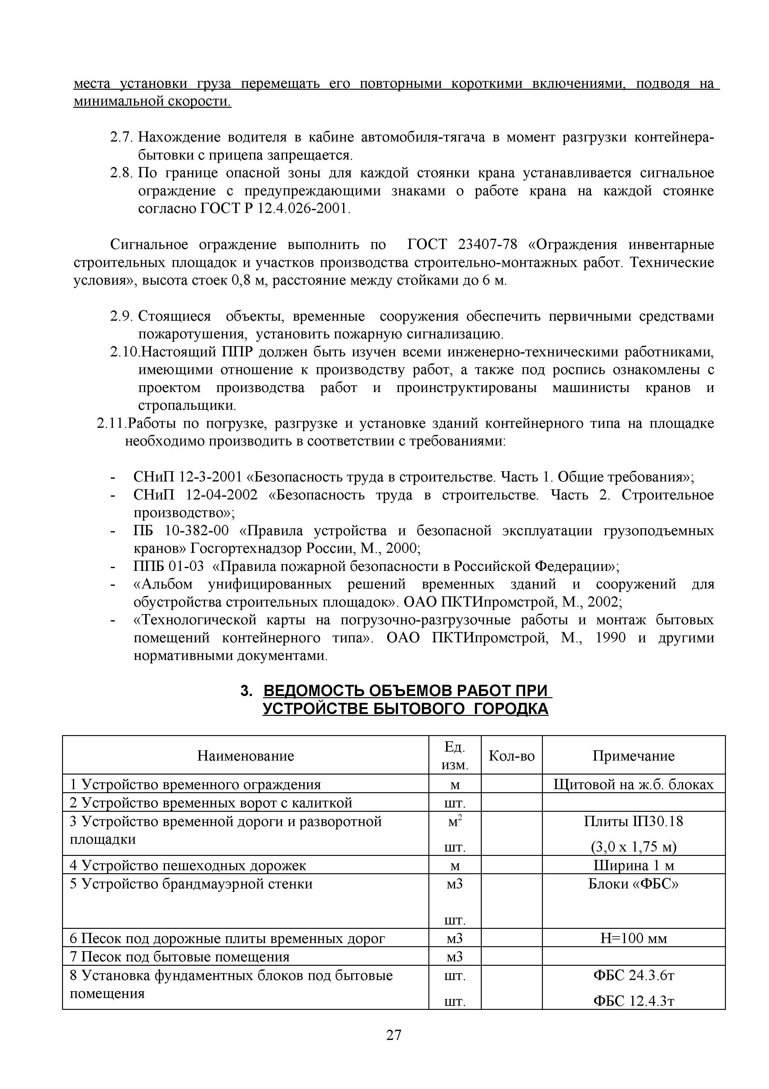 | Оглавление: | 1. Подготовительные работы по освобождению строительной площадки 2. Порядок производства работ по подготовке строительной площадки Пример № 1. Указания по производству работ и технике безопасности при устройстве временного ограждения Пример № 2. Указания по производству работ и технике безопасности труда при устройстве временных автодорог Пример № 3. Указания к производству работ при монтаже бытовых помещений контейнерного типа 3. Погрузочно-разгрузочные работы автокранами и пневмоколесными кранами 4. Работа грузоподъемных кранов в охранной зоне воздушных линий электропередачи (ВЛ) или за ее пределами до 30 м от крайних проводов 5. Указания по эксплуатации универсальных выносных площадок 6. Техника безопасности при эксплуатации универсальных выносных площадок Пример № 4. Общие указания по монтажу, демонтажу и эксплуатации лесов 7. Указания по установке и эксплуатации грузопассажирского подъемника и меры безопасности 8. Указания по технике безопасности при установке и эксплуатации подъемников Пример № 5. Указания по технике безопасности при эксплуатации люлек 9. Указания к производству работ при подаче грузов в проемы перекрытий 10. Техника безопасности при подаче грузов в проемы перекрытий 11. Указания по производству строительно-монтажных работ и безопасности труда Пример № 6. Указания по производству работ и безопасности труда при забивке свай Пример № 7. Указания по бетонированию монолитных ростверков с применением крана Пример № 8. Мероприятия при работе с бункером для бетонной смеси Пример № 9. Указания по бетонированию фундаментов с применением автобетононасосов Пример № 10. Указания по производству работ при монтаже конструкций надземной части здания башенным краном |