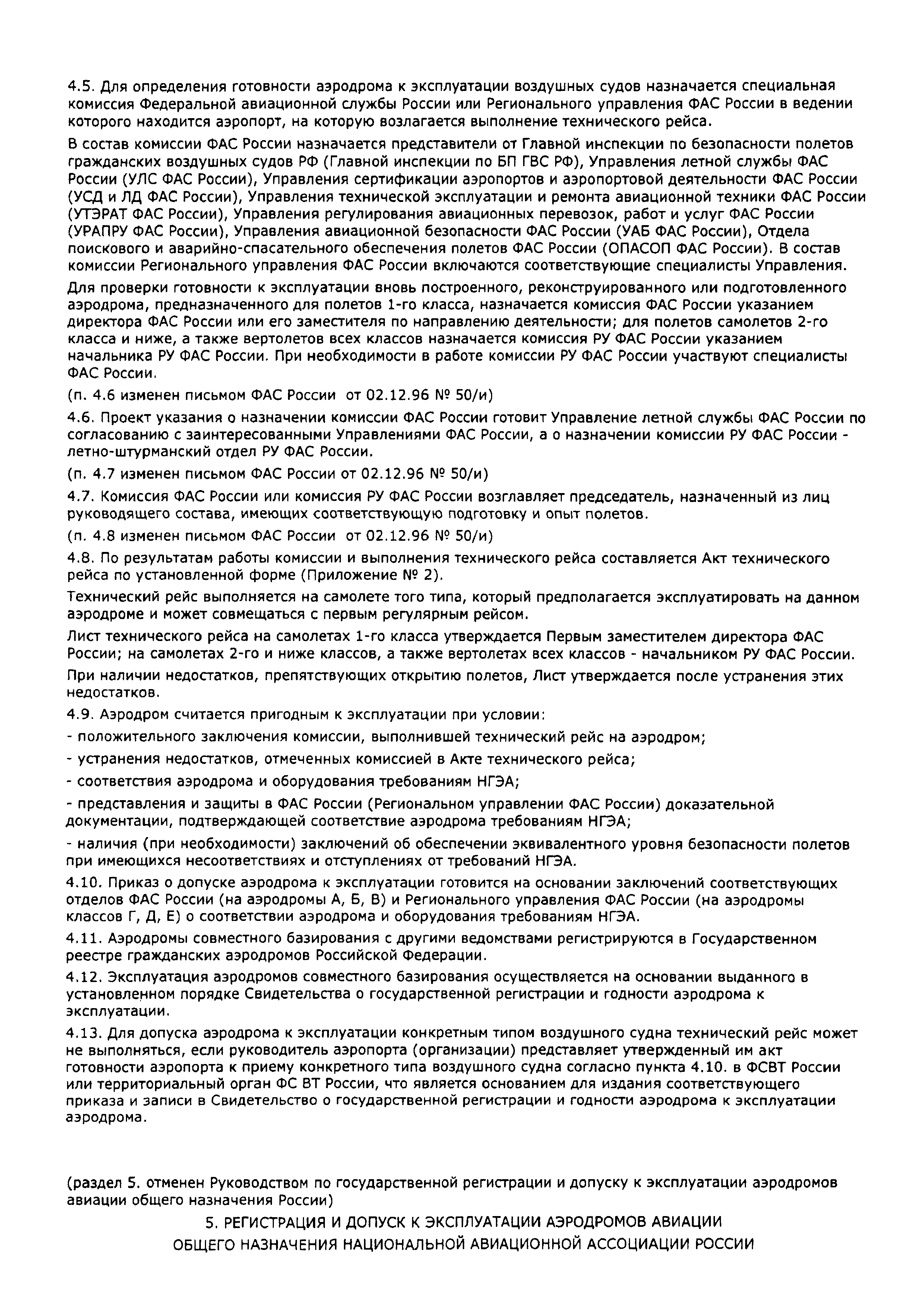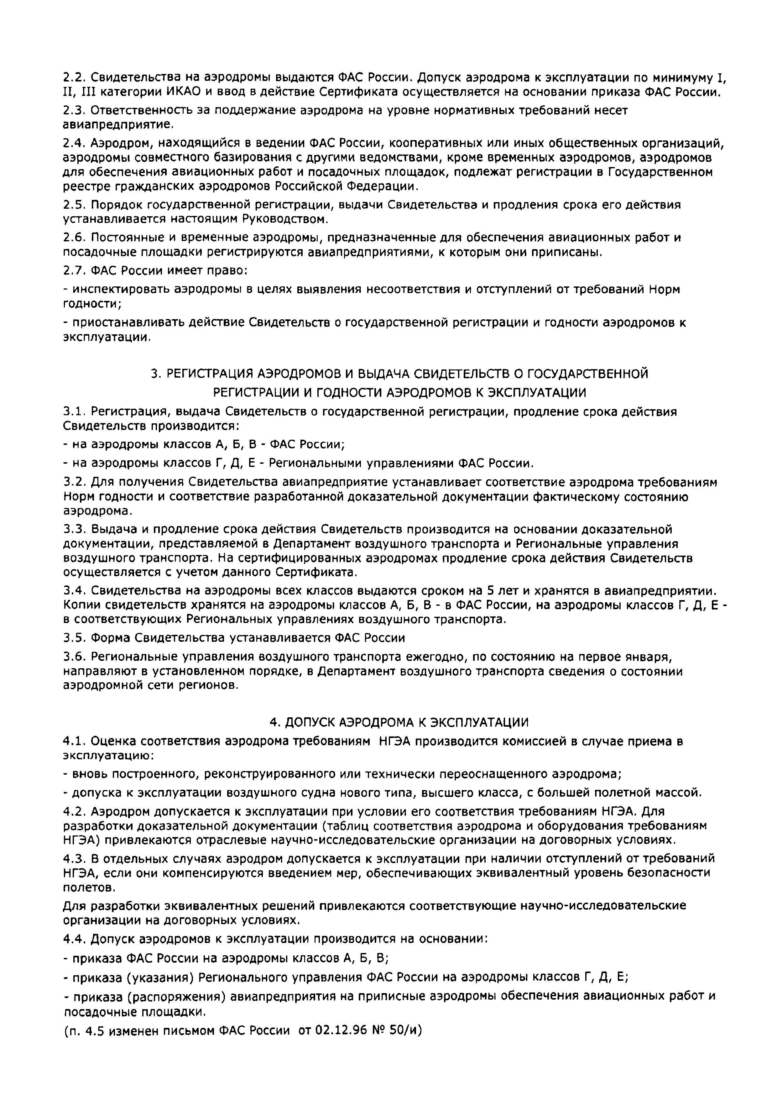 | Оглавление: | Введение 1. Определения 2. Общие положения 3. Регистрация аэродромов и выдача свидетельств о государственной регистрации и годности аэродромов к эксплуатации 4. Допуск аэродрома к эксплуатации 5. Регистрация и допуск к эксплуатации аэродромов авиации общего назначения национальной авиационной ассоциации России 6. Допуск аэропортов к эксплуатации зарубежных типов воздушных судов Приложение |