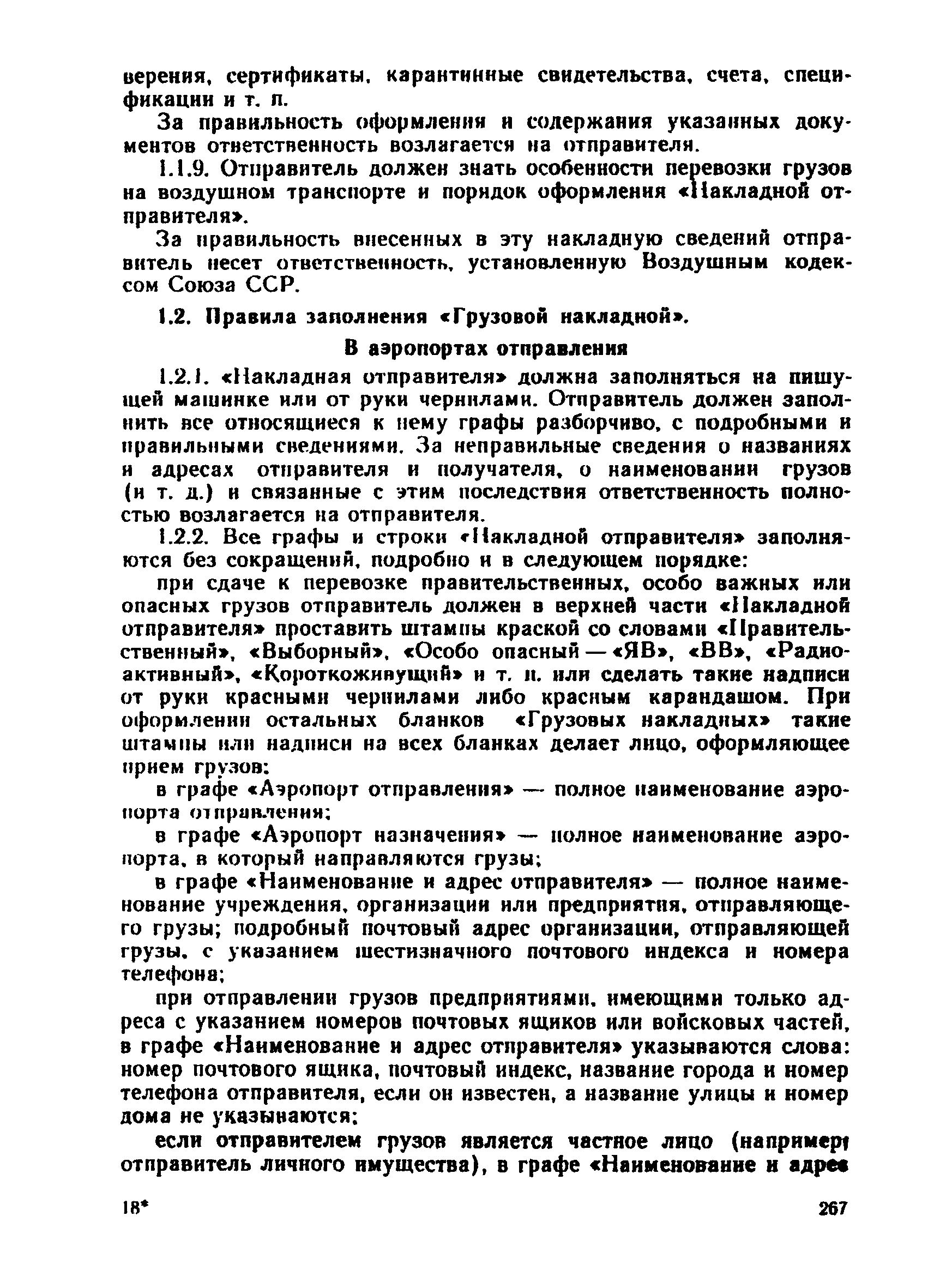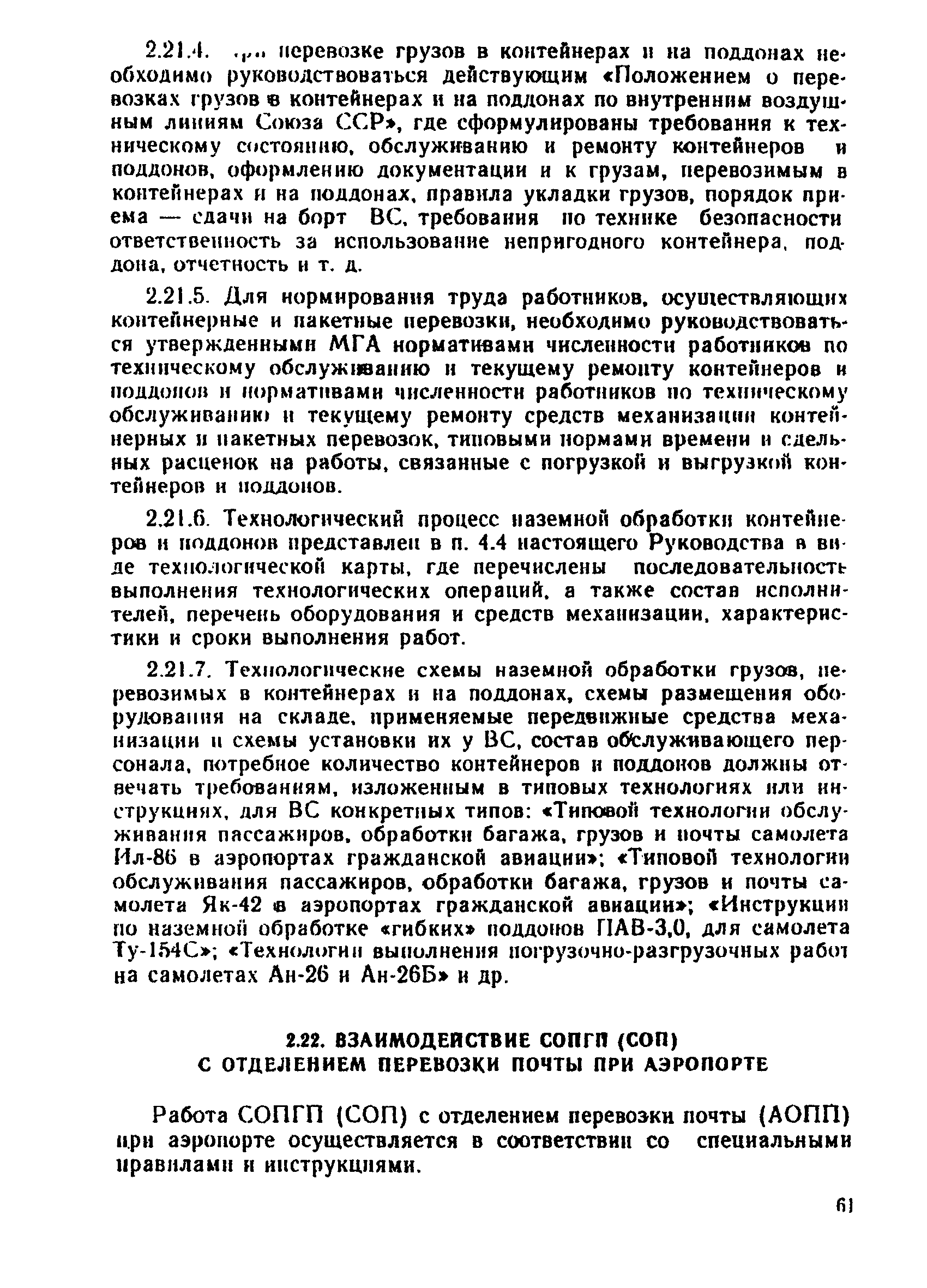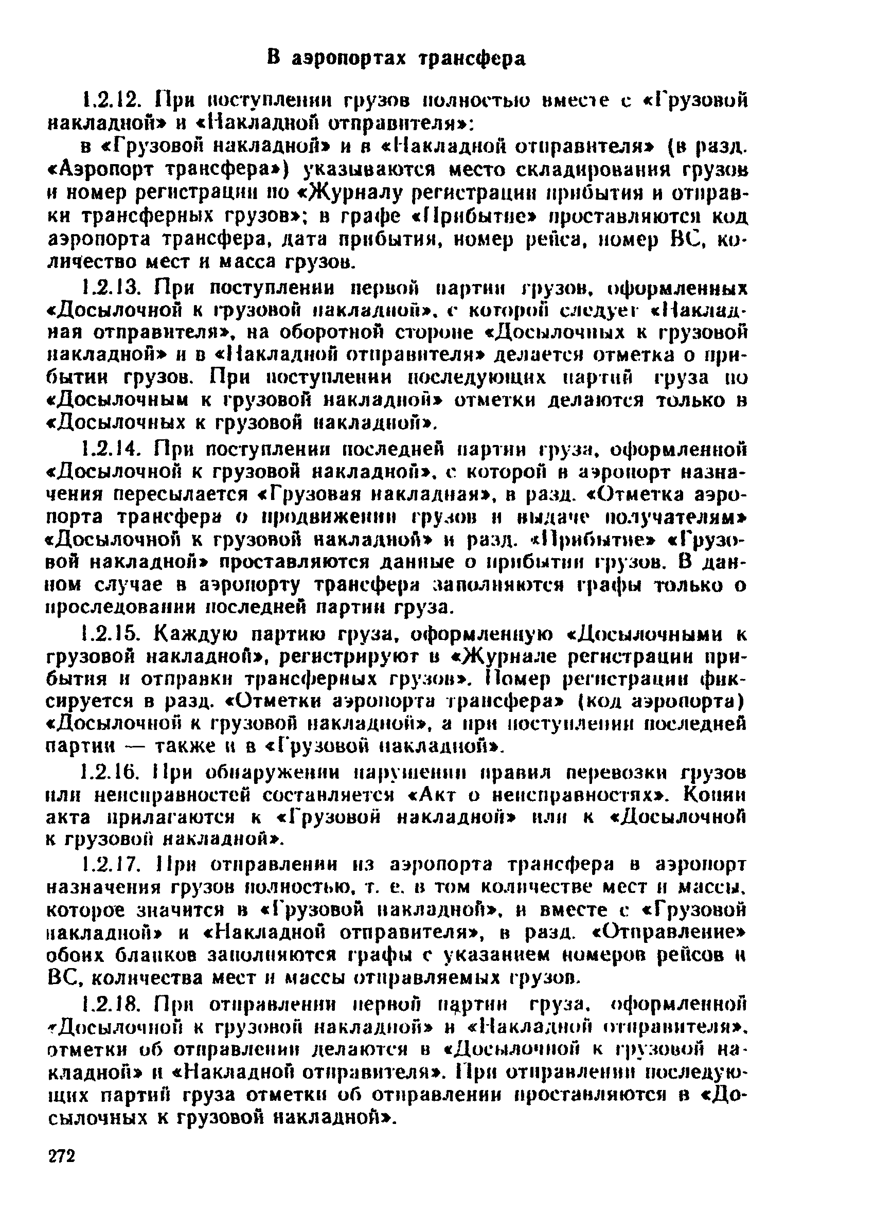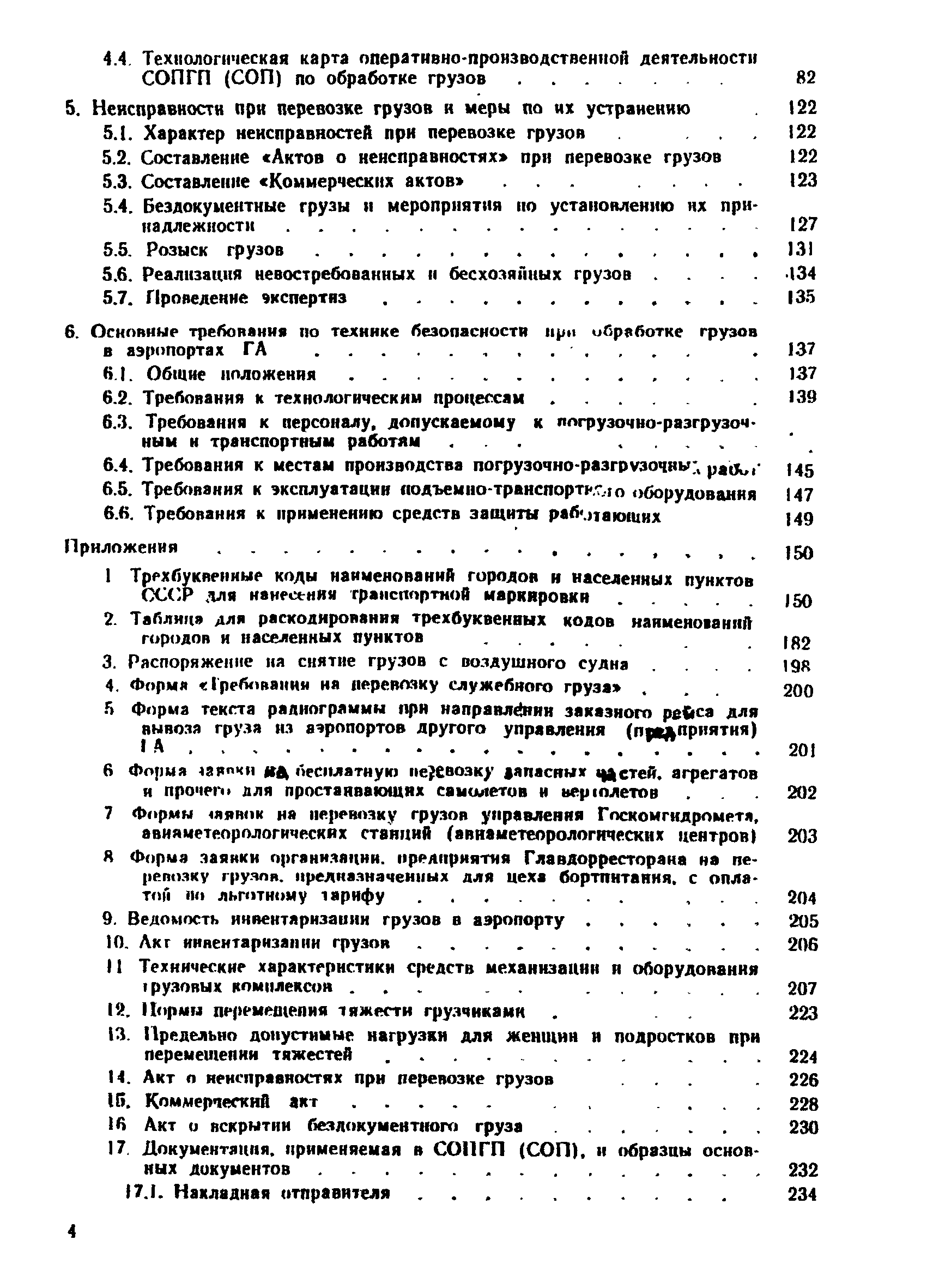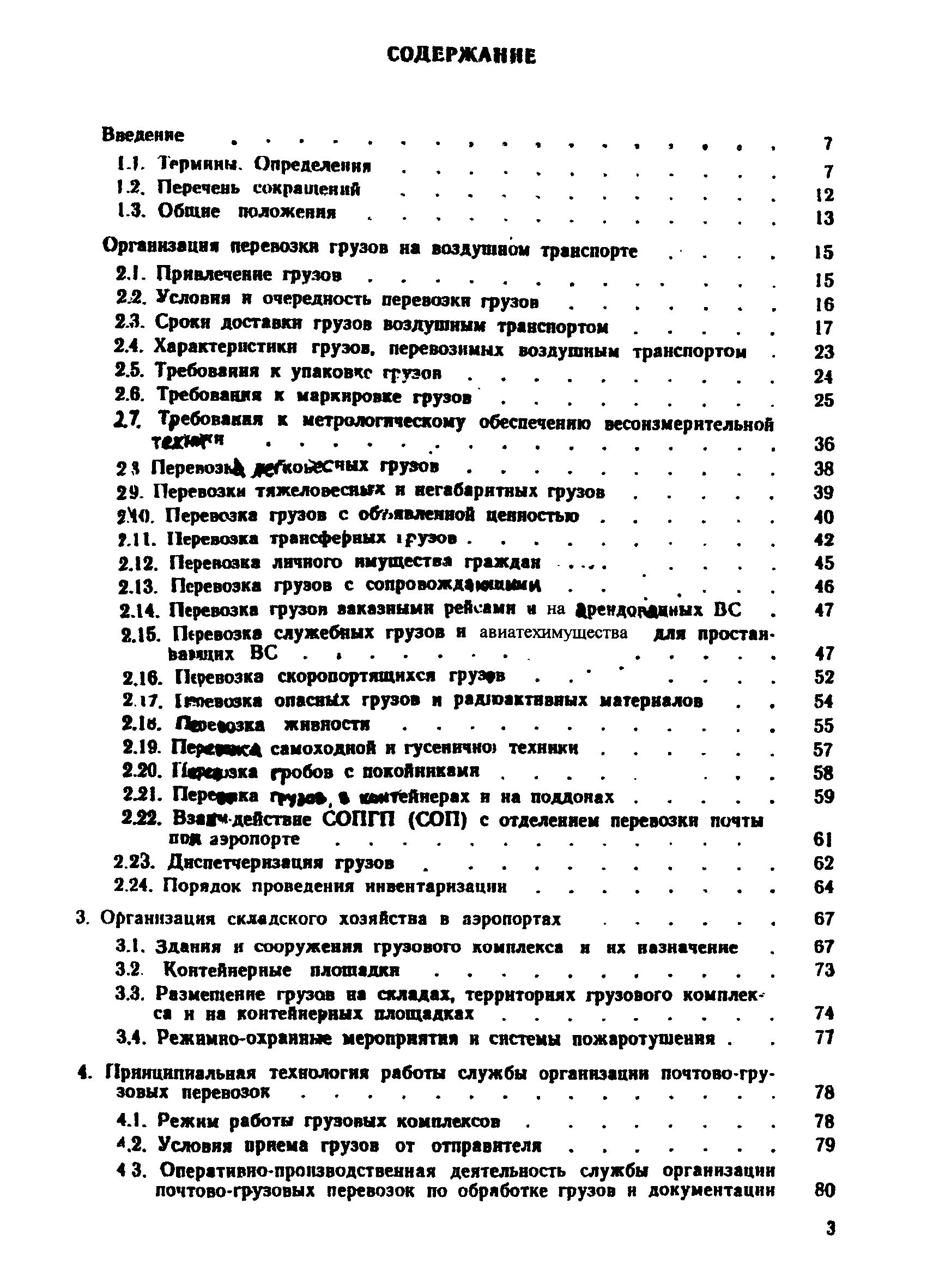 | Оглавление: | Введение 1.1. Термины. Определения 1.2. Перечень сокращений 1.3. Общие положения 2. Организация перевозки грузов на воздушном транспорте 3. Организация складского хозяйства в аэропортах 4. Принципиальная технология работы службы организации почтово-грузовых перевозок 5. Неисправности при перевозке грузов и меры по их устранению 6. Основные требования по технике безопасности при обработке грузов а аэропортах ГА Приложения |