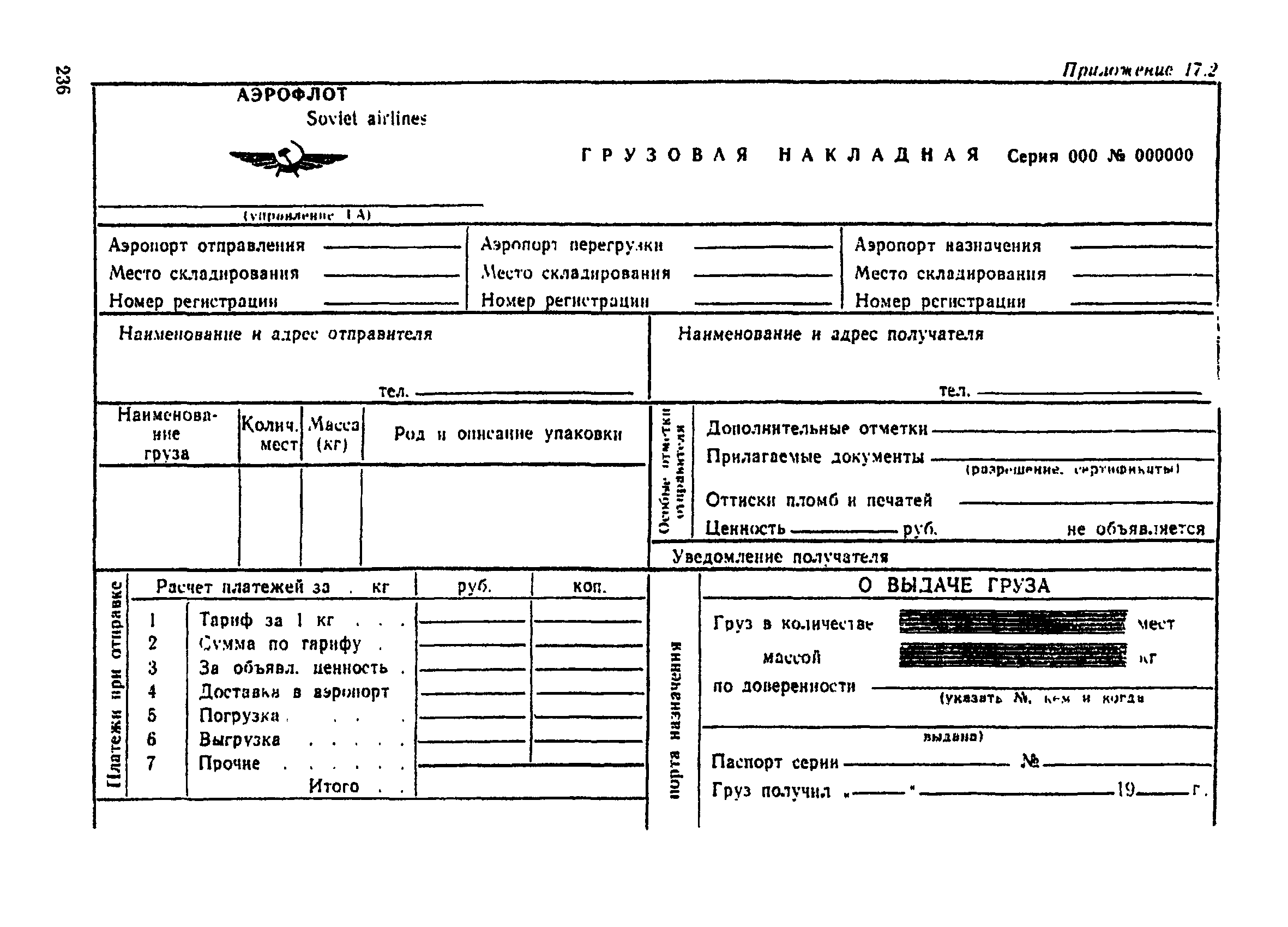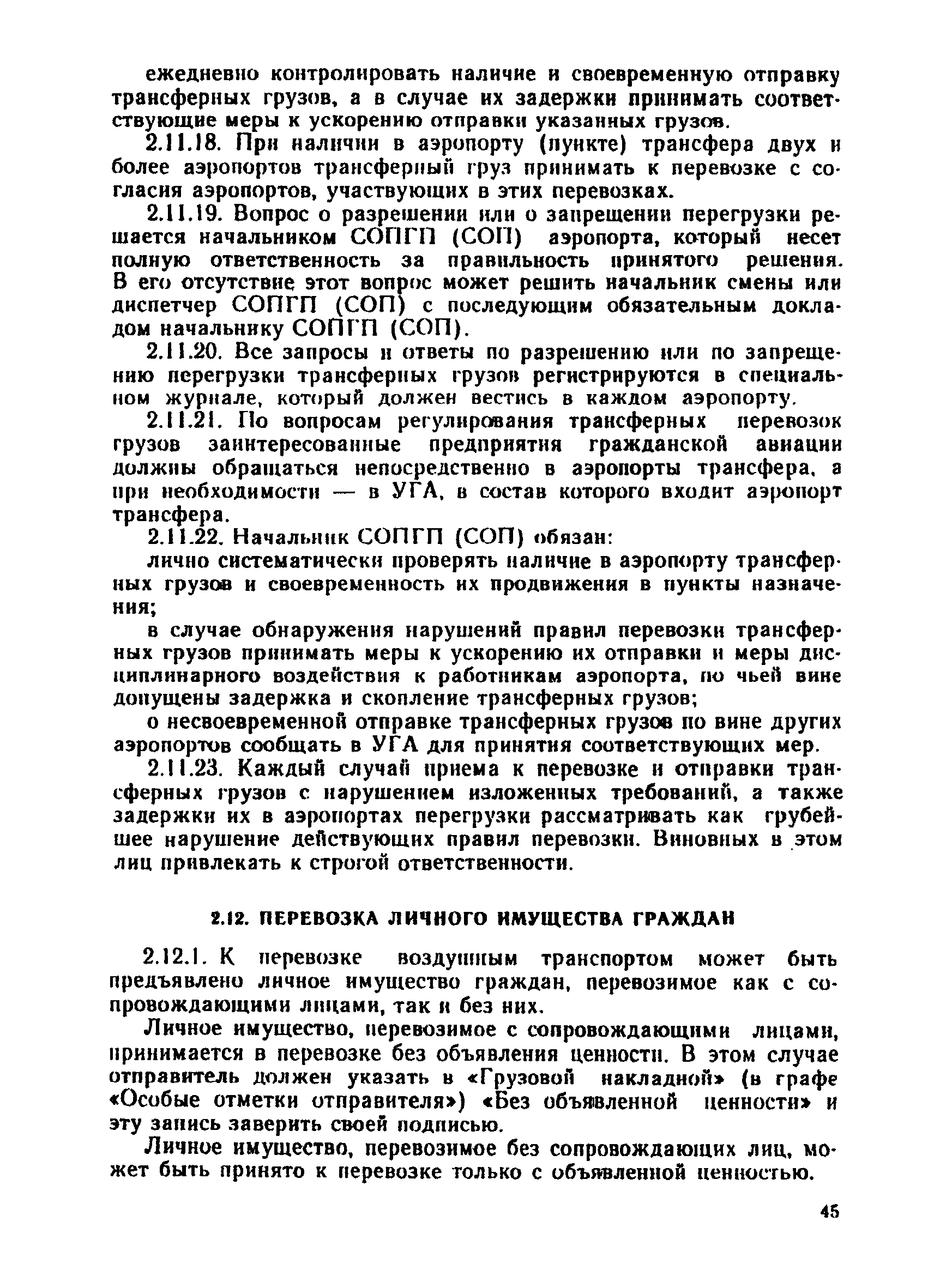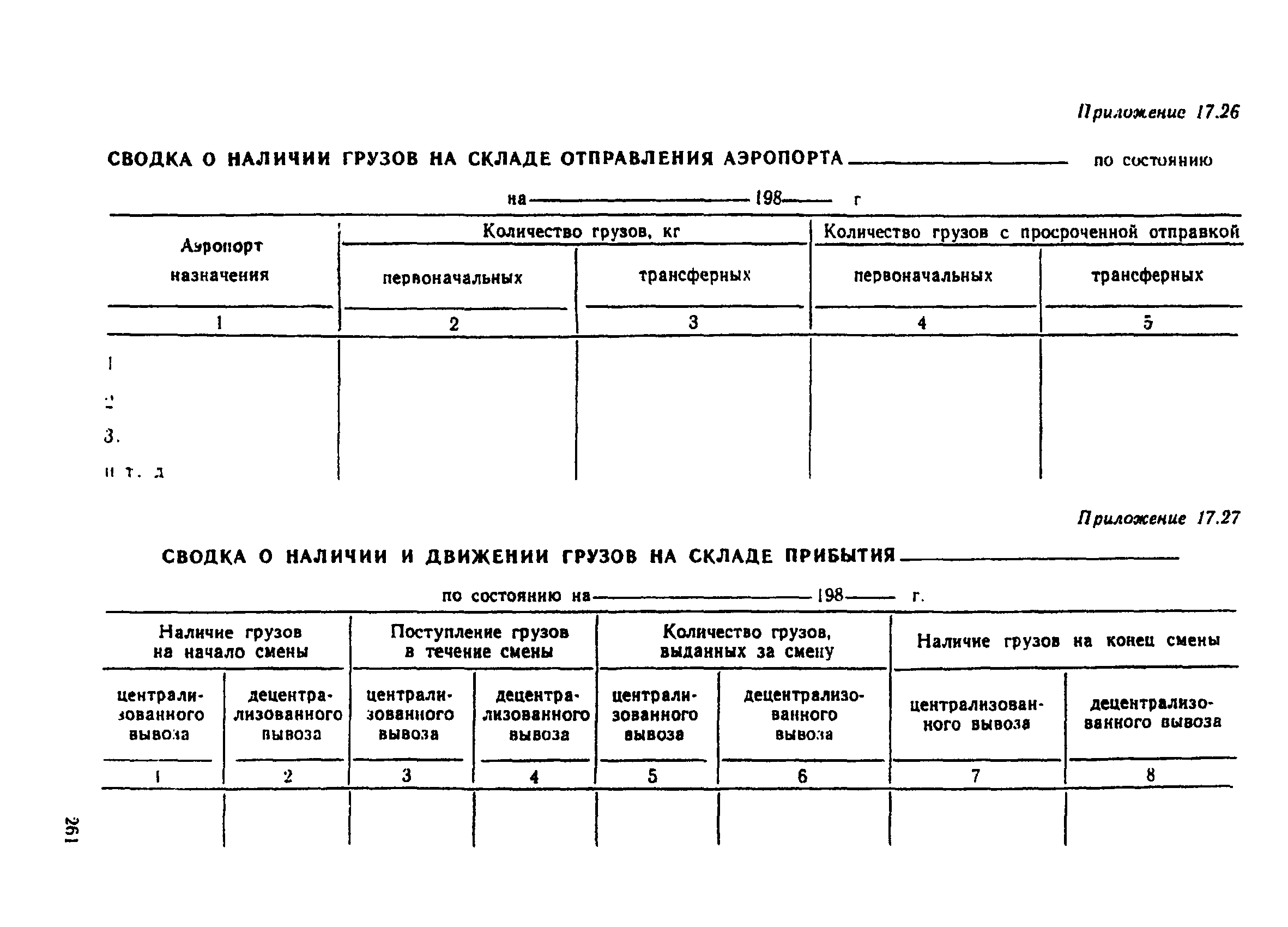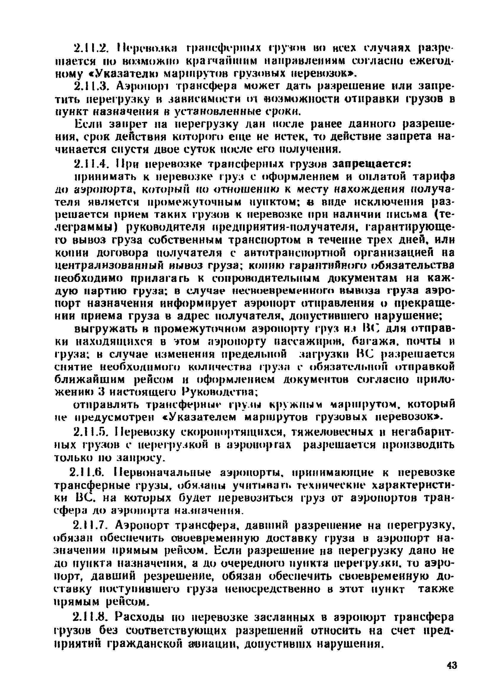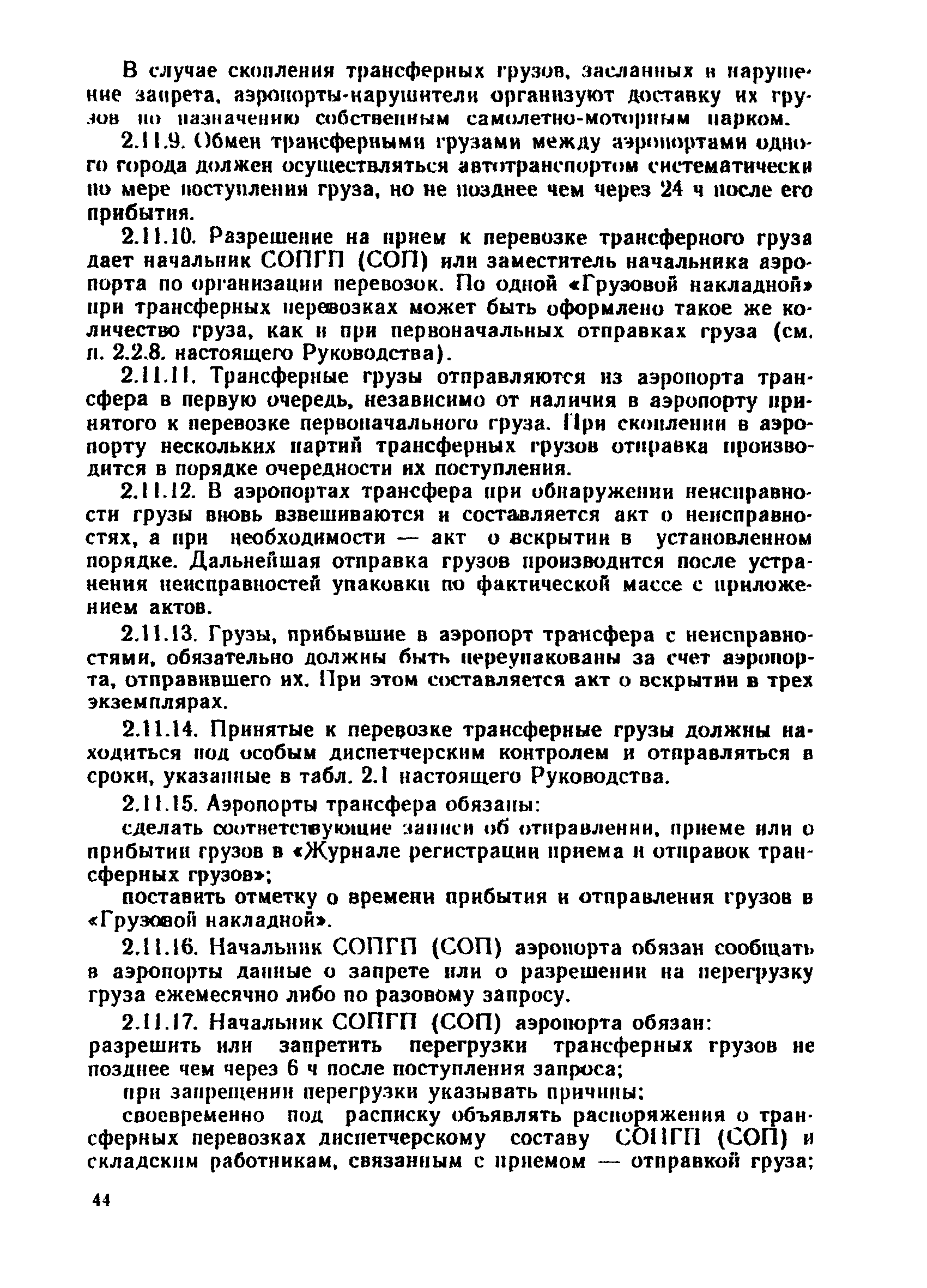| Оглавление: | Введение 1.1. Термины. Определения 1.2. Перечень сокращений 1.3. Общие положения 2. Организация перевозки грузов на воздушном транспорте 3. Организация складского хозяйства в аэропортах 4. Принципиальная технология работы службы организации почтово-грузовых перевозок 5. Неисправности при перевозке грузов и меры по их устранению 6. Основные требования по технике безопасности при обработке грузов а аэропортах ГА Приложения |