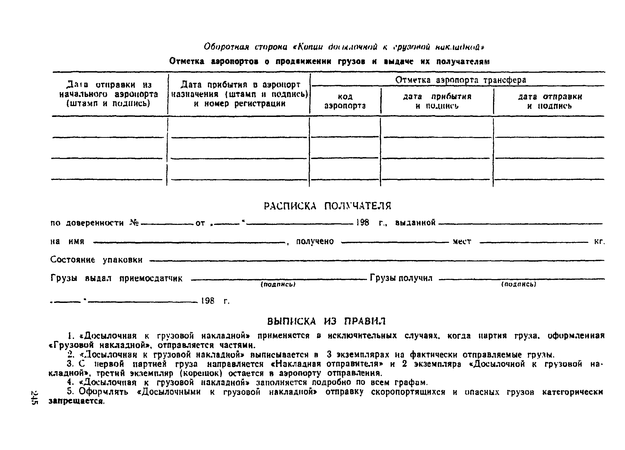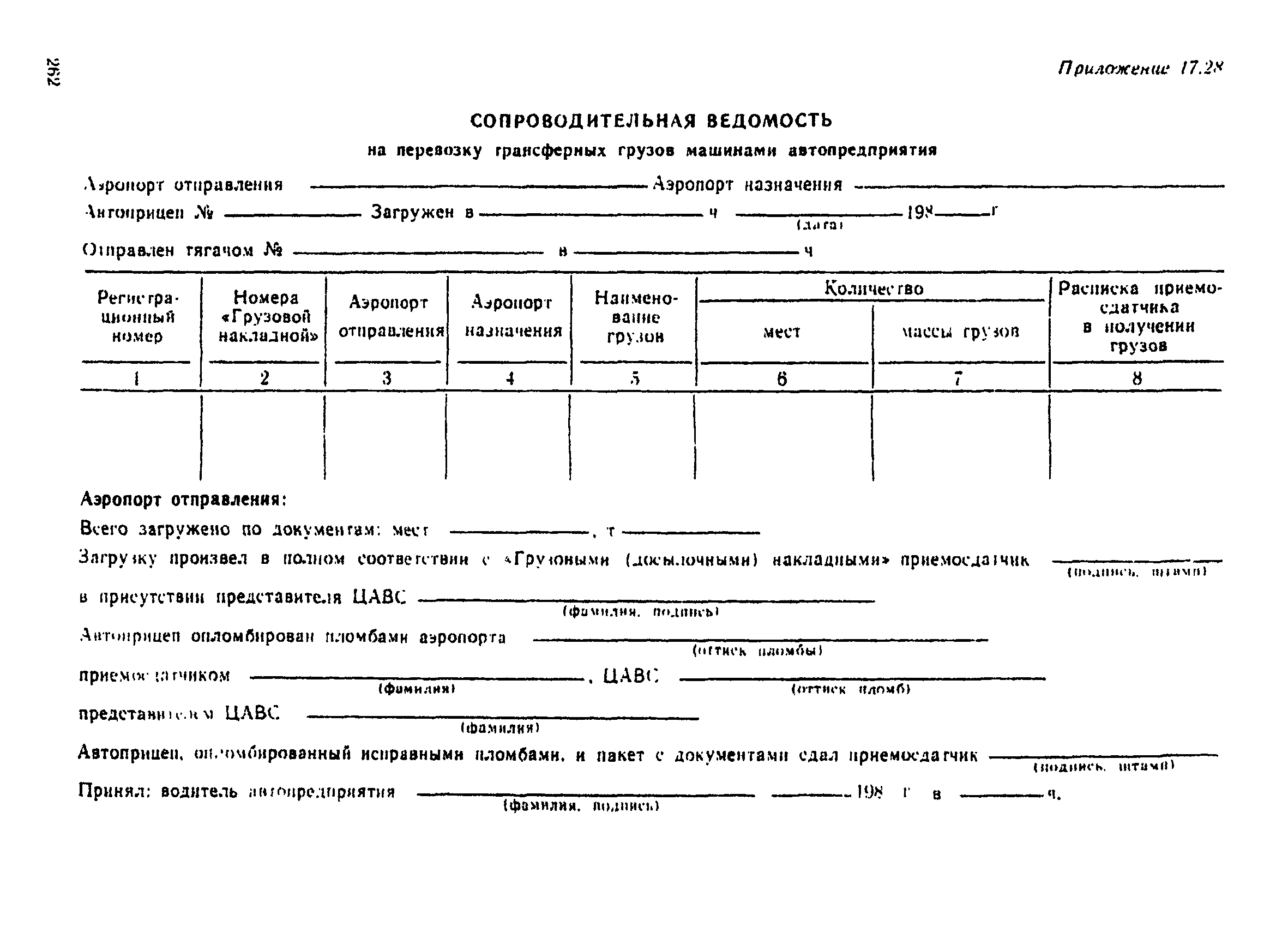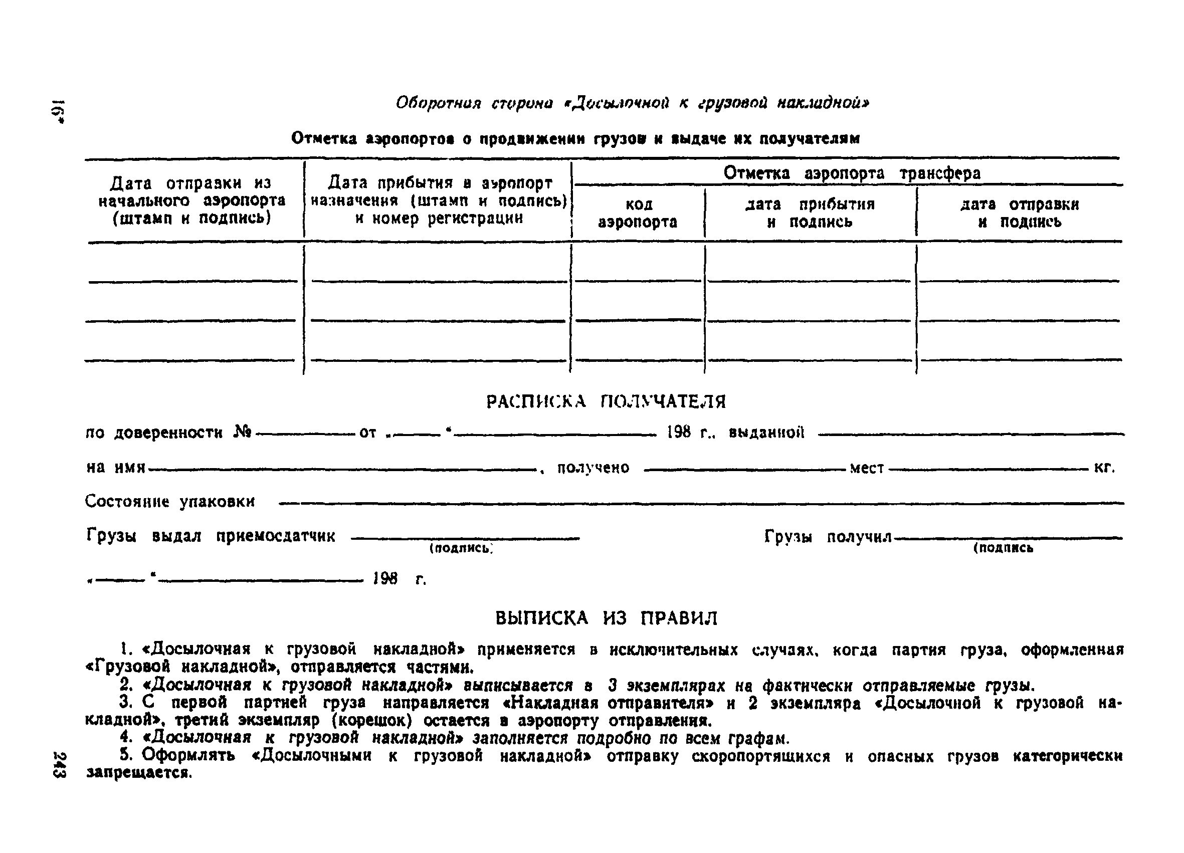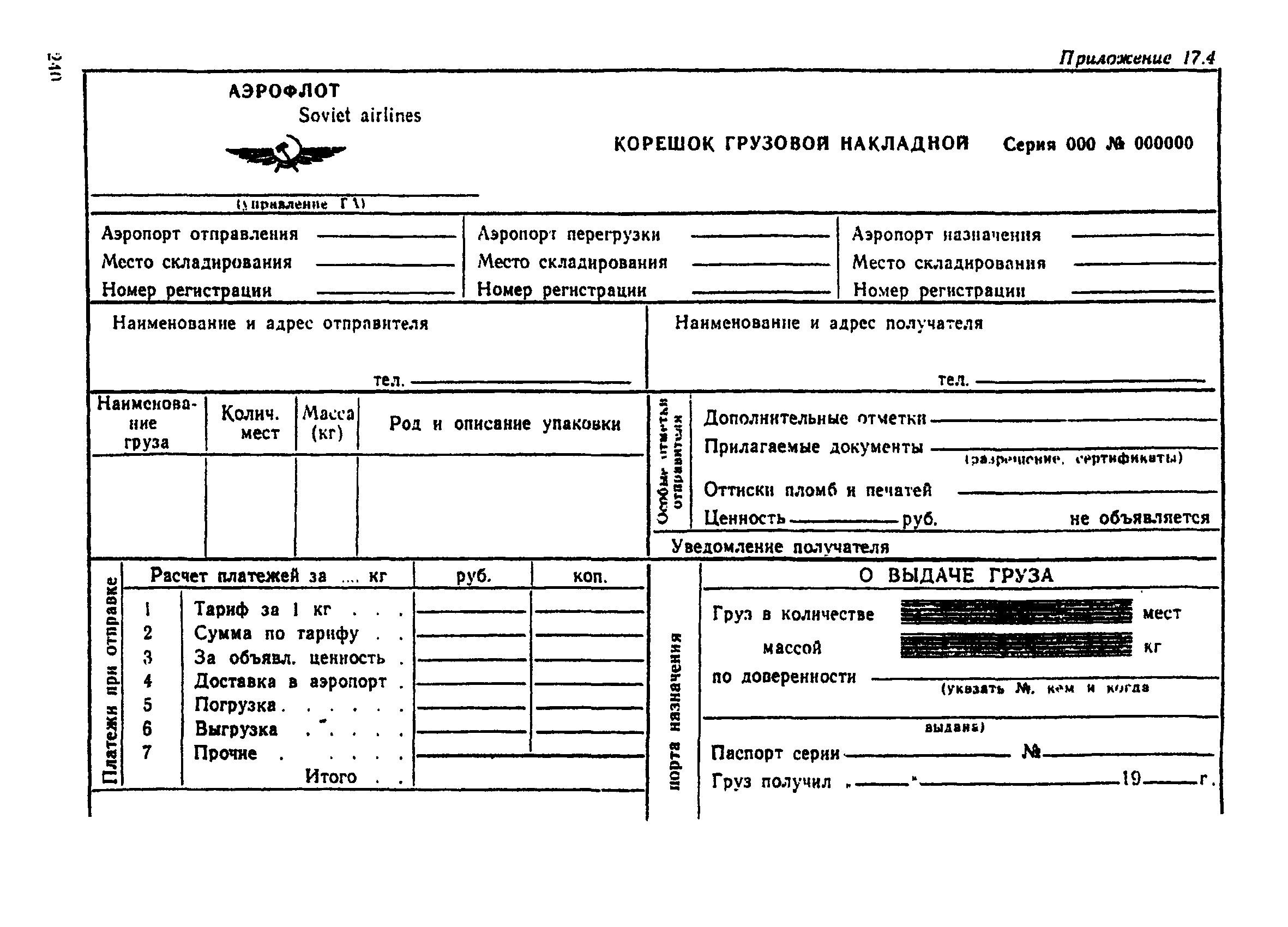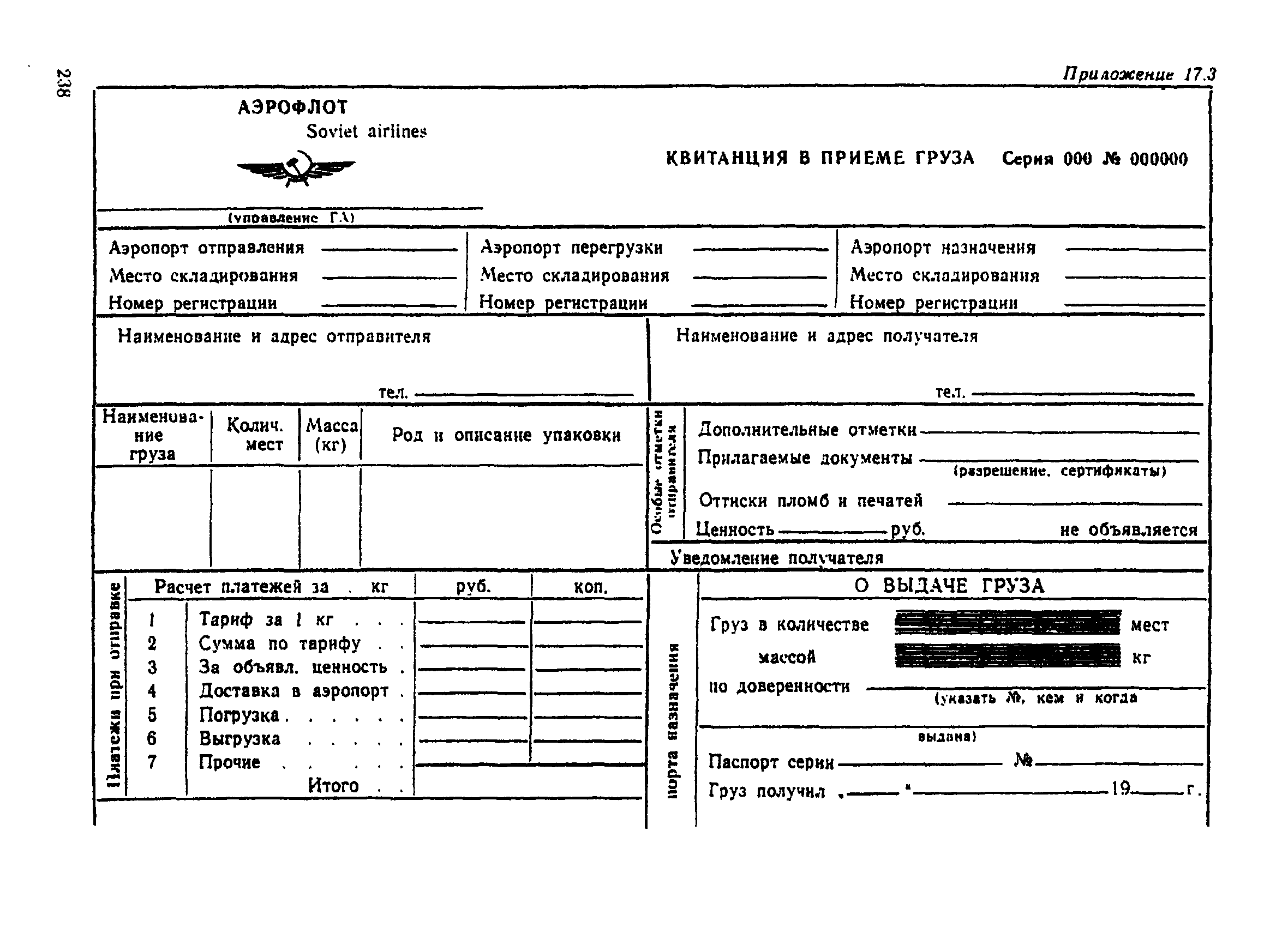 | Оглавление: | Введение 1.1. Термины. Определения 1.2. Перечень сокращений 1.3. Общие положения 2. Организация перевозки грузов на воздушном транспорте 3. Организация складского хозяйства в аэропортах 4. Принципиальная технология работы службы организации почтово-грузовых перевозок 5. Неисправности при перевозке грузов и меры по их устранению 6. Основные требования по технике безопасности при обработке грузов а аэропортах ГА Приложения |