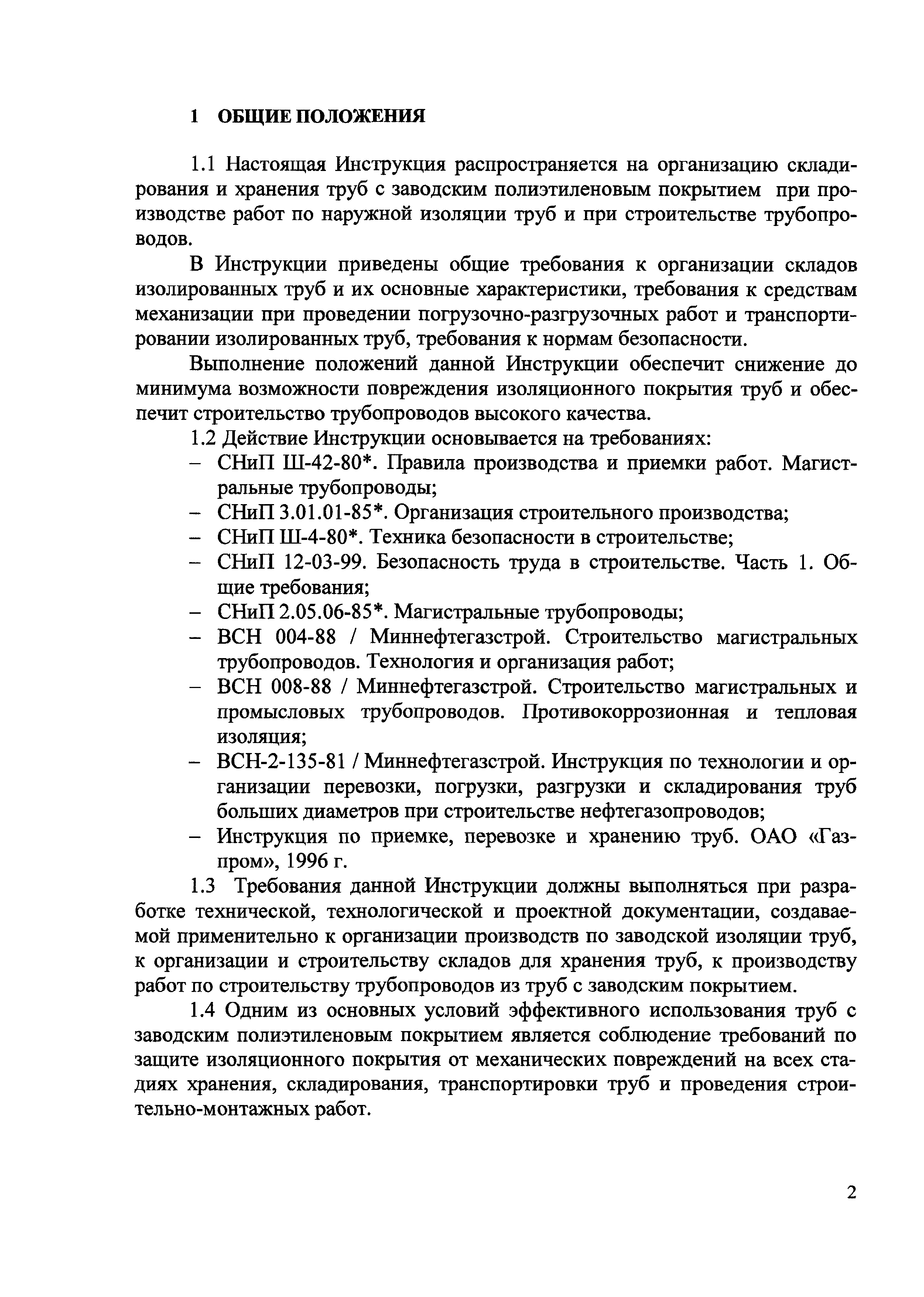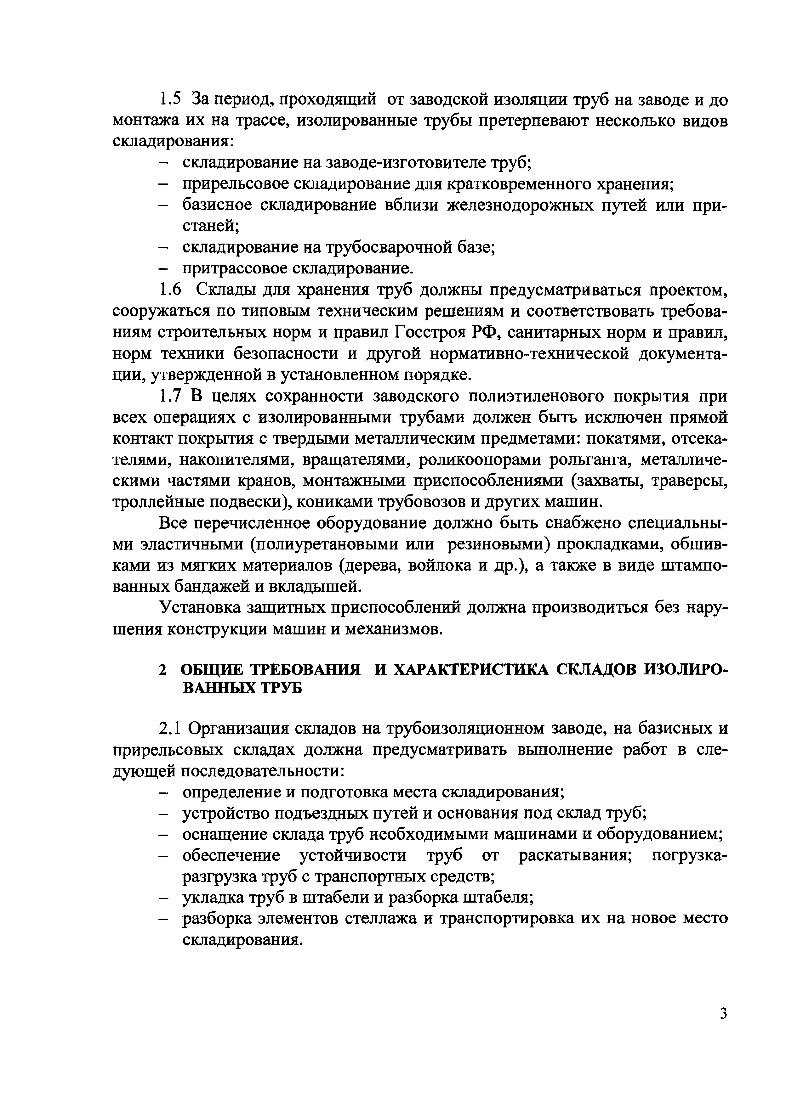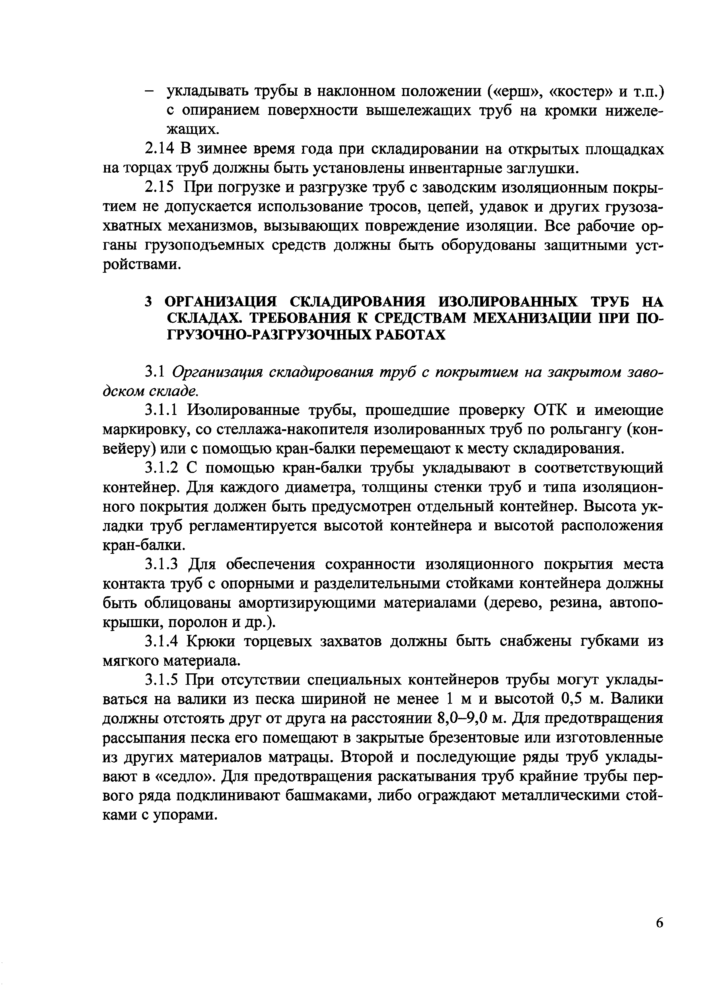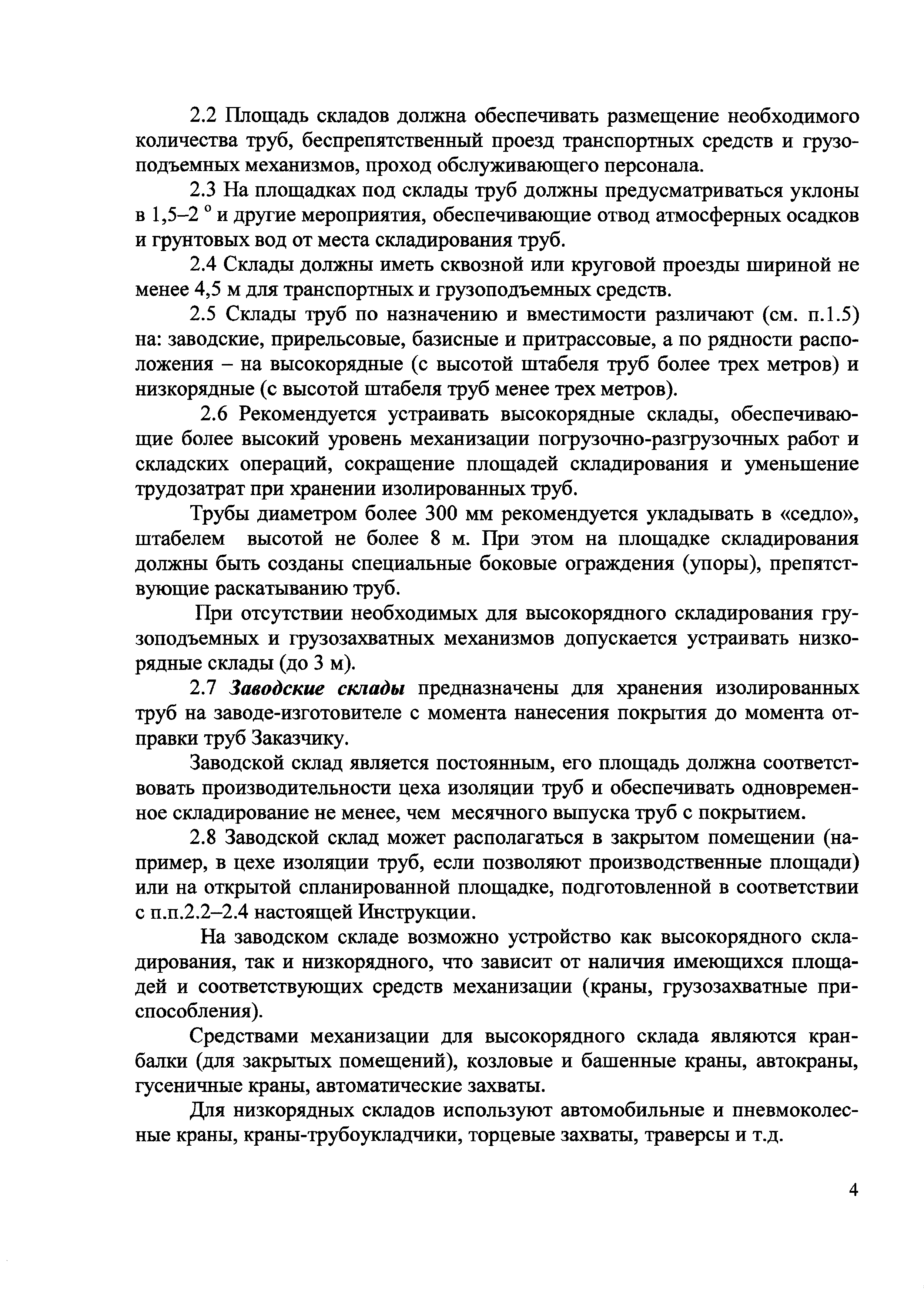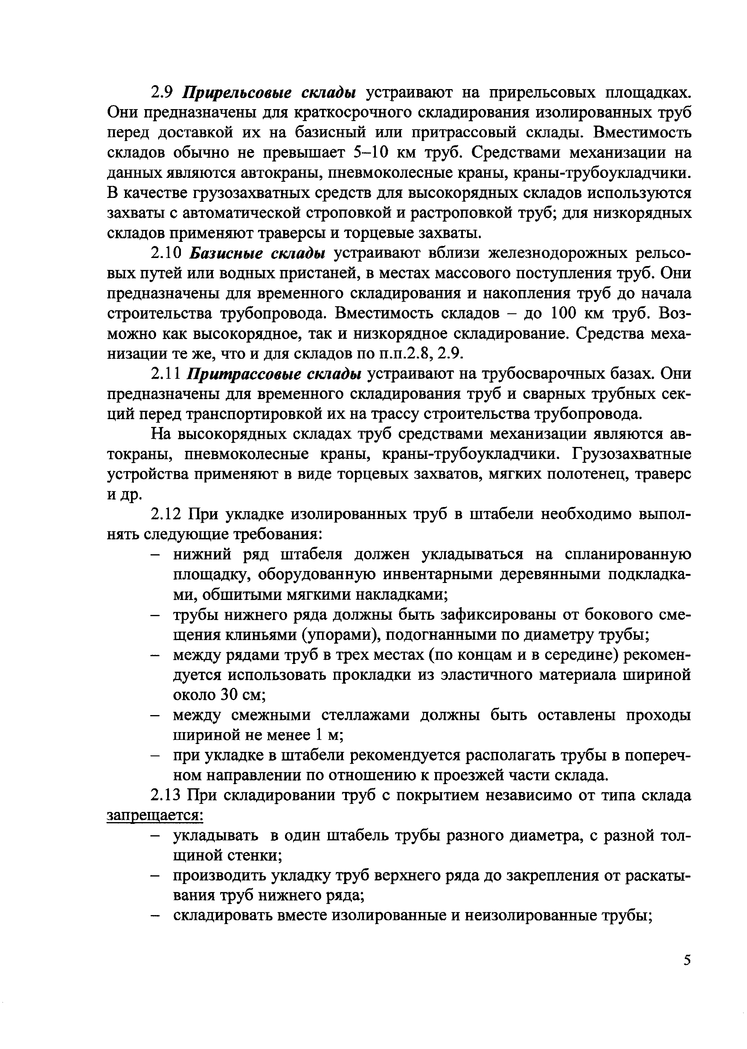 | Оглавление: | 1 Общие положения 2 Общие требования и характеристика складов изолированных труб 3 Организация складирования изолированных труб на складах. Требования к средствам механизации при погрузочно-разгрузочных работ 4 Техника безопасности |