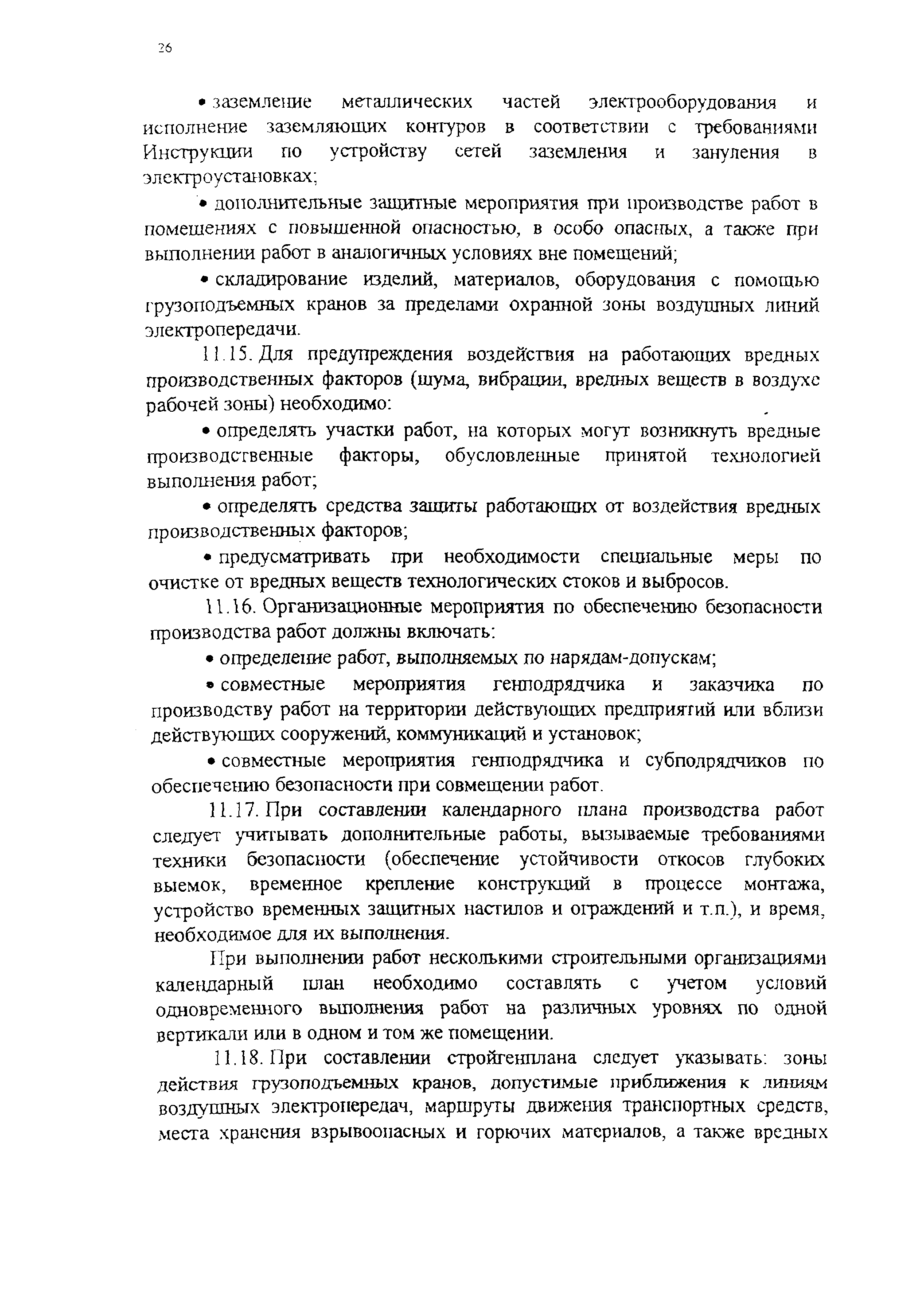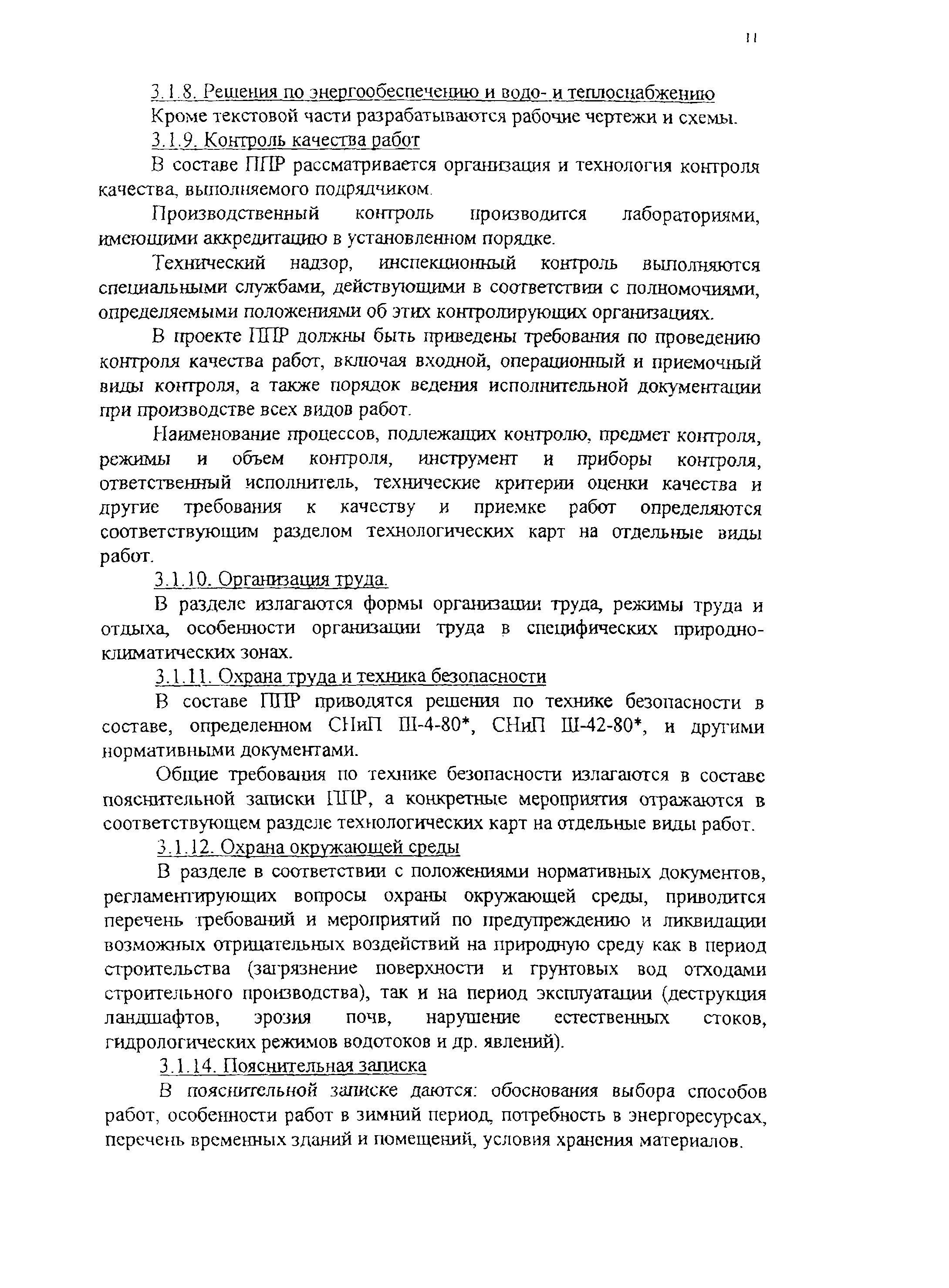 | Оглавление: | 1 Область применения 2 Общие положения 3 Состав проекта производства работ 4 Содержание календарного плана производства работ 5 Содержание строительного генерального плана 6 График поступления на объект строительных материалов 7 График движения рабочих кадров по объекту 8 График движения основных строительных машин по объекту 9 Состав и содержание технологических карт 10 Решения по производству геодезических работ 11 Решения по технике безопасности 12 Решения по организации труда 13 Решения по энергоснабжению и водоснабжению рабочих мест 14 Перечни технологической оснастки 15 Пояснительная записка 16 Мероприятия при производстве работ в районах с радиоактивным заражением местности и в районах бывших боевых действиях Приложения |