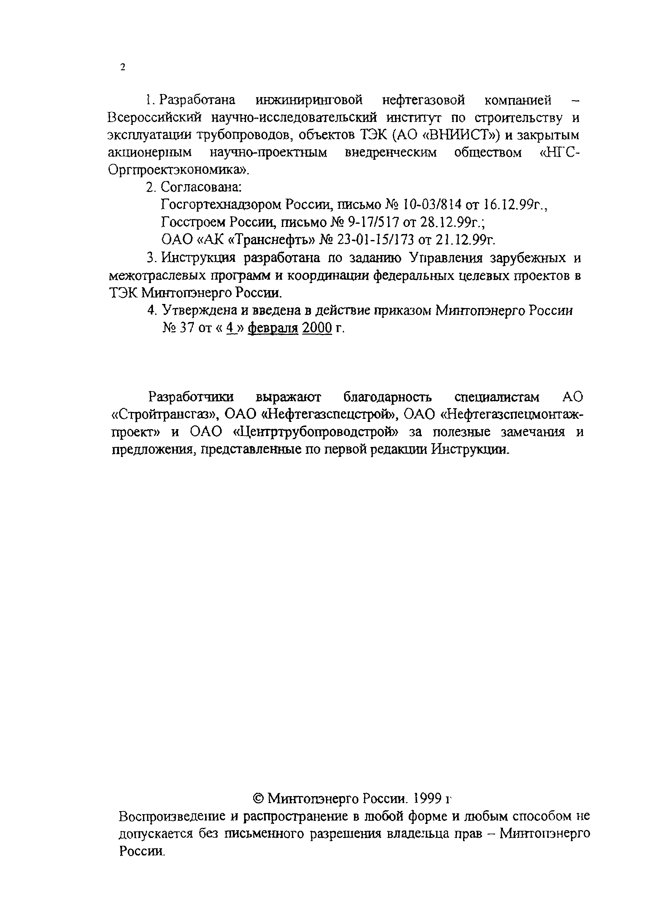 | Утверждён: | 04.02.2000 Минтопэнерго России (Russian Federation Mintopenergo 37)