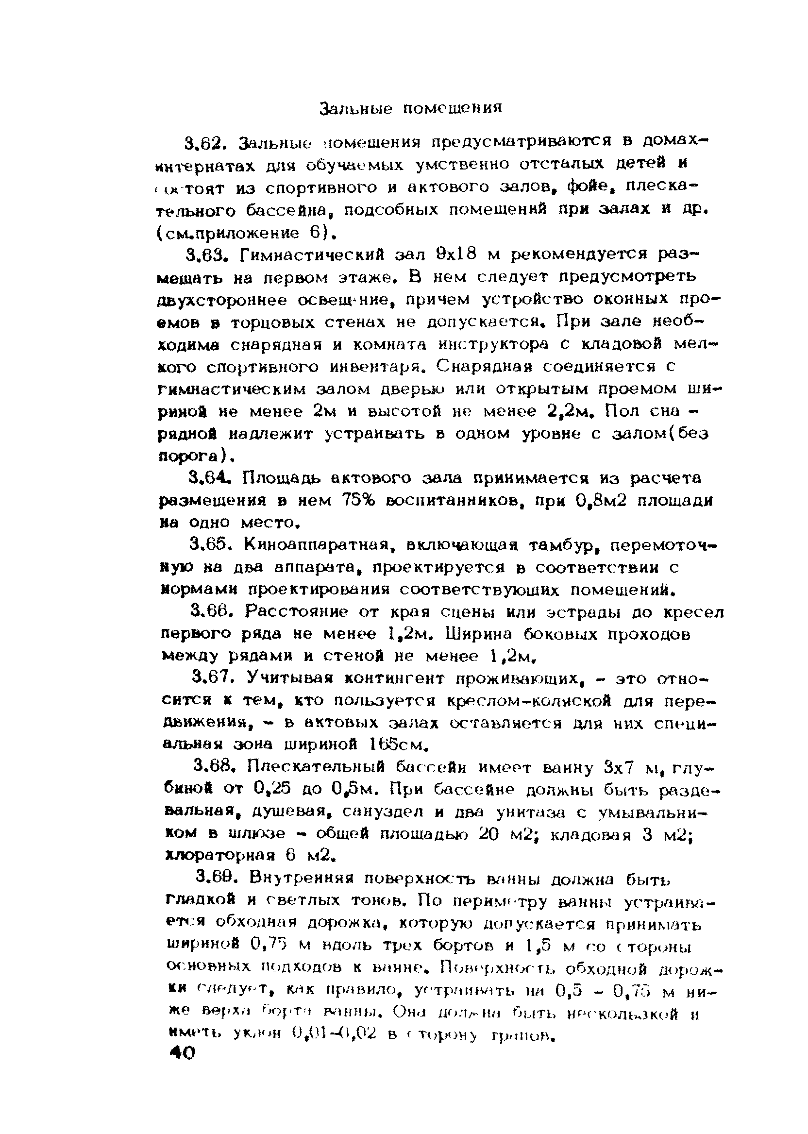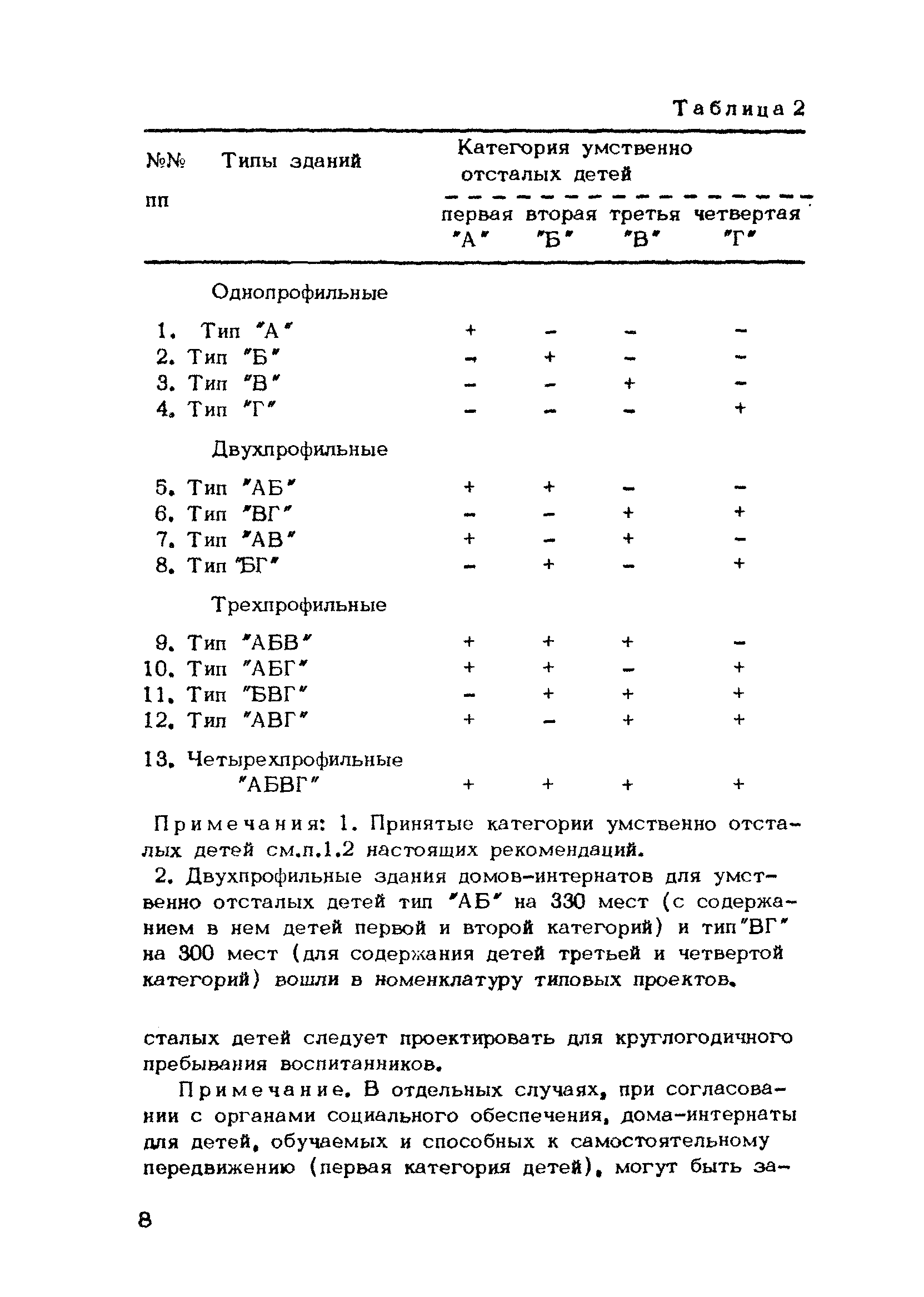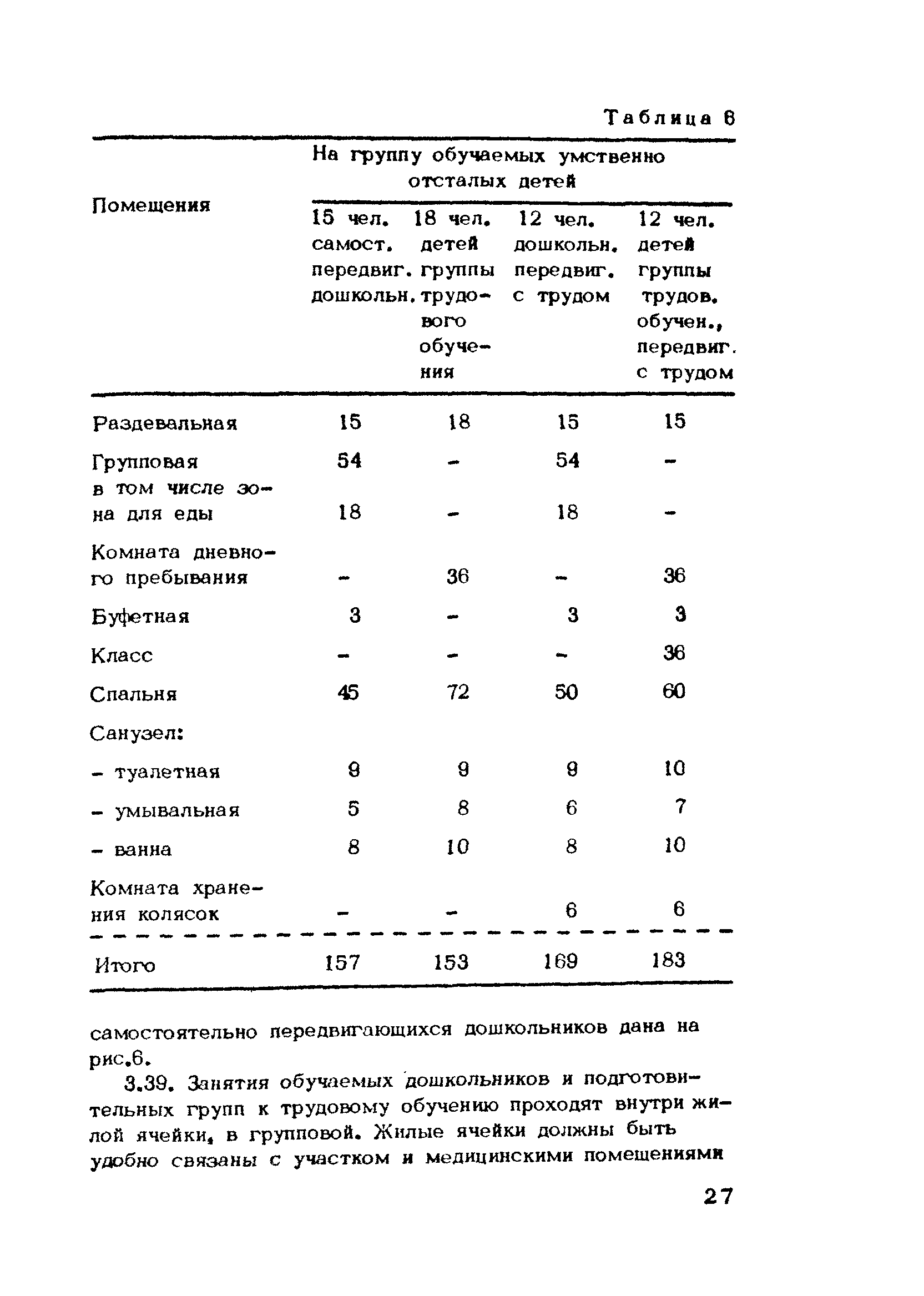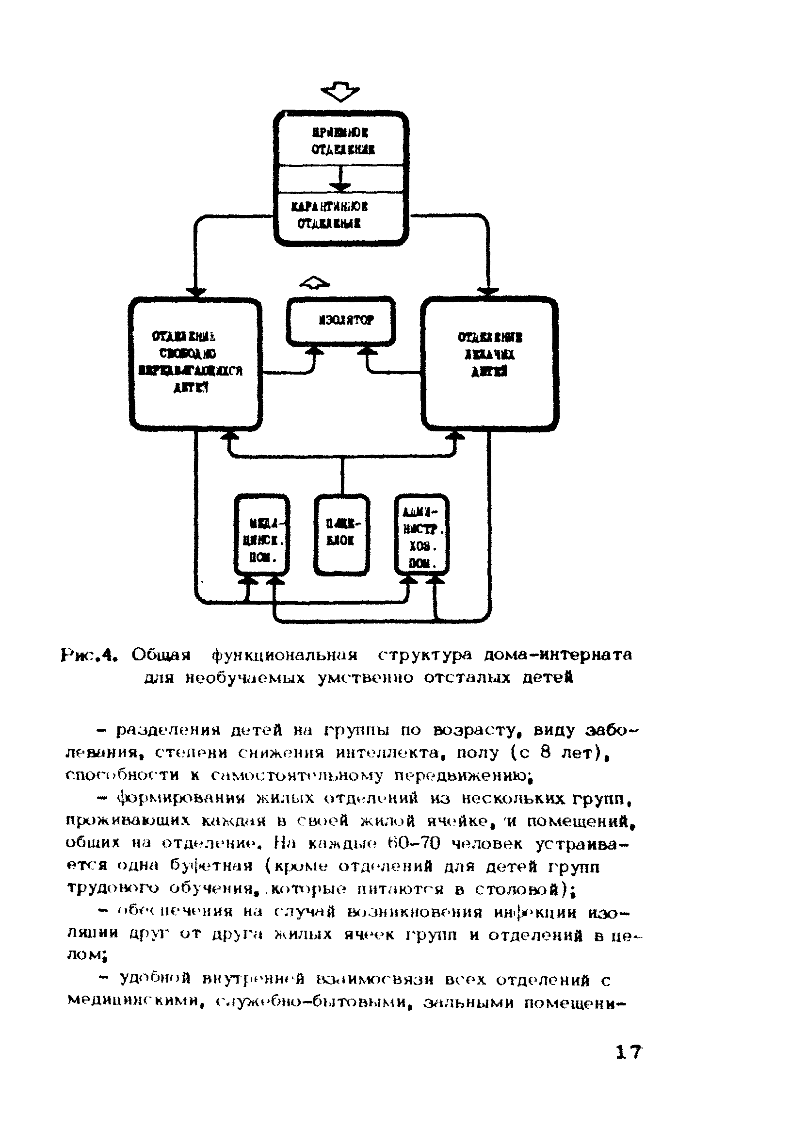 | Область применения: | Рекомендации распространяются на проектирование и реконструкцию зданий домов-интернатов для постоянного проживания умственно отсталых детей, которые не могут обучаться в общеобразовательных и специализированных школах системы Министерства просвещения СССР, а проживают в домах-интернатах системы Министерства социального обеспечения. |