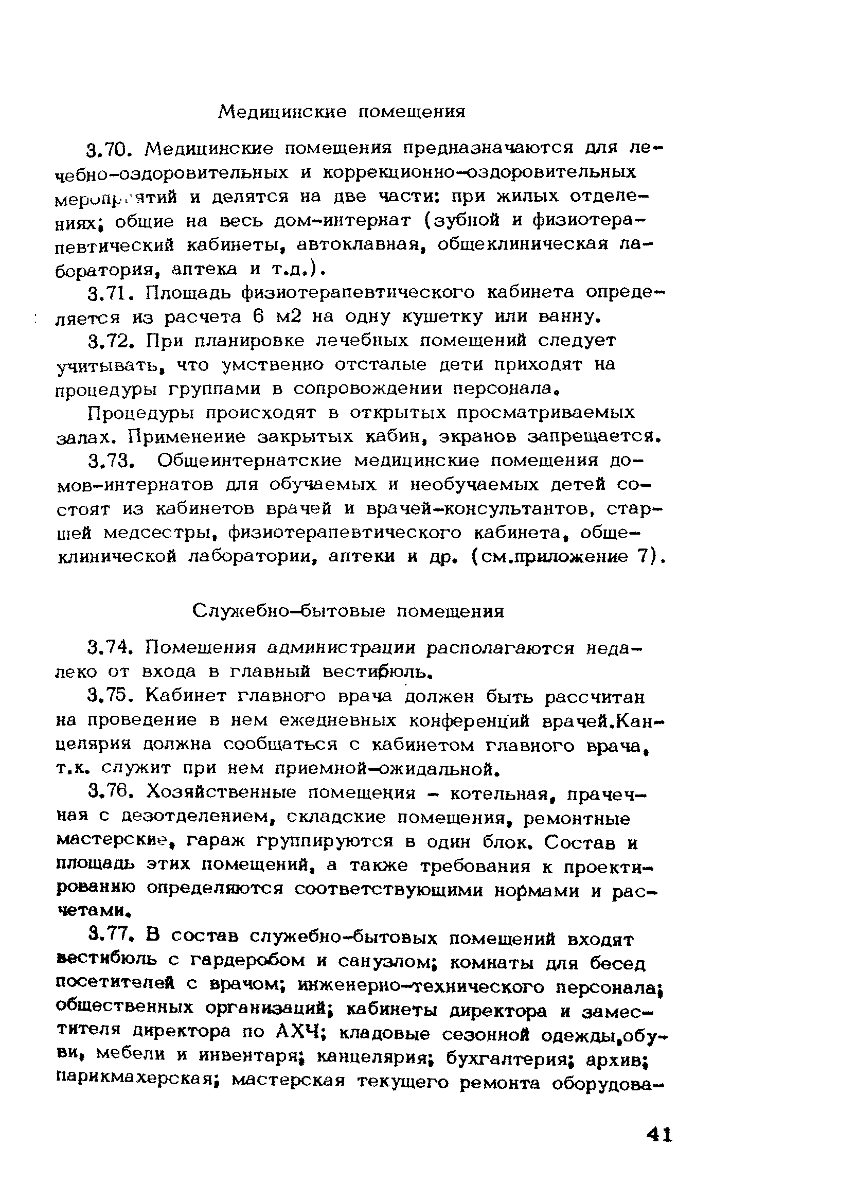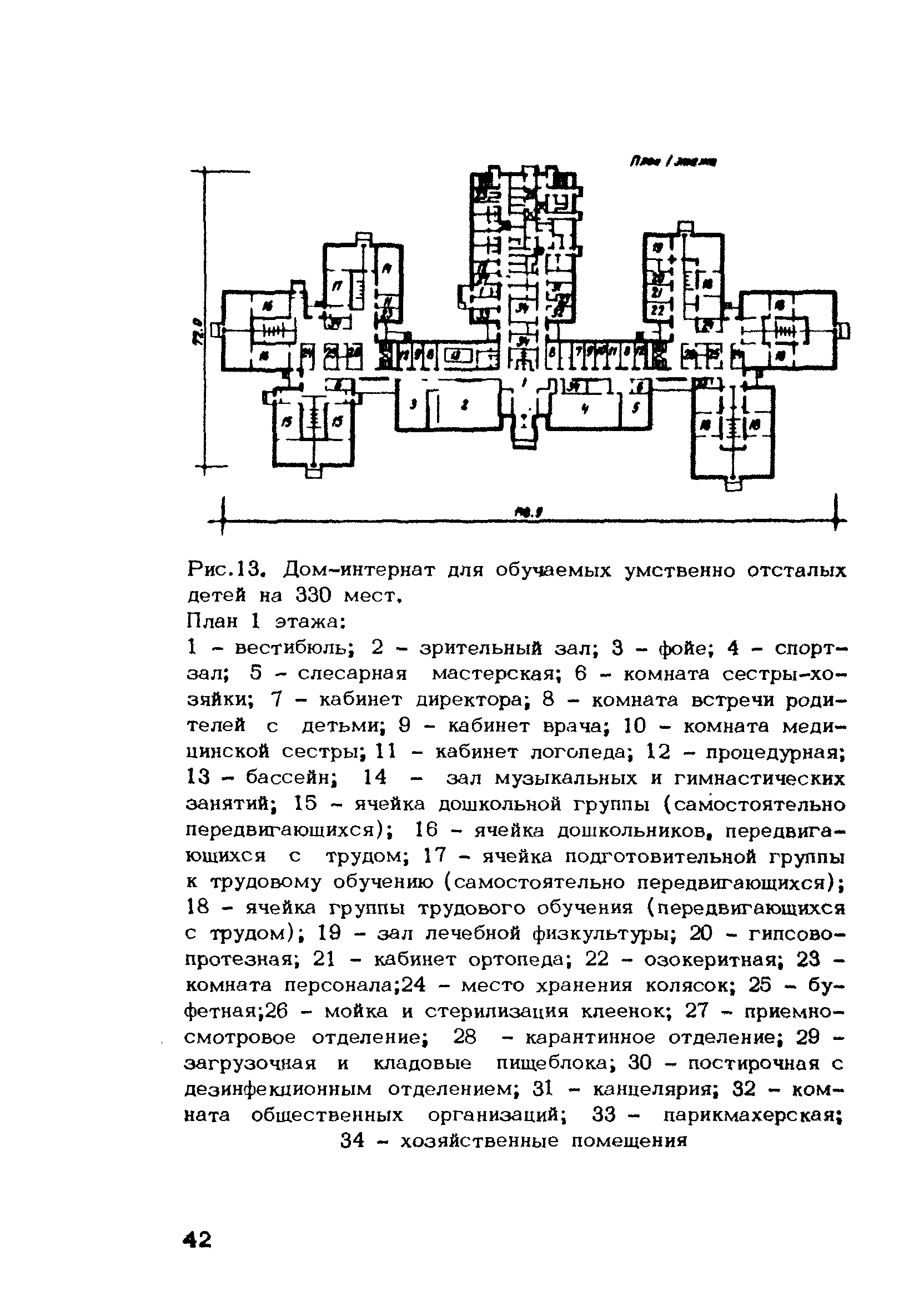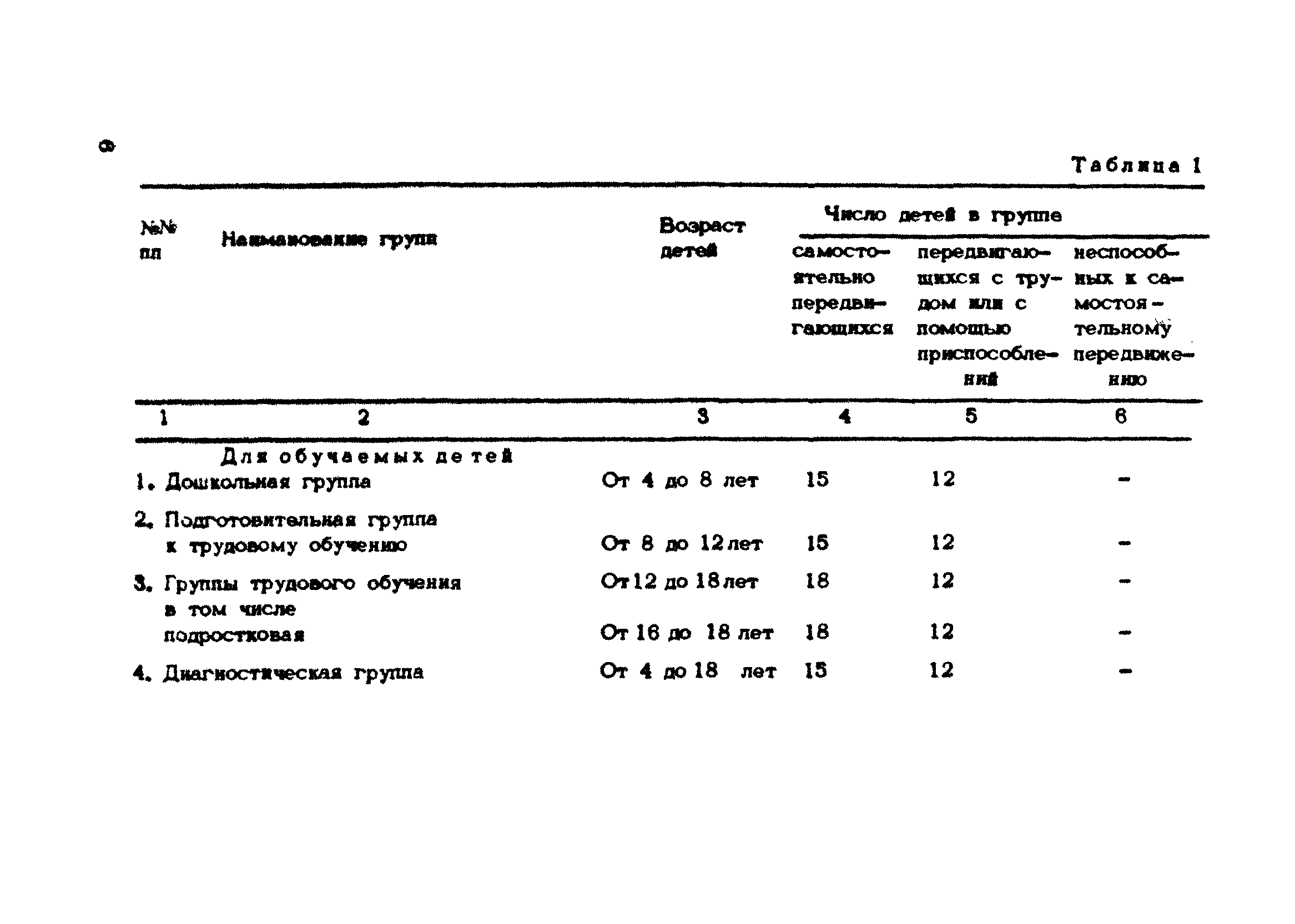 | Область применения: | Рекомендации распространяются на проектирование и реконструкцию зданий домов-интернатов для постоянного проживания умственно отсталых детей, которые не могут обучаться в общеобразовательных и специализированных школах системы Министерства просвещения СССР, а проживают в домах-интернатах системы Министерства социального обеспечения. |