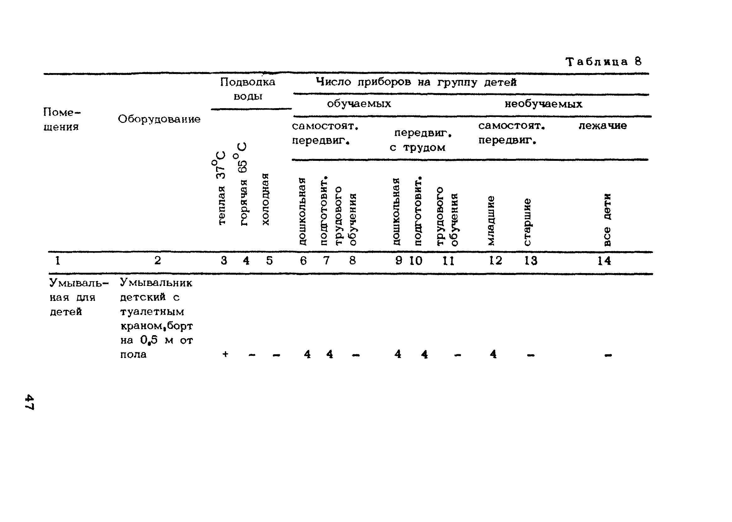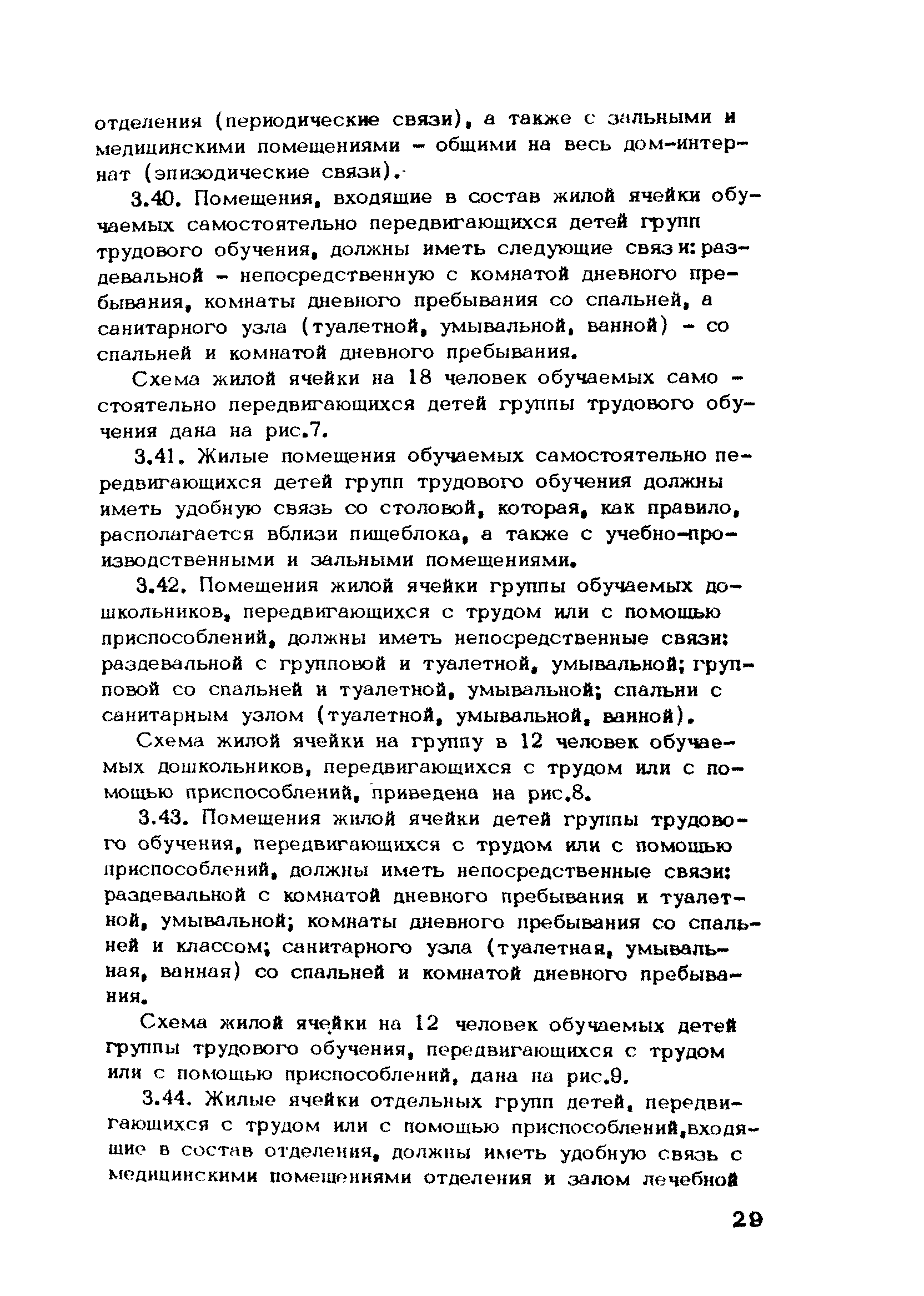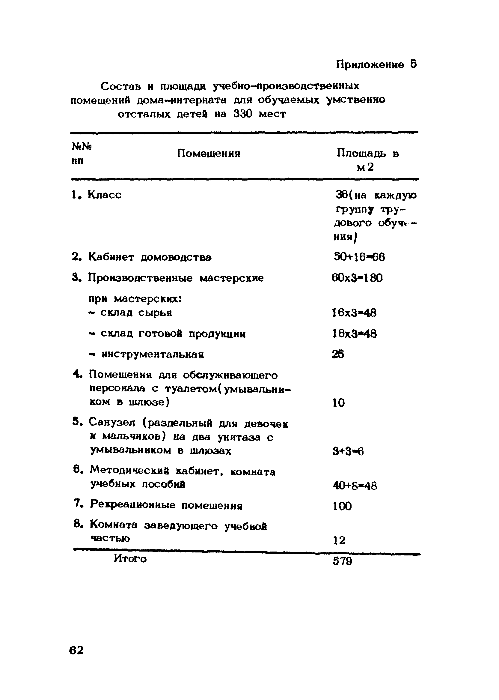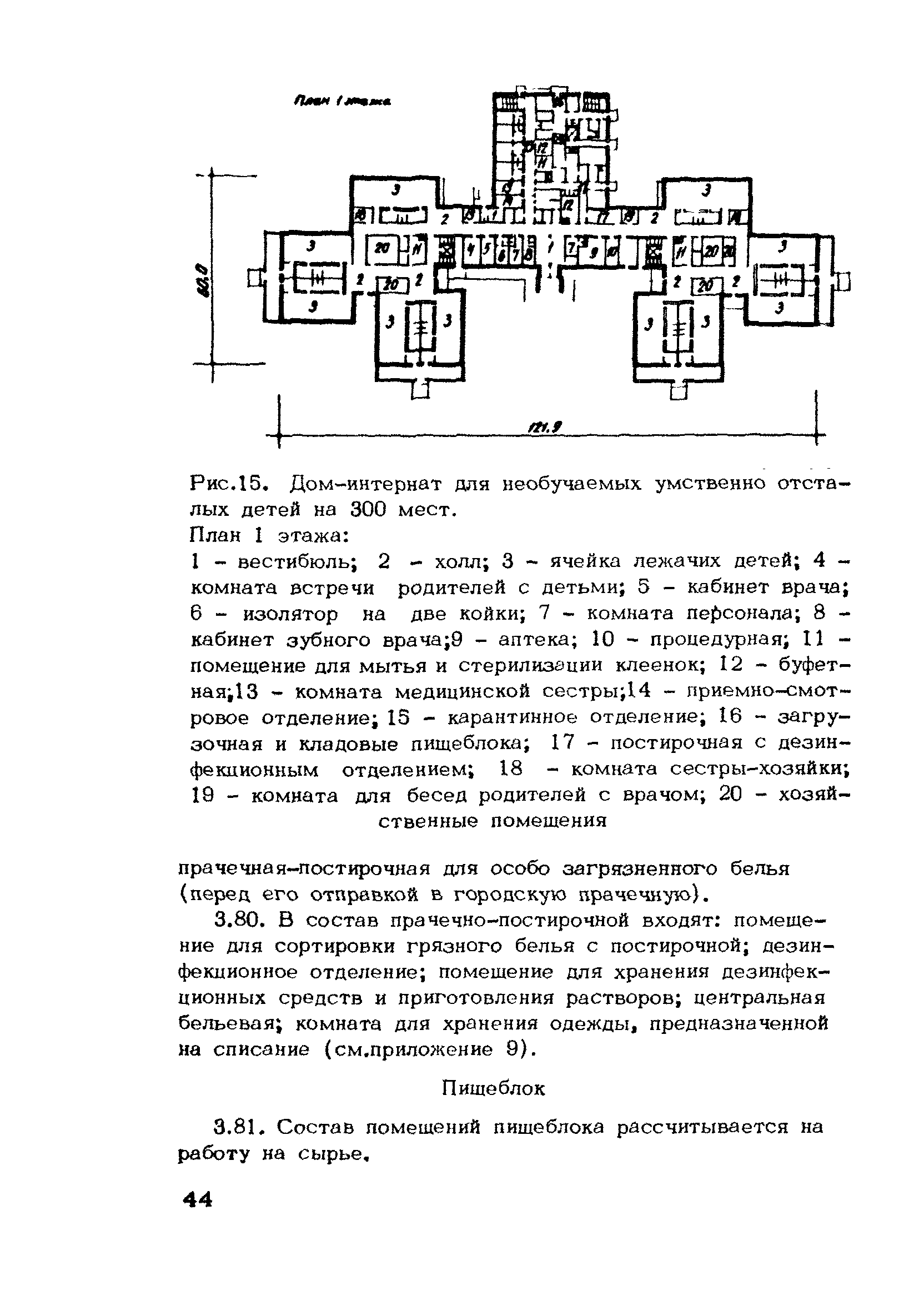 | Область применения: | Рекомендации распространяются на проектирование и реконструкцию зданий домов-интернатов для постоянного проживания умственно отсталых детей, которые не могут обучаться в общеобразовательных и специализированных школах системы Министерства просвещения СССР, а проживают в домах-интернатах системы Министерства социального обеспечения. |