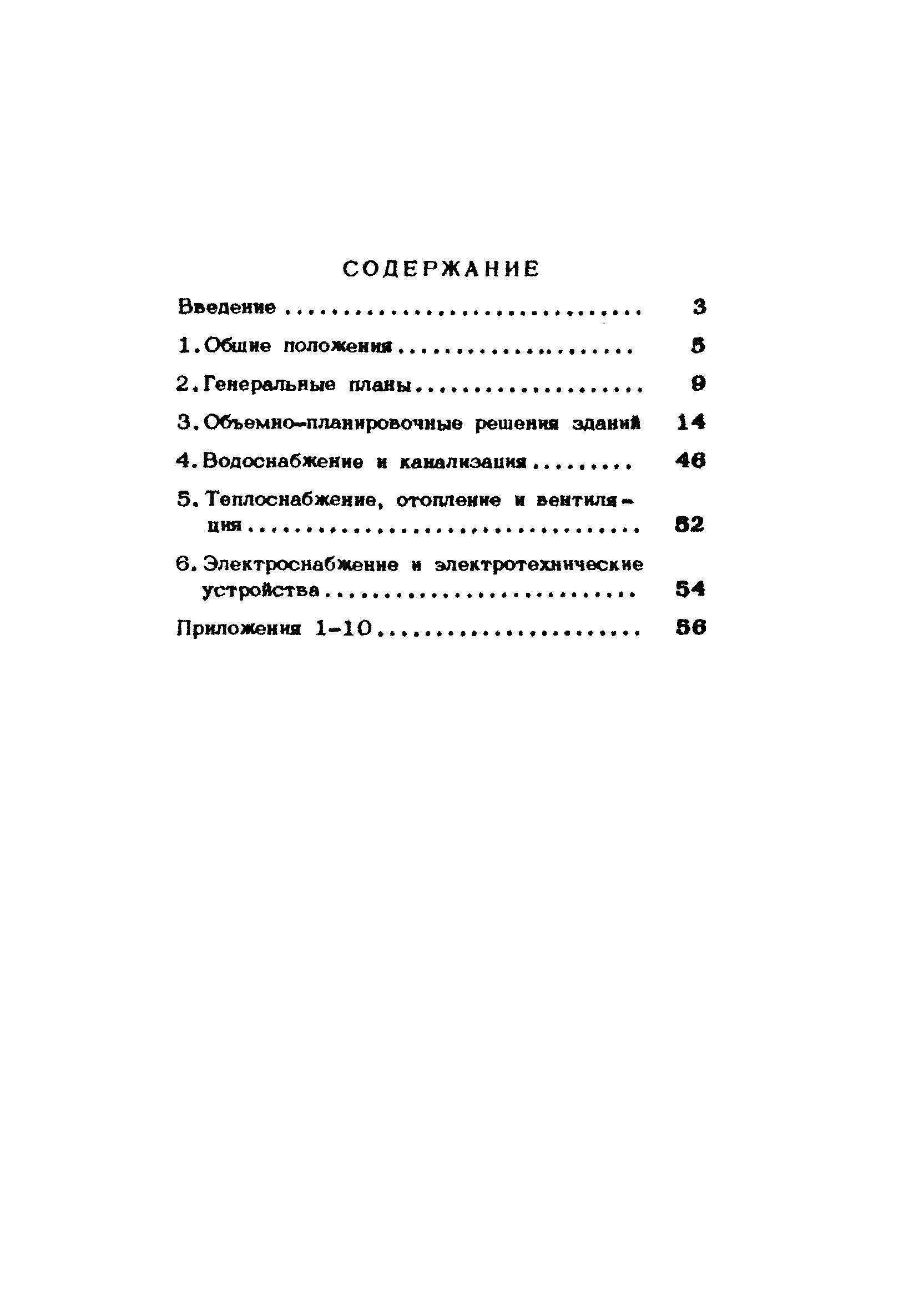 | Оглавление: | Введение 1. Общие положения 2. Генеральные планы 3. Объемно-планировочные решения зданий 4. Водоснабжение и канализация 5. Теплоснабжение, отопление и вентиляция 6. Электроснабжение и электротехнические устройства Приложения 1-10 |