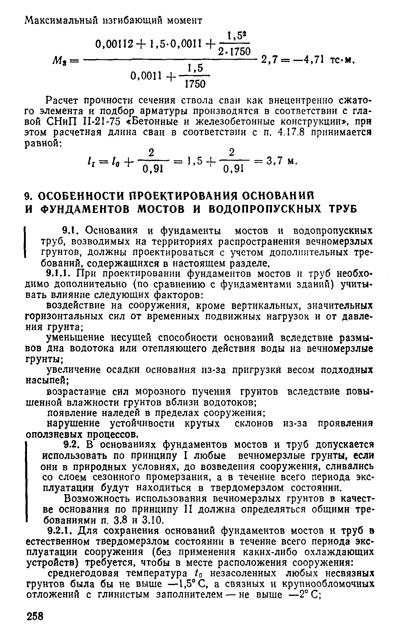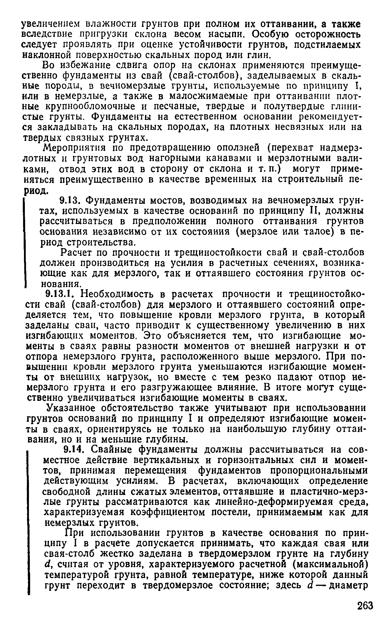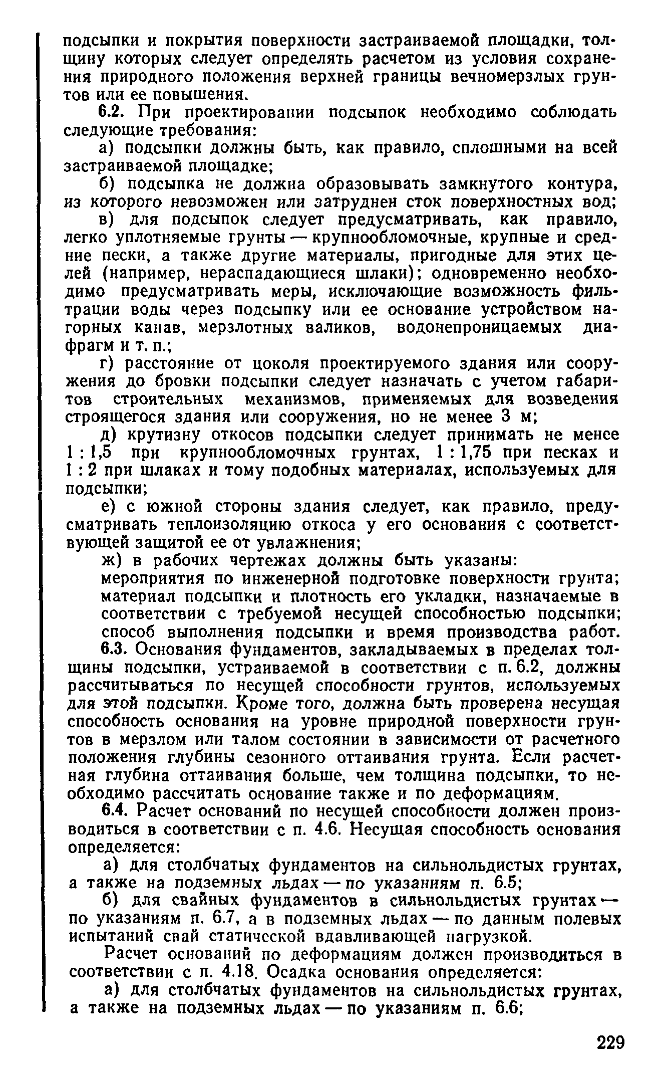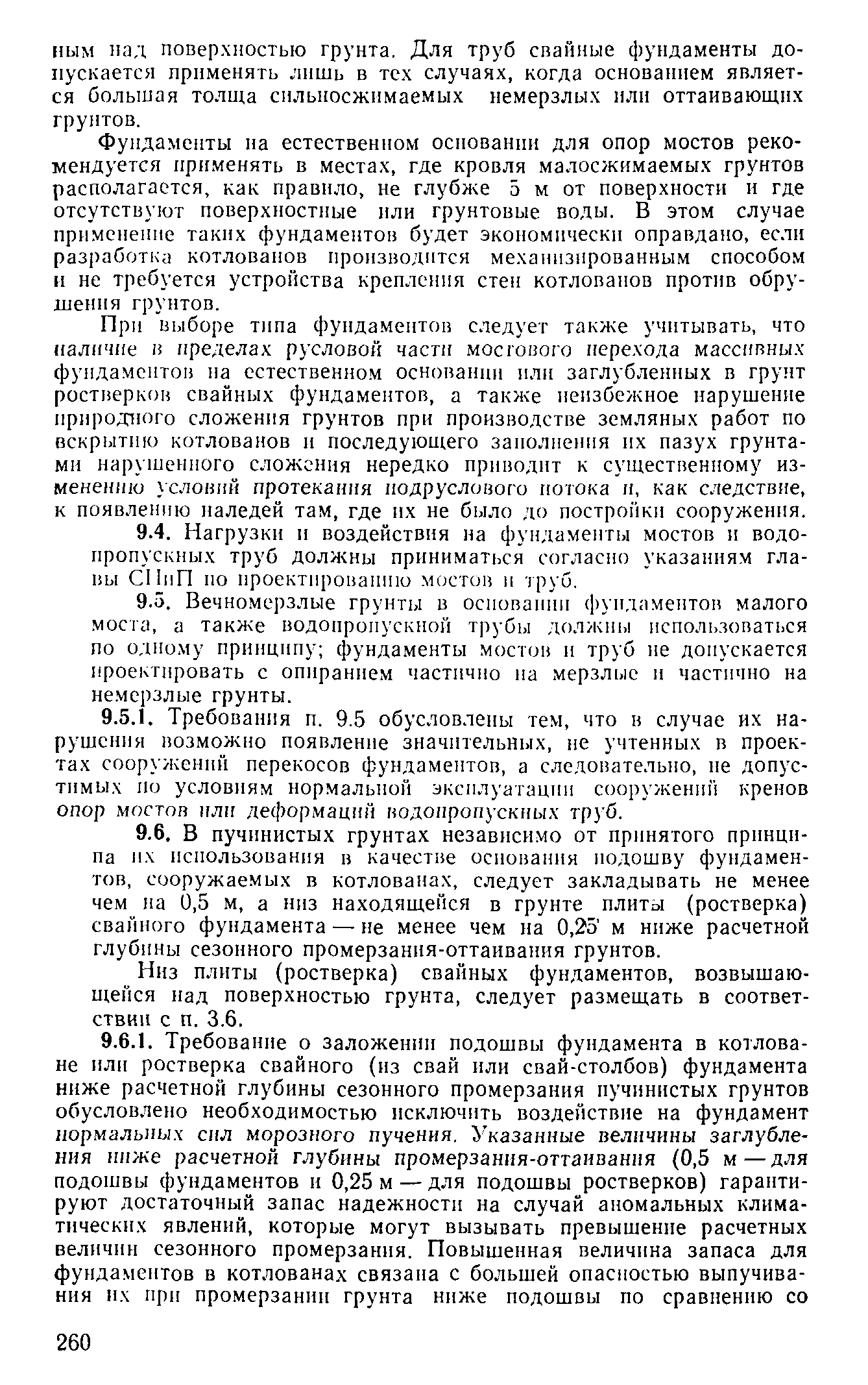 | Оглавление: | Предисловие 1 Общие положения 2 Номенклатура грунтов основания 3 Основные положения проектирования оснований и фундаментов 4 Расчет оснований и фундаментов 5 Особенности проектирования оснований и фундаментов на засоленных вечномерзлых грунтах 6 Особенности проектирования оснований и фундаментов на сильнольдистых вечномерзлых грунтах и подземных льдах 7 Особенности проектирования оснований и фундаментов на заторфованных вечномерзлых грунтах 8 Особенности проектирования оснований и фундаментов на вечномерзлых грунтах сейсмических районах 9 Особенности проектирования оснований и фундаментов мостов и водопропускных труб Приложение |