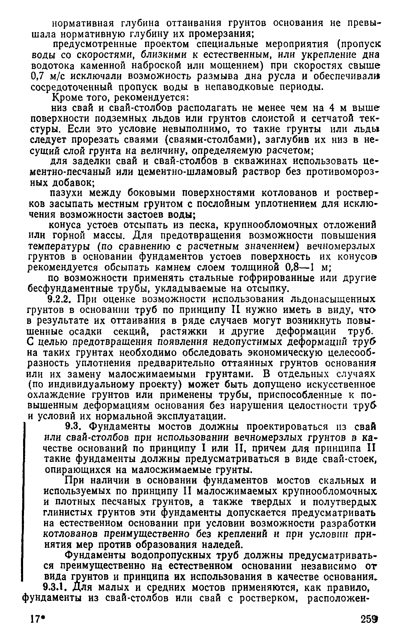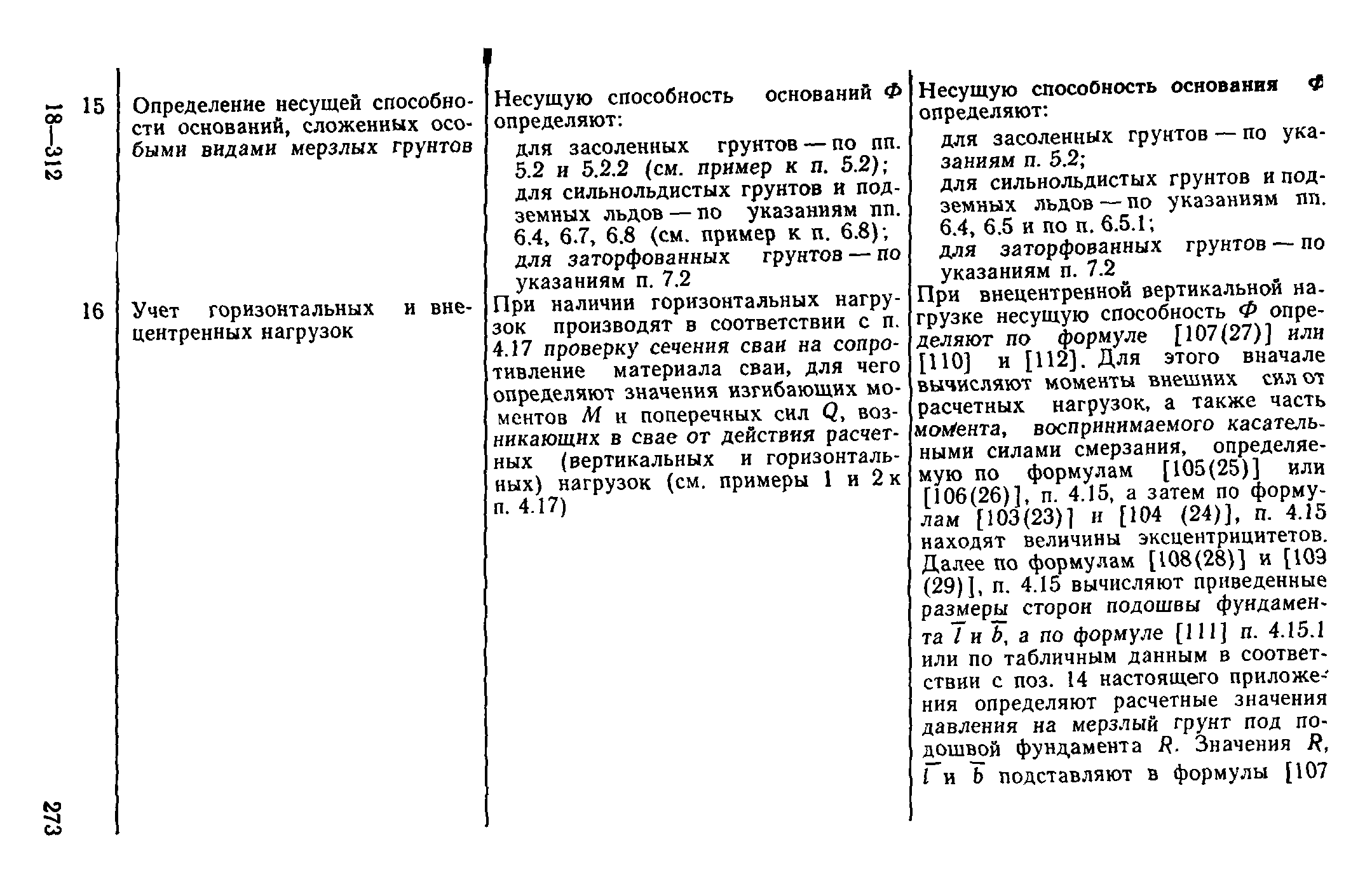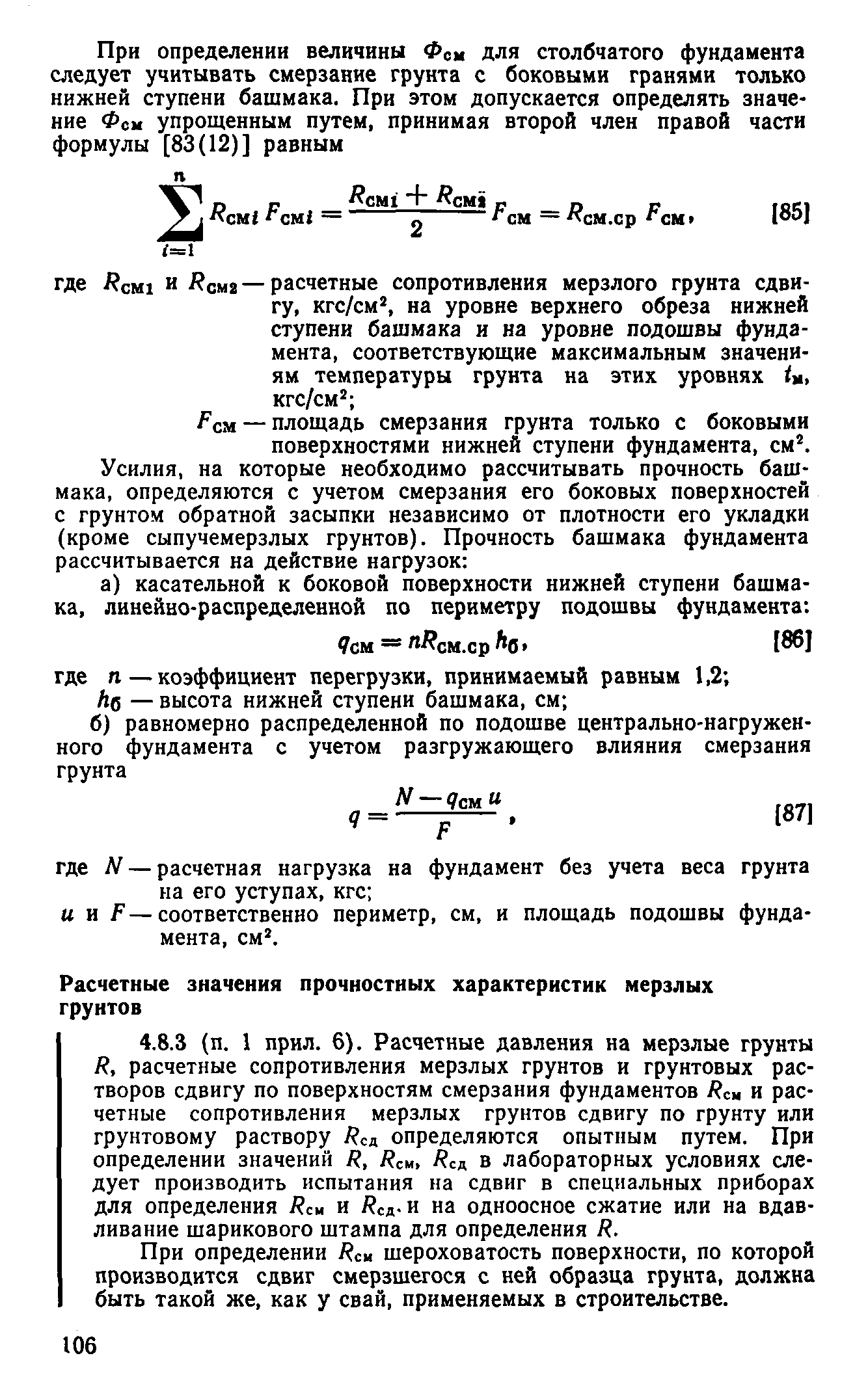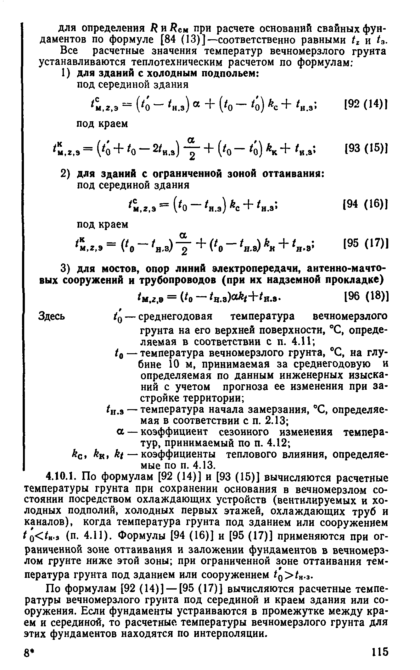 | Оглавление: | Предисловие 1 Общие положения 2 Номенклатура грунтов основания 3 Основные положения проектирования оснований и фундаментов 4 Расчет оснований и фундаментов 5 Особенности проектирования оснований и фундаментов на засоленных вечномерзлых грунтах 6 Особенности проектирования оснований и фундаментов на сильнольдистых вечномерзлых грунтах и подземных льдах 7 Особенности проектирования оснований и фундаментов на заторфованных вечномерзлых грунтах 8 Особенности проектирования оснований и фундаментов на вечномерзлых грунтах сейсмических районах 9 Особенности проектирования оснований и фундаментов мостов и водопропускных труб Приложение |