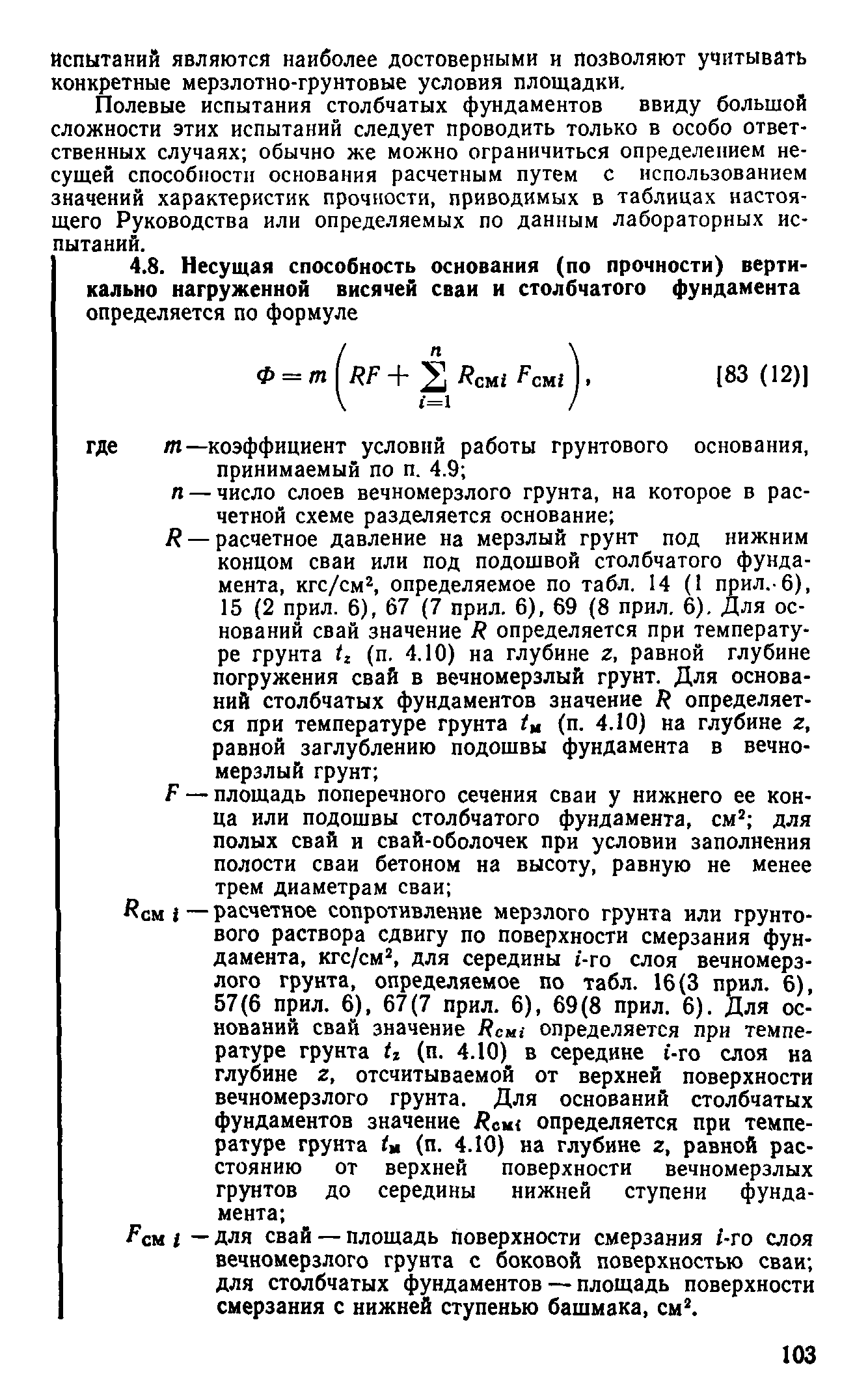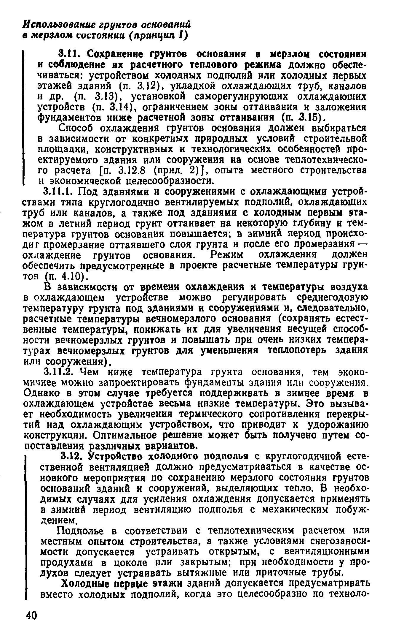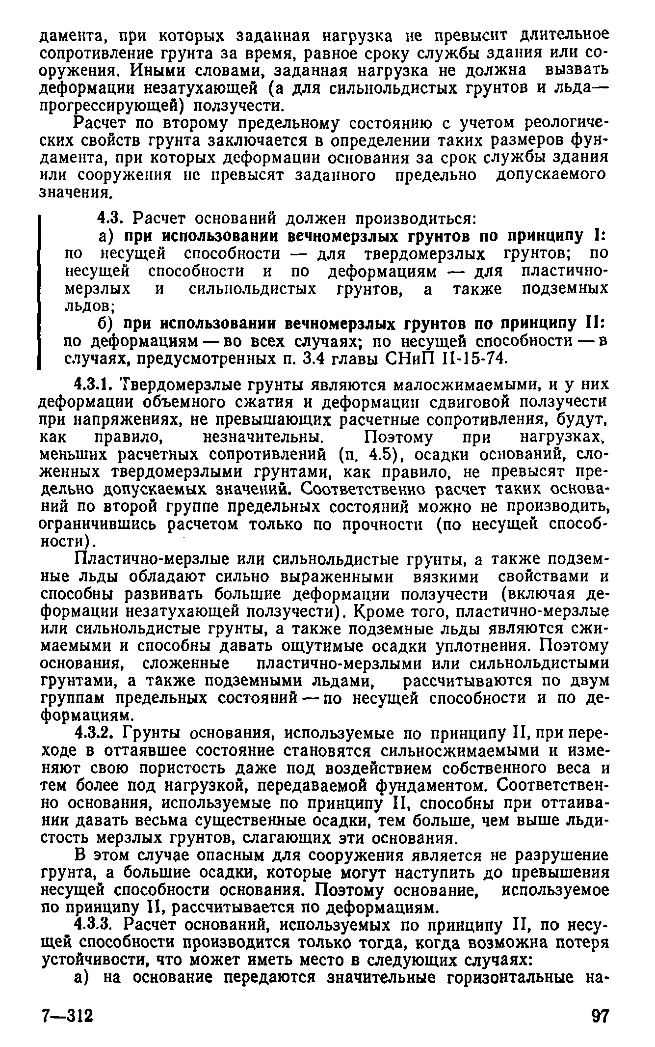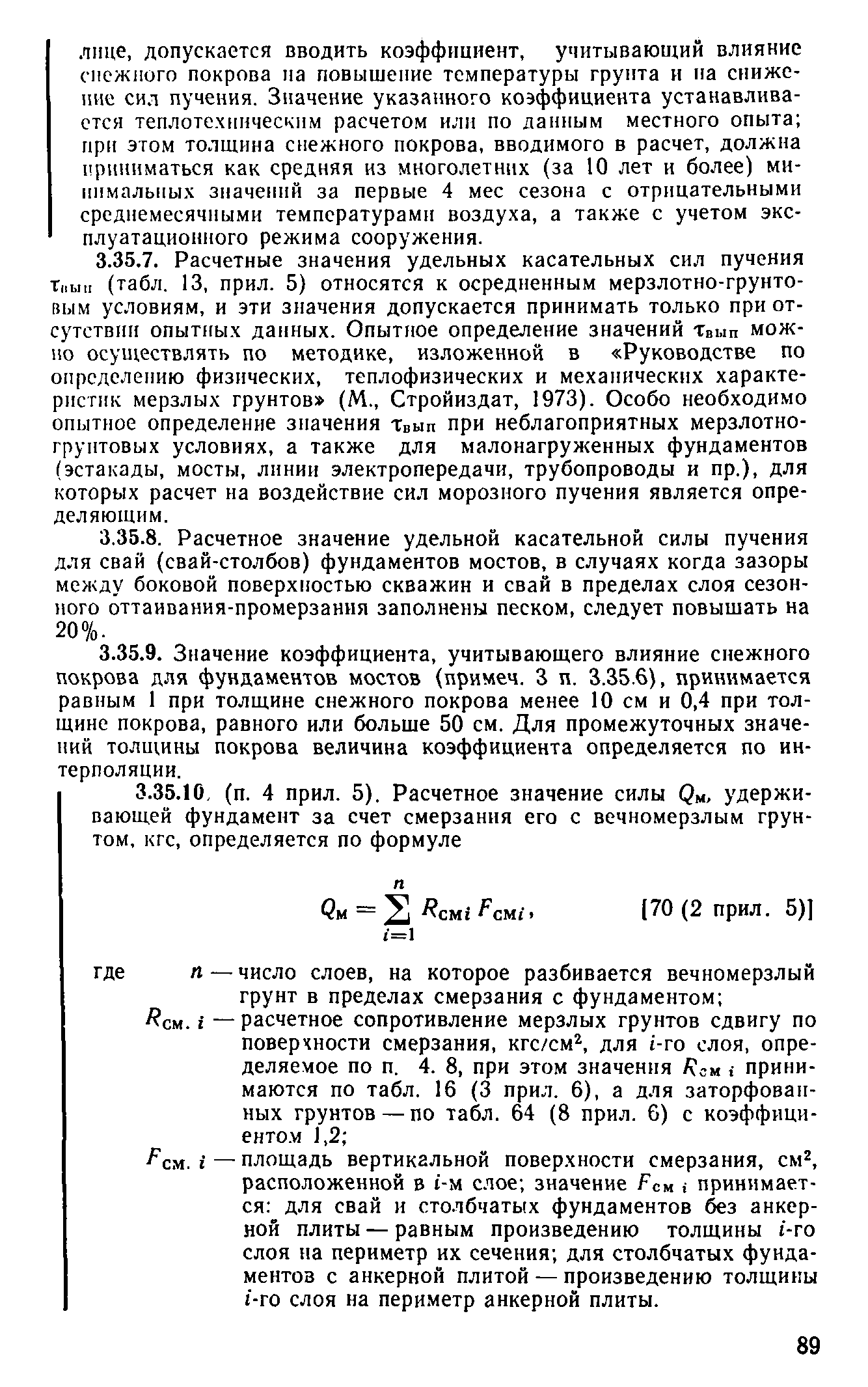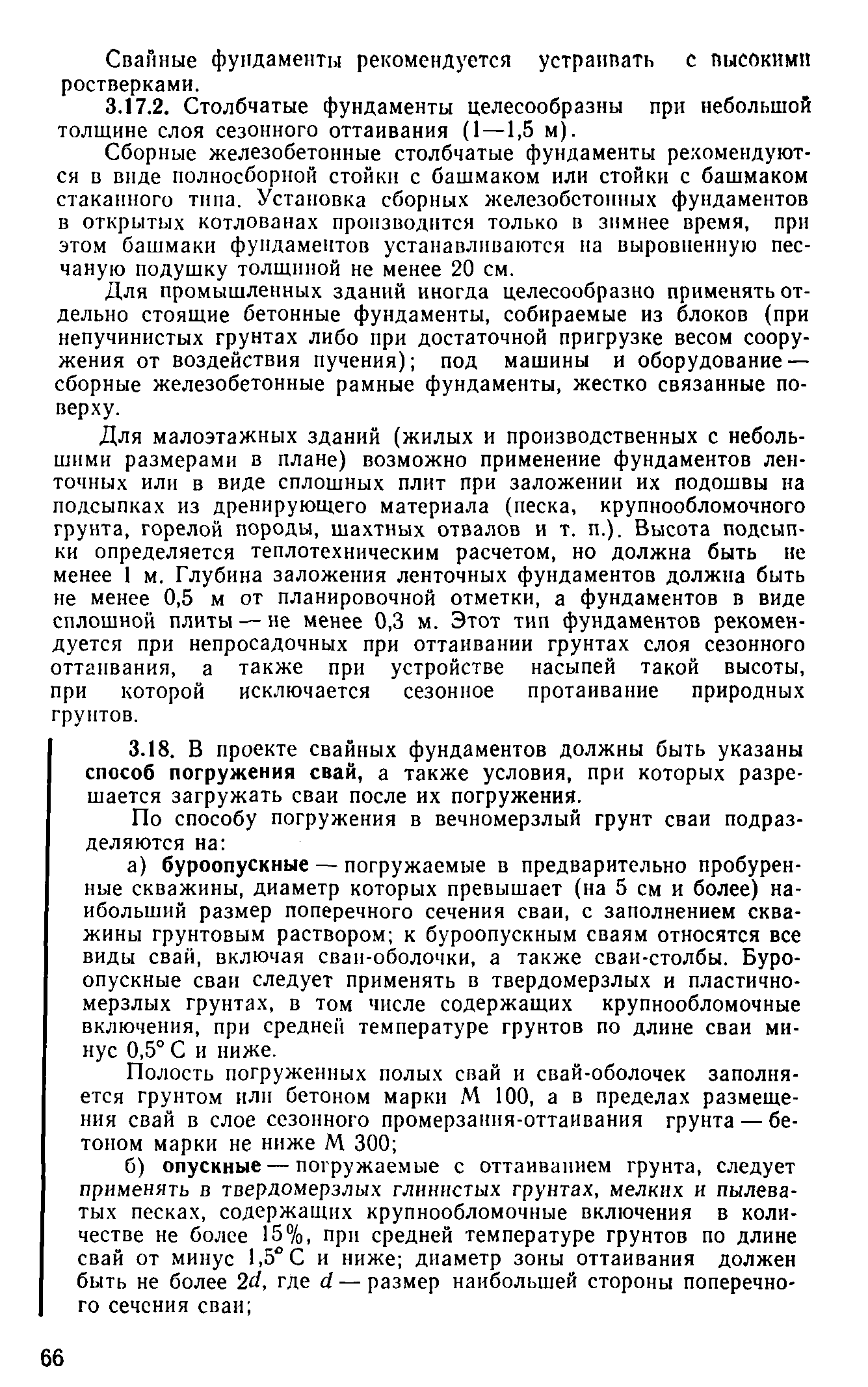 | Оглавление: | Предисловие 1 Общие положения 2 Номенклатура грунтов основания 3 Основные положения проектирования оснований и фундаментов 4 Расчет оснований и фундаментов 5 Особенности проектирования оснований и фундаментов на засоленных вечномерзлых грунтах 6 Особенности проектирования оснований и фундаментов на сильнольдистых вечномерзлых грунтах и подземных льдах 7 Особенности проектирования оснований и фундаментов на заторфованных вечномерзлых грунтах 8 Особенности проектирования оснований и фундаментов на вечномерзлых грунтах сейсмических районах 9 Особенности проектирования оснований и фундаментов мостов и водопропускных труб Приложение |
