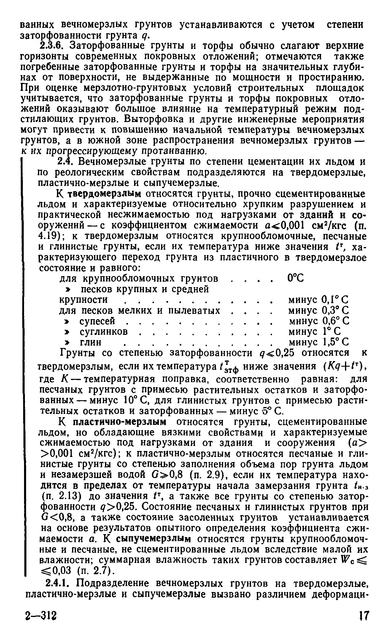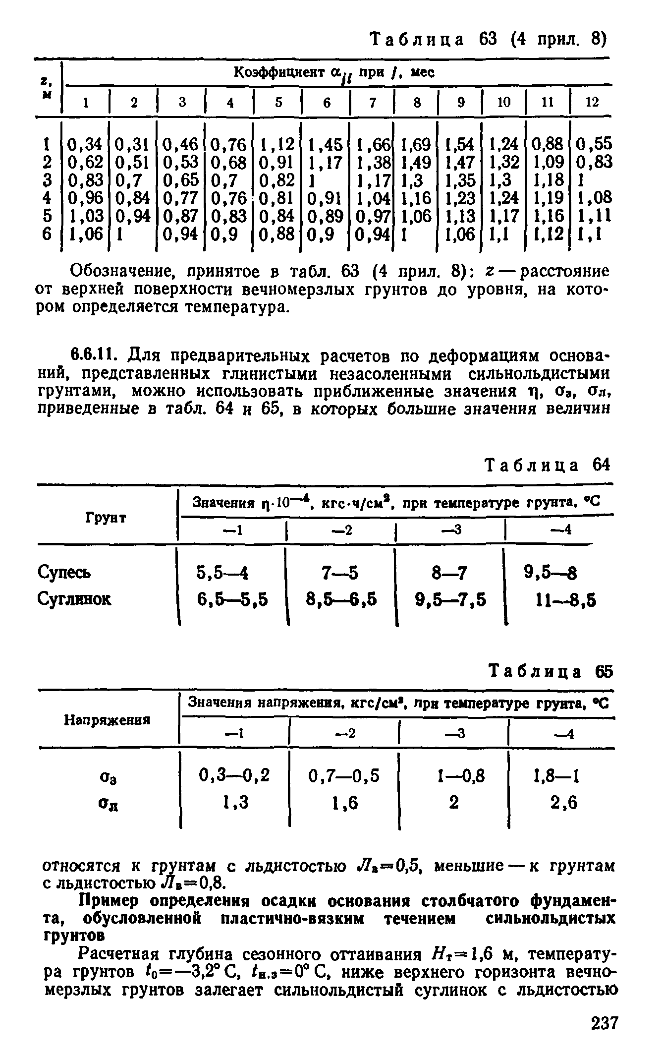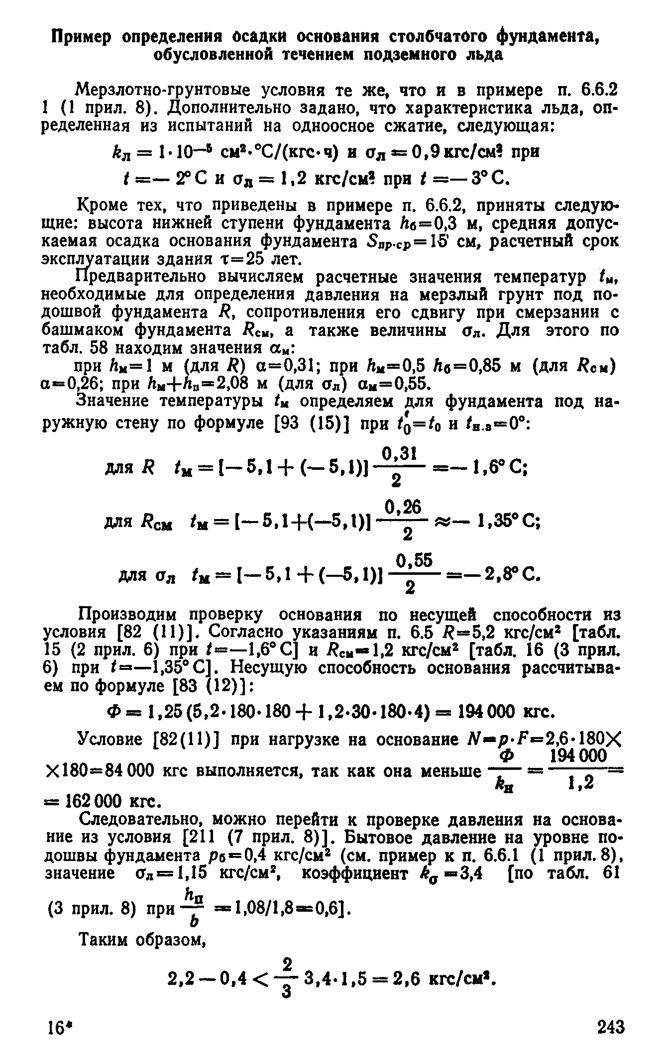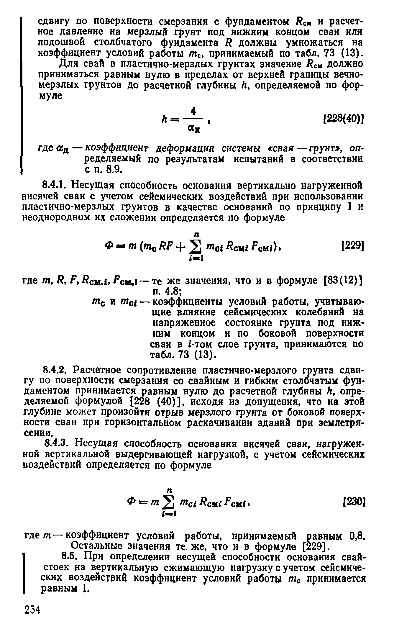 | Оглавление: | Предисловие 1 Общие положения 2 Номенклатура грунтов основания 3 Основные положения проектирования оснований и фундаментов 4 Расчет оснований и фундаментов 5 Особенности проектирования оснований и фундаментов на засоленных вечномерзлых грунтах 6 Особенности проектирования оснований и фундаментов на сильнольдистых вечномерзлых грунтах и подземных льдах 7 Особенности проектирования оснований и фундаментов на заторфованных вечномерзлых грунтах 8 Особенности проектирования оснований и фундаментов на вечномерзлых грунтах сейсмических районах 9 Особенности проектирования оснований и фундаментов мостов и водопропускных труб Приложение |