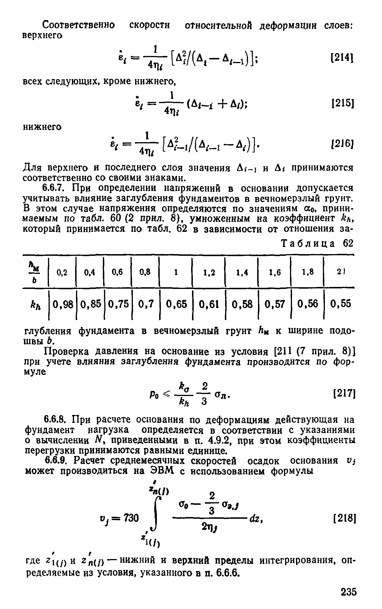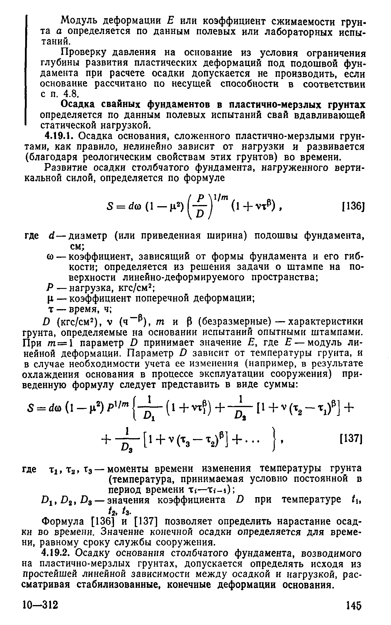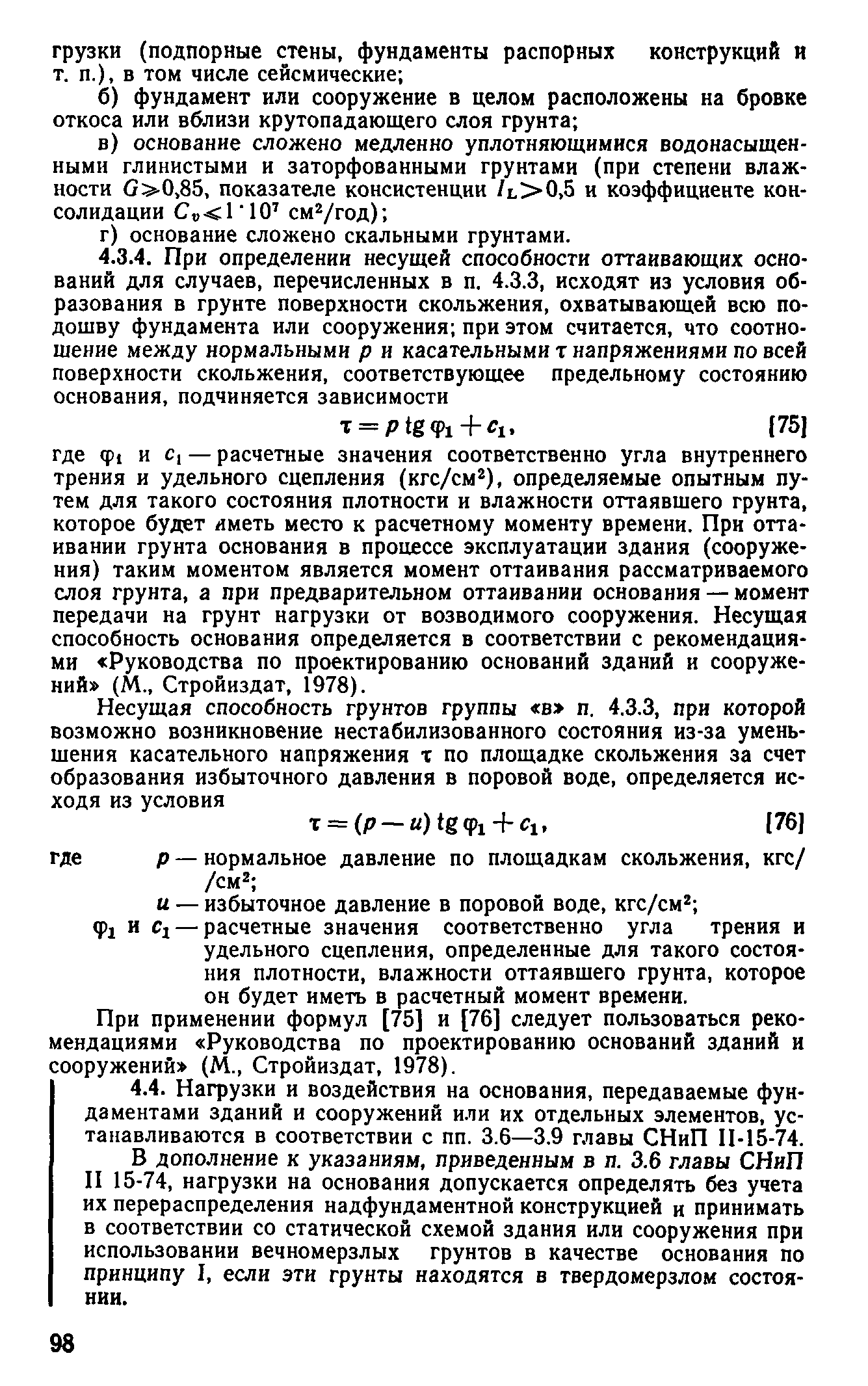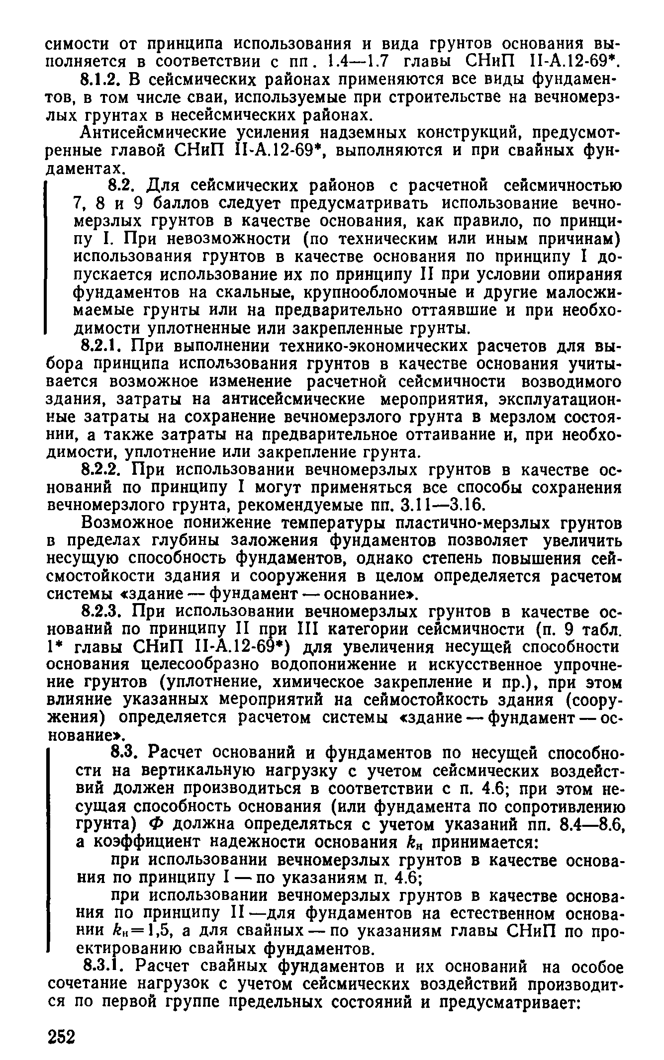 | Оглавление: | Предисловие 1 Общие положения 2 Номенклатура грунтов основания 3 Основные положения проектирования оснований и фундаментов 4 Расчет оснований и фундаментов 5 Особенности проектирования оснований и фундаментов на засоленных вечномерзлых грунтах 6 Особенности проектирования оснований и фундаментов на сильнольдистых вечномерзлых грунтах и подземных льдах 7 Особенности проектирования оснований и фундаментов на заторфованных вечномерзлых грунтах 8 Особенности проектирования оснований и фундаментов на вечномерзлых грунтах сейсмических районах 9 Особенности проектирования оснований и фундаментов мостов и водопропускных труб Приложение |