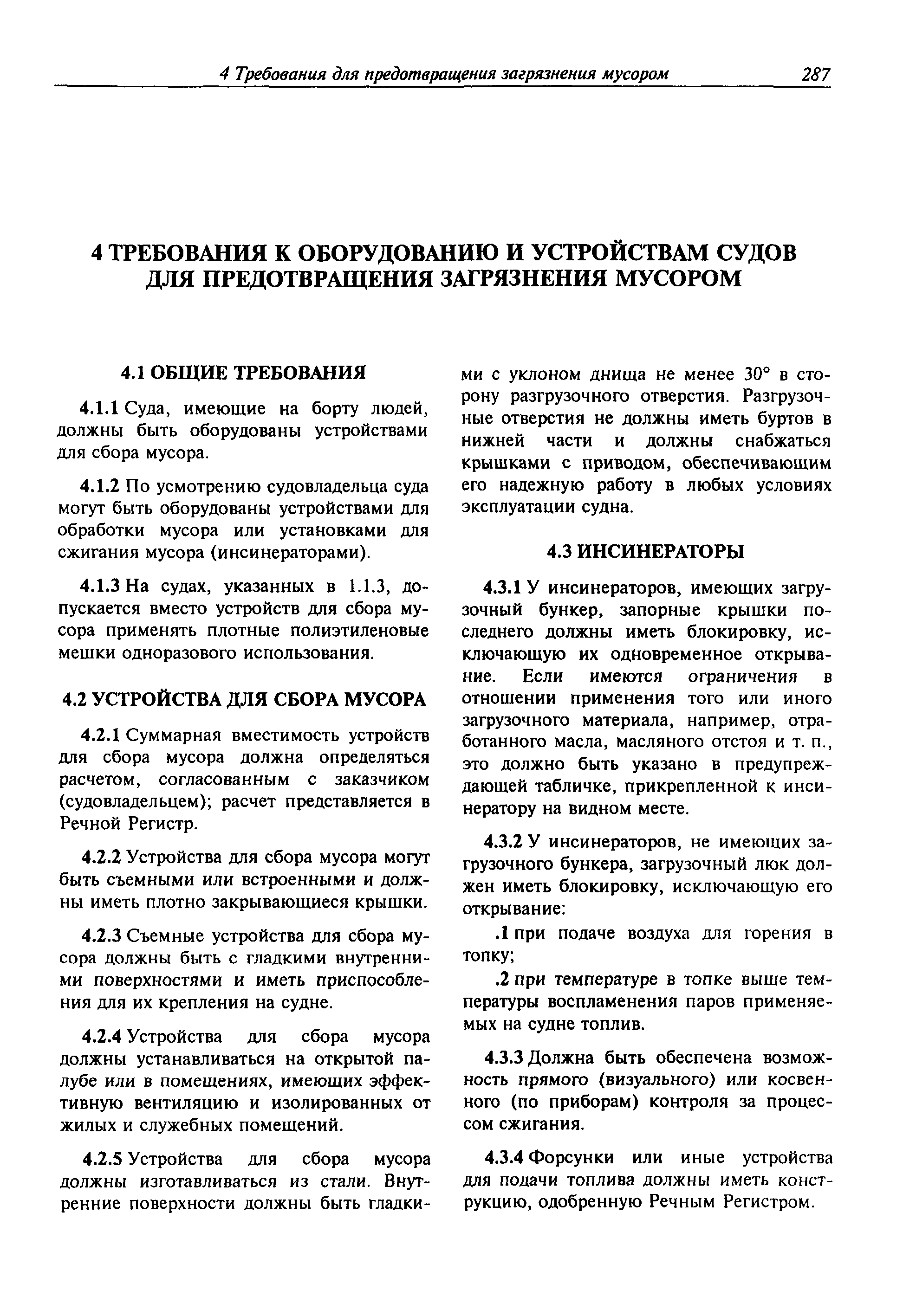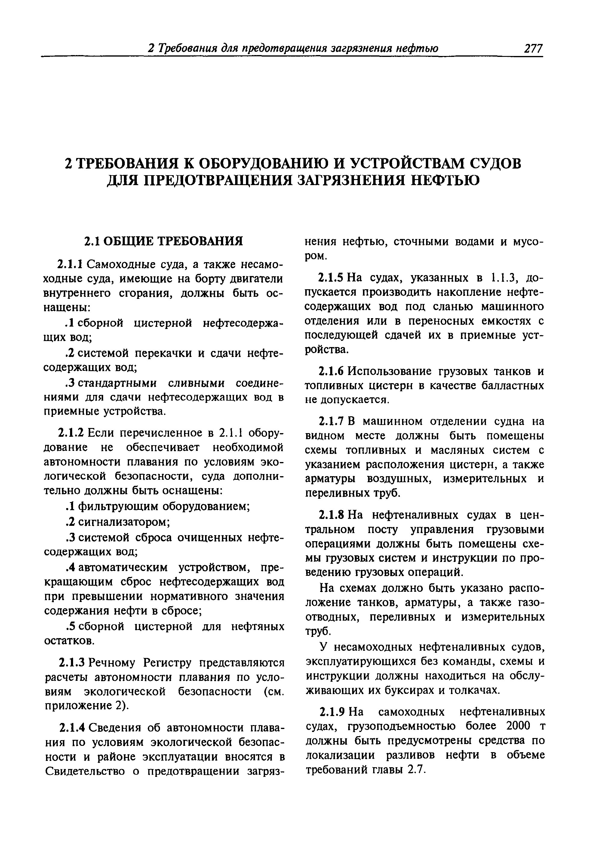 | Оглавление: | 1 Общие положения 2 Требования к оборудованию и устройствам судов для предотвращения загрязнения нефтью 3 Требования к оборудованию и устройствам судов для предотвращения загрязнения сточными водами 4 Требования к оборудованию и устройствам судов для предотвращения загрязнения мусором 5 Дополнительные требования к судам смешанного плавания 6. Требования по предотвращению загрязнения атмосферы с судов Приложения |