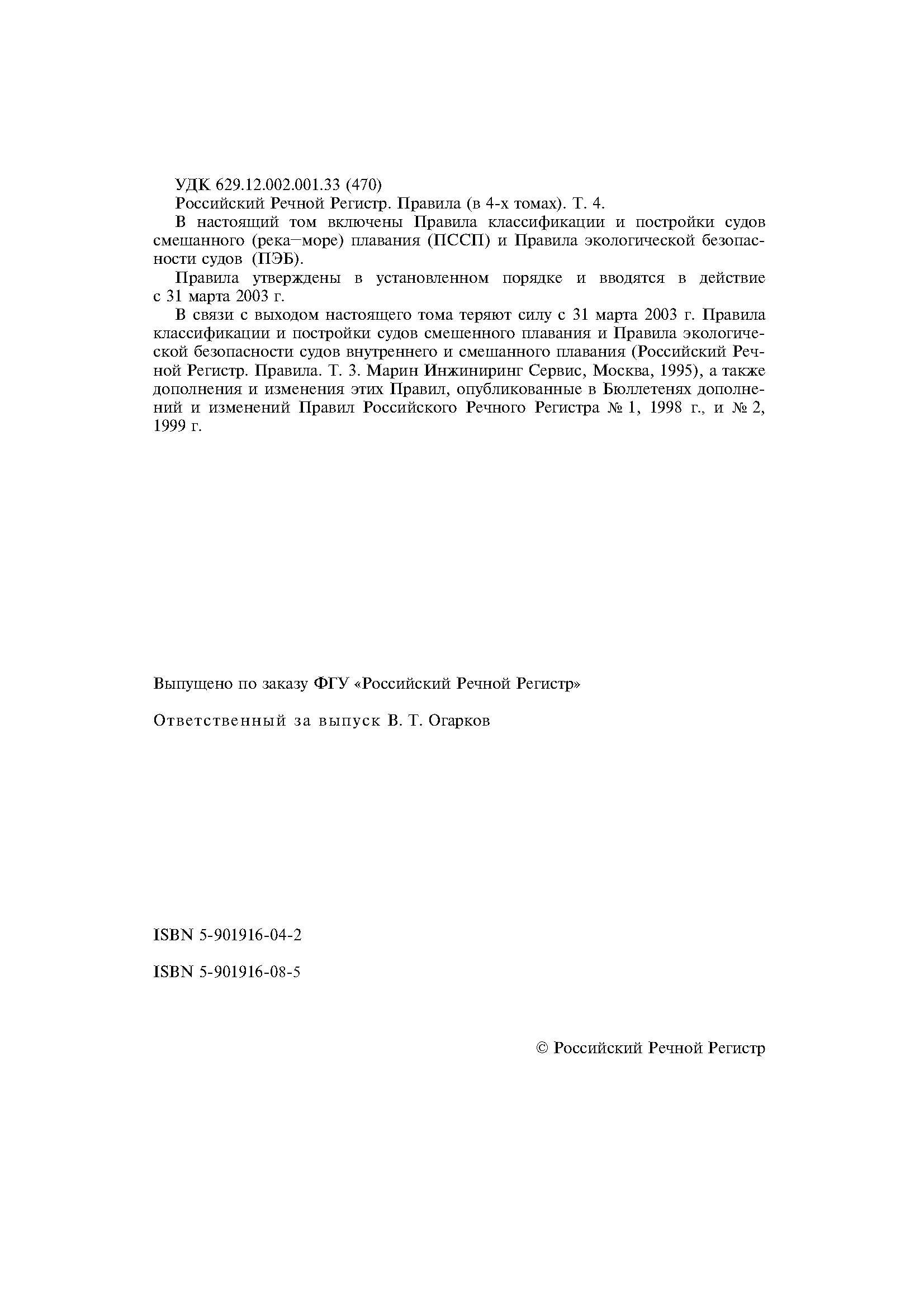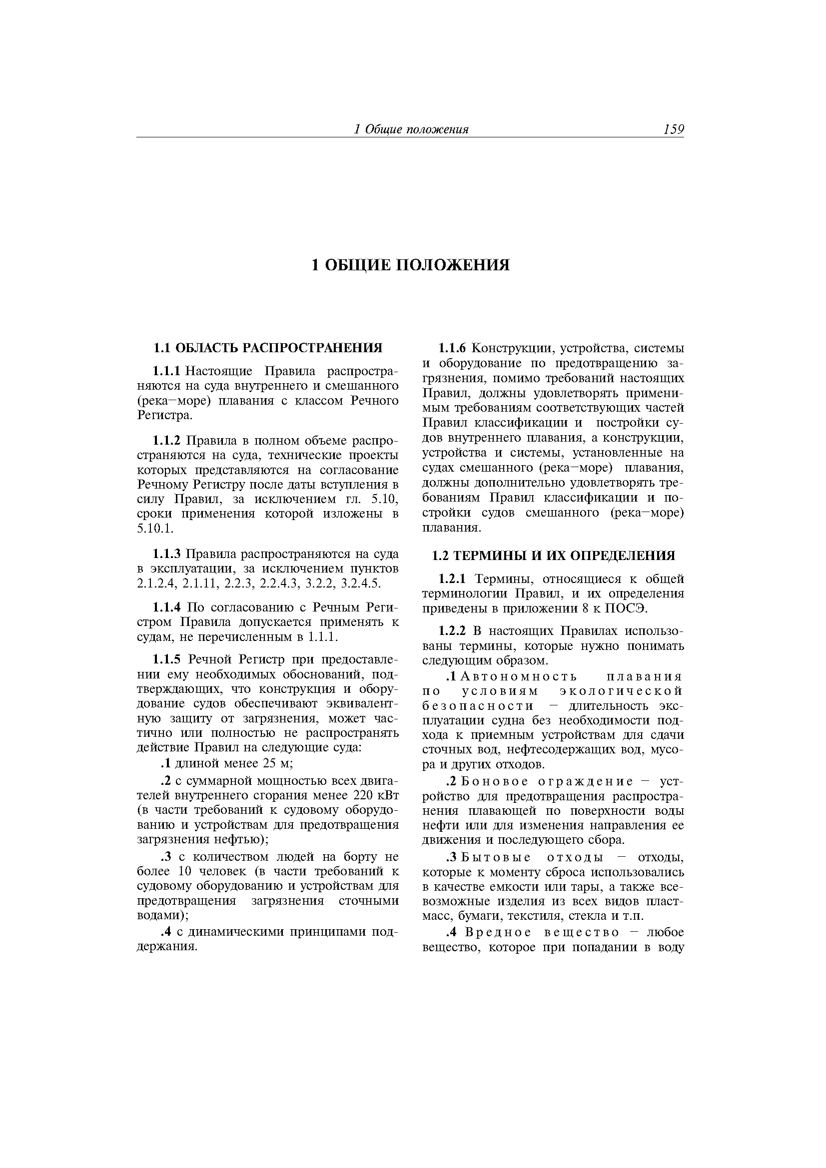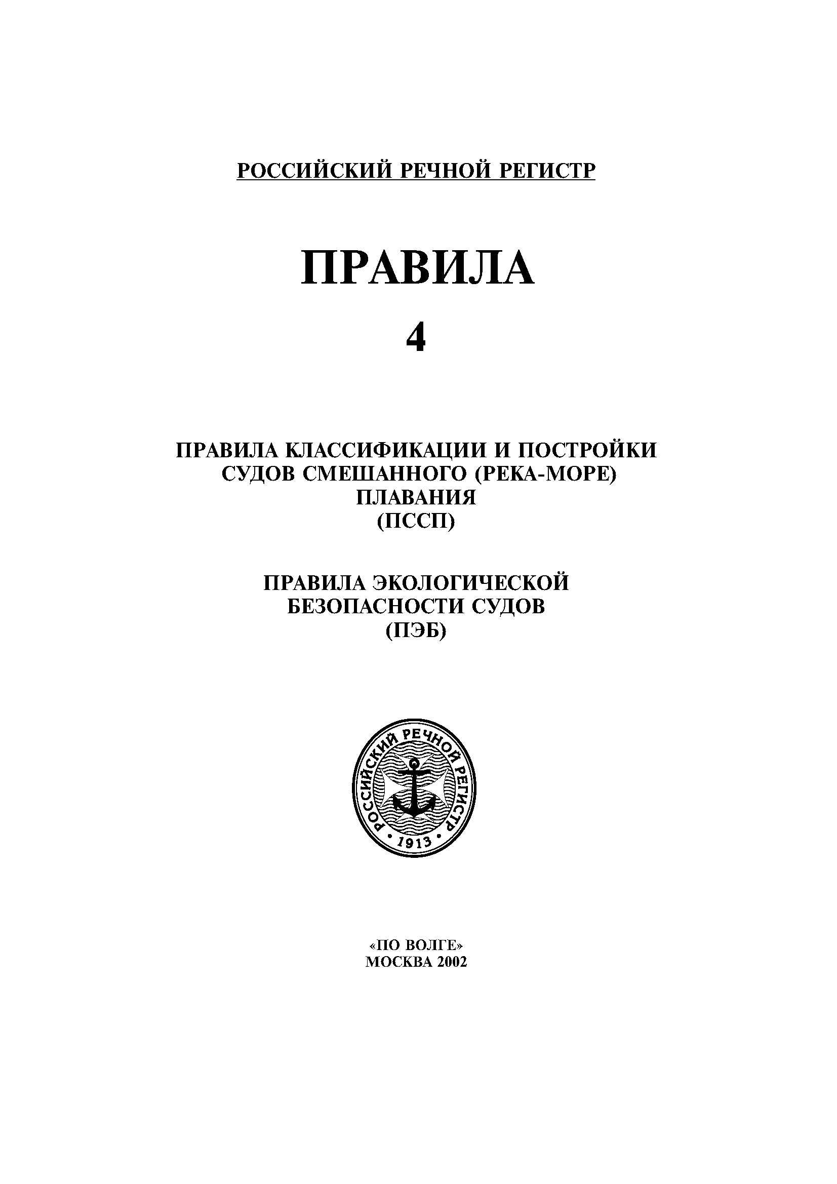 | Область применения: | Документ распространяется на суда внутреннего и смешанного (река-море) плавания с классом Речного Регистра. |