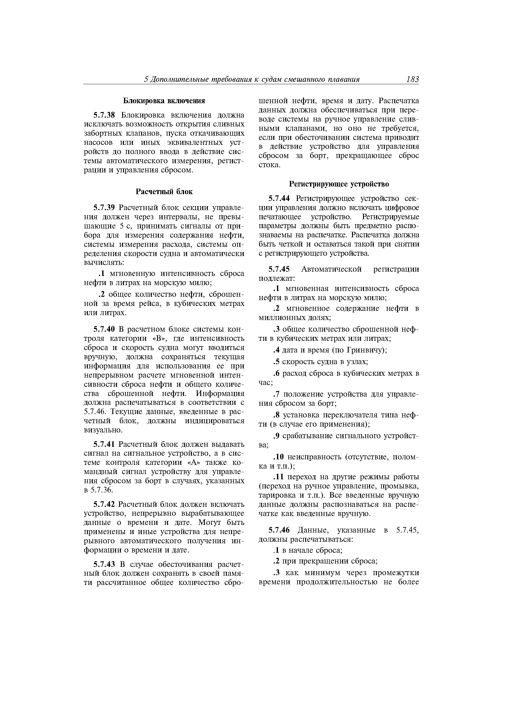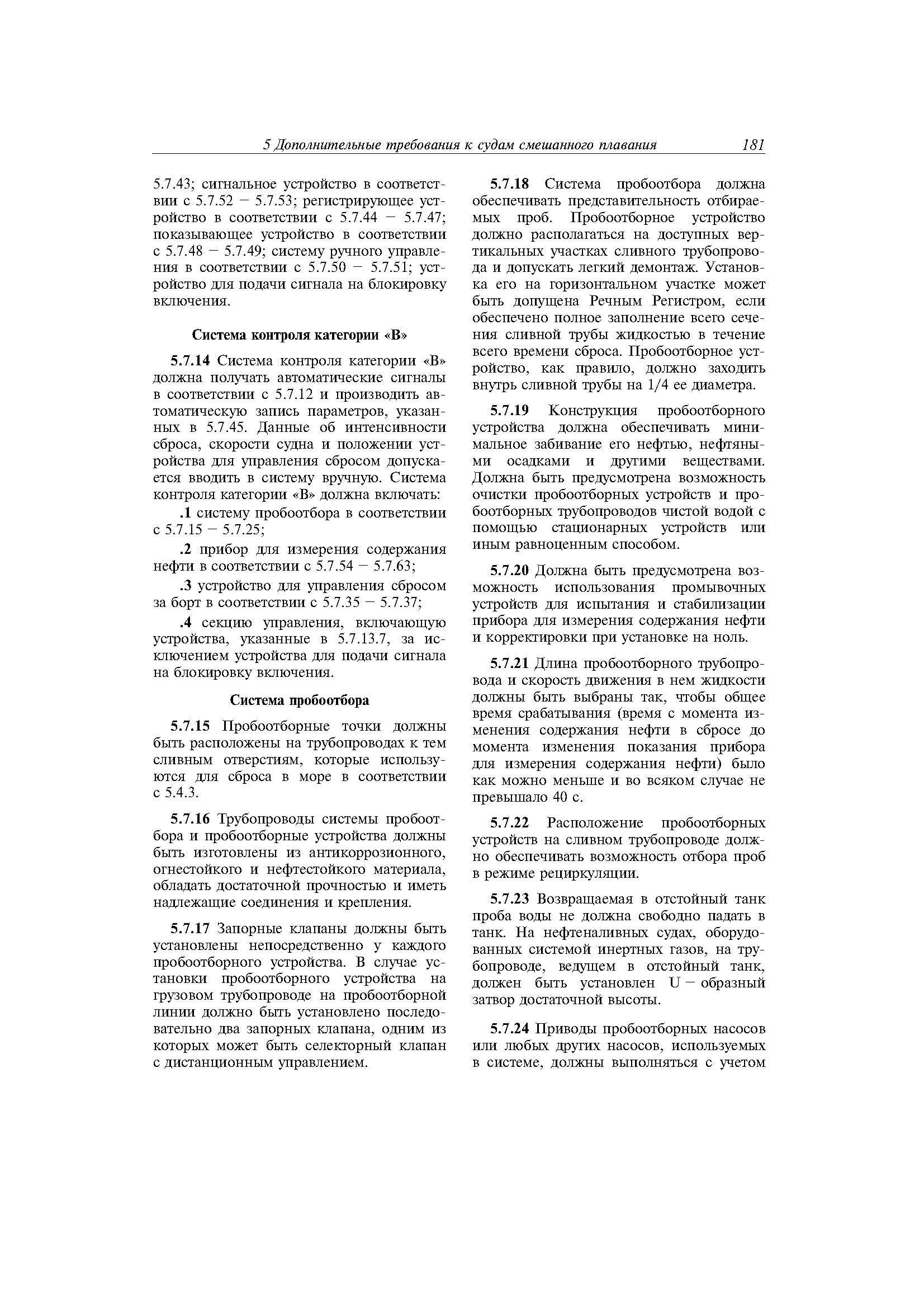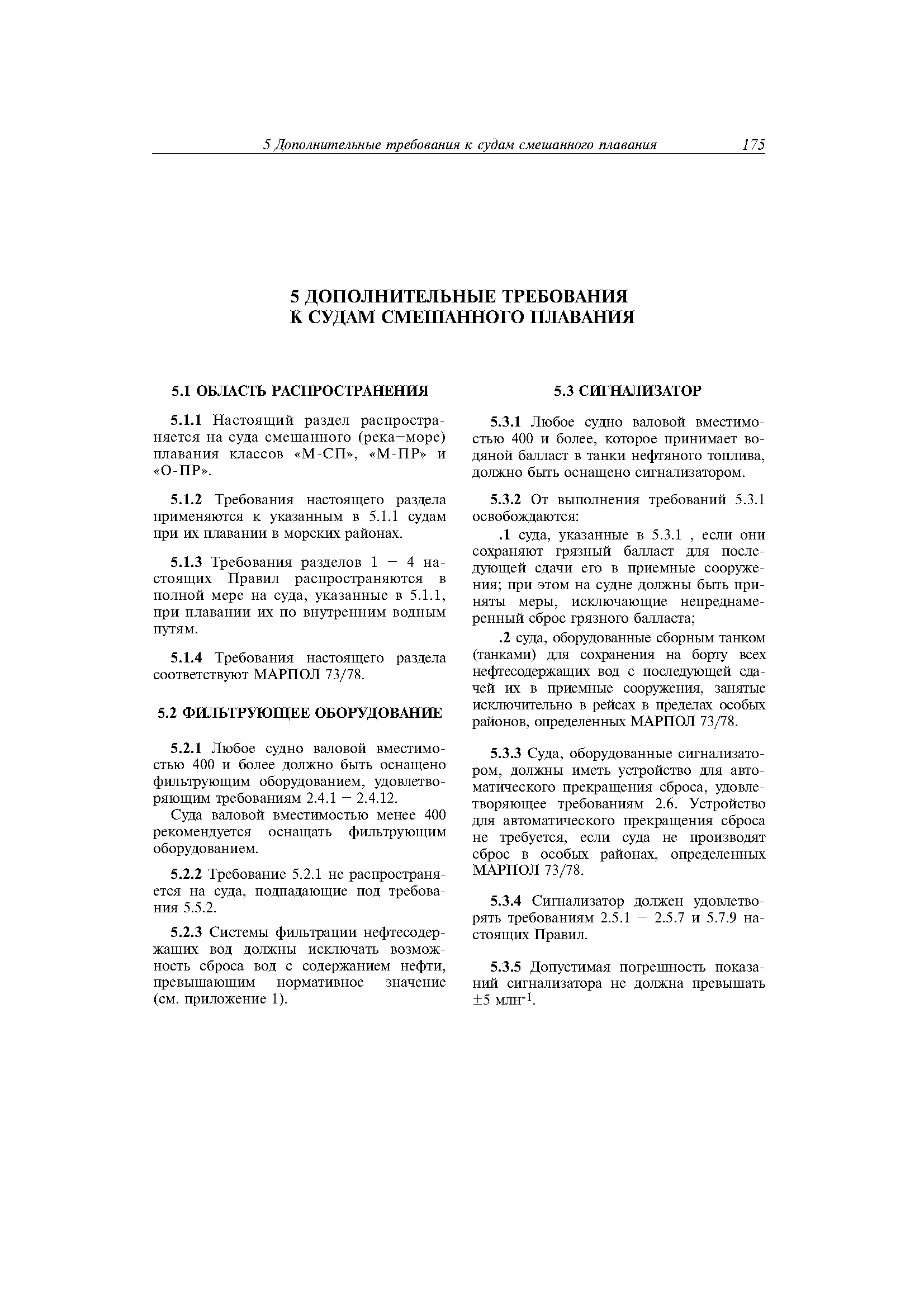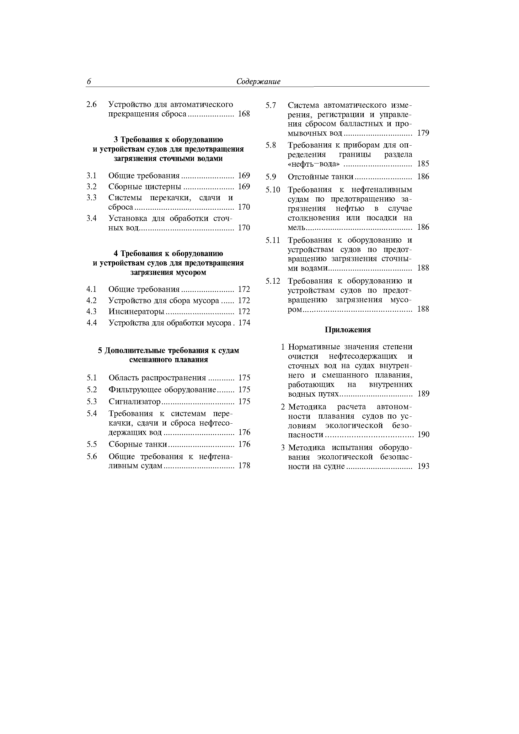 | Оглавление: | 1 Общие положения 2 Требования к оборудованию и устройствам судов для предотвращения загрязнения нефтью 3 Требования к оборудованию и устройствам судов для предотвращения загрязнения сточными водами 4 Требования к оборудованию и устройствам судов для предотвращения загрязнения мусором 5 Дополнительные требования к судам смешанного плавания Приложения |