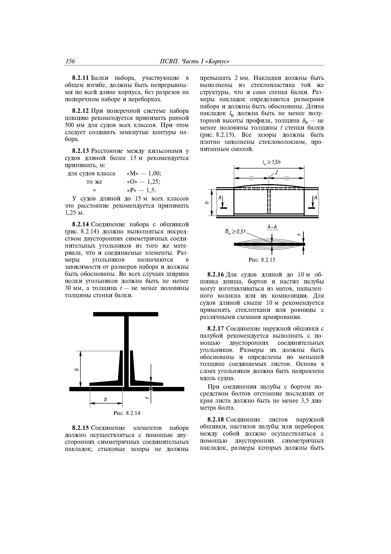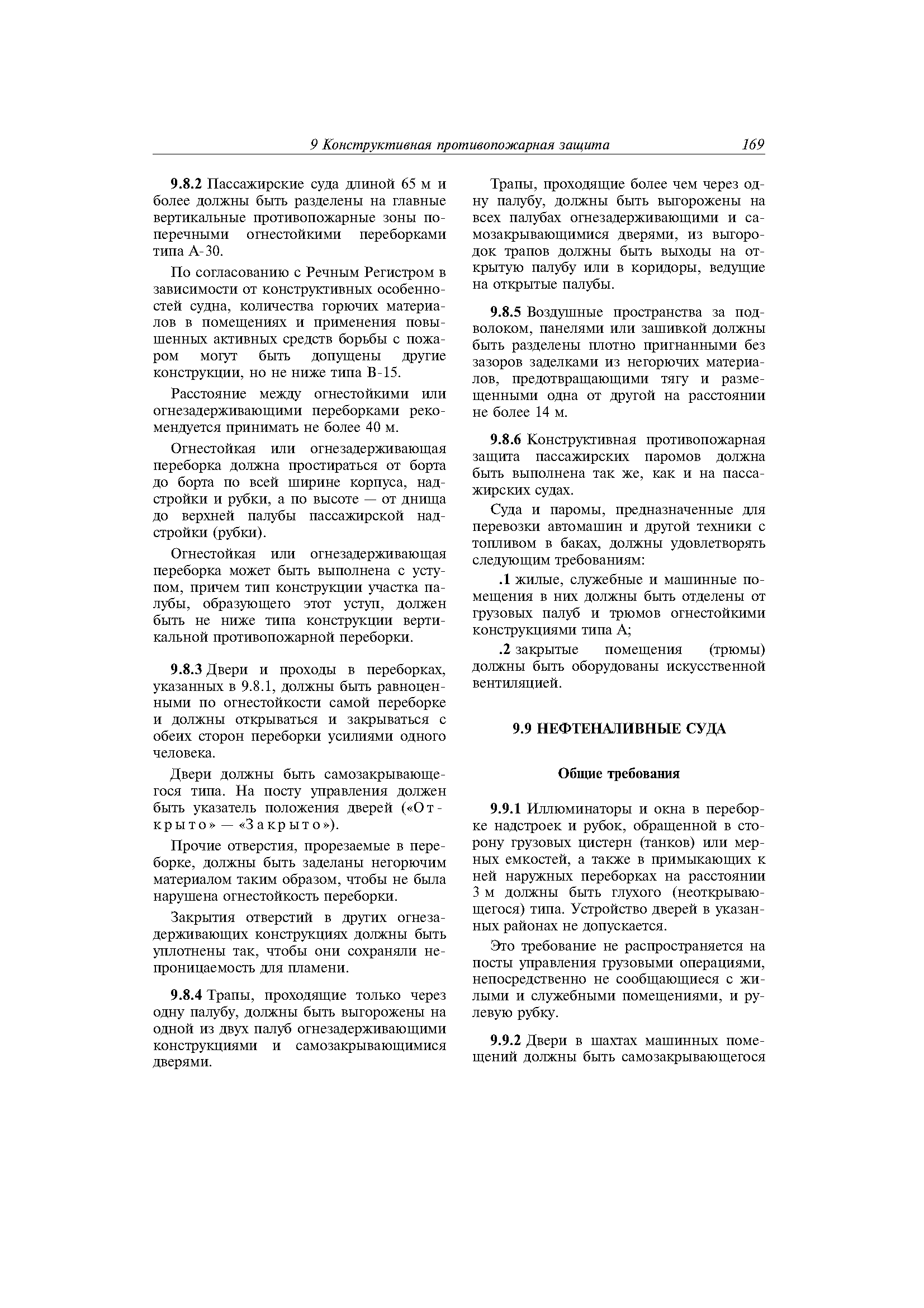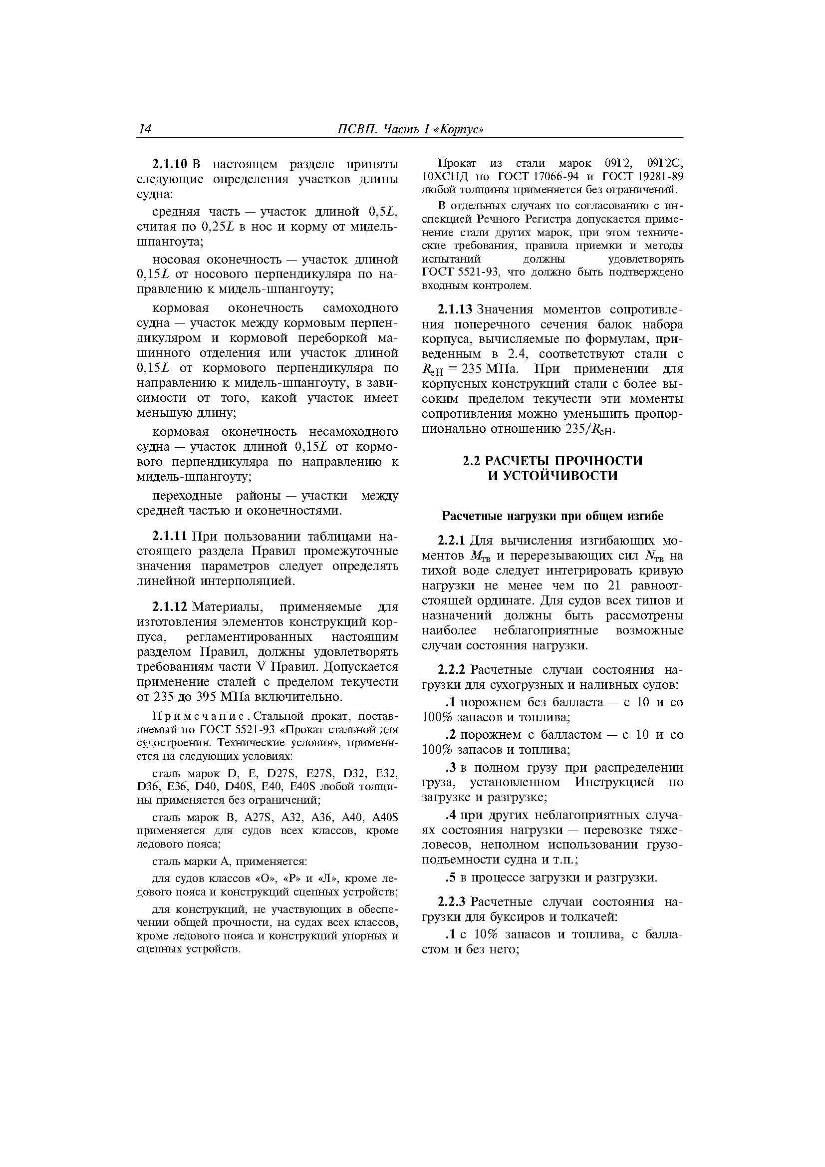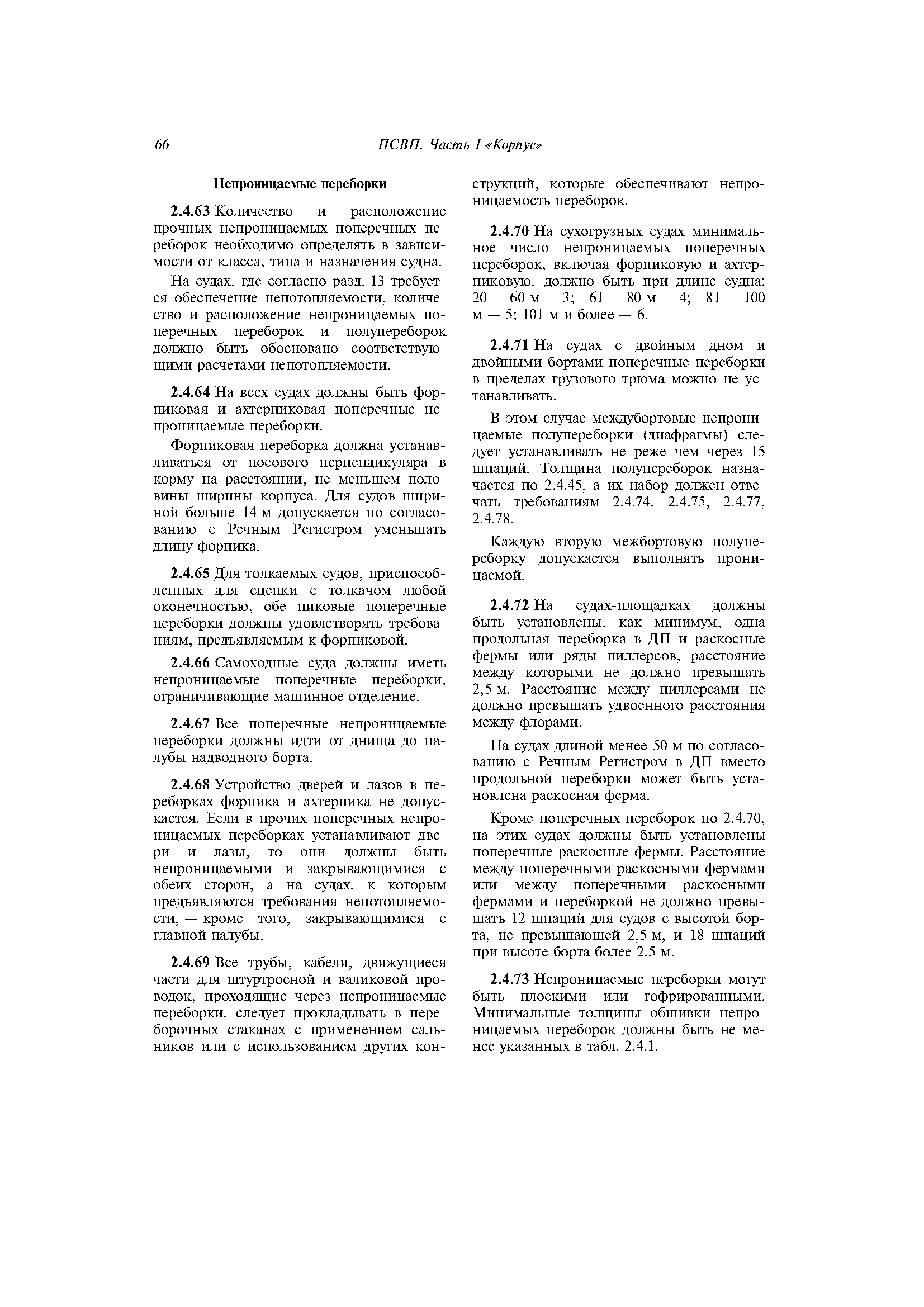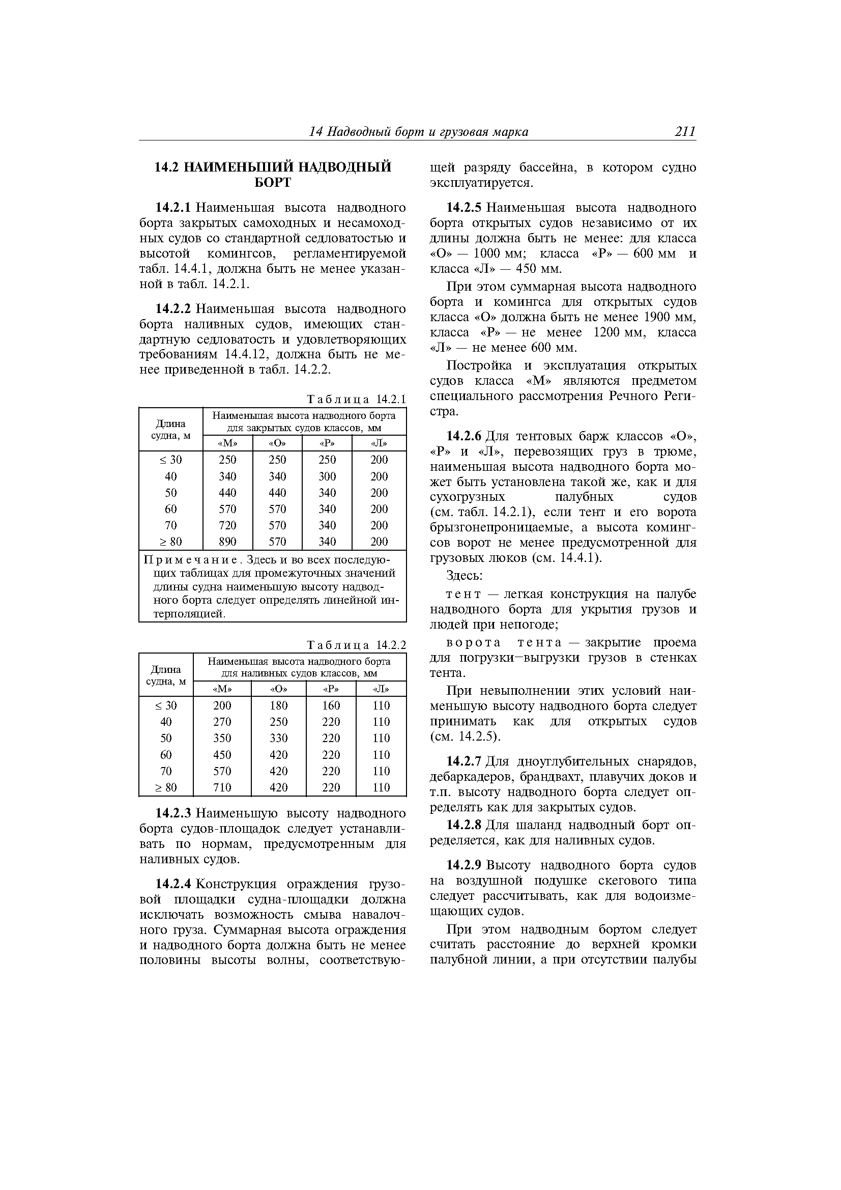 Часть I. Корпус (редакция 2002 года)| Статус: | действует | | Название рус.: | Часть I. Корпус (редакция 2002 года) | | Дата добавления в базу: | 01.09.2013 | | Дата актуализации: | 01.01.2021 | | Дата введения: | 31.03.2003 | | Область применения: | Документ распространяется на водоизмещающие однокорпусные суда и катамараны, суда на подводных крыльях и воздушной подушке и включает в себя требования к конструкции корпуса, прочности, остойчивости, непотопляемости, надводному борту и грузовой марке, а также к конструктивной противопожарной защите, оборудованию помещений, защите экипажа и пассажиров. | | Оглавление: | 1 Общие положения 2 Конструкция и прочность стального корпуса 3 Конструкция корпуса водоизмещающих судов из легких сплавов 4 Конструкция корпуса катамарана 5 Конструкция корпуса судов на подводных крыльях 6 Конструкция корпуса судов на воздушной подушке 7 Конструкция железобетонного корпуса 8 Конструкция пластмассового корпуса 9 Конструктивная противопожарная защита 10 Оборудование помещений 11 Ограждения, поручни, переходные мостики, сходные трапы 12 Остойчивость 13 Непотопляемость 14 Надводный борт и грузовая марка Приложения | | Утверждён: | 11.11.2002 Министерство транспорта РФ (Russian Federation Ministry of Transport НС-137-р)